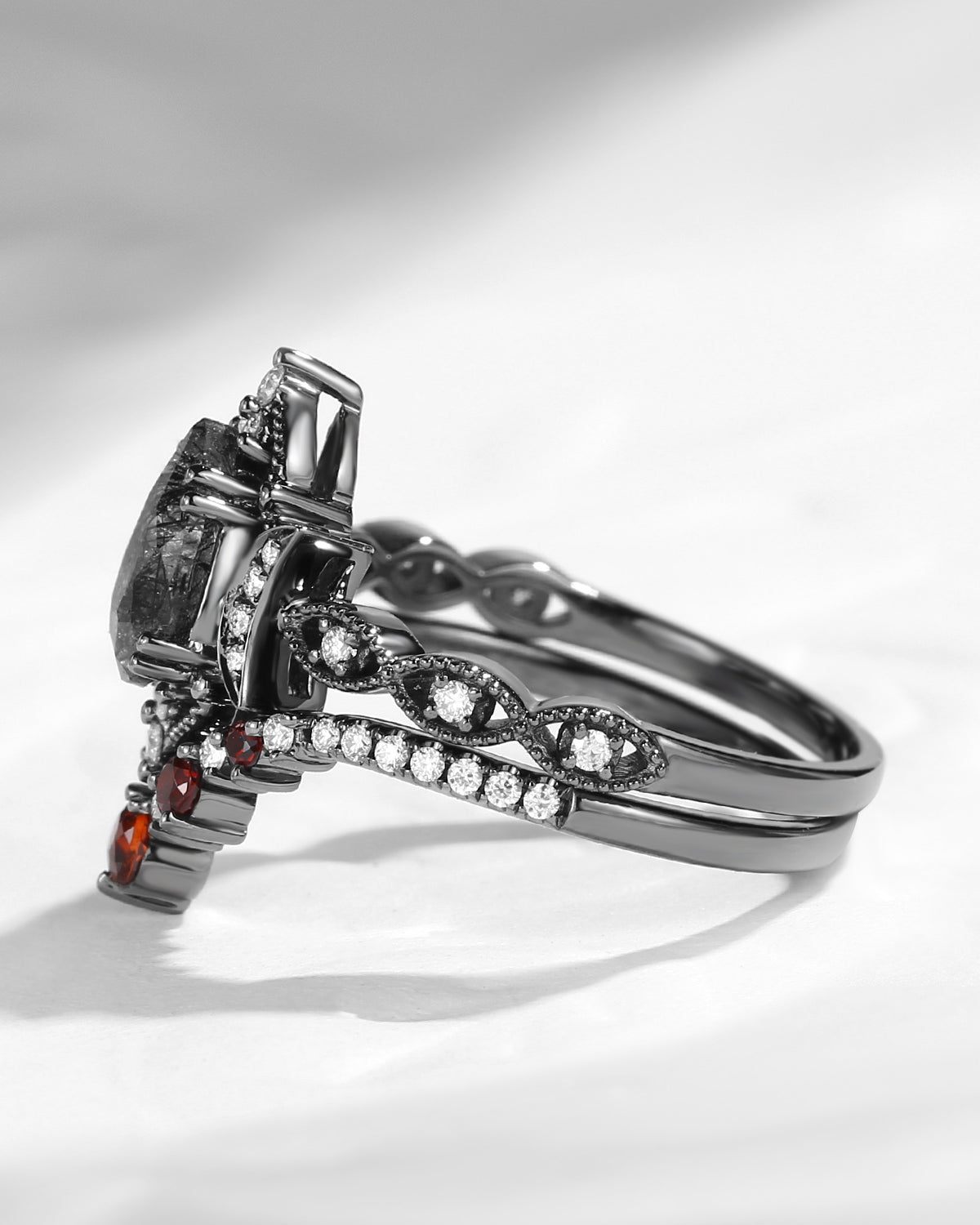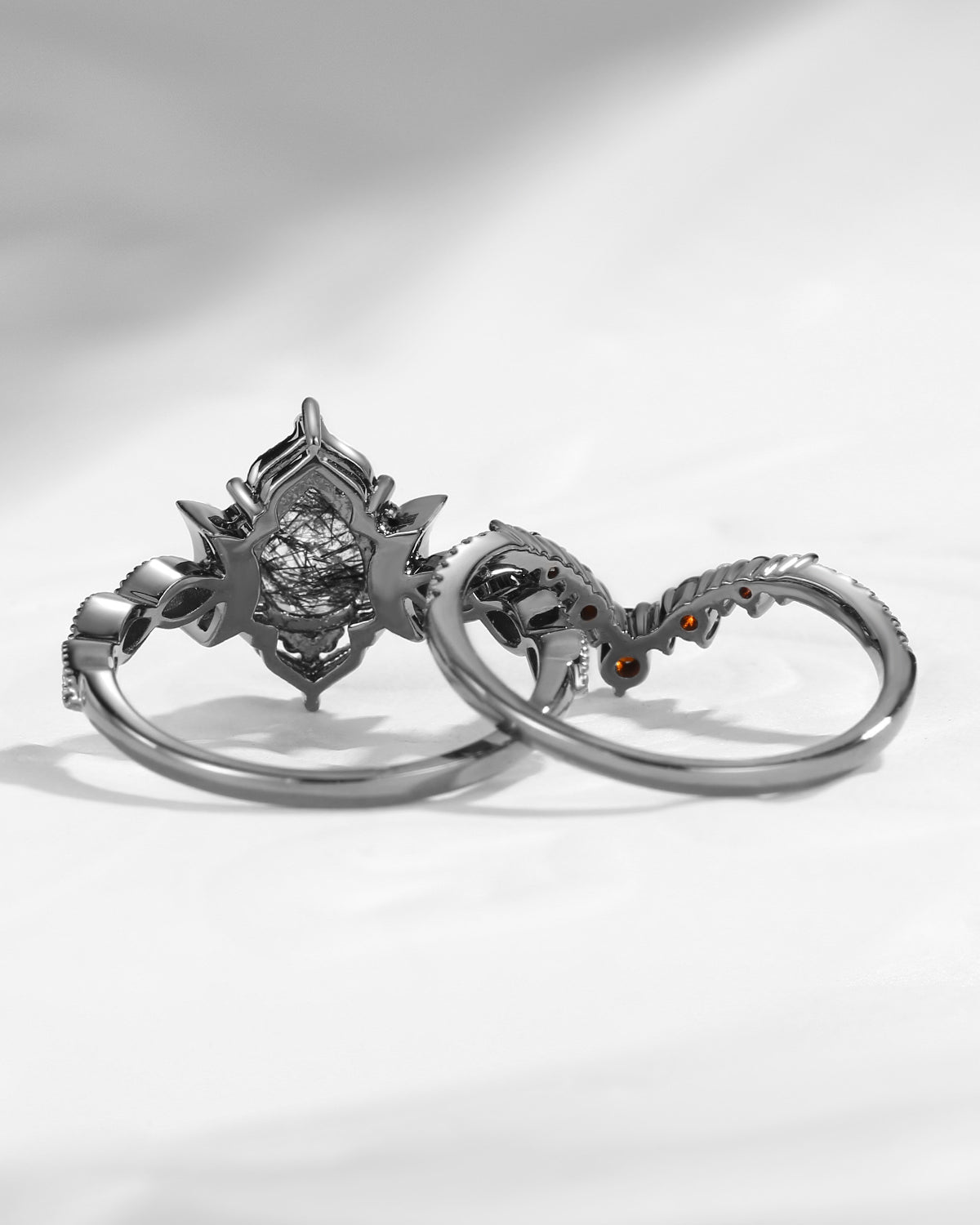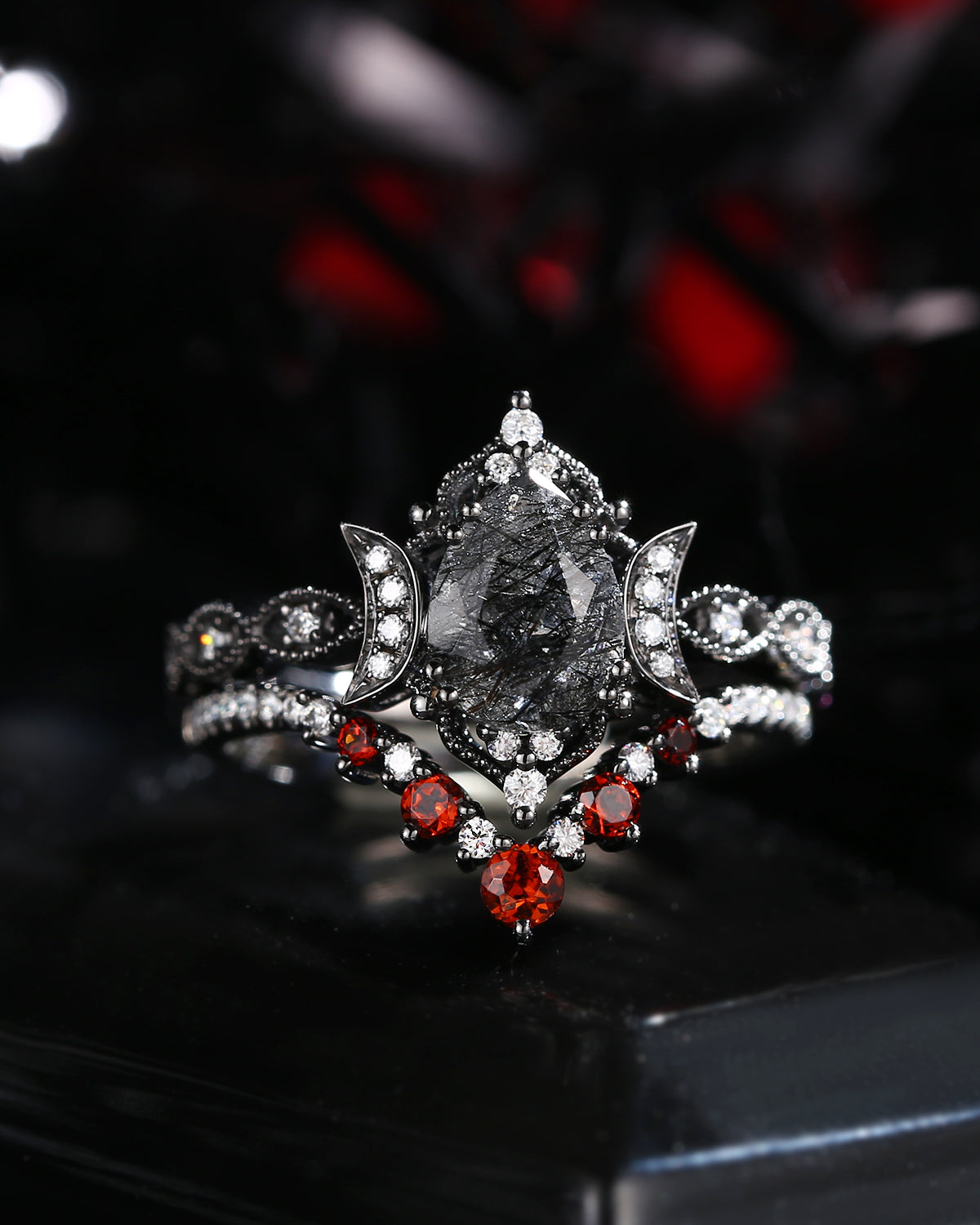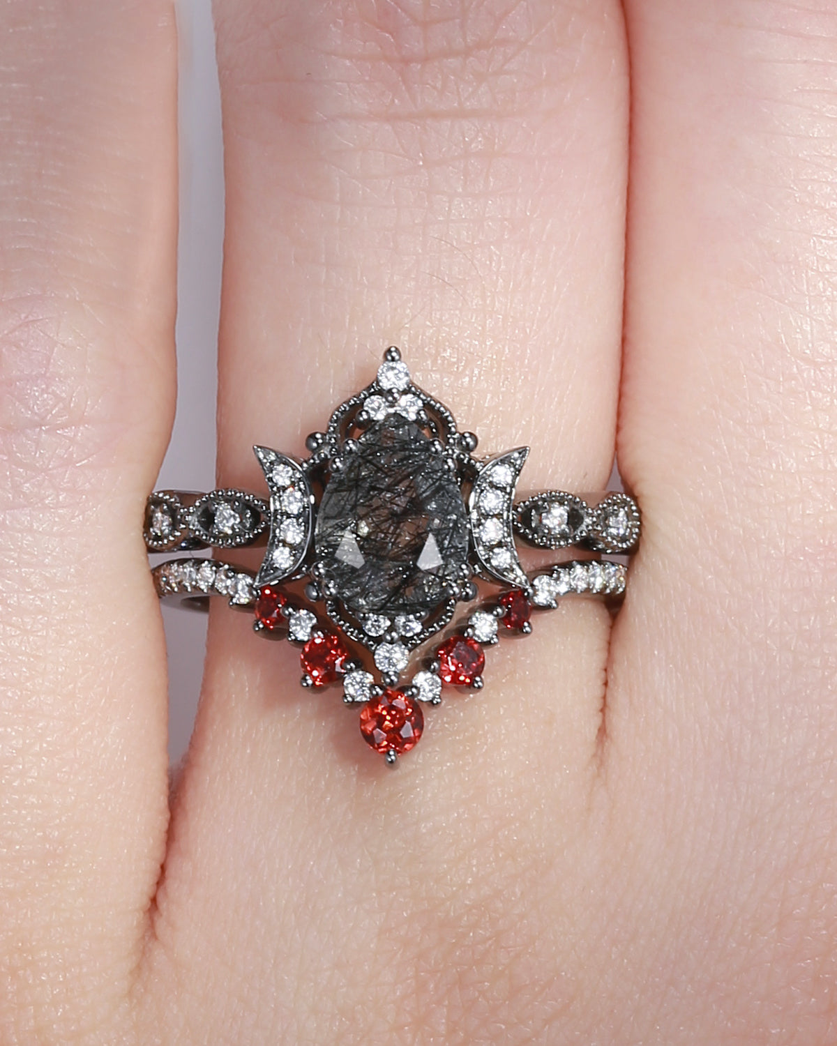 The new moon is often symbolic of new beginnings which this ring personifies for a couple starting their new life together. The crescent on the ring adorned with sparkling diamonds or other gemstones, like stars embellishing below the moon, making the ring both mystically charming and gorgeously radiant. This crescent shape ring is an ideal choice for a proposal or even daily wear, showcasing the wearer's personality in a unique way and serves as a beautiful promise of the future. Crescent moon is our proudest design by far. The crescent moon ring represents a new beginning, a process of starting over and vitality. Each crescent moon engagement ring is as unique as it can get while preserving a wonderful balance between vintage vibes and simplicity. The crescent moon ring can be of different shapes and different stone color even different side stones because here in StarlandUS, every one gets to create their own crescent moon, so as their own beginning.