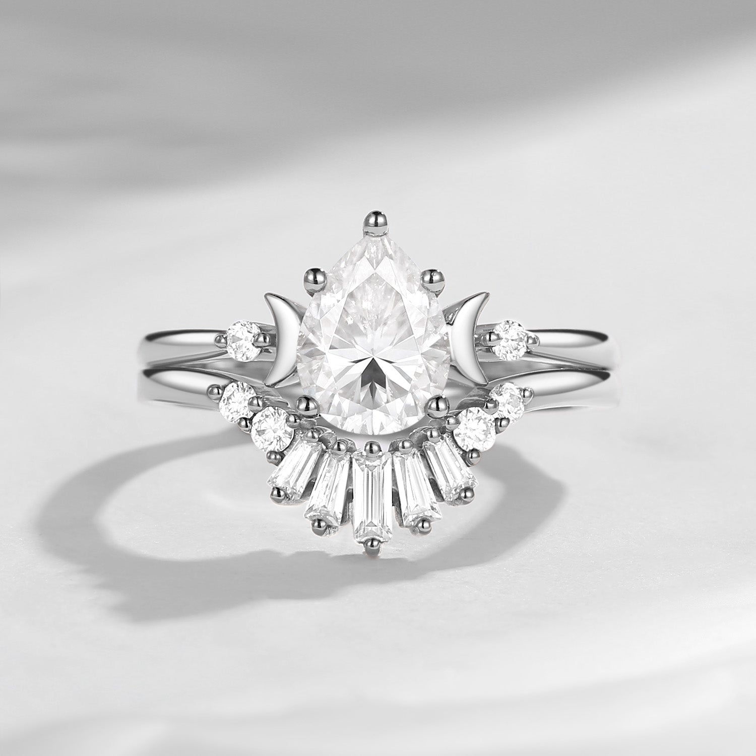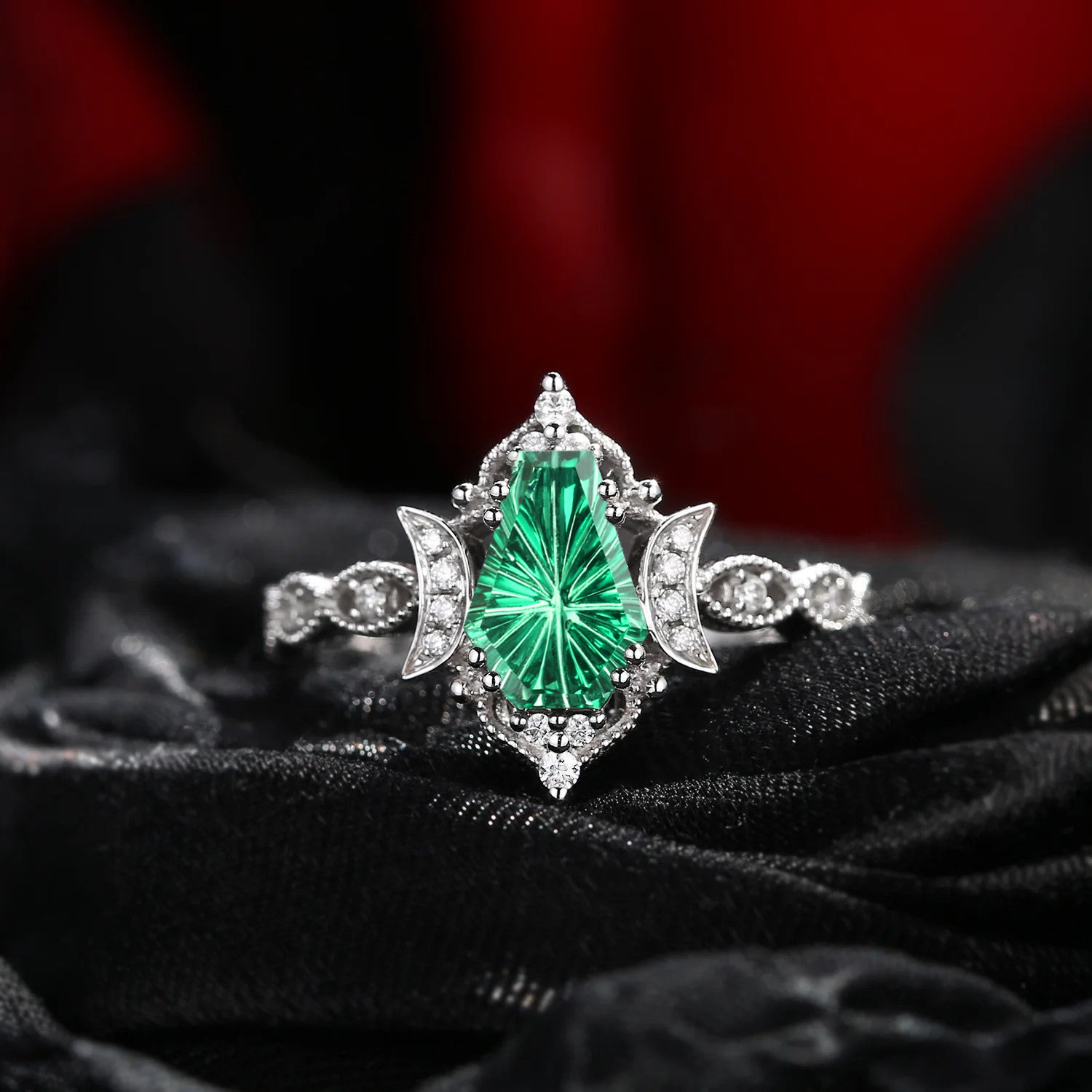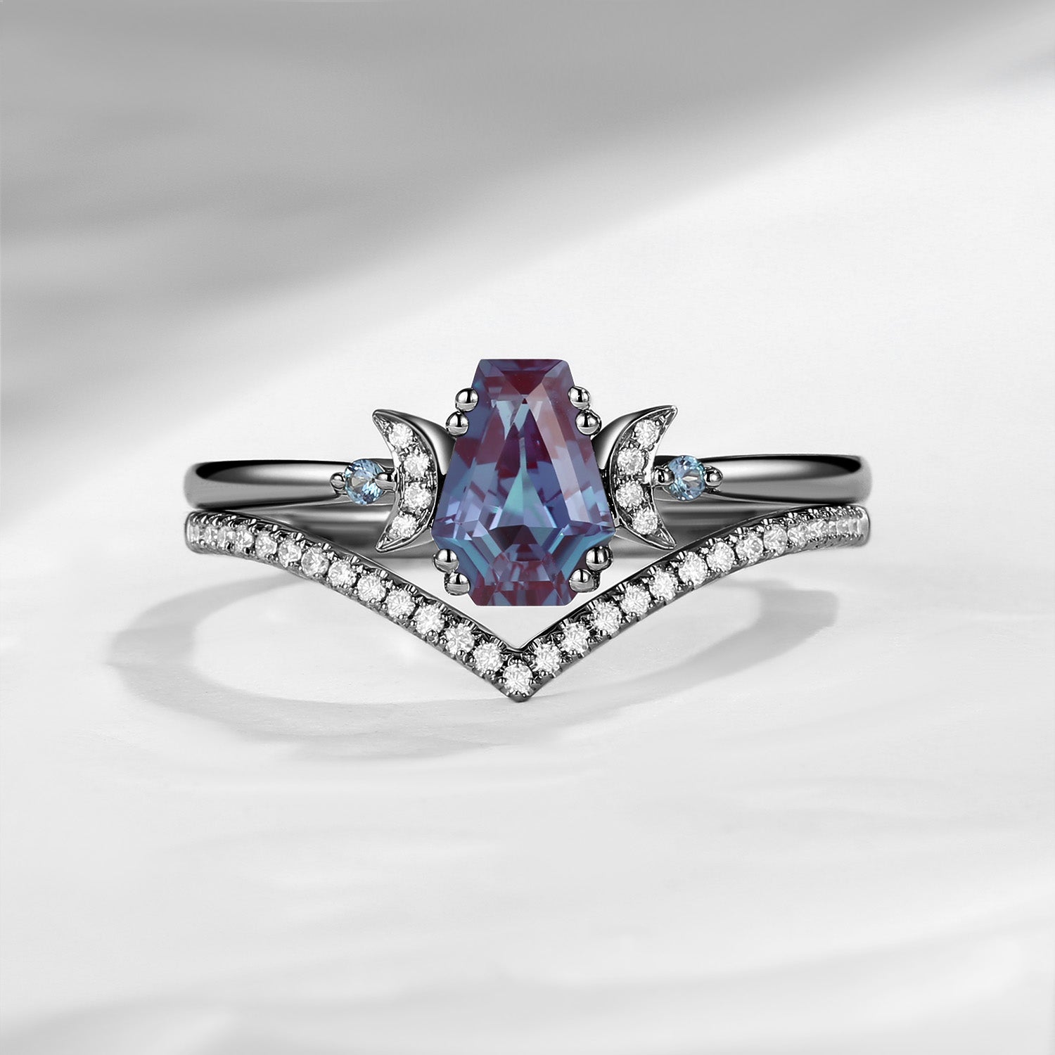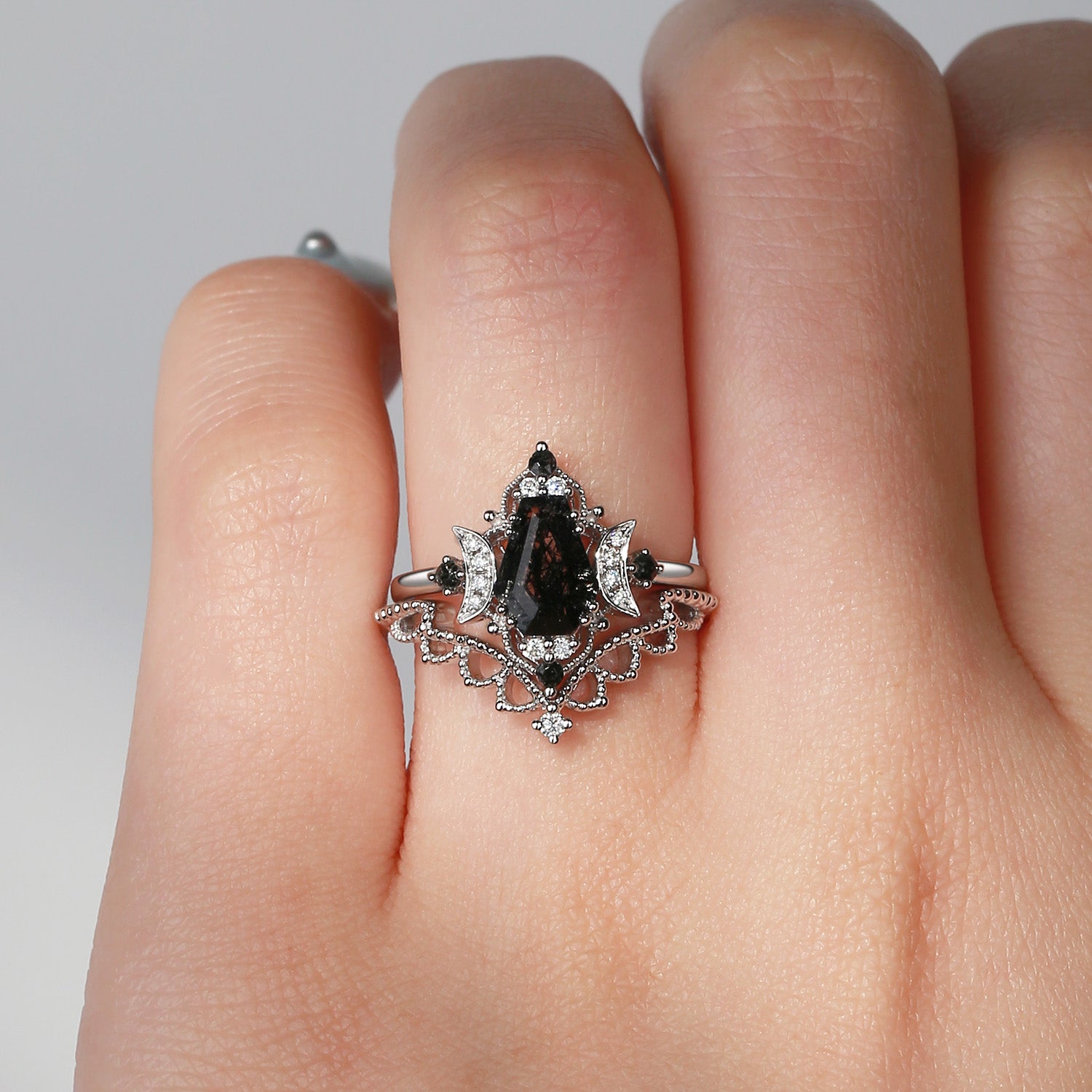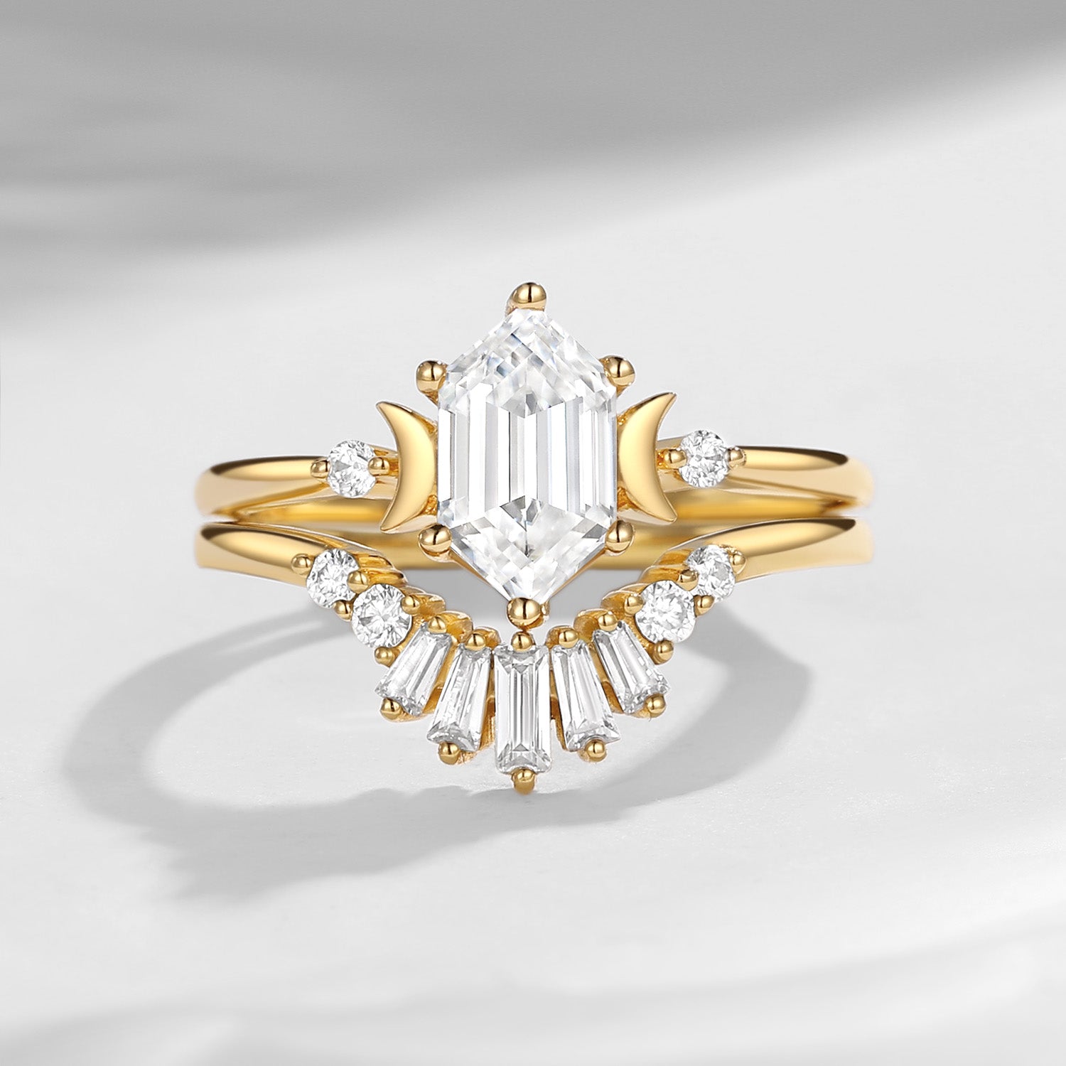 The new moon is often symbolic of new beginnings which this ring personifies for a couple starting their new life together. The crescent on the ring adorned with sparkling diamonds or other gemstones, like stars embellishing below the moon, making the ring both mystically charming and gorgeously radiant. This crescent shape ring is an ideal choice for a proposal or even daily wear, showcasing the wearer's personality in a unique way and serves as a beautiful promise of the future. Crescent moon is our proudest design by far. The crescent moon ring represents a new beginning, a process of starting over and vitality. Each crescent moon engagement ring is as unique as it can get while preserving a wonderful balance between vintage vibes and simplicity. The crescent moon ring can be of different shapes and different stone color even different side stones because here in StarlandUS, every one gets to create their own crescent moon, so as their own beginning.