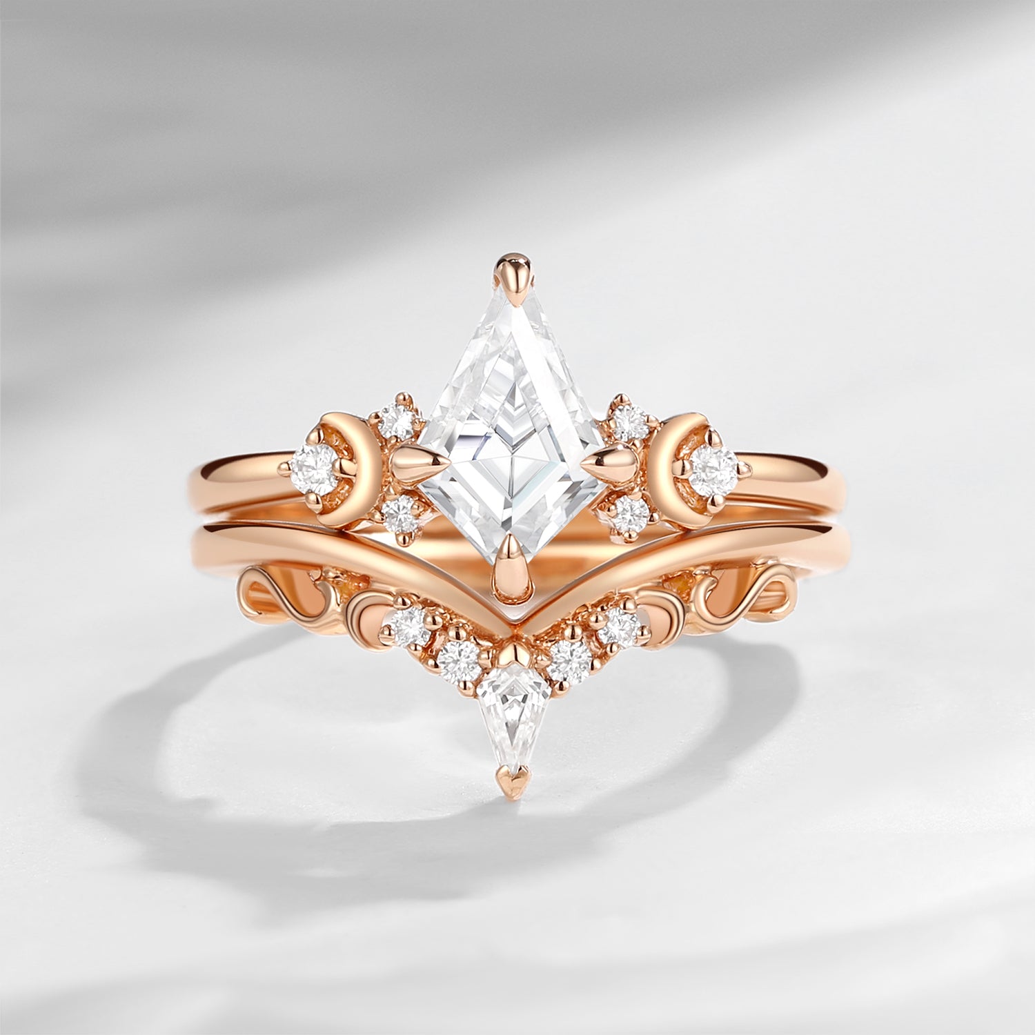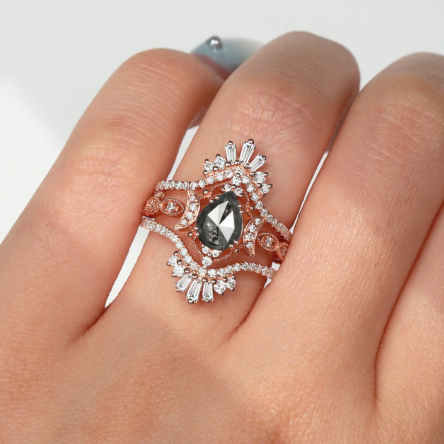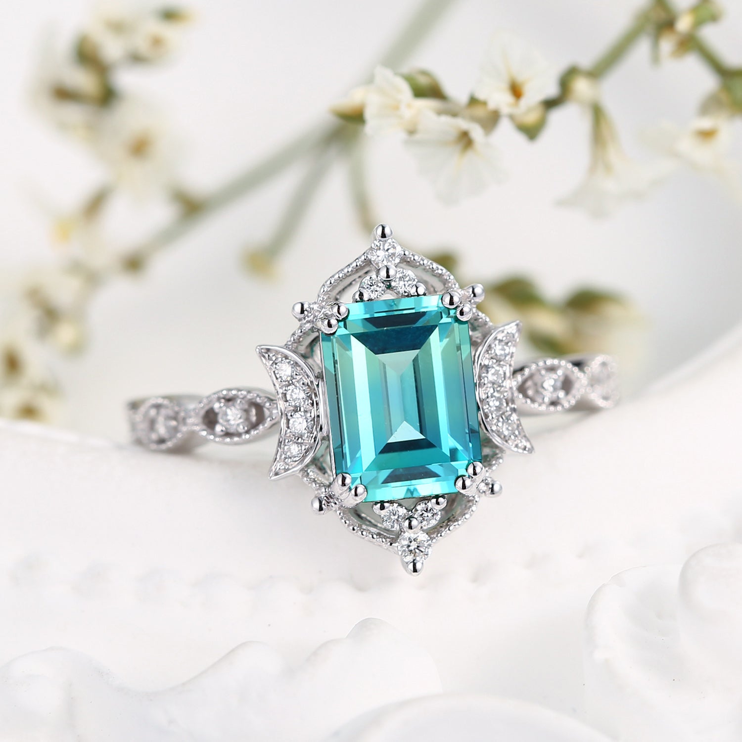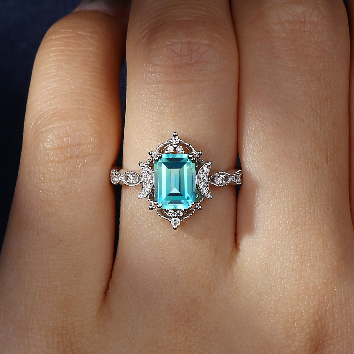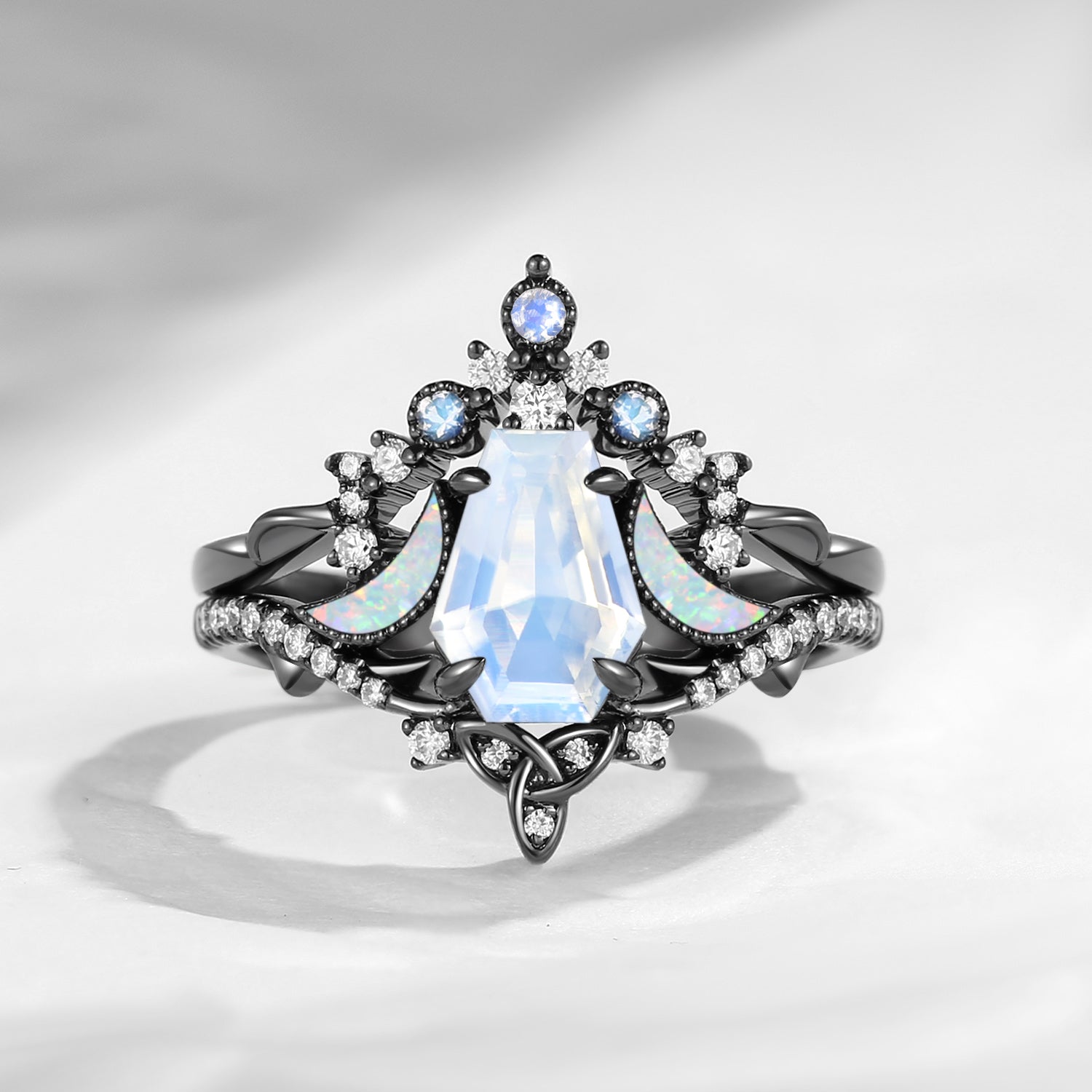 The new moon is often symbolic of new beginnings which this ring personifies for a couple starting their new life together. The crescent on the ring adorned with sparkling diamonds or other gemstones, like stars embellishing below the moon, making the ring both mystically charming and gorgeously radiant. This crescent shape ring is an ideal choice for a proposal or even daily wear, showcasing the wearer's personality in a unique way and serves as a beautiful promise of the future. Crescent moon is our proudest design by far. The crescent moon ring represents a new beginning, a process of starting over and vitality. Each crescent moon engagement ring is as unique as it can get while preserving a wonderful balance between vintage vibes and simplicity. The crescent moon ring can be of different shapes and different stone color even different side stones because here in StarlandUS, every one gets to create their own crescent moon, so as their own beginning.