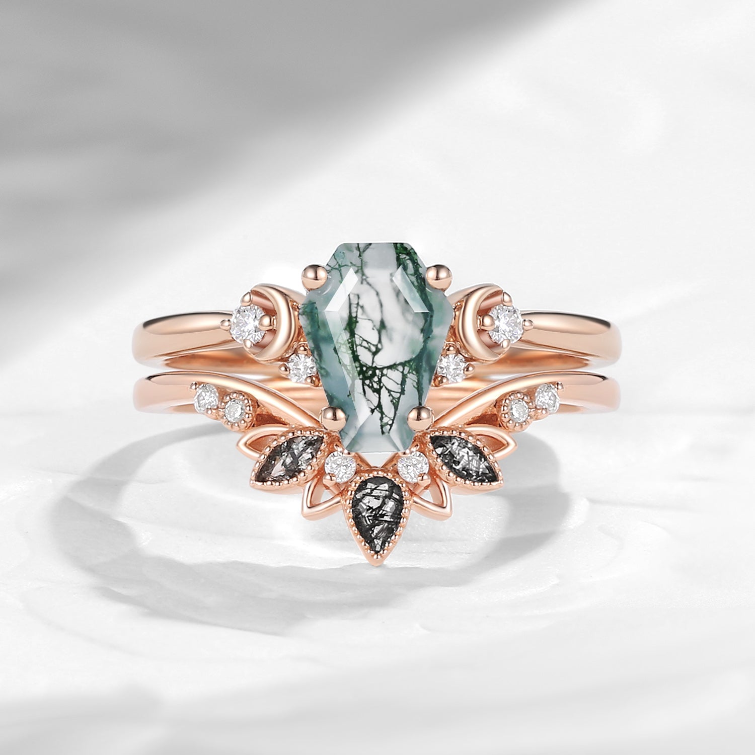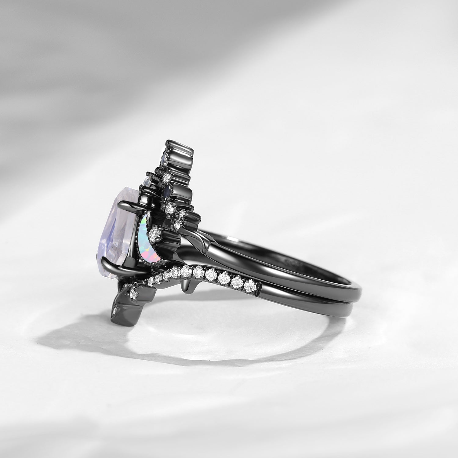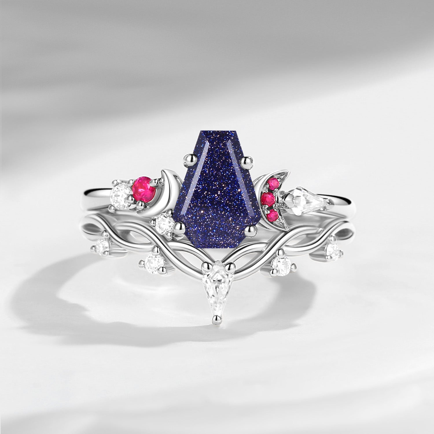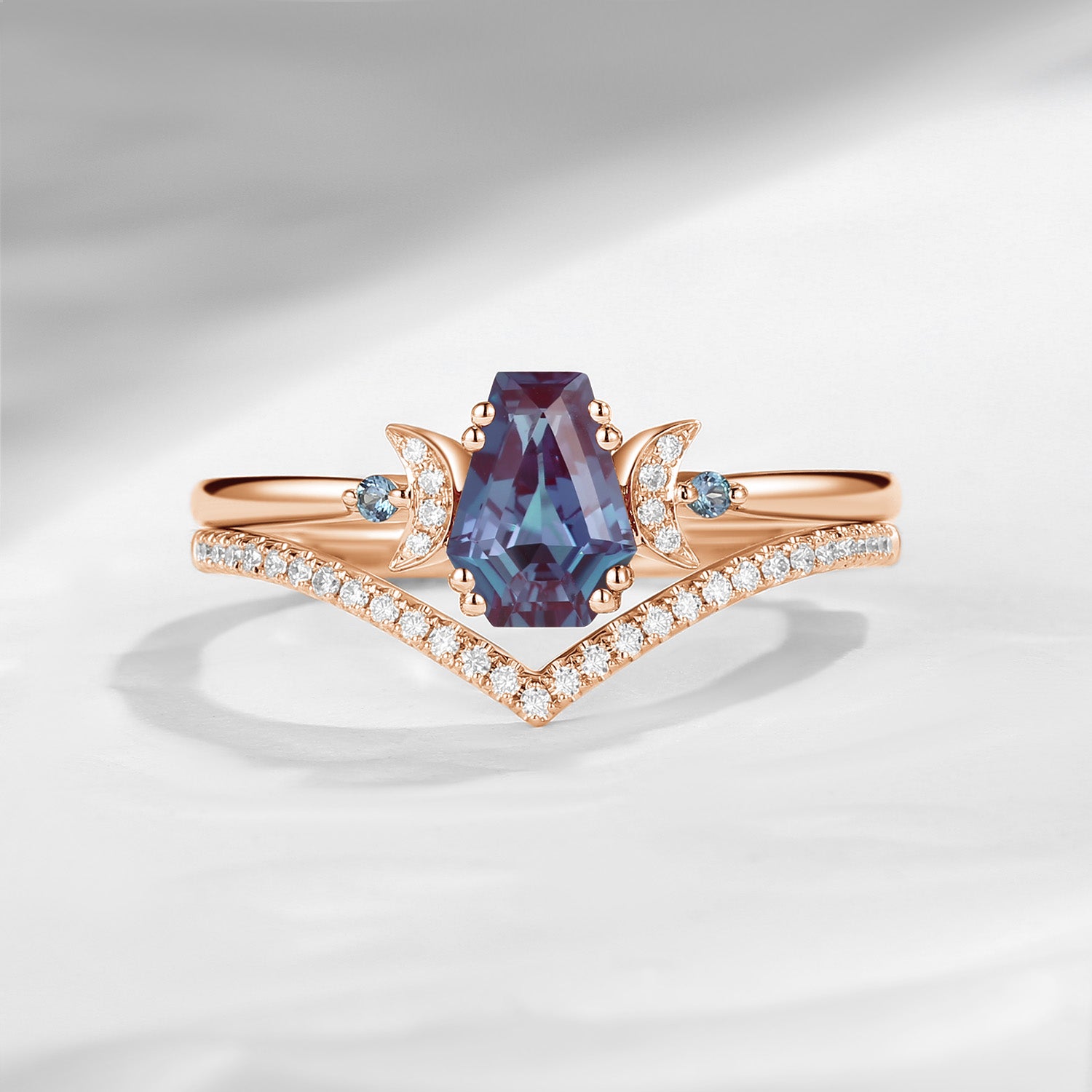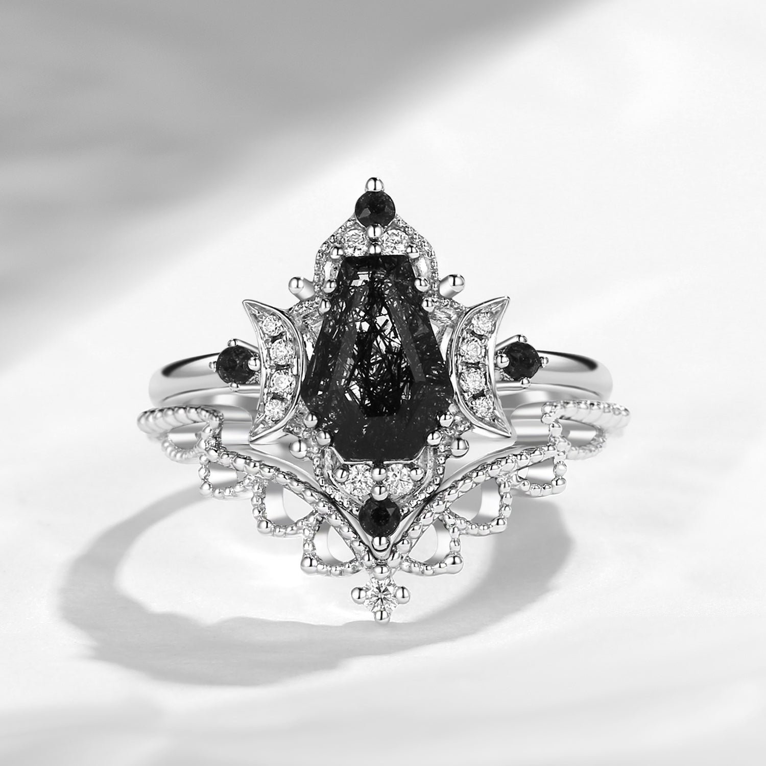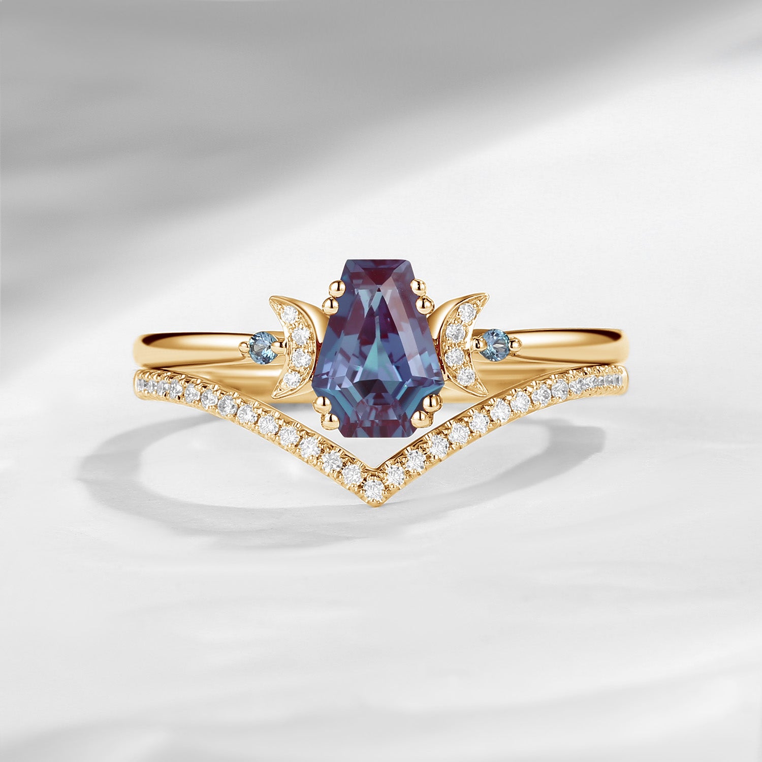The new moon is often symbolic of new beginnings which this ring personifies for a couple starting their new life together. The crescent on the ring adorned with sparkling diamonds or other gemstones, like stars embellishing below the moon, making the ring both mystically charming and gorgeously radiant. This crescent shape ring is an ideal choice for a proposal or even daily wear, showcasing the wearer's personality in a unique way and serves as a beautiful promise of the future. Crescent moon is our proudest design by far. The crescent moon ring represents a new beginning, a process of starting over and vitality. Each crescent moon engagement ring is as unique as it can get while preserving a wonderful balance between vintage vibes and simplicity. The crescent moon ring can be of different shapes and different stone color even different side stones because here in StarlandUS, every one gets to create their own crescent moon, so as their own beginning.