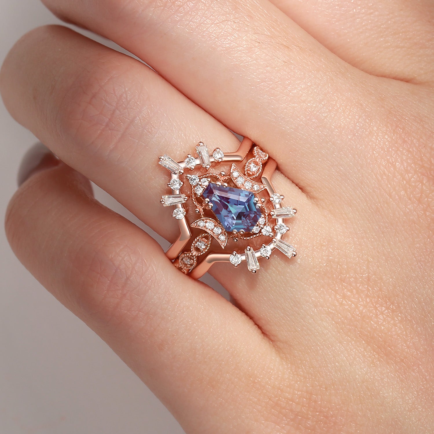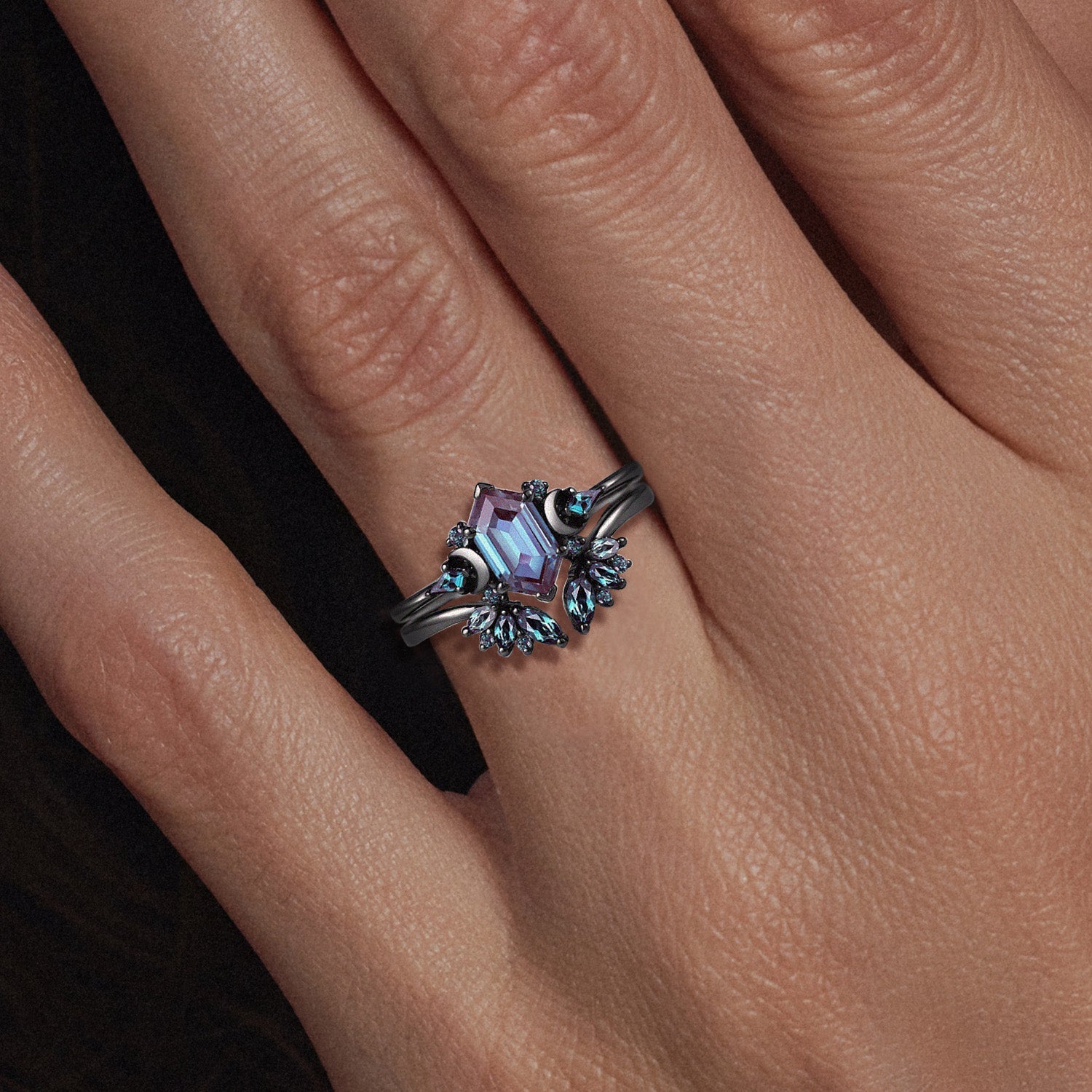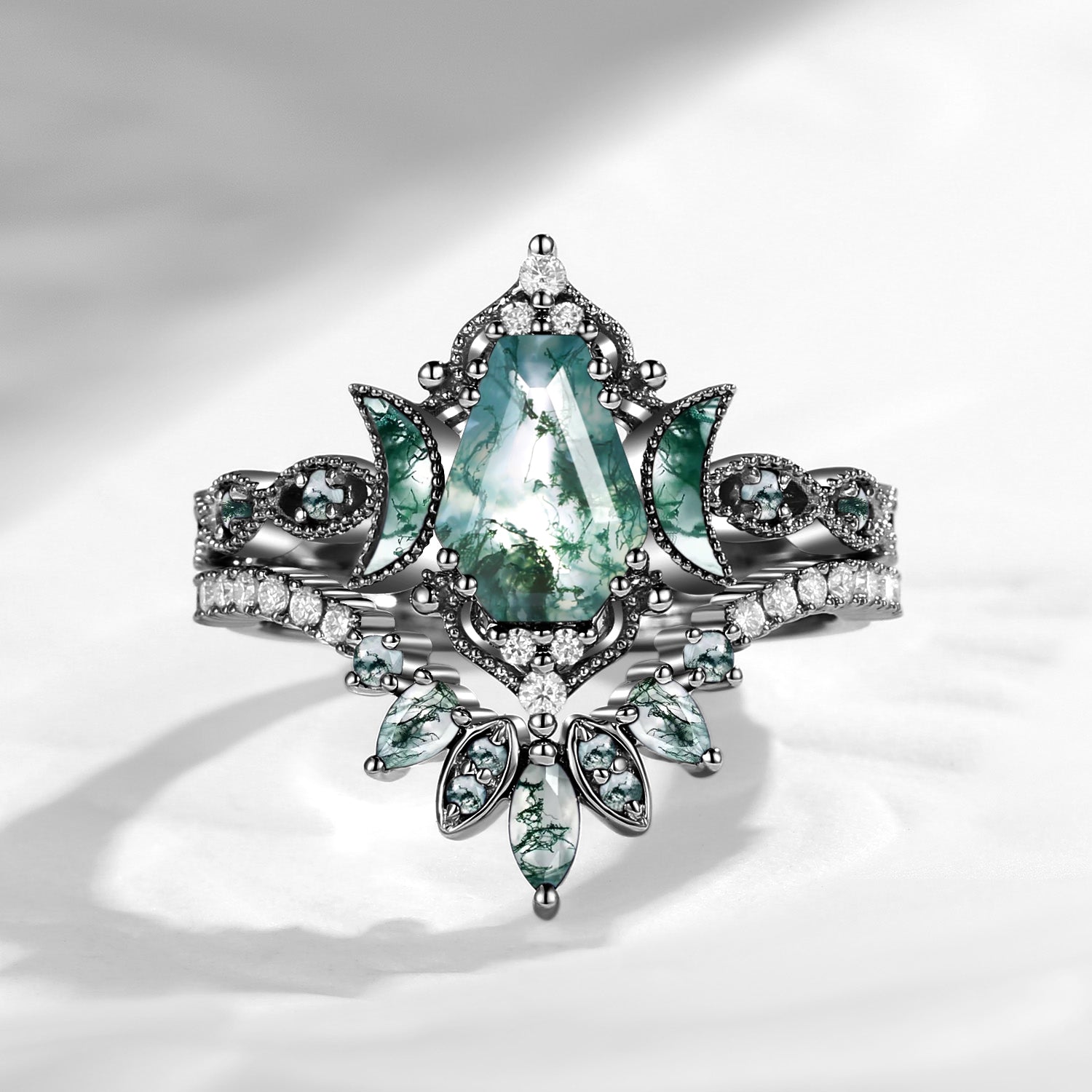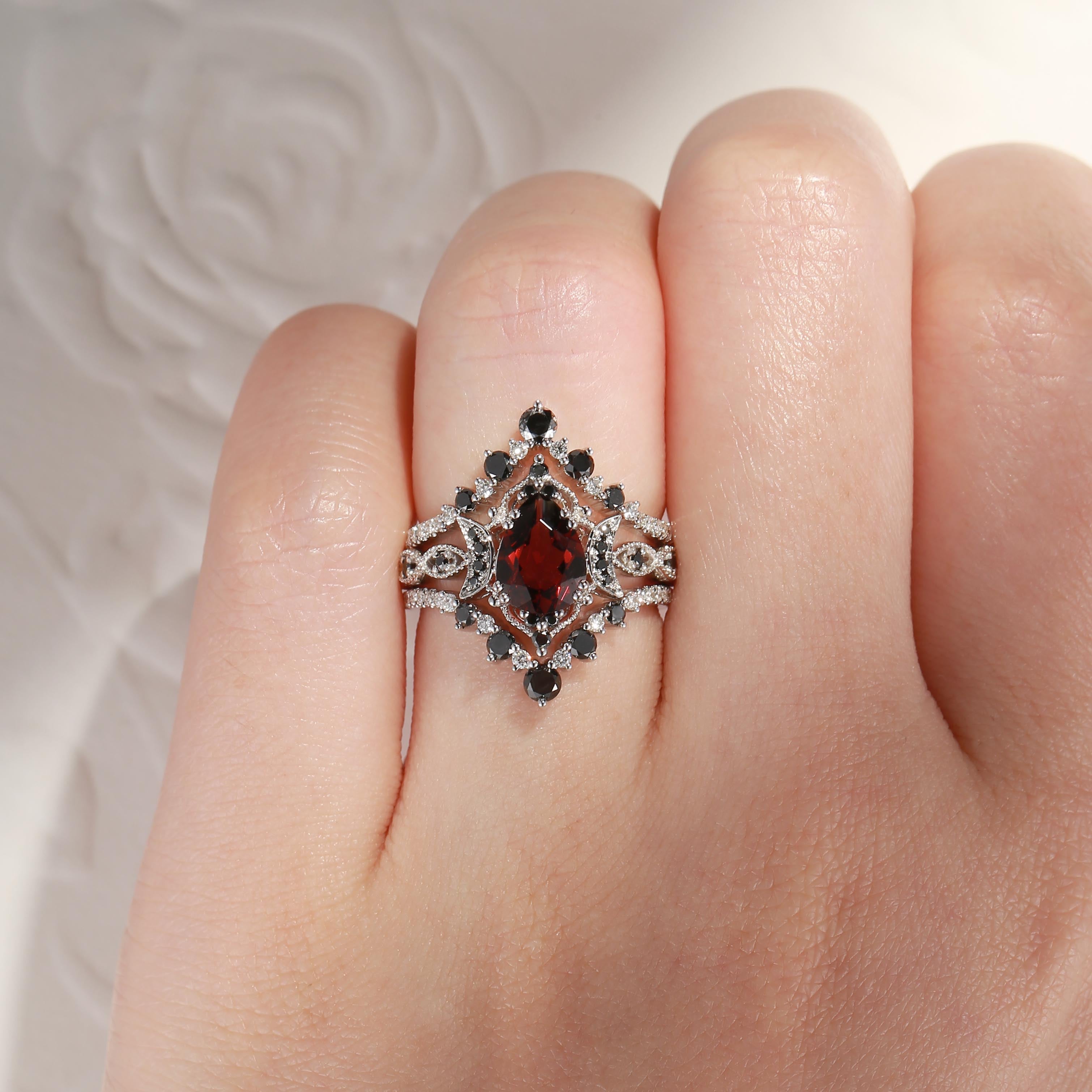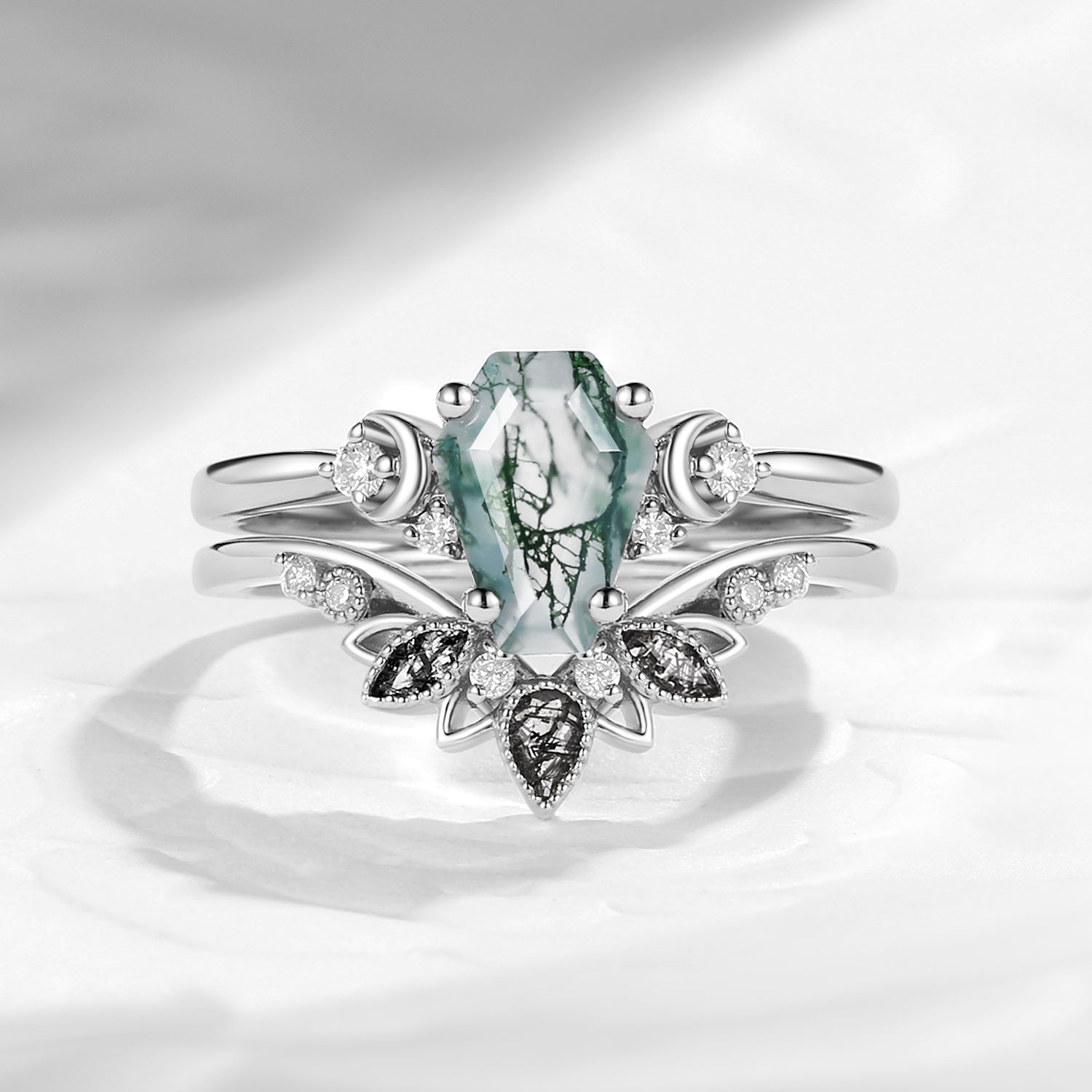 The new moon is often symbolic of new beginnings which this ring personifies for a couple starting their new life together. The crescent on the ring adorned with sparkling diamonds or other gemstones, like stars embellishing below the moon, making the ring both mystically charming and gorgeously radiant. This crescent shape ring is an ideal choice for a proposal or even daily wear, showcasing the wearer's personality in a unique way and serves as a beautiful promise of the future. Crescent moon is our proudest design by far. The crescent moon ring represents a new beginning, a process of starting over and vitality. Each crescent moon engagement ring is as unique as it can get while preserving a wonderful balance between vintage vibes and simplicity. The crescent moon ring can be of different shapes and different stone color even different side stones because here in StarlandUS, every one gets to create their own crescent moon, so as their own beginning.