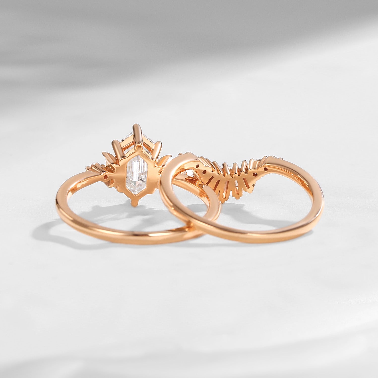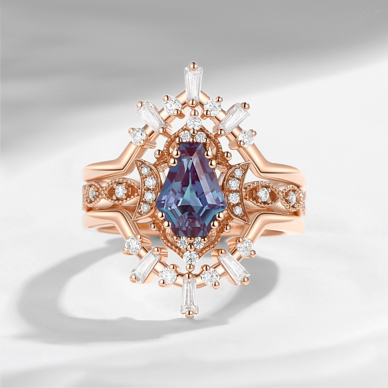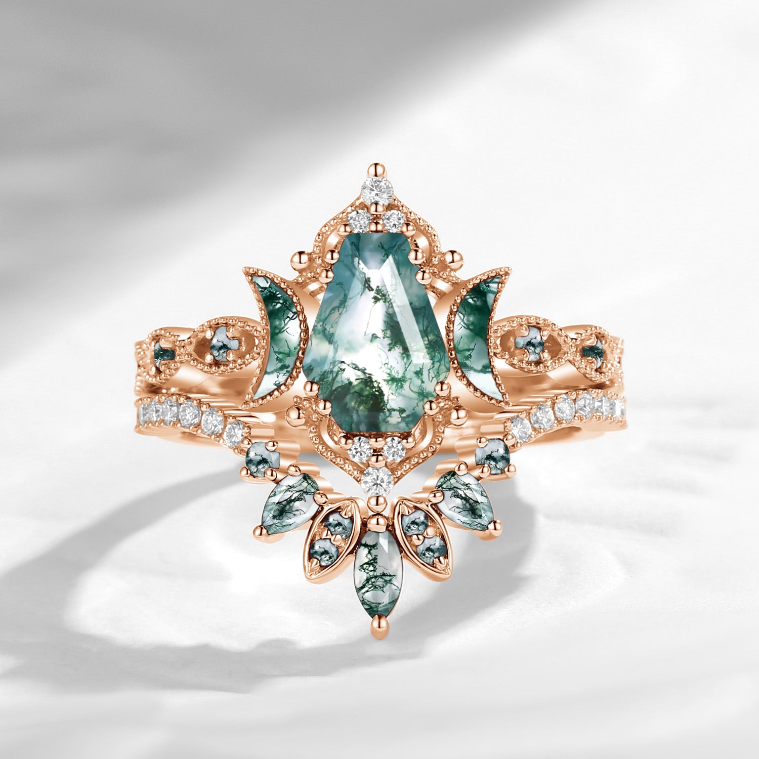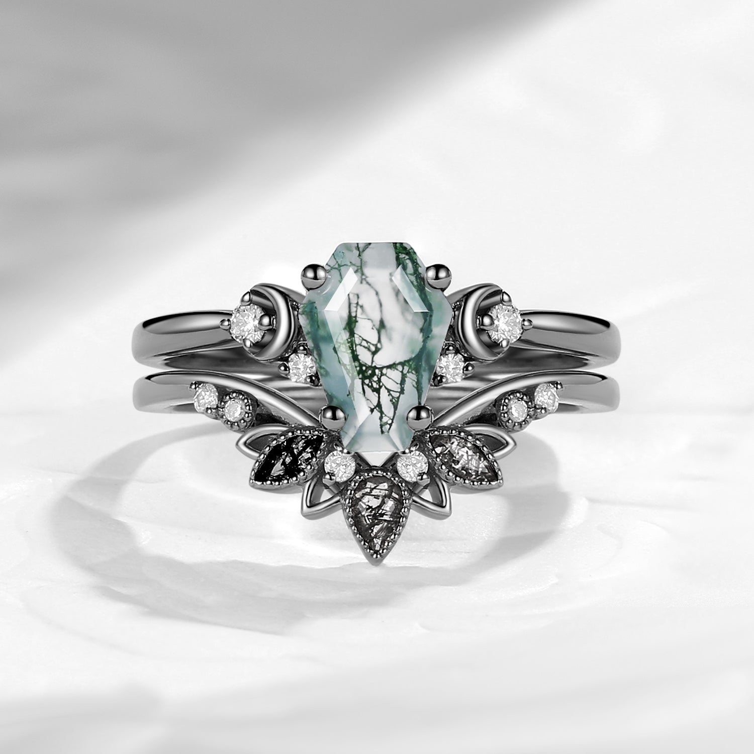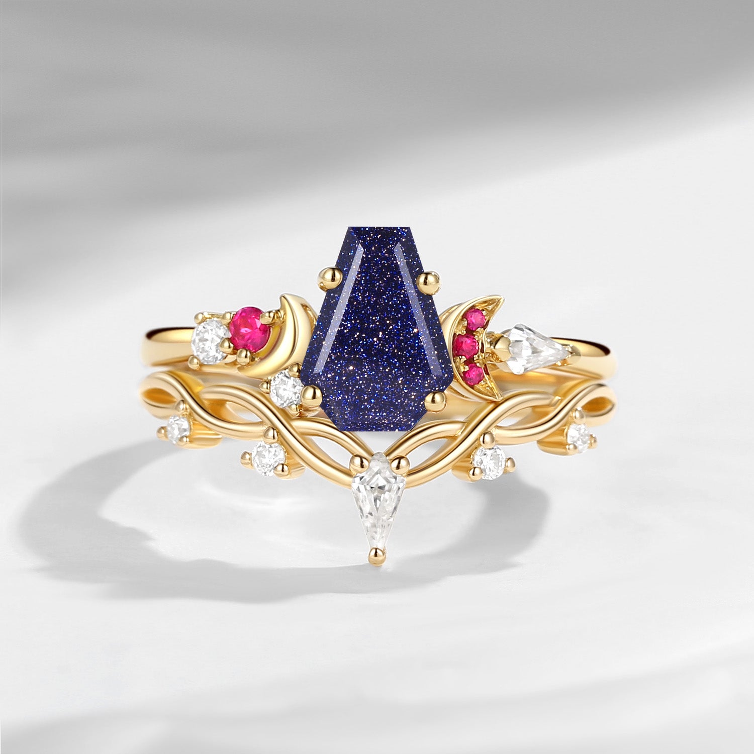 The new moon is often symbolic of new beginnings which this ring personifies for a couple starting their new life together. The crescent on the ring adorned with sparkling diamonds or other gemstones, like stars embellishing below the moon, making the ring both mystically charming and gorgeously radiant. This crescent shape ring is an ideal choice for a proposal or even daily wear, showcasing the wearer's personality in a unique way and serves as a beautiful promise of the future. Crescent moon is our proudest design by far. The crescent moon ring represents a new beginning, a process of starting over and vitality. Each crescent moon engagement ring is as unique as it can get while preserving a wonderful balance between vintage vibes and simplicity. The crescent moon ring can be of different shapes and different stone color even different side stones because here in StarlandUS, every one gets to create their own crescent moon, so as their own beginning.