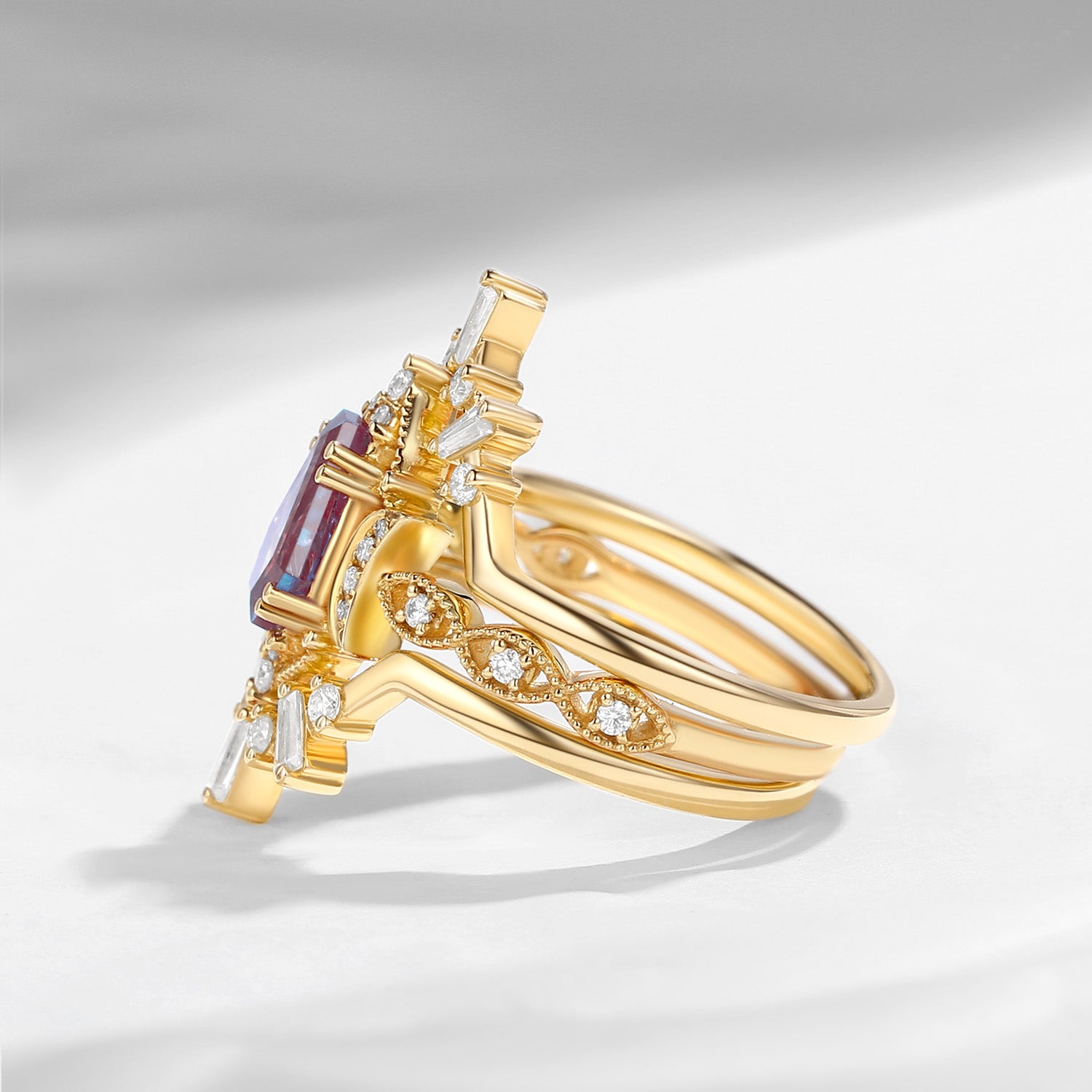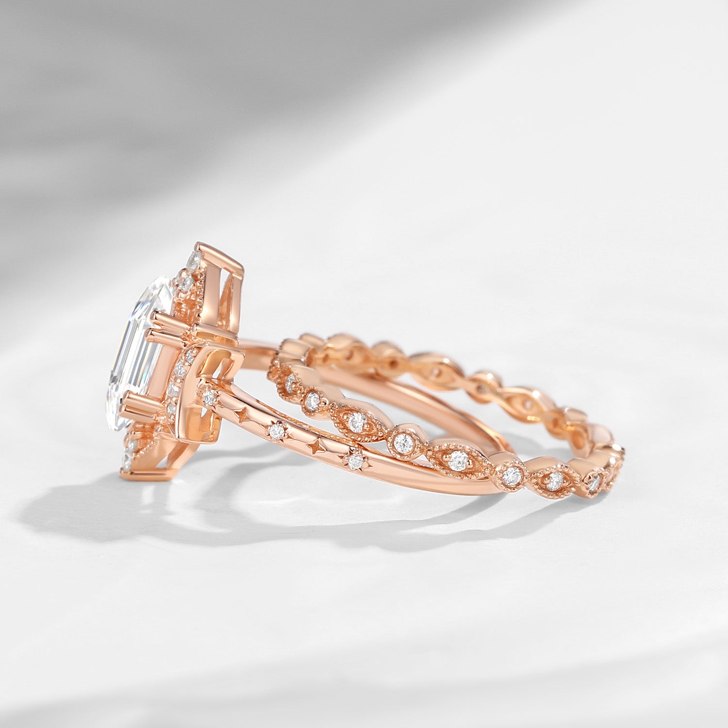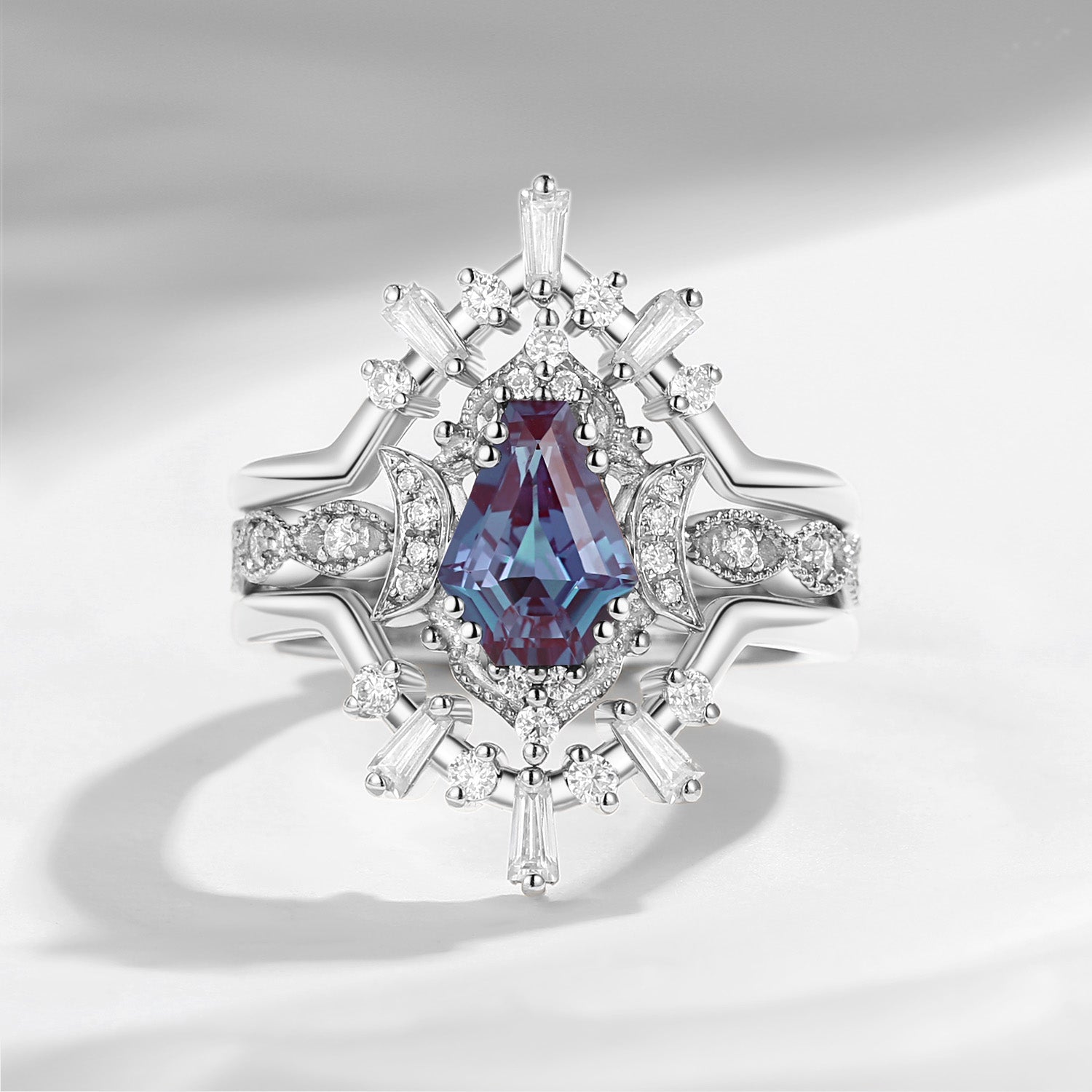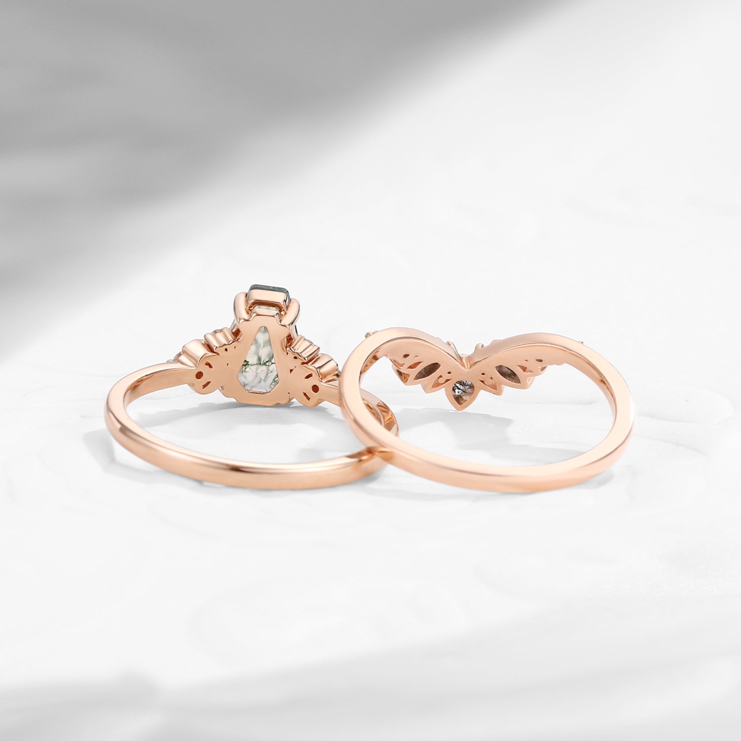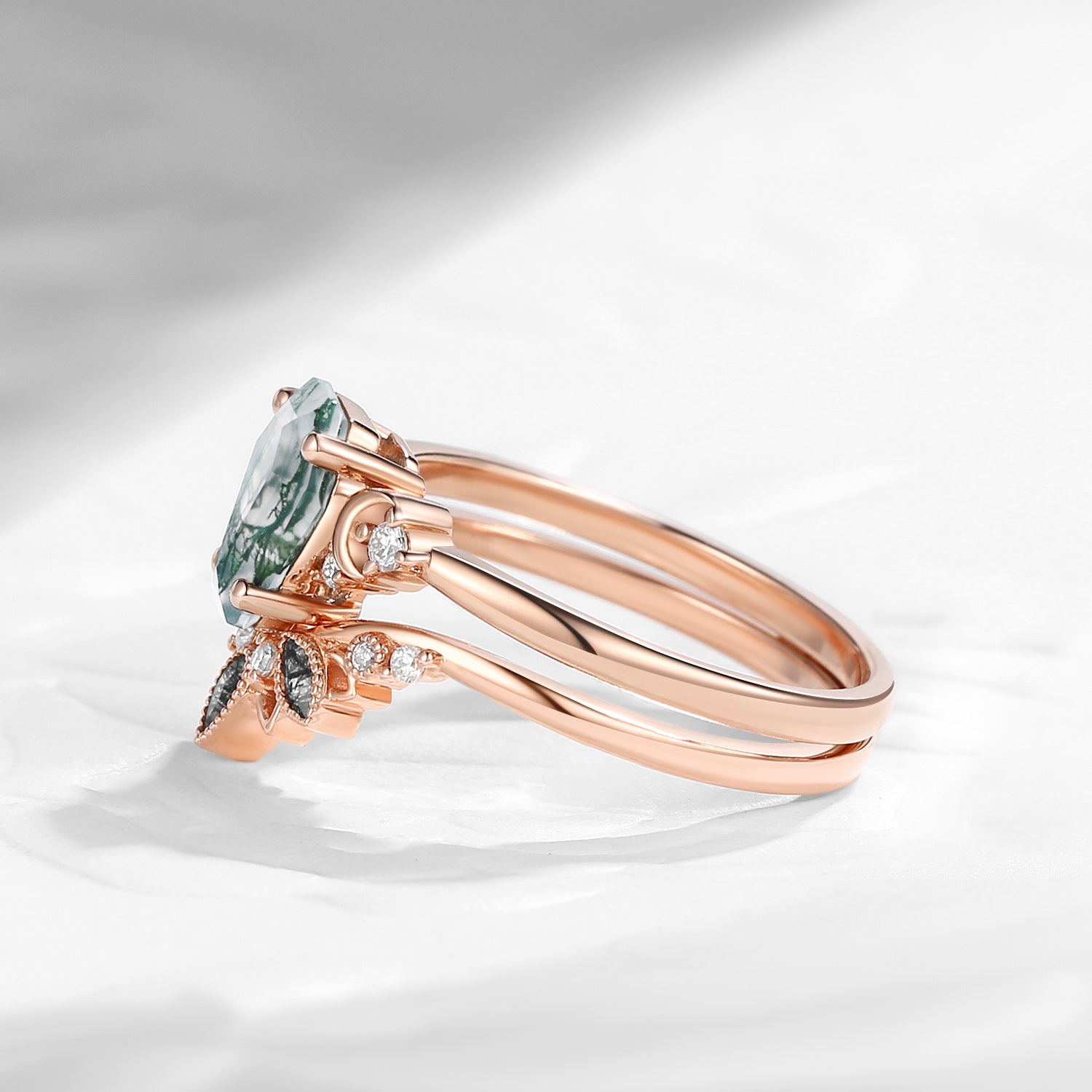 The new moon is often symbolic of new beginnings which this ring personifies for a couple starting their new life together. The crescent on the ring adorned with sparkling diamonds or other gemstones, like stars embellishing below the moon, making the ring both mystically charming and gorgeously radiant. This crescent shape ring is an ideal choice for a proposal or even daily wear, showcasing the wearer's personality in a unique way and serves as a beautiful promise of the future. Crescent moon is our proudest design by far. The crescent moon ring represents a new beginning, a process of starting over and vitality. Each crescent moon engagement ring is as unique as it can get while preserving a wonderful balance between vintage vibes and simplicity. The crescent moon ring can be of different shapes and different stone color even different side stones because here in StarlandUS, every one gets to create their own crescent moon, so as their own beginning.