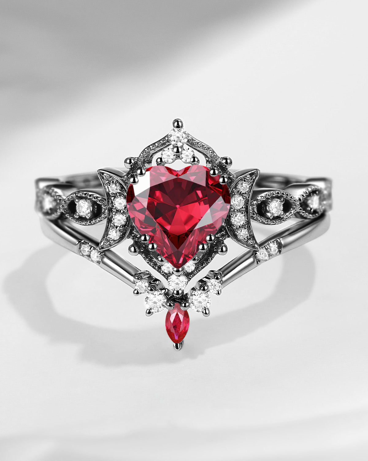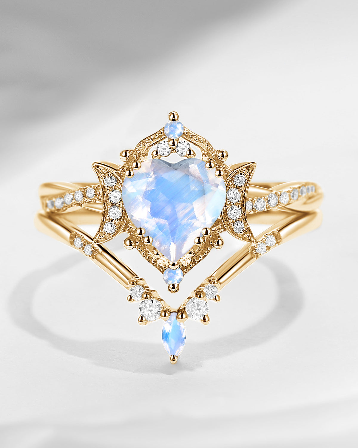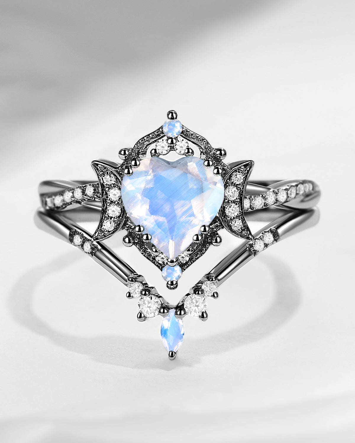 The new moon is often symbolic of new beginnings which this ring personifies for a couple starting their new life together. The crescent on the ring adorned with sparkling diamonds or other gemstones, like stars embellishing below the moon, making the ring both mystically charming and gorgeously radiant. This crescent shape ring is an ideal choice for a proposal or even daily wear, showcasing the wearer's personality in a unique way and serves as a beautiful promise of the future. Crescent moon is our proudest design by far. The crescent moon ring represents a new beginning, a process of starting over and vitality. Each crescent moon engagement ring is as unique as it can get while preserving a wonderful balance between vintage vibes and simplicity. The crescent moon ring can be of different shapes and different stone color even different side stones because here in StarlandUS, every one gets to create their own crescent moon, so as their own beginning.