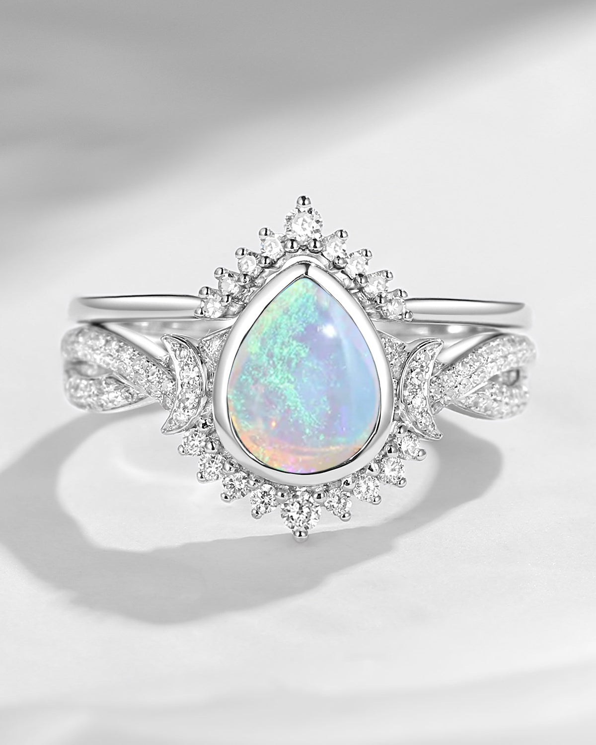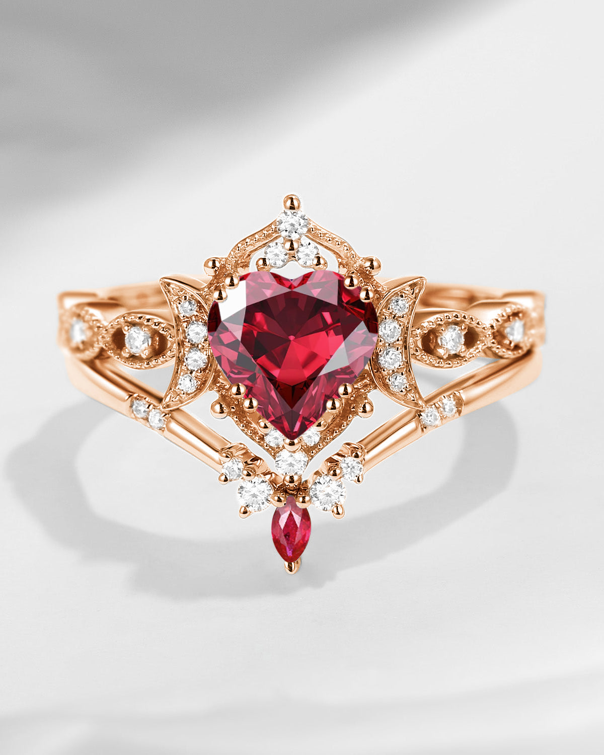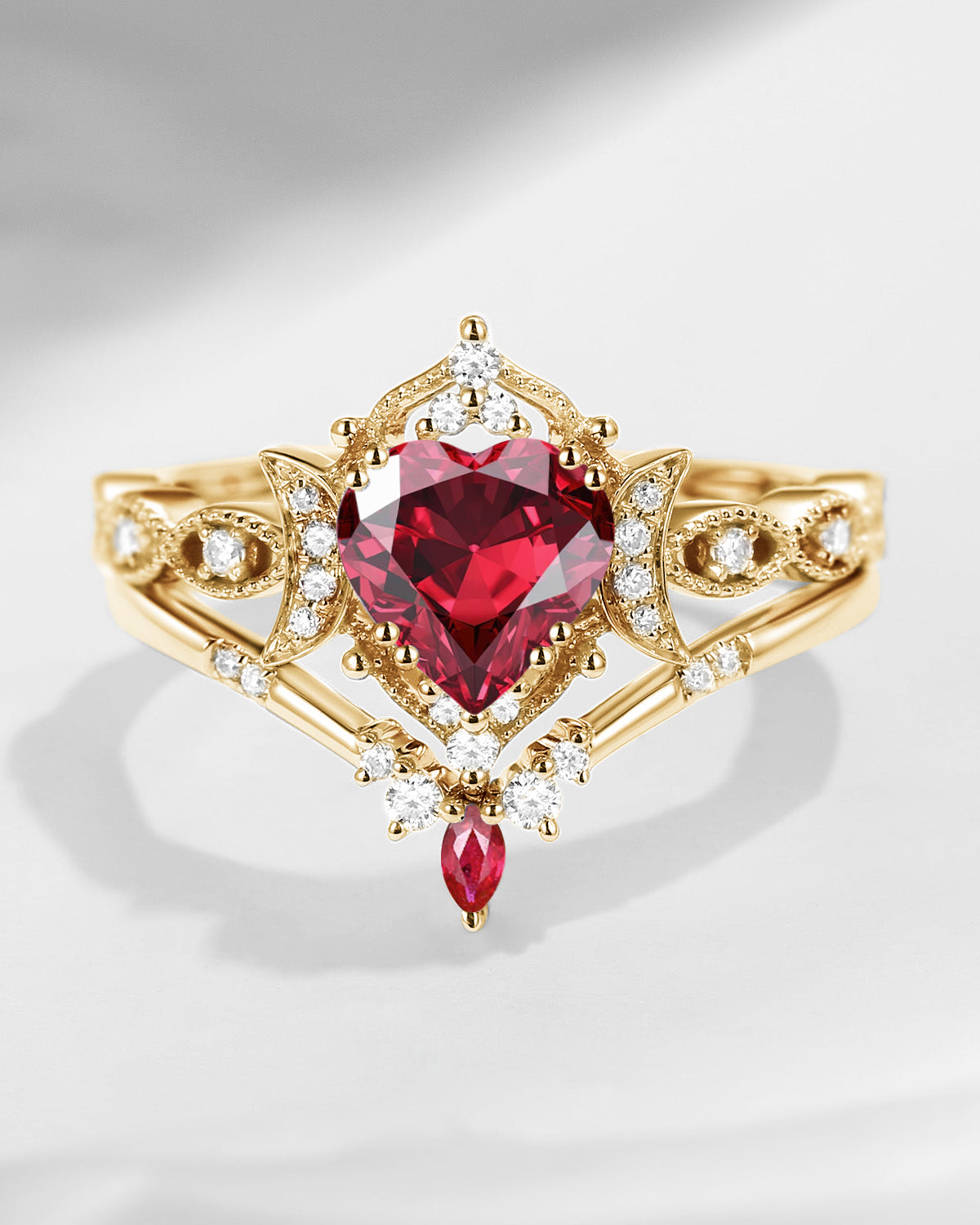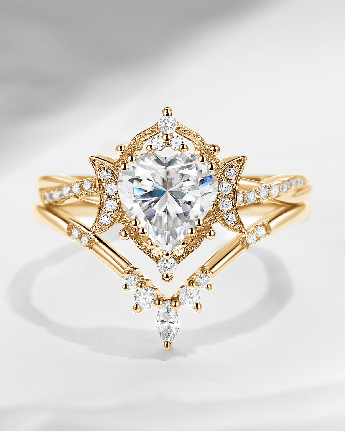 The new moon is often symbolic of new beginnings which this ring personifies for a couple starting their new life together. The crescent on the ring adorned with sparkling diamonds or other gemstones, like stars embellishing below the moon, making the ring both mystically charming and gorgeously radiant. This crescent shape ring is an ideal choice for a proposal or even daily wear, showcasing the wearer's personality in a unique way and serves as a beautiful promise of the future. Crescent moon is our proudest design by far. The crescent moon ring represents a new beginning, a process of starting over and vitality. Each crescent moon engagement ring is as unique as it can get while preserving a wonderful balance between vintage vibes and simplicity. The crescent moon ring can be of different shapes and different stone color even different side stones because here in StarlandUS, every one gets to create their own crescent moon, so as their own beginning.