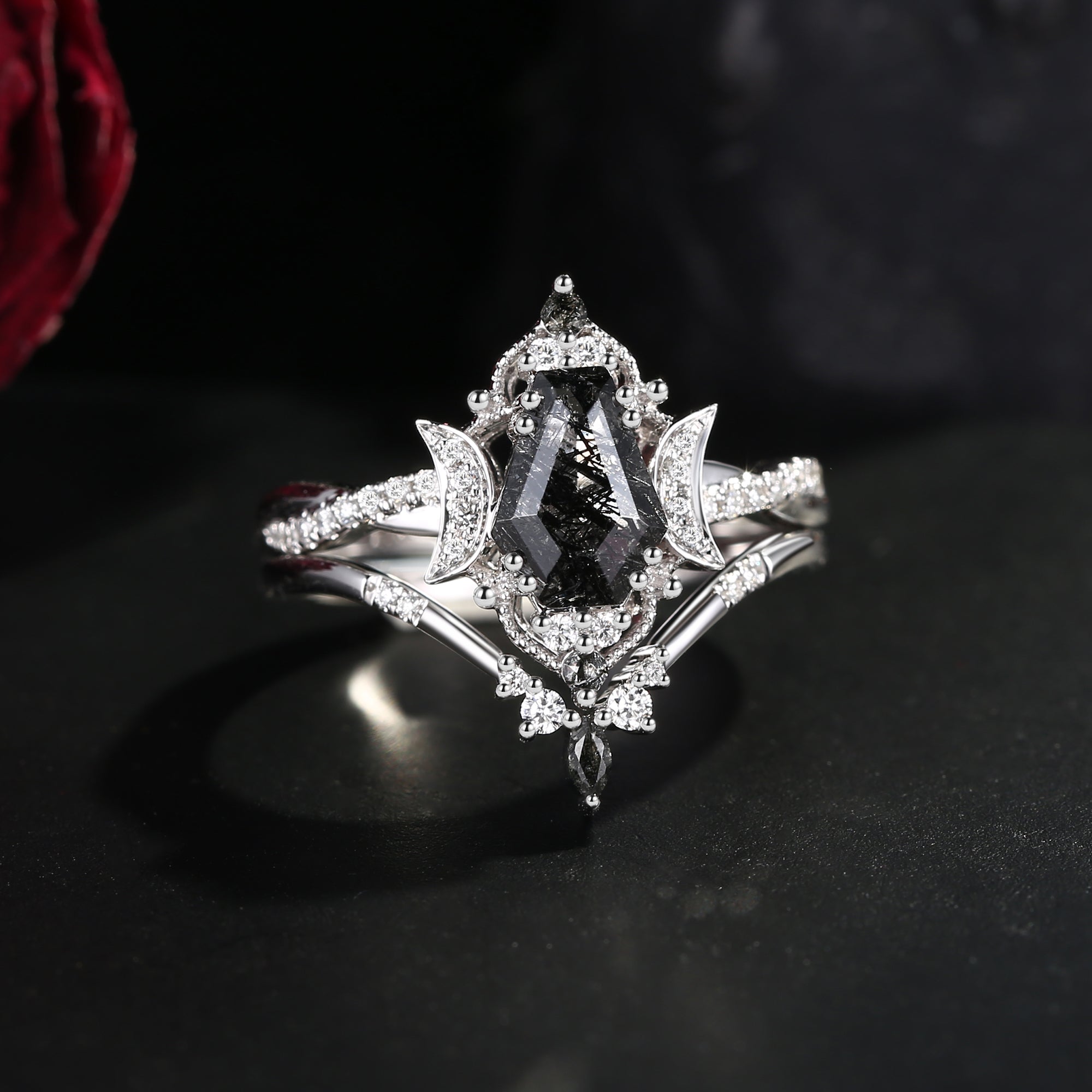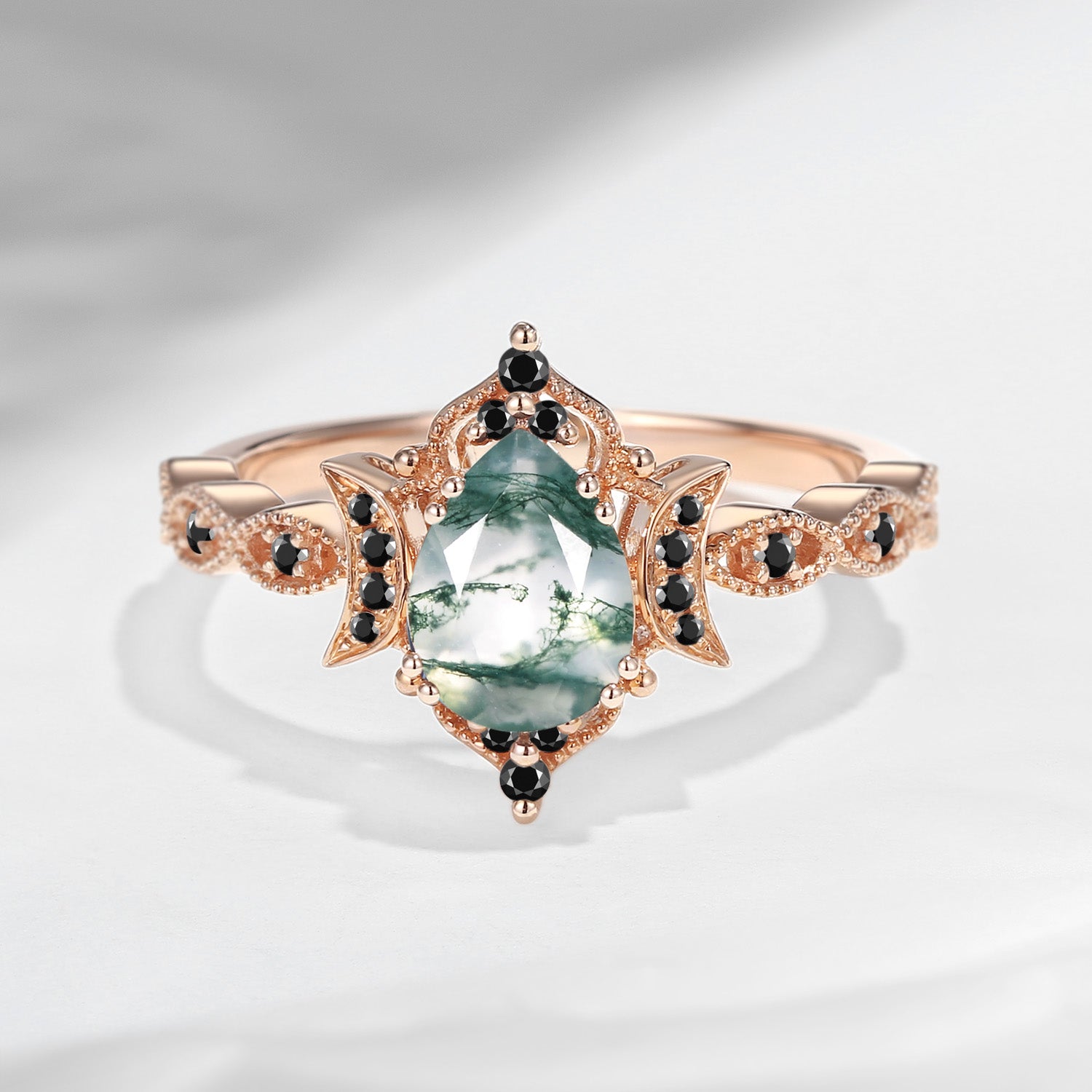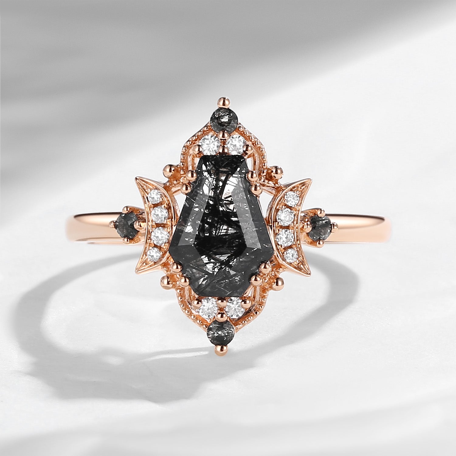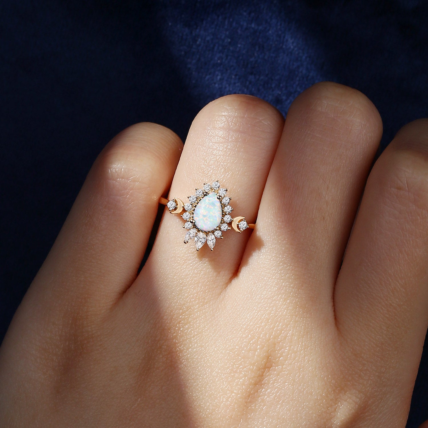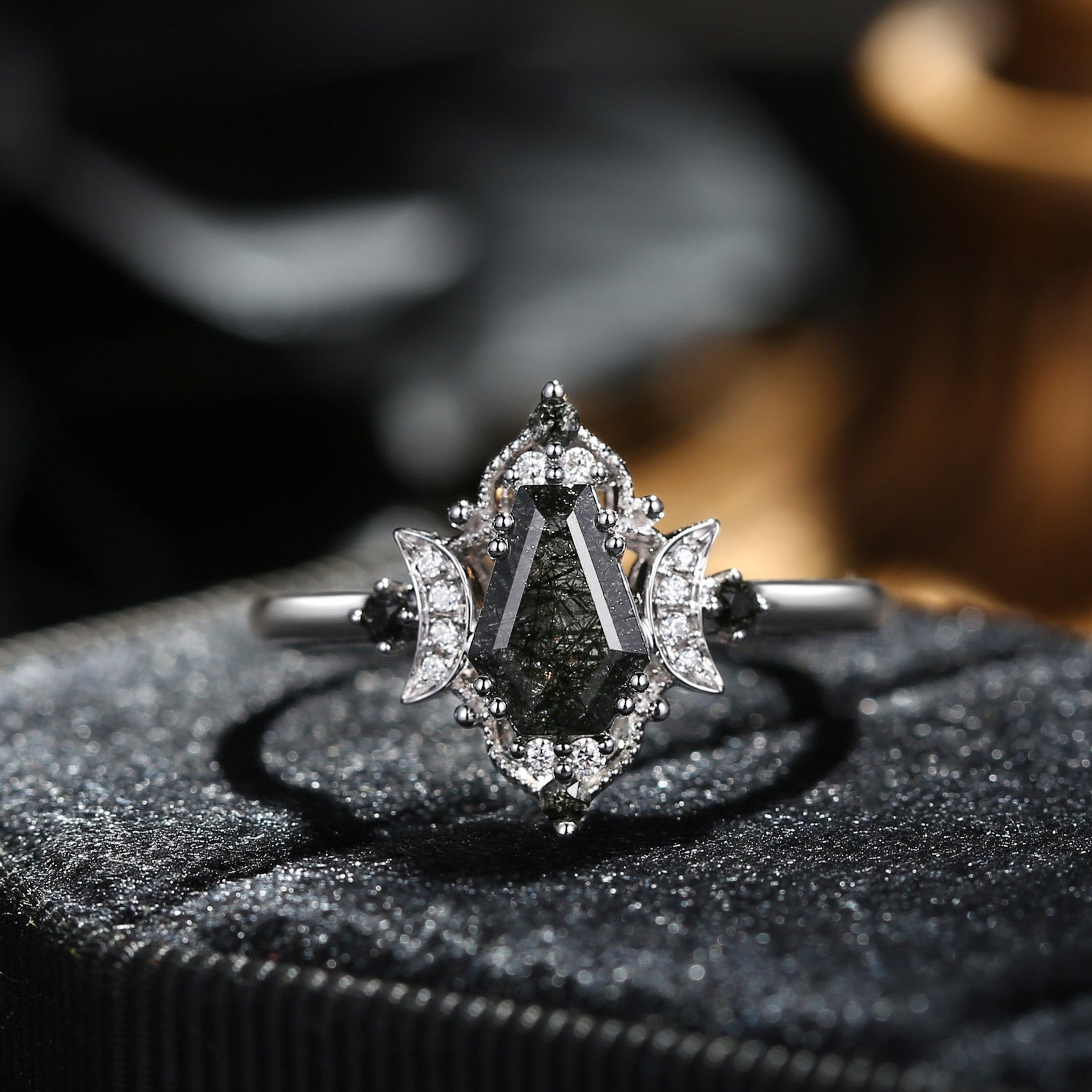 The new moon is often symbolic of new beginnings which this ring personifies for a couple starting their new life together. The crescent on the ring adorned with sparkling diamonds or other gemstones, like stars embellishing below the moon, making the ring both mystically charming and gorgeously radiant. This crescent shape ring is an ideal choice for a proposal or even daily wear, showcasing the wearer's personality in a unique way and serves as a beautiful promise of the future. Crescent moon is our proudest design by far. The crescent moon ring represents a new beginning, a process of starting over and vitality. Each crescent moon engagement ring is as unique as it can get while preserving a wonderful balance between vintage vibes and simplicity. The crescent moon ring can be of different shapes and different stone color even different side stones because here in StarlandUS, every one gets to create their own crescent moon, so as their own beginning.