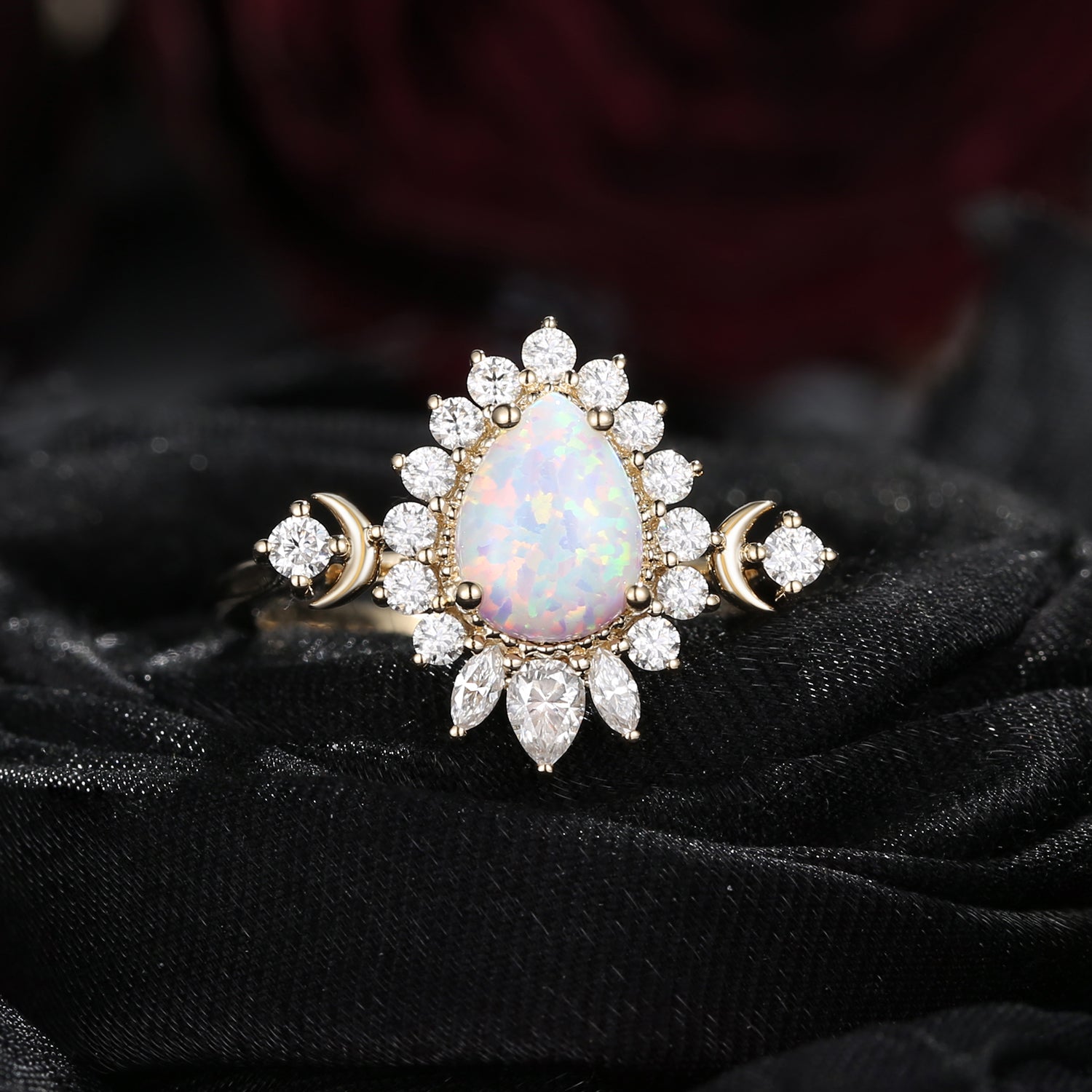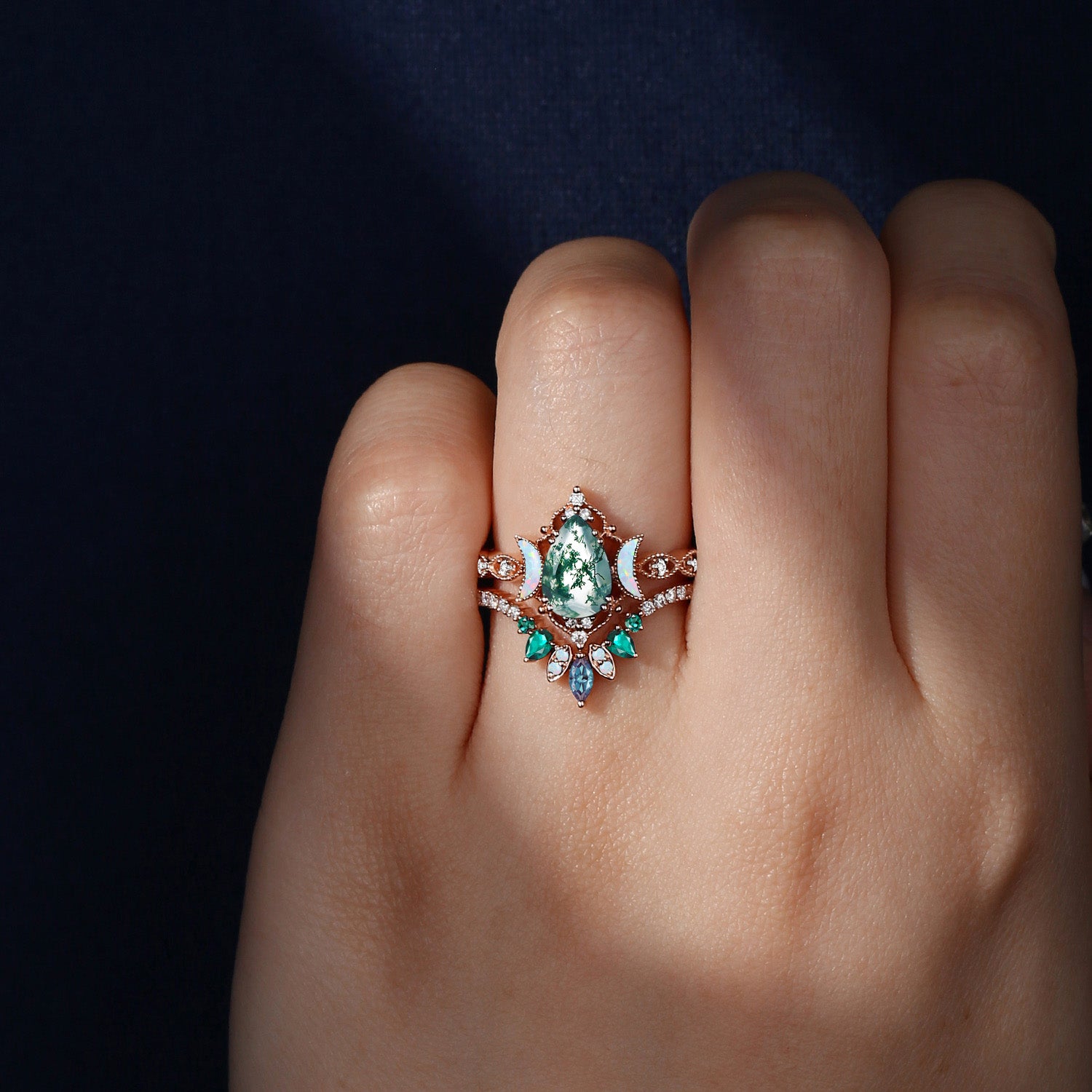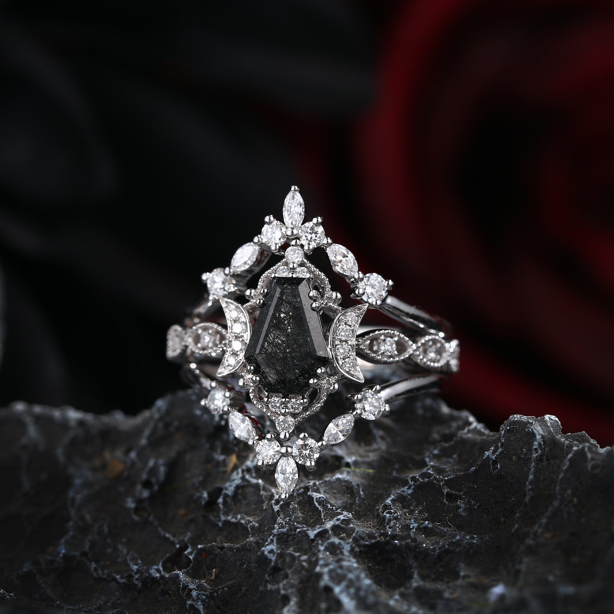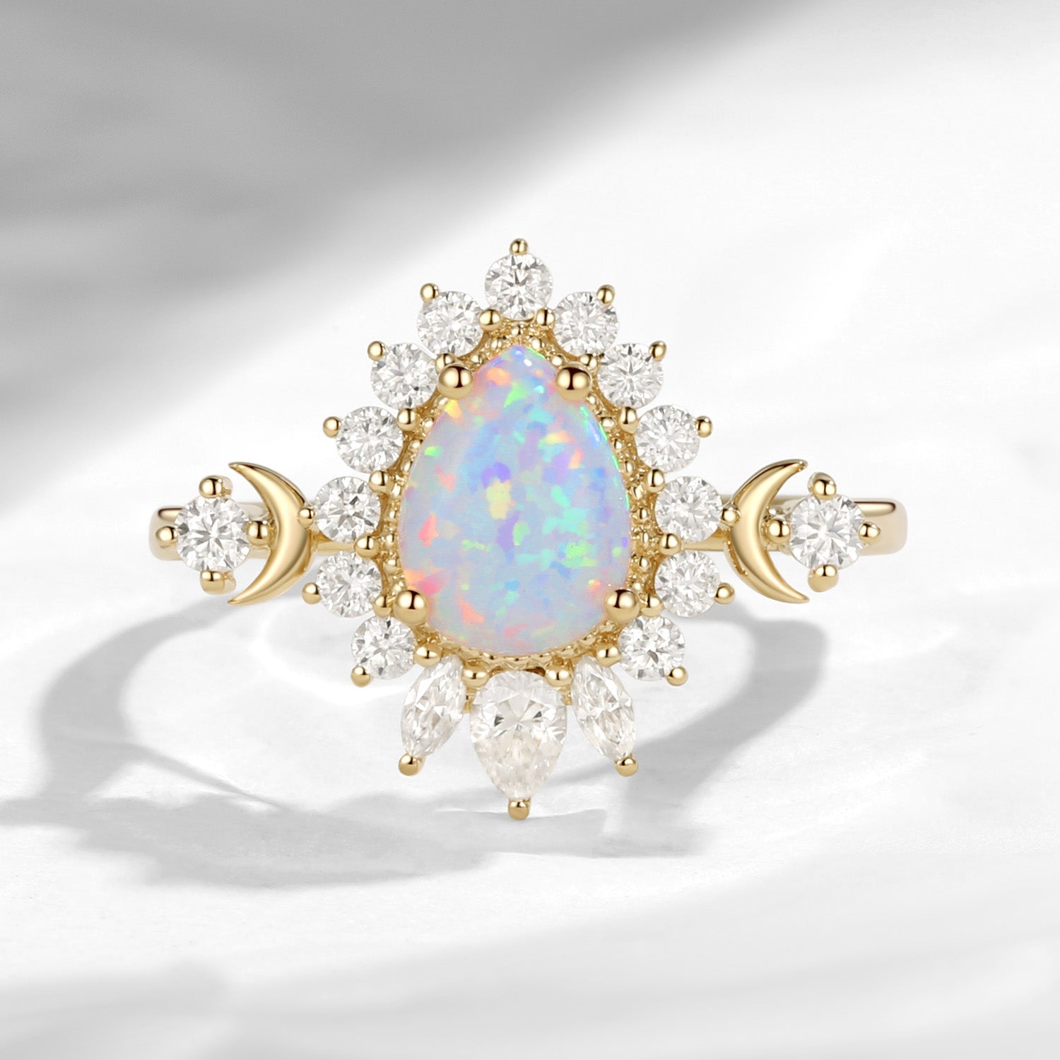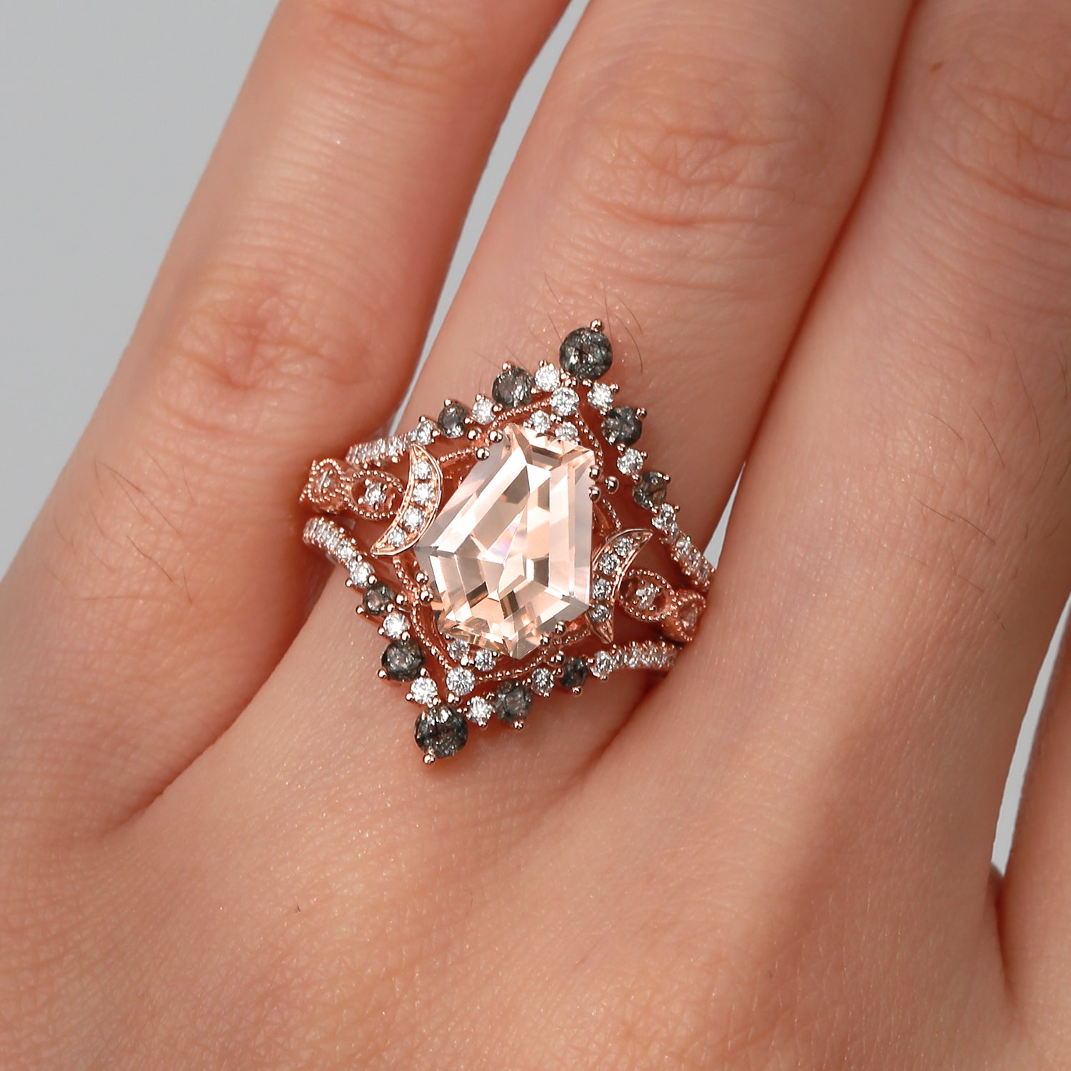 The new moon is often symbolic of new beginnings which this ring personifies for a couple starting their new life together. The crescent on the ring adorned with sparkling diamonds or other gemstones, like stars embellishing below the moon, making the ring both mystically charming and gorgeously radiant. This crescent shape ring is an ideal choice for a proposal or even daily wear, showcasing the wearer's personality in a unique way and serves as a beautiful promise of the future. Crescent moon is our proudest design by far. The crescent moon ring represents a new beginning, a process of starting over and vitality. Each crescent moon engagement ring is as unique as it can get while preserving a wonderful balance between vintage vibes and simplicity. The crescent moon ring can be of different shapes and different stone color even different side stones because here in StarlandUS, every one gets to create their own crescent moon, so as their own beginning.
