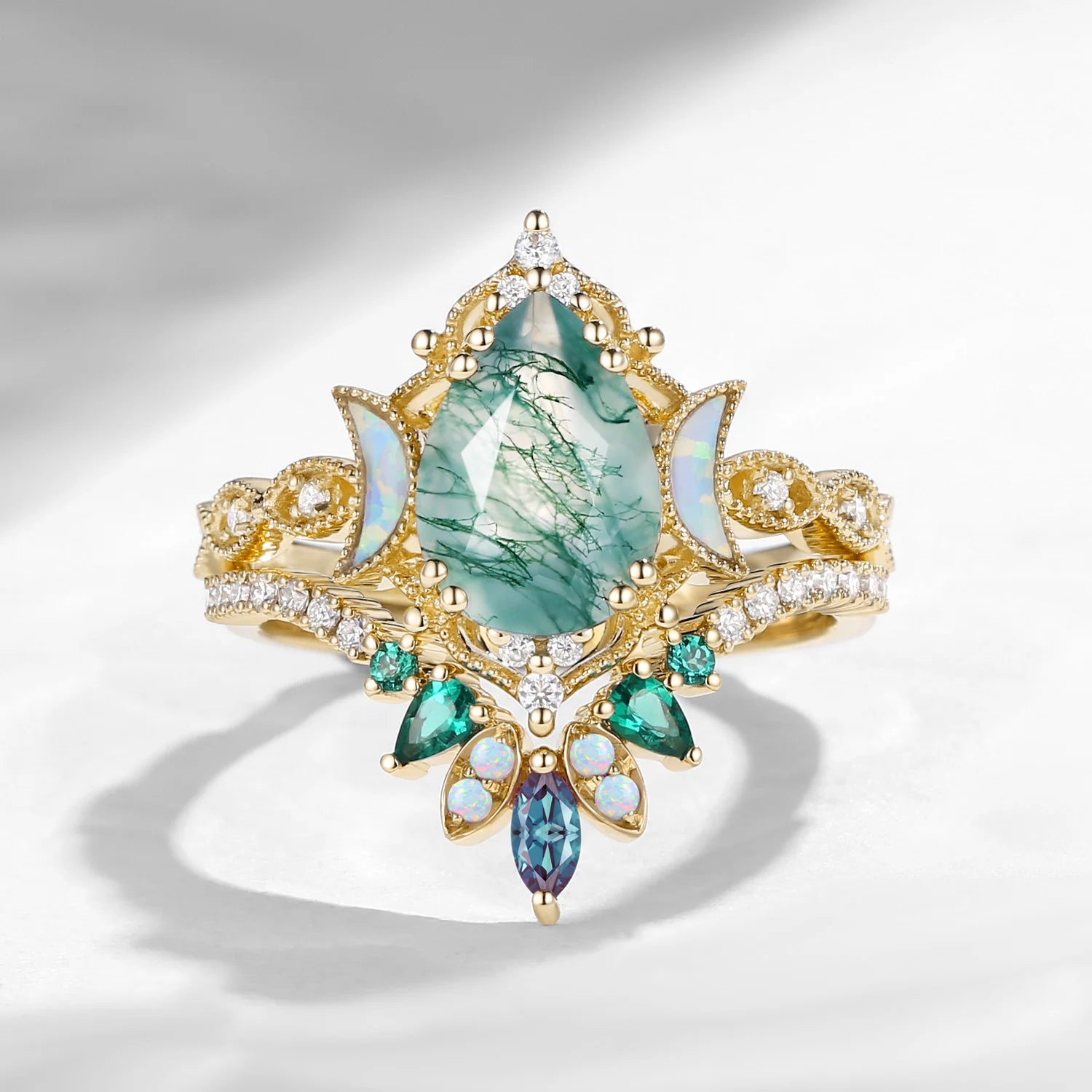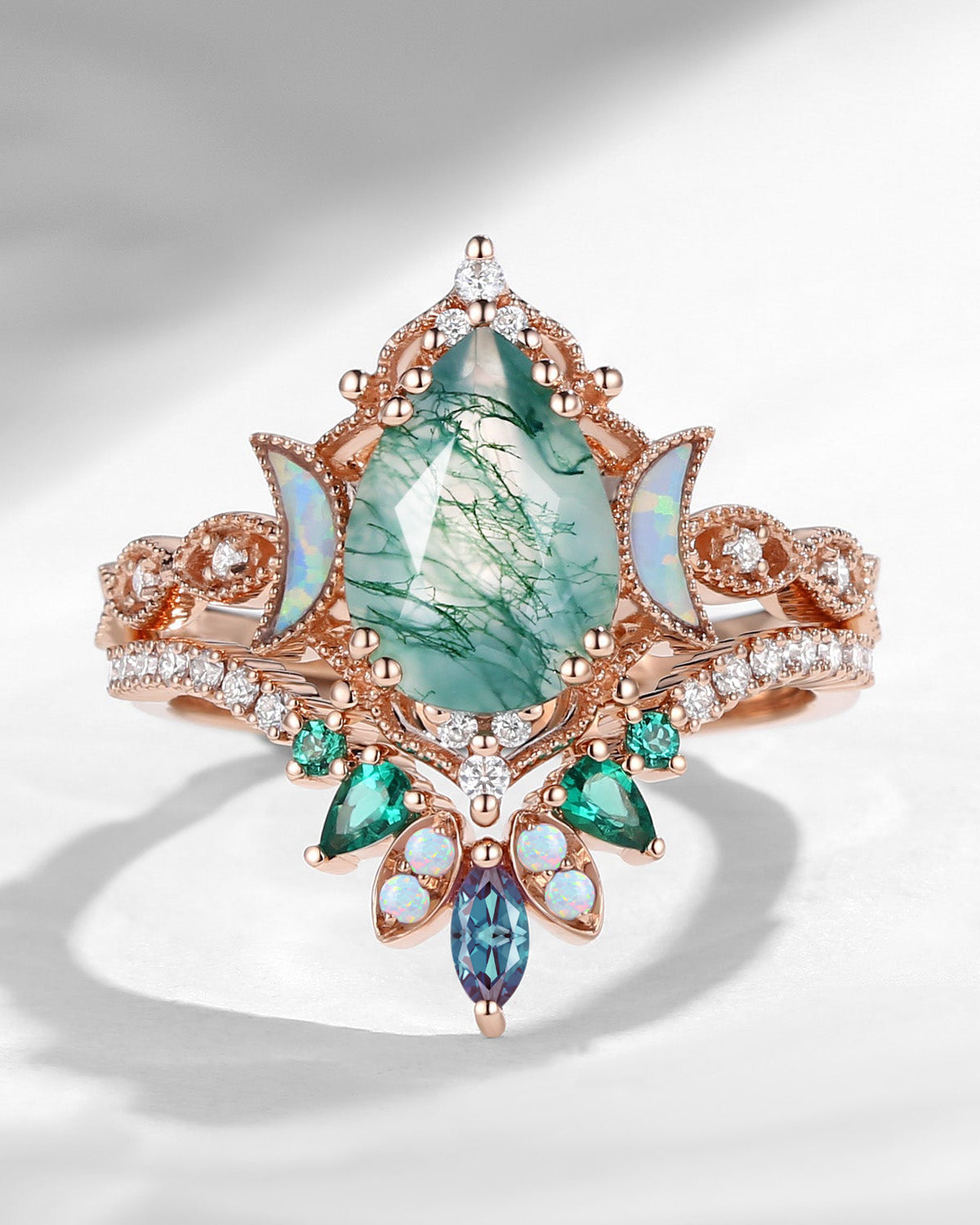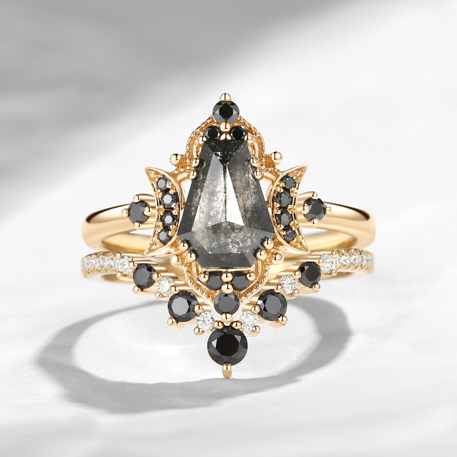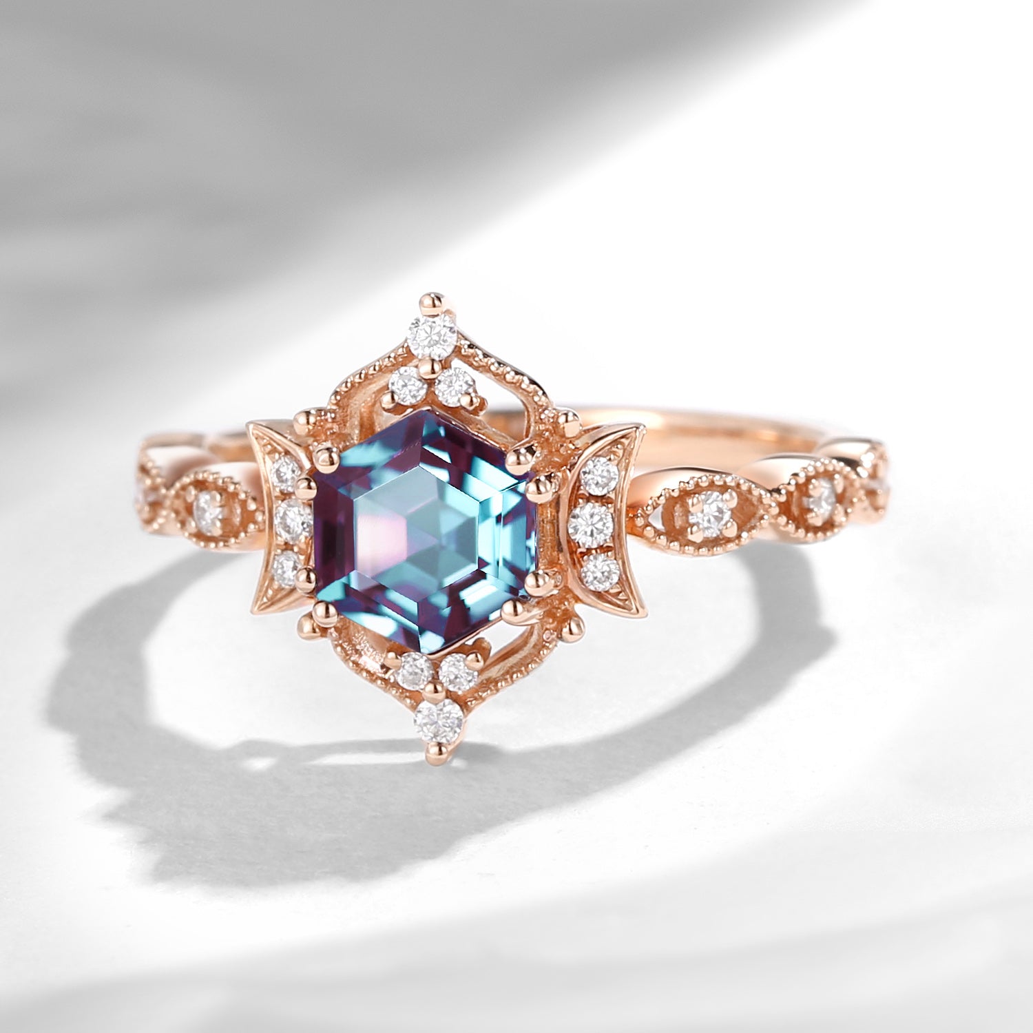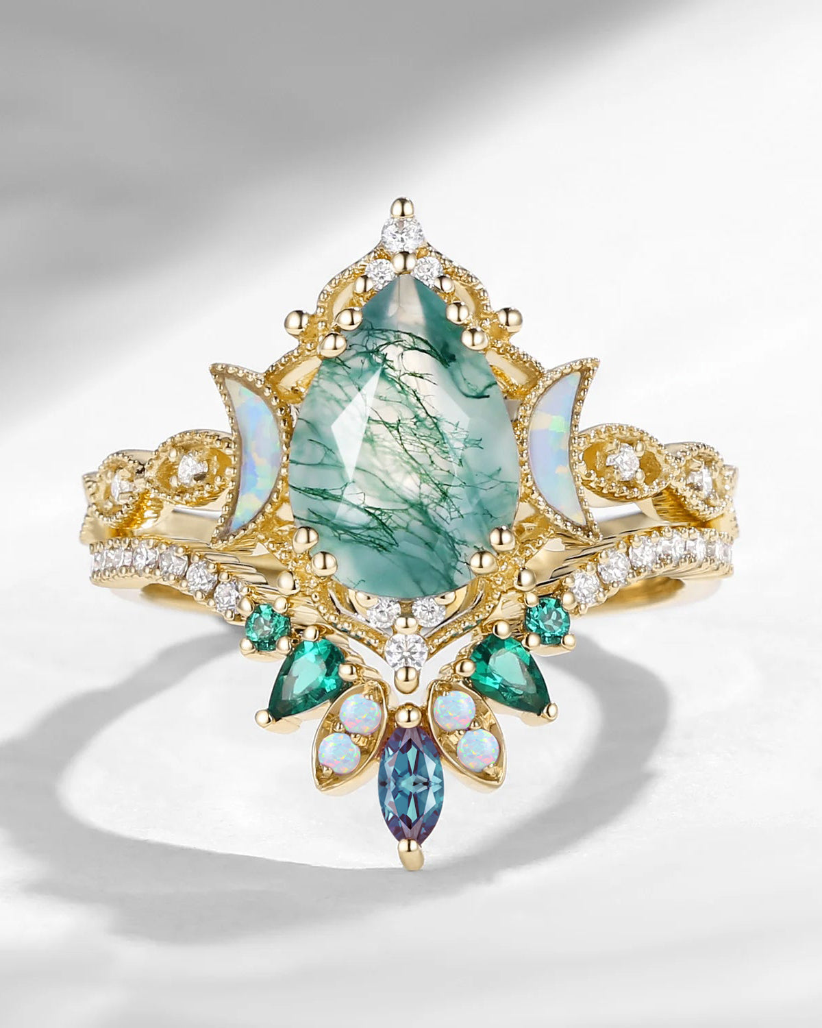 The new moon is often symbolic of new beginnings which this ring personifies for a couple starting their new life together. The crescent on the ring adorned with sparkling diamonds or other gemstones, like stars embellishing below the moon, making the ring both mystically charming and gorgeously radiant. This crescent shape ring is an ideal choice for a proposal or even daily wear, showcasing the wearer's personality in a unique way and serves as a beautiful promise of the future. Crescent moon is our proudest design by far. The crescent moon ring represents a new beginning, a process of starting over and vitality. Each crescent moon engagement ring is as unique as it can get while preserving a wonderful balance between vintage vibes and simplicity. The crescent moon ring can be of different shapes and different stone color even different side stones because here in StarlandUS, every one gets to create their own crescent moon, so as their own beginning.