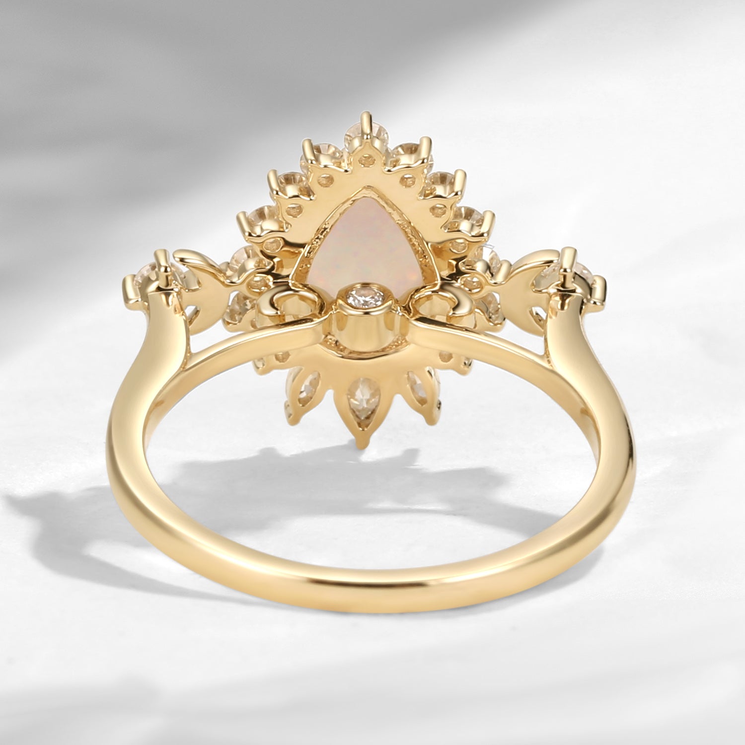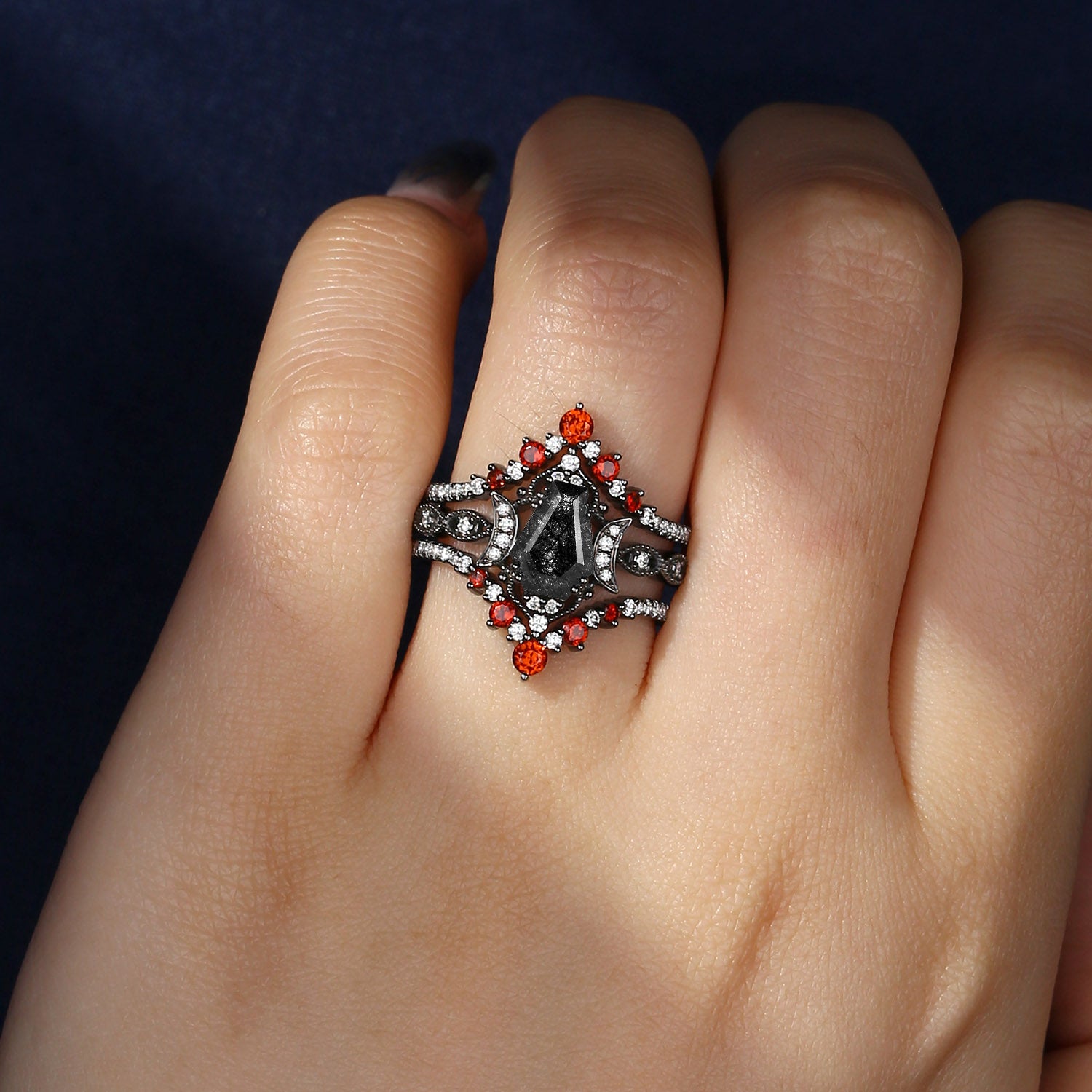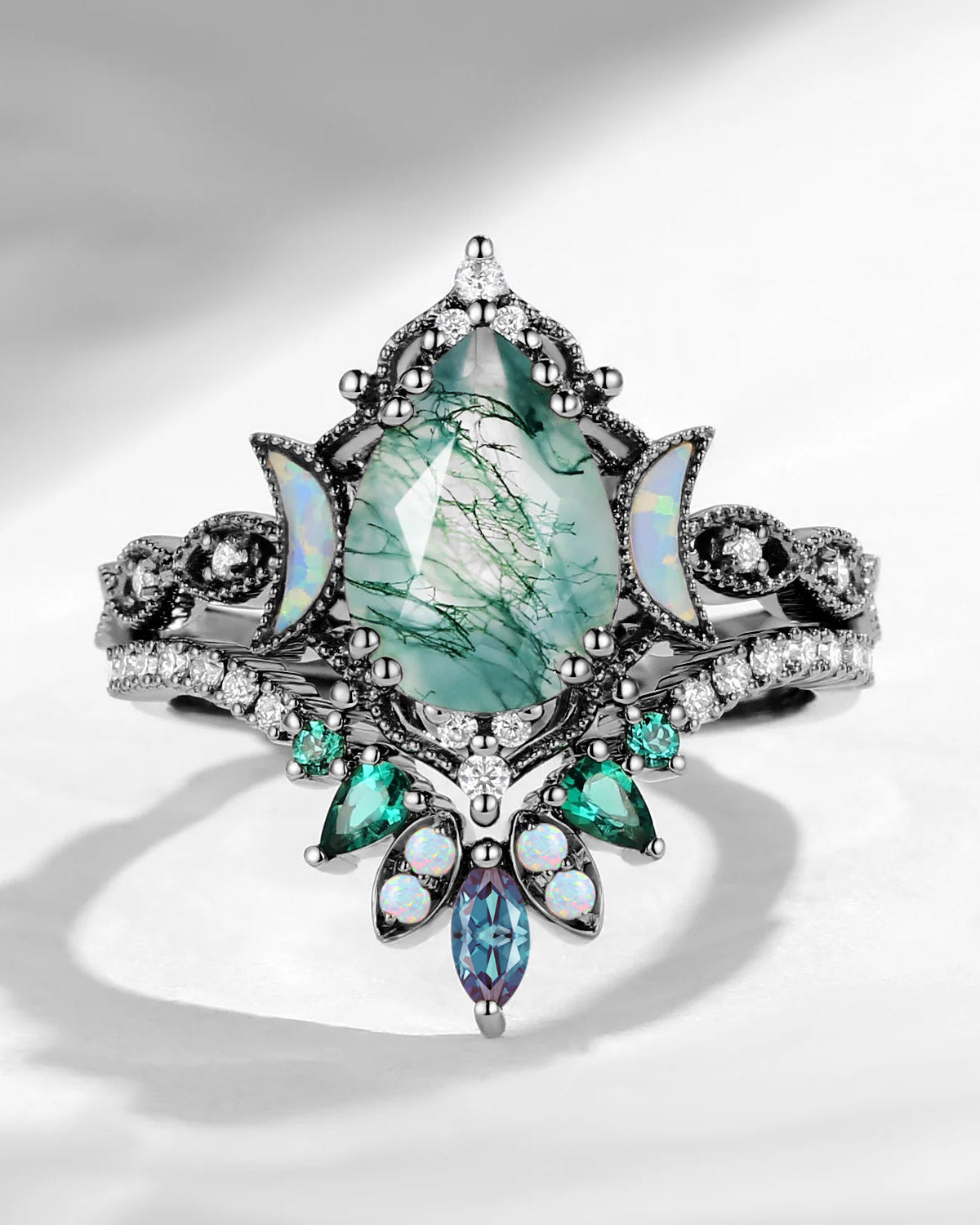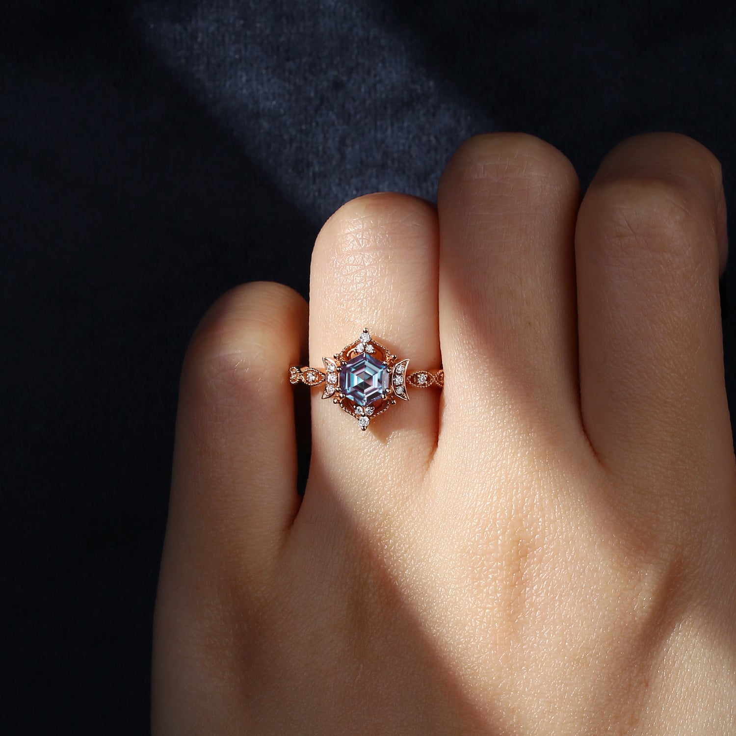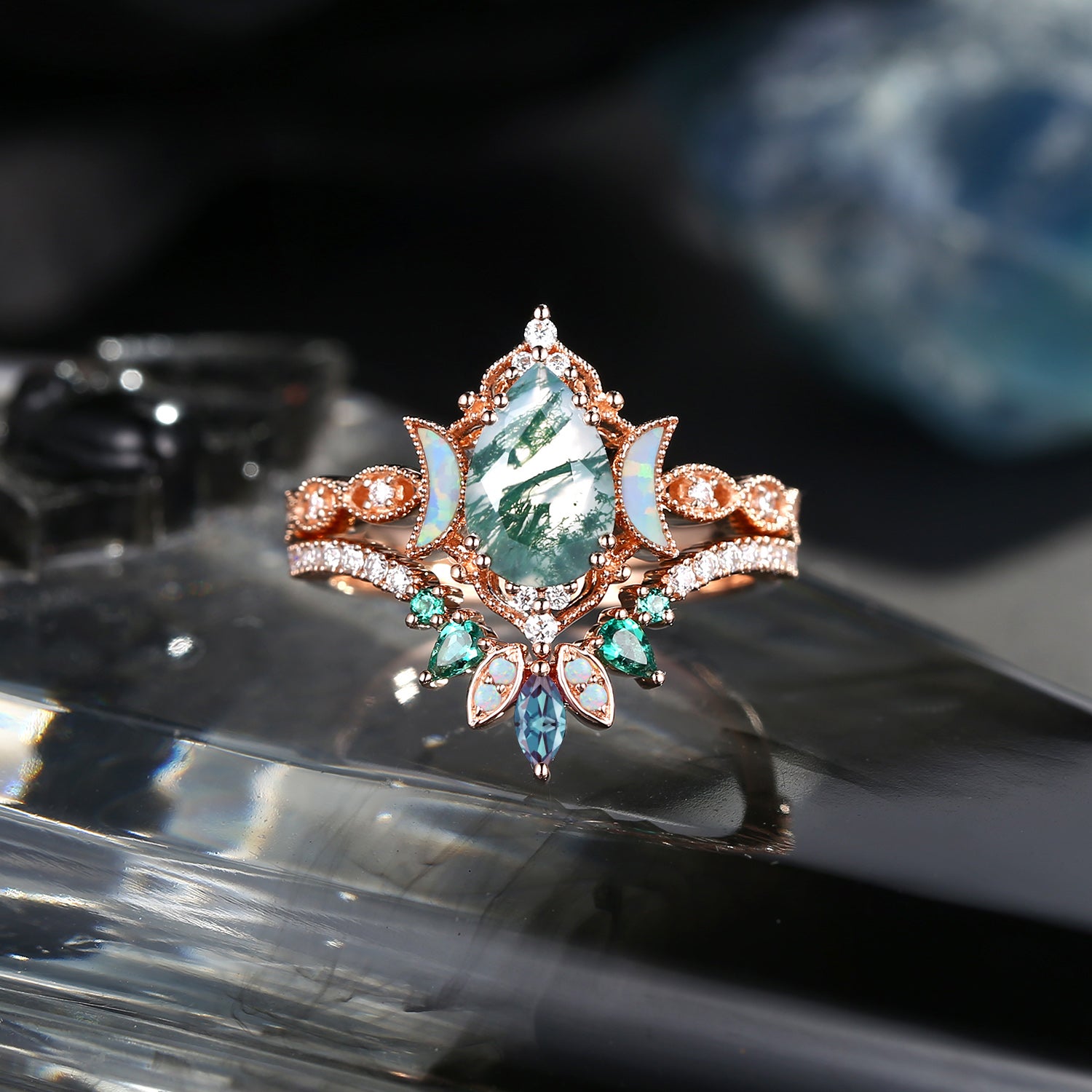 The new moon is often symbolic of new beginnings which this ring personifies for a couple starting their new life together. The crescent on the ring adorned with sparkling diamonds or other gemstones, like stars embellishing below the moon, making the ring both mystically charming and gorgeously radiant. This crescent shape ring is an ideal choice for a proposal or even daily wear, showcasing the wearer's personality in a unique way and serves as a beautiful promise of the future. Crescent moon is our proudest design by far. The crescent moon ring represents a new beginning, a process of starting over and vitality. Each crescent moon engagement ring is as unique as it can get while preserving a wonderful balance between vintage vibes and simplicity. The crescent moon ring can be of different shapes and different stone color even different side stones because here in StarlandUS, every one gets to create their own crescent moon, so as their own beginning.