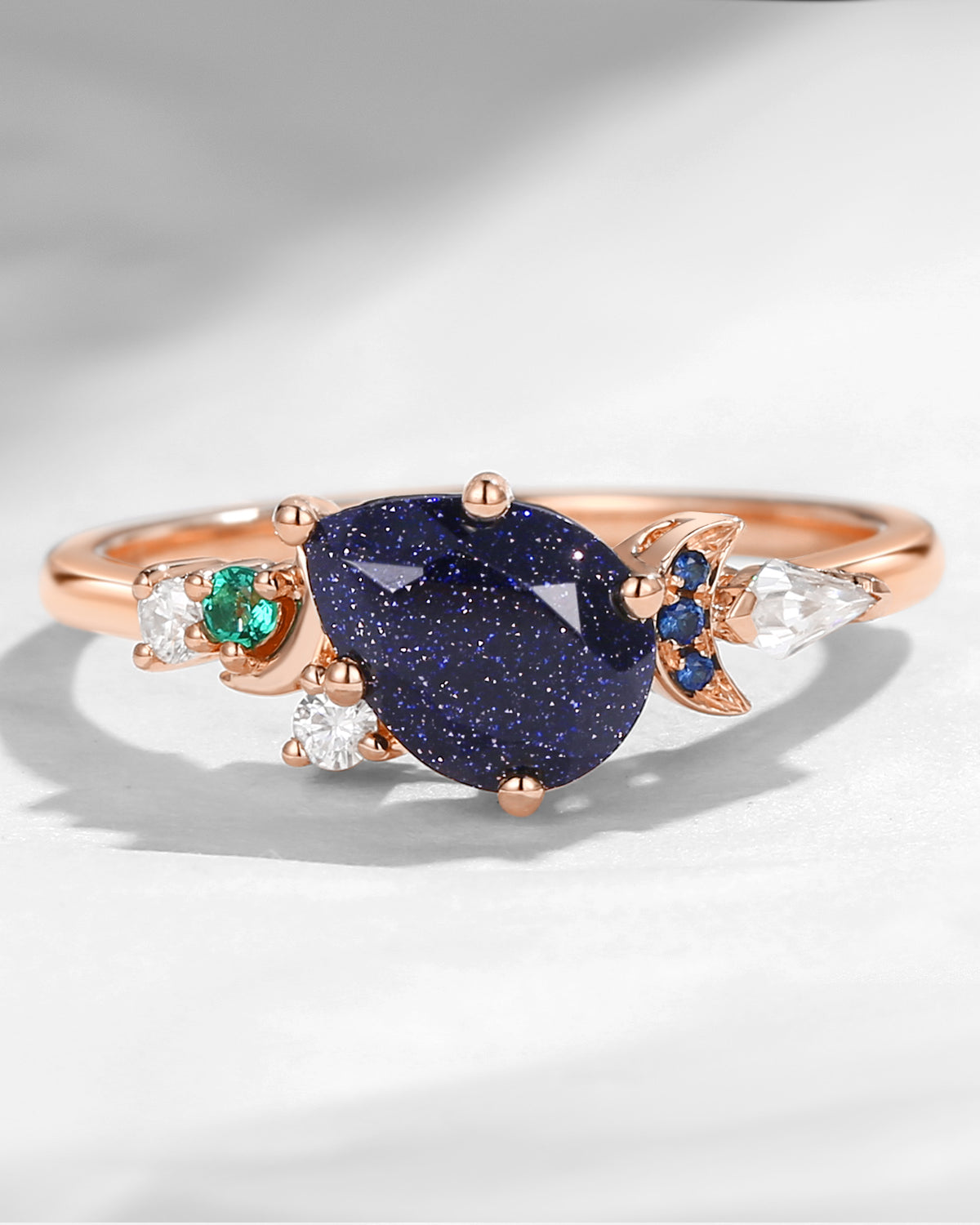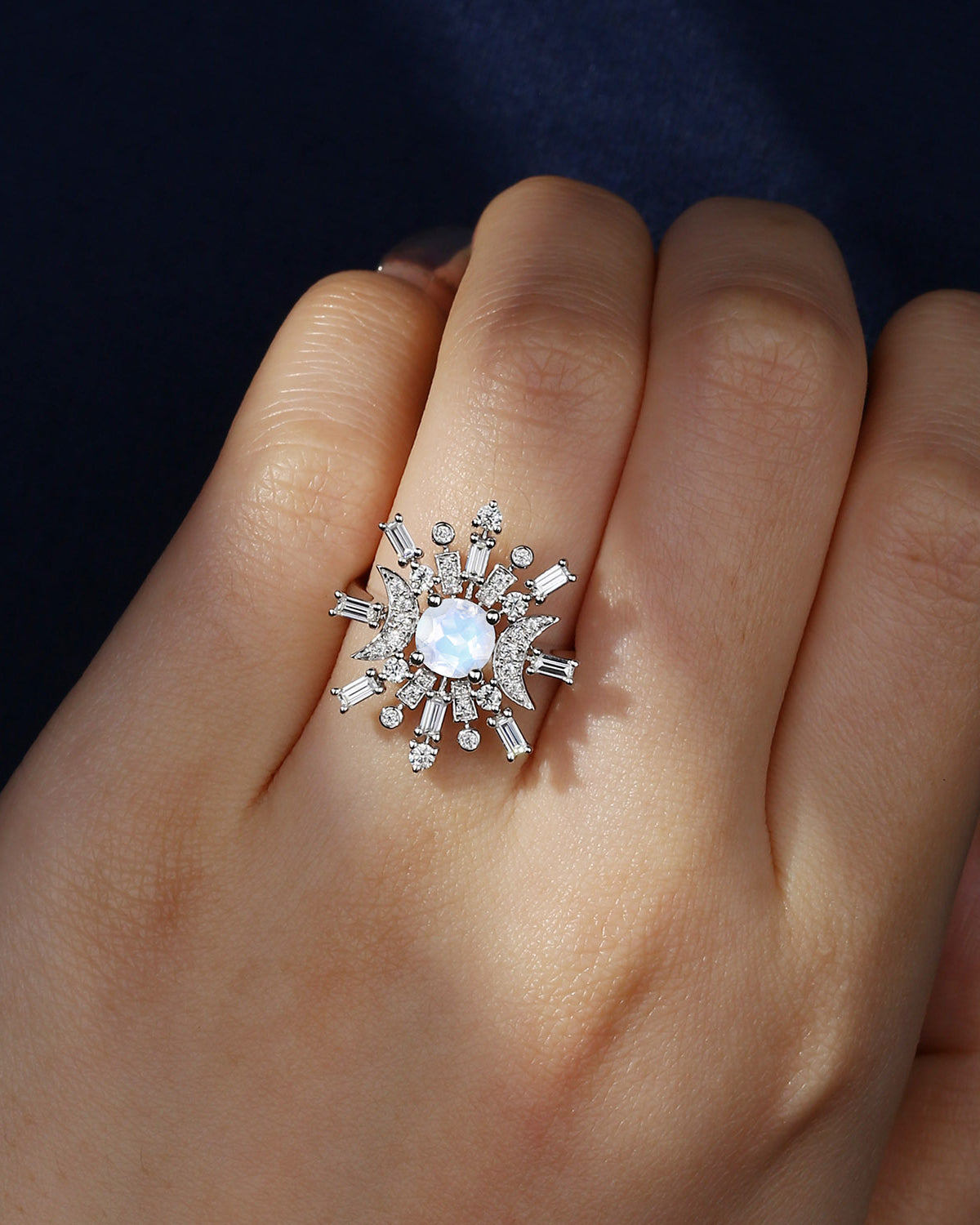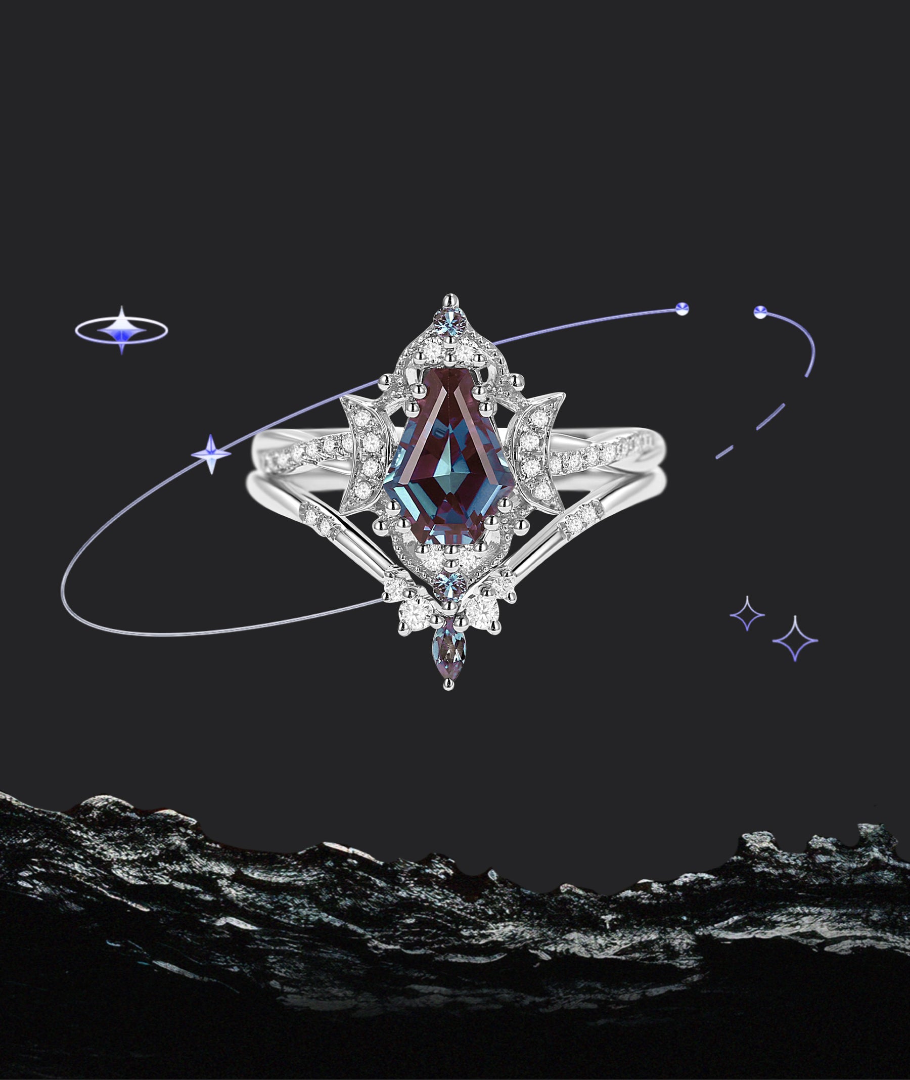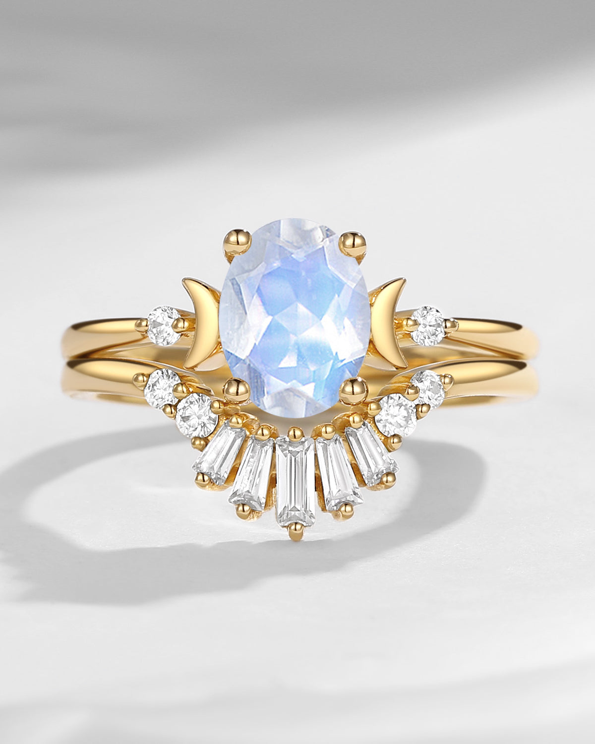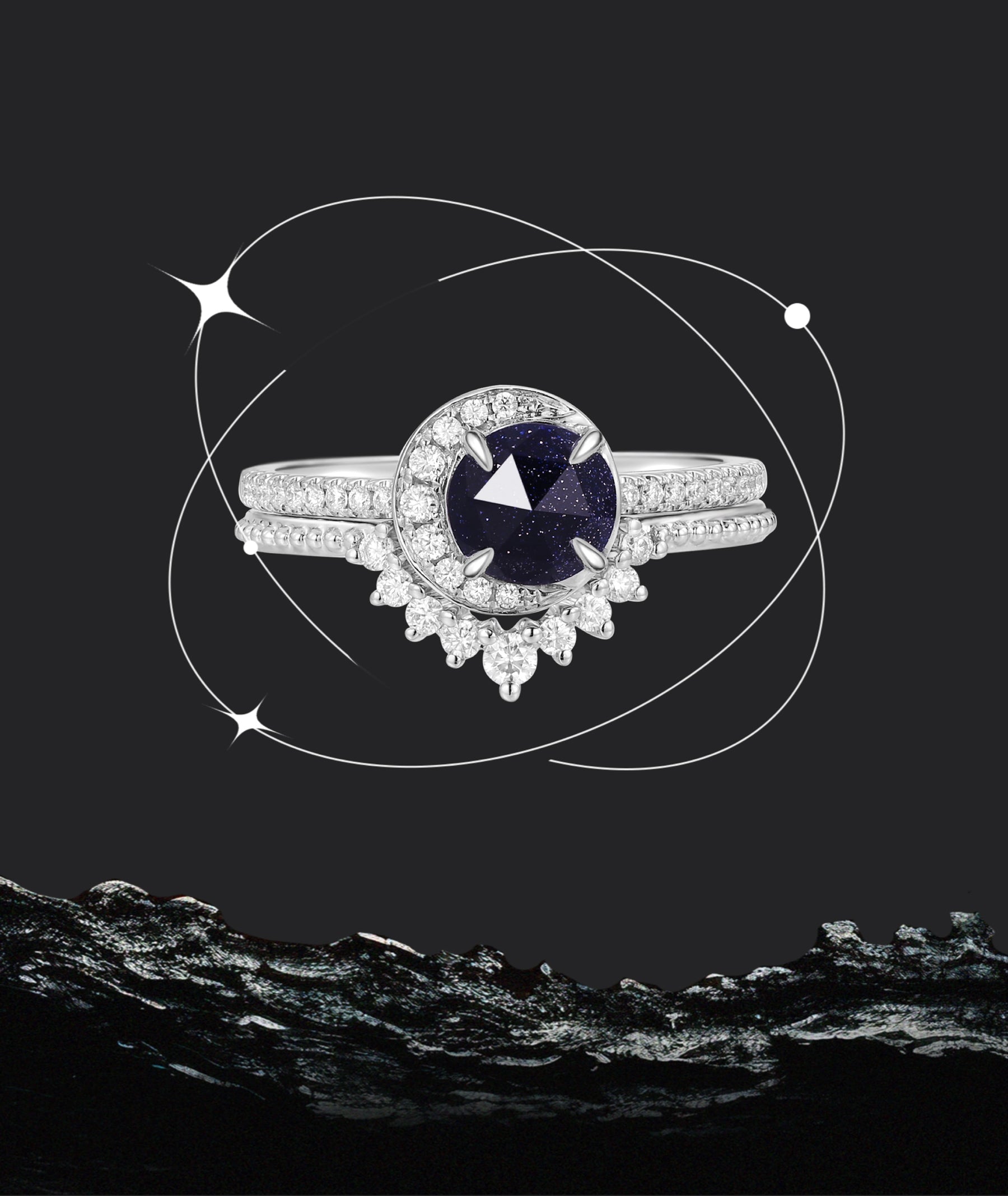 The new moon is often symbolic of new beginnings which this ring personifies for a couple starting their new life together. The crescent on the ring adorned with sparkling diamonds or other gemstones, like stars embellishing below the moon, making the ring both mystically charming and gorgeously radiant. This crescent shape ring is an ideal choice for a proposal or even daily wear, showcasing the wearer's personality in a unique way and serves as a beautiful promise of the future. Crescent moon is our proudest design by far. The crescent moon ring represents a new beginning, a process of starting over and vitality. Each crescent moon engagement ring is as unique as it can get while preserving a wonderful balance between vintage vibes and simplicity. The crescent moon ring can be of different shapes and different stone color even different side stones because here in StarlandUS, every one gets to create their own crescent moon, so as their own beginning.