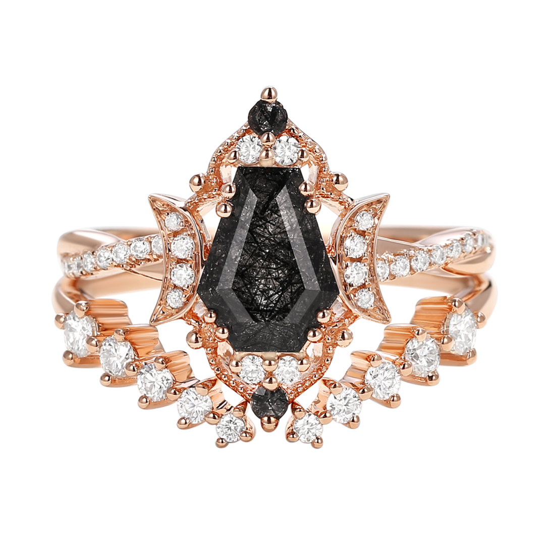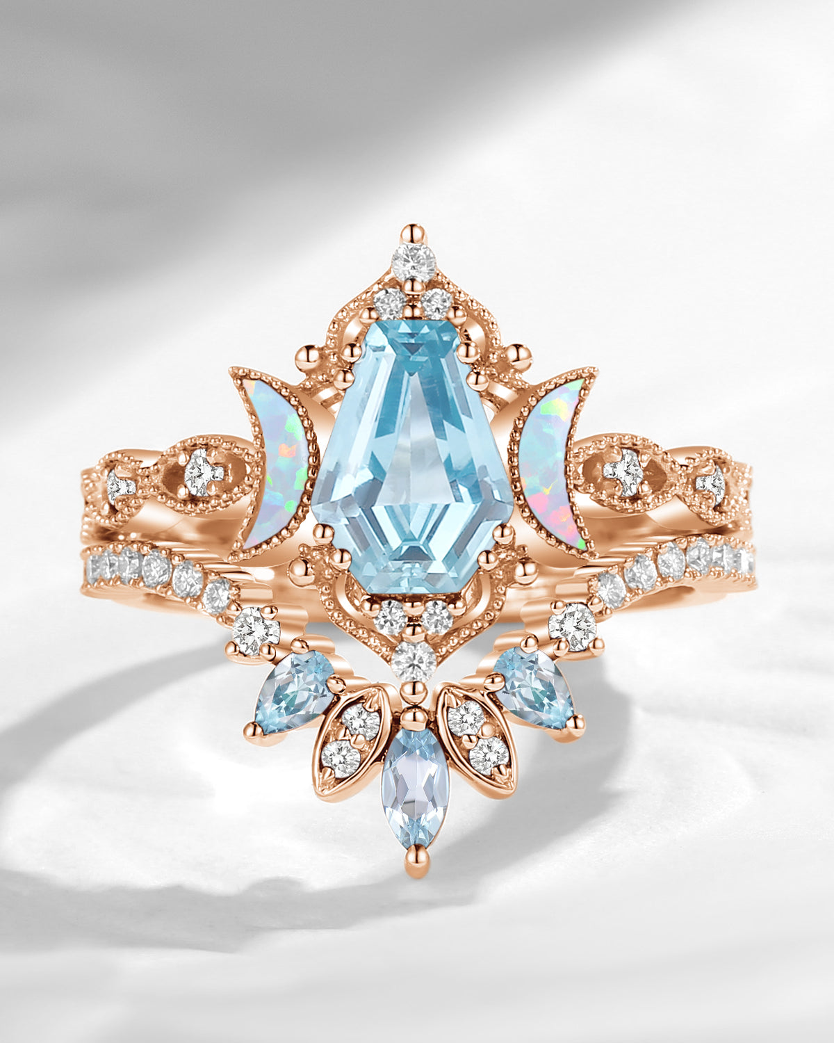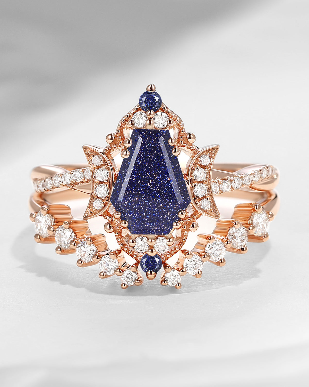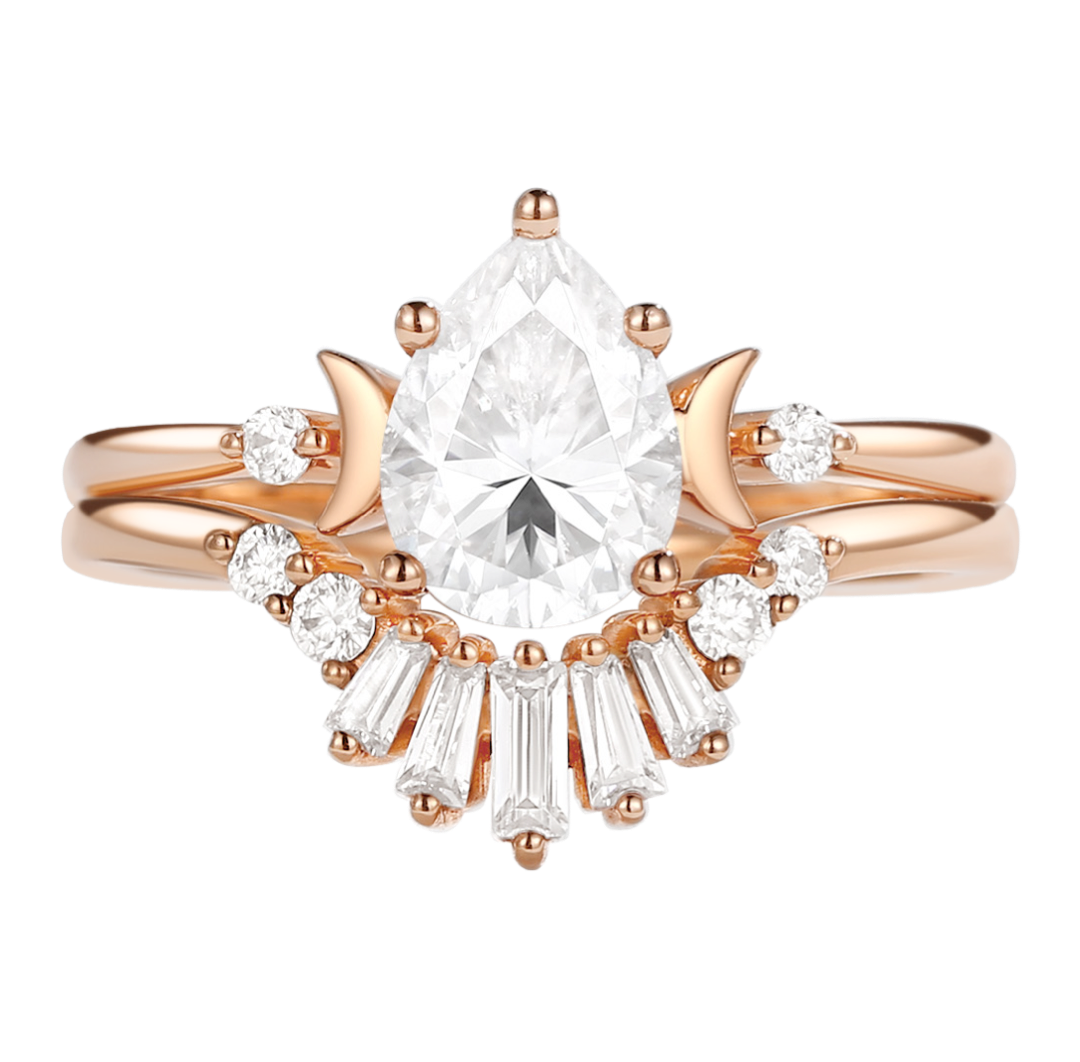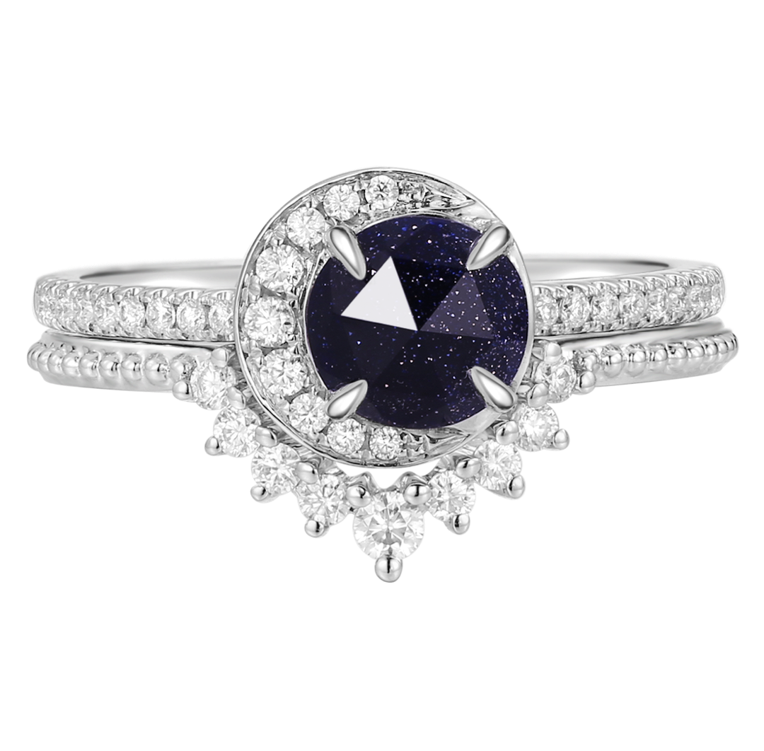 The new moon is often symbolic of new beginnings which this ring personifies for a couple starting their new life together. The crescent on the ring adorned with sparkling diamonds or other gemstones, like stars embellishing below the moon, making the ring both mystically charming and gorgeously radiant. This crescent shape ring is an ideal choice for a proposal or even daily wear, showcasing the wearer's personality in a unique way and serves as a beautiful promise of the future. Crescent moon is our proudest design by far. The crescent moon ring represents a new beginning, a process of starting over and vitality. Each crescent moon engagement ring is as unique as it can get while preserving a wonderful balance between vintage vibes and simplicity. The crescent moon ring can be of different shapes and different stone color even different side stones because here in StarlandUS, every one gets to create their own crescent moon, so as their own beginning.