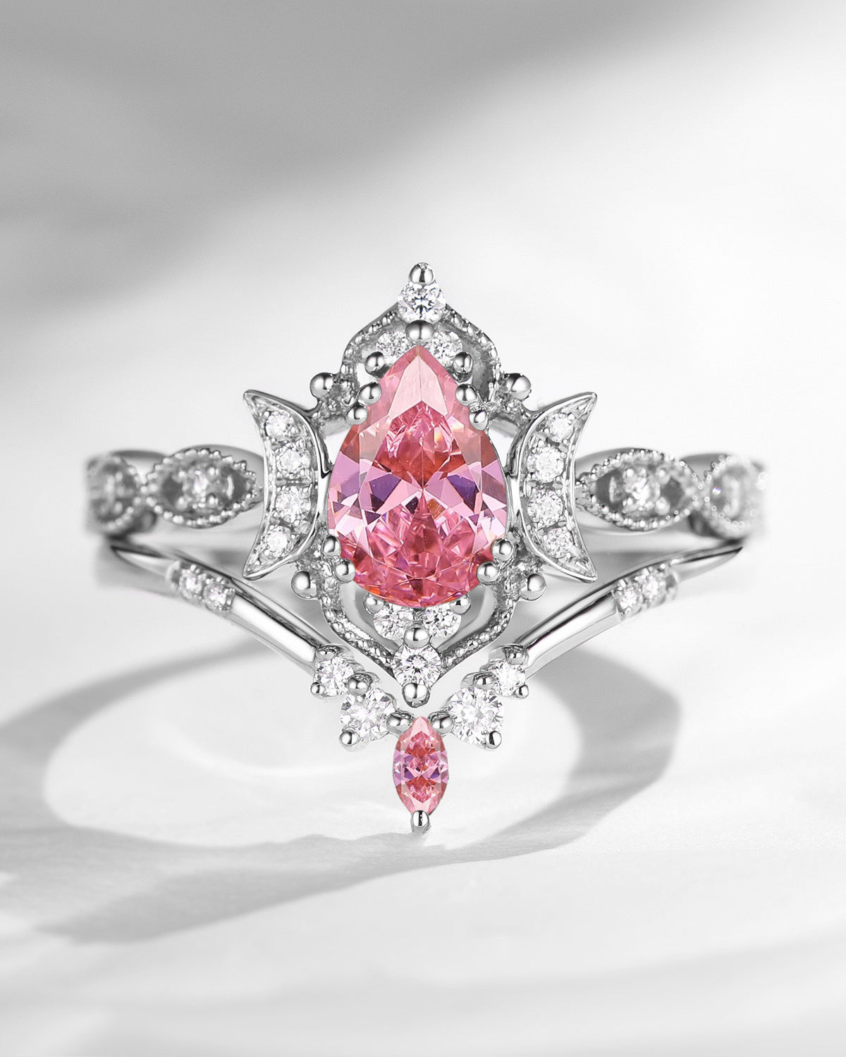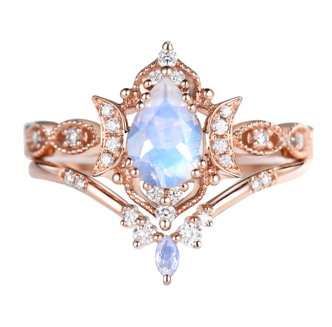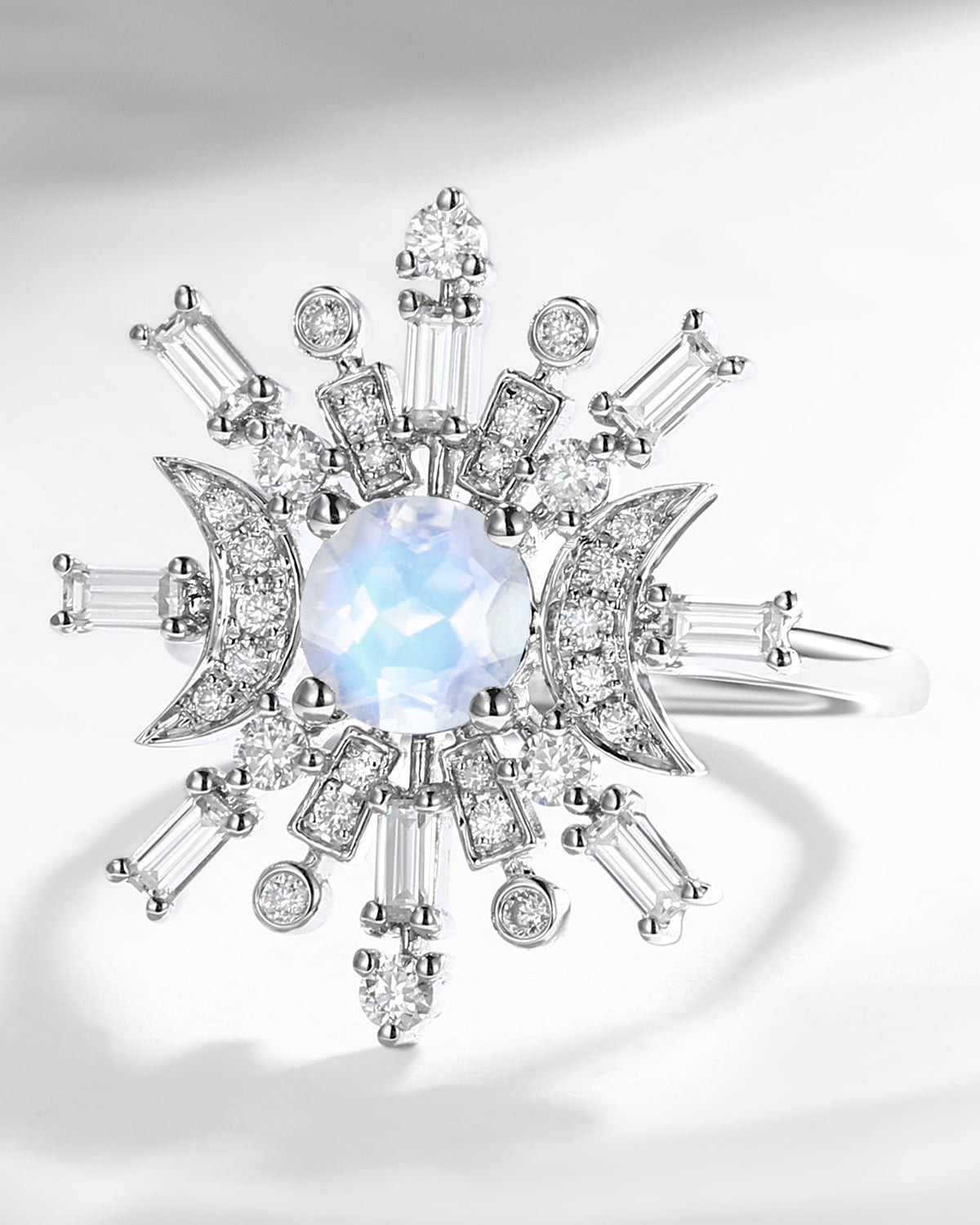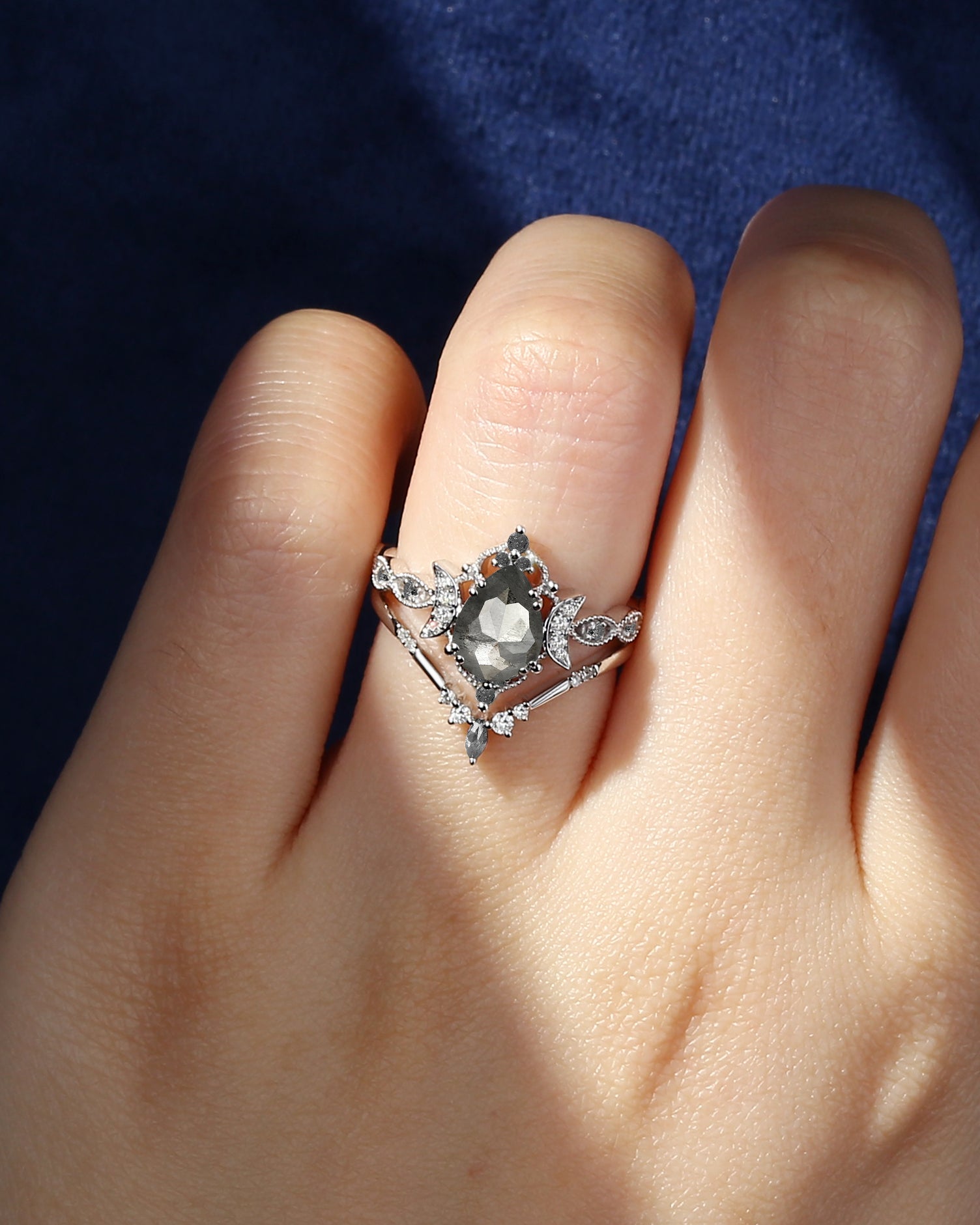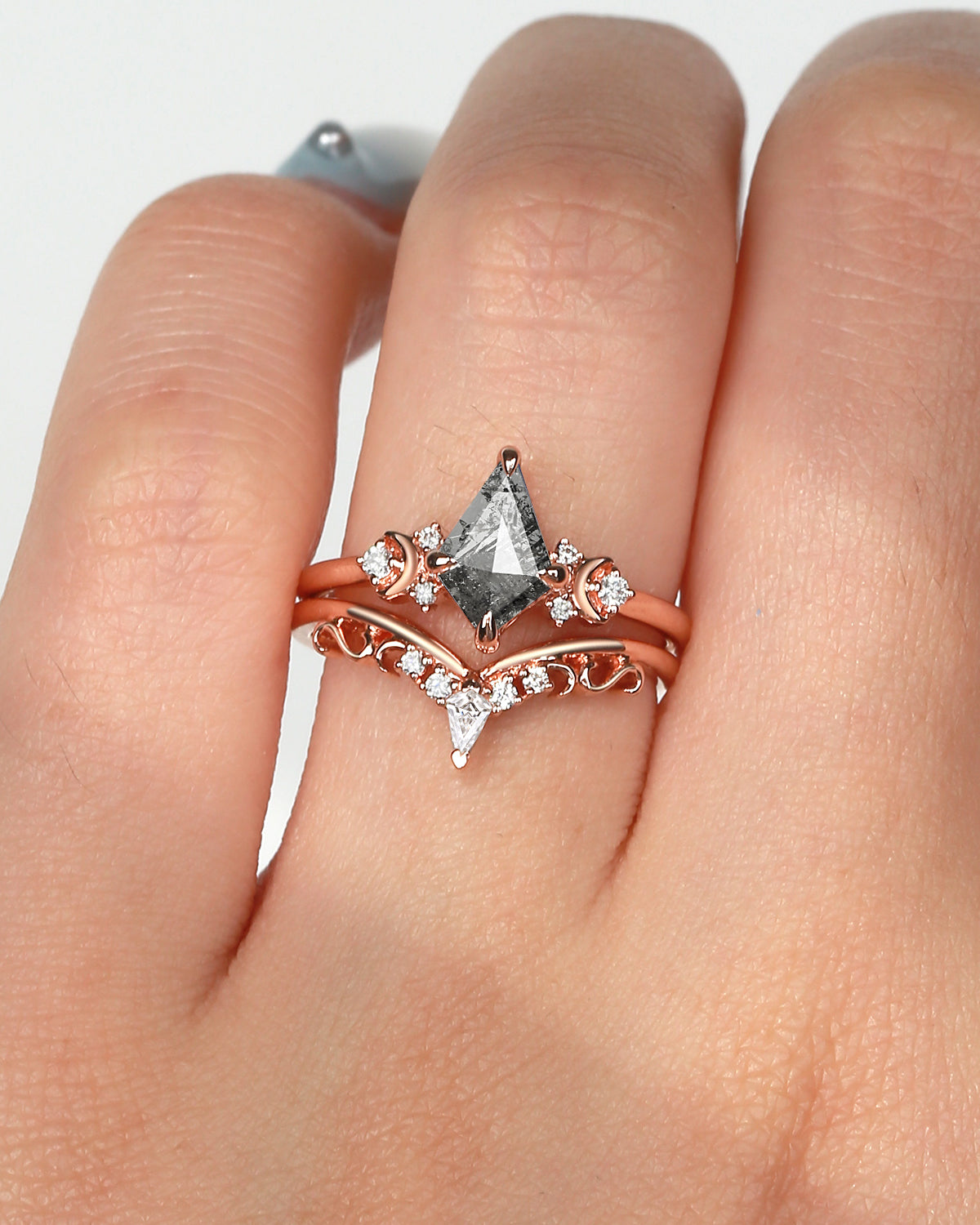 The new moon is often symbolic of new beginnings which this ring personifies for a couple starting their new life together. The crescent on the ring adorned with sparkling diamonds or other gemstones, like stars embellishing below the moon, making the ring both mystically charming and gorgeously radiant. This crescent shape ring is an ideal choice for a proposal or even daily wear, showcasing the wearer's personality in a unique way and serves as a beautiful promise of the future. Crescent moon is our proudest design by far. The crescent moon ring represents a new beginning, a process of starting over and vitality. Each crescent moon engagement ring is as unique as it can get while preserving a wonderful balance between vintage vibes and simplicity. The crescent moon ring can be of different shapes and different stone color even different side stones because here in StarlandUS, every one gets to create their own crescent moon, so as their own beginning.