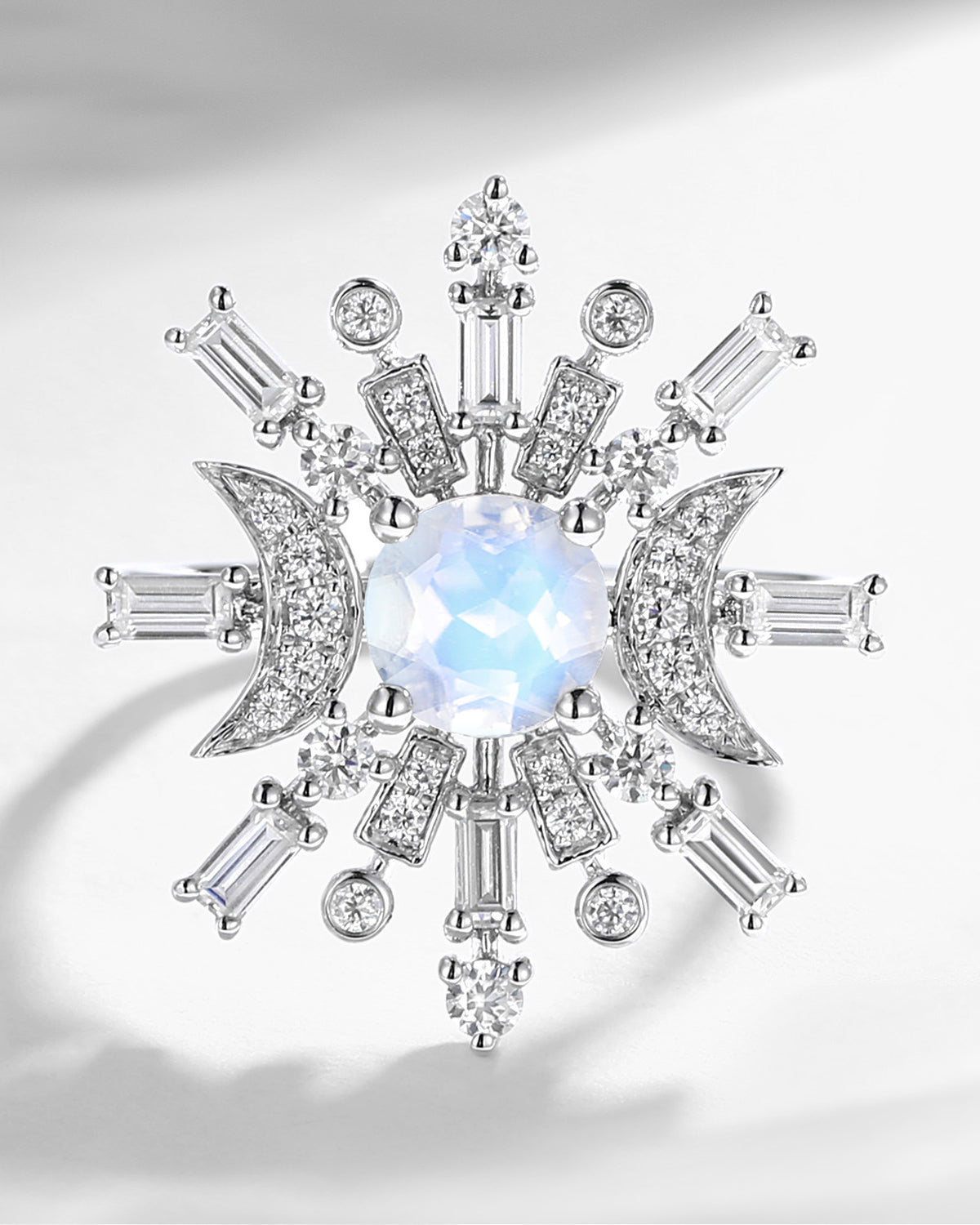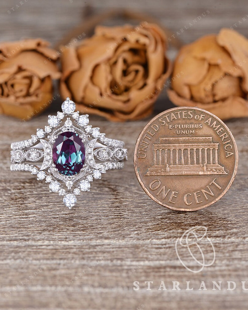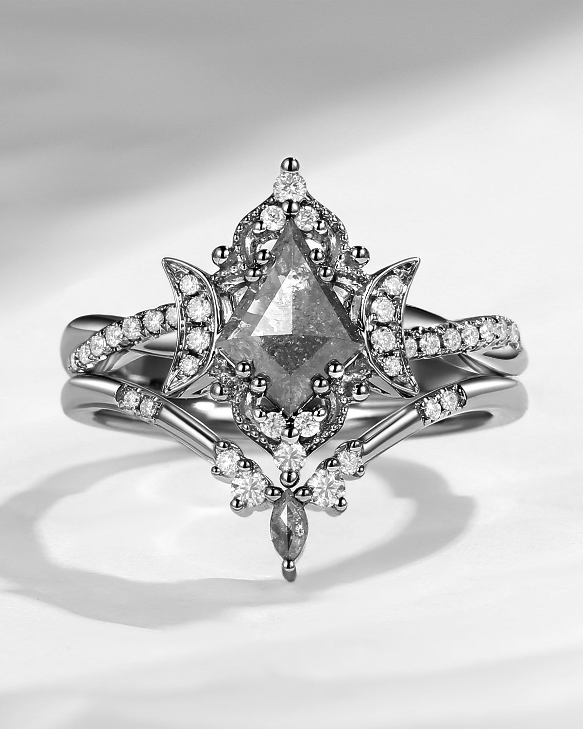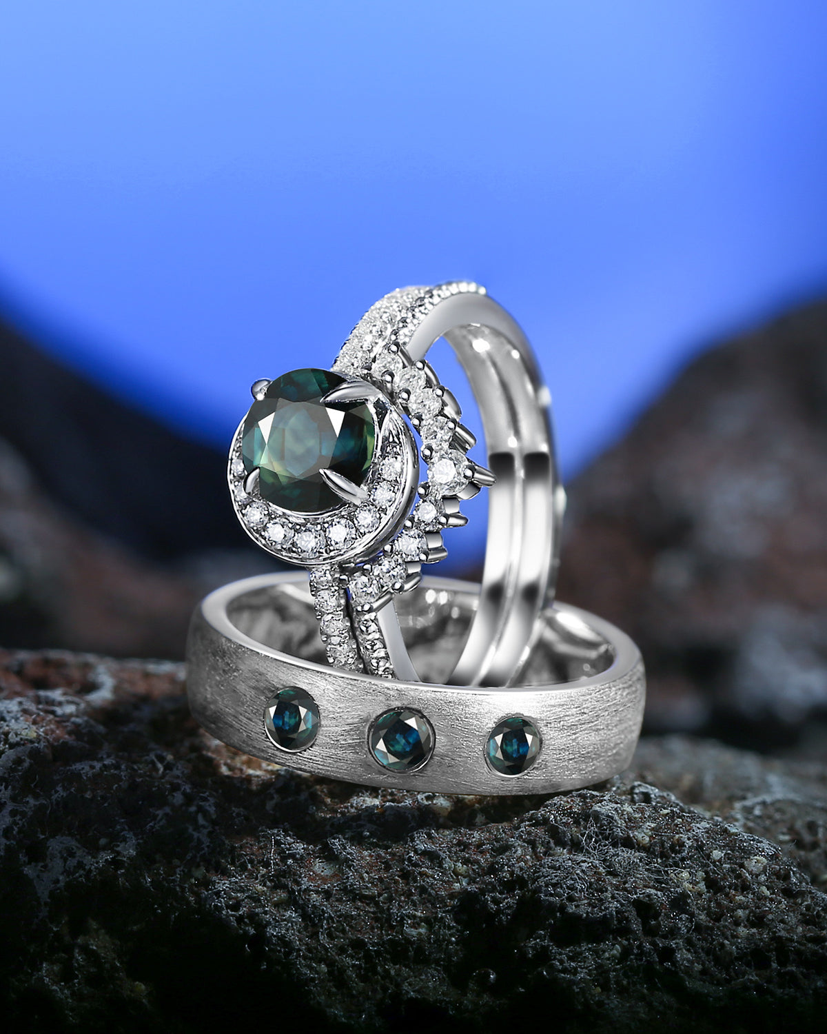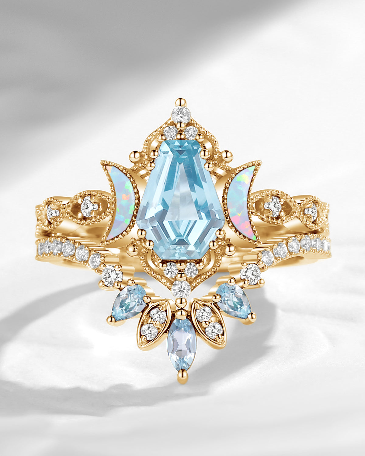 The new moon is often symbolic of new beginnings which this ring personifies for a couple starting their new life together. The crescent on the ring adorned with sparkling diamonds or other gemstones, like stars embellishing below the moon, making the ring both mystically charming and gorgeously radiant. This crescent shape ring is an ideal choice for a proposal or even daily wear, showcasing the wearer's personality in a unique way and serves as a beautiful promise of the future. Crescent moon is our proudest design by far. The crescent moon ring represents a new beginning, a process of starting over and vitality. Each crescent moon engagement ring is as unique as it can get while preserving a wonderful balance between vintage vibes and simplicity. The crescent moon ring can be of different shapes and different stone color even different side stones because here in StarlandUS, every one gets to create their own crescent moon, so as their own beginning.