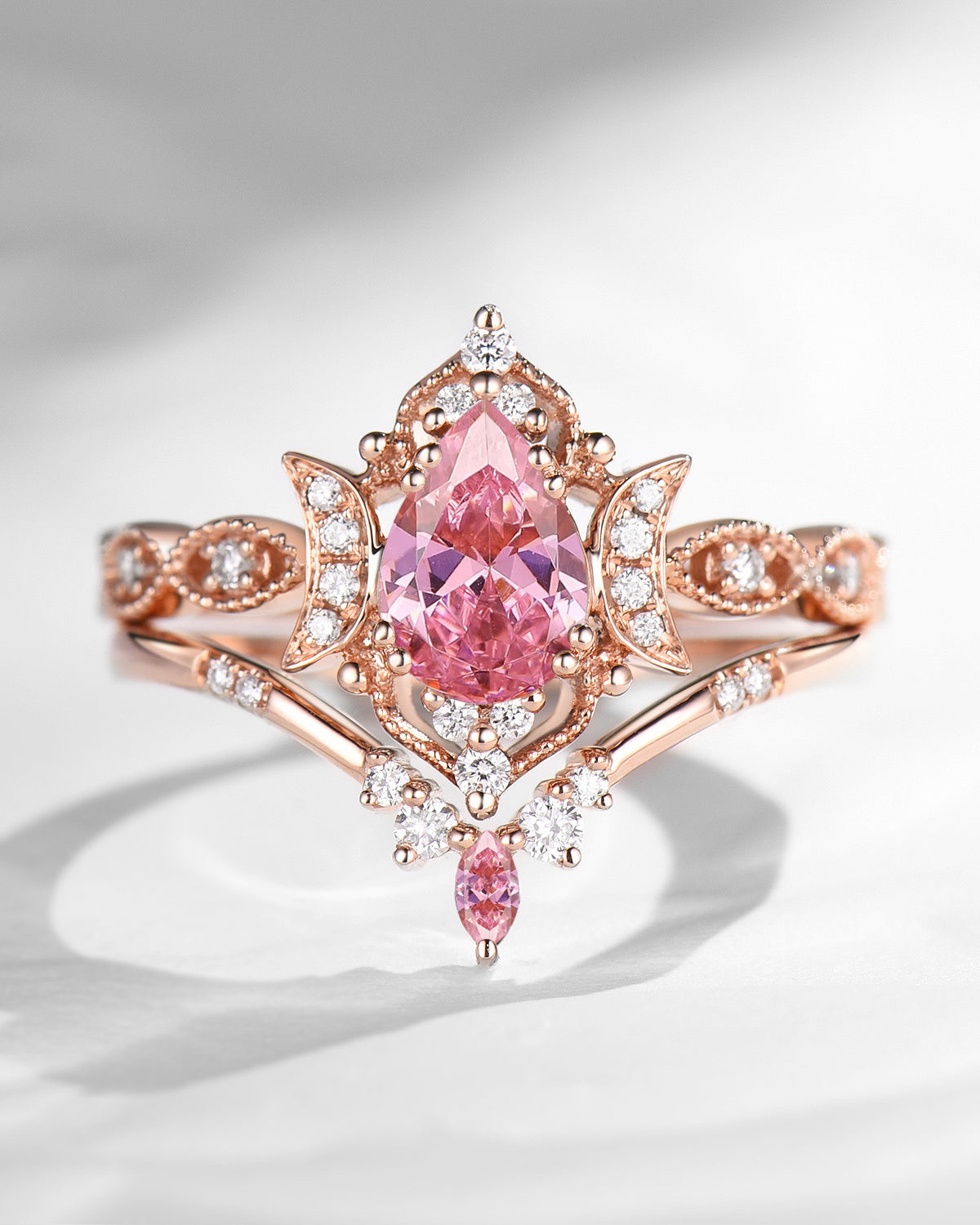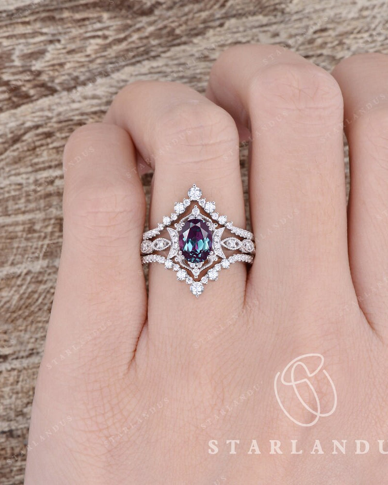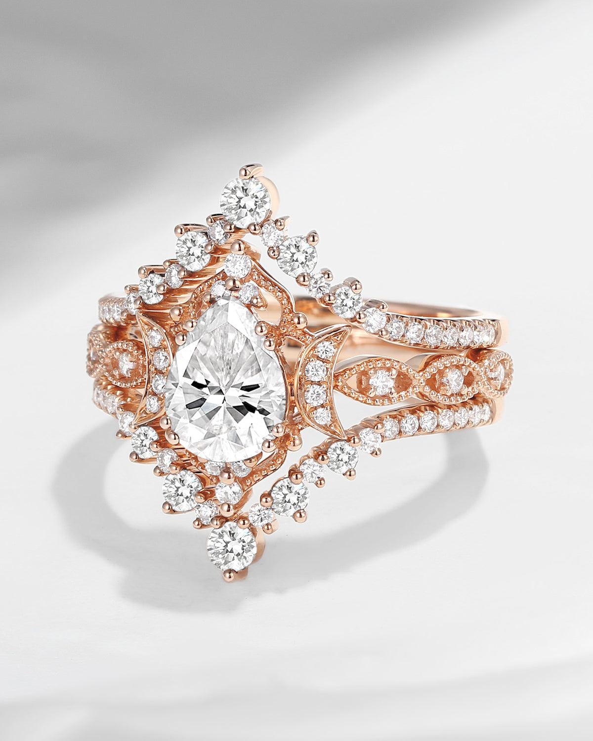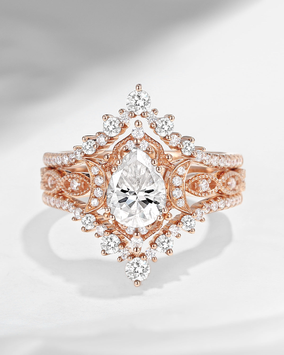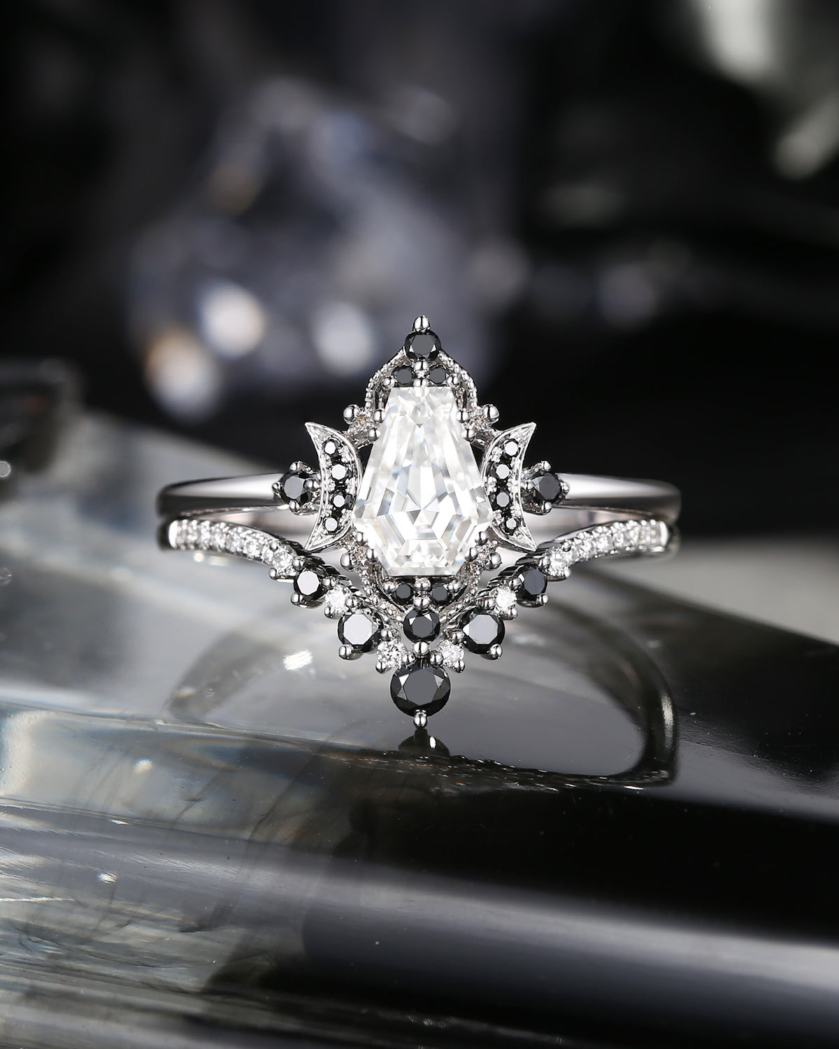 The new moon is often symbolic of new beginnings which this ring personifies for a couple starting their new life together. The crescent on the ring adorned with sparkling diamonds or other gemstones, like stars embellishing below the moon, making the ring both mystically charming and gorgeously radiant. This crescent shape ring is an ideal choice for a proposal or even daily wear, showcasing the wearer's personality in a unique way and serves as a beautiful promise of the future. Crescent moon is our proudest design by far. The crescent moon ring represents a new beginning, a process of starting over and vitality. Each crescent moon engagement ring is as unique as it can get while preserving a wonderful balance between vintage vibes and simplicity. The crescent moon ring can be of different shapes and different stone color even different side stones because here in StarlandUS, every one gets to create their own crescent moon, so as their own beginning.