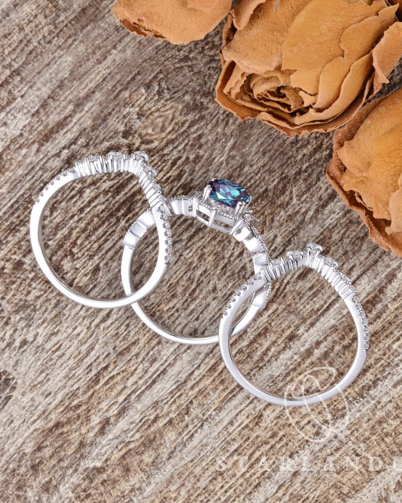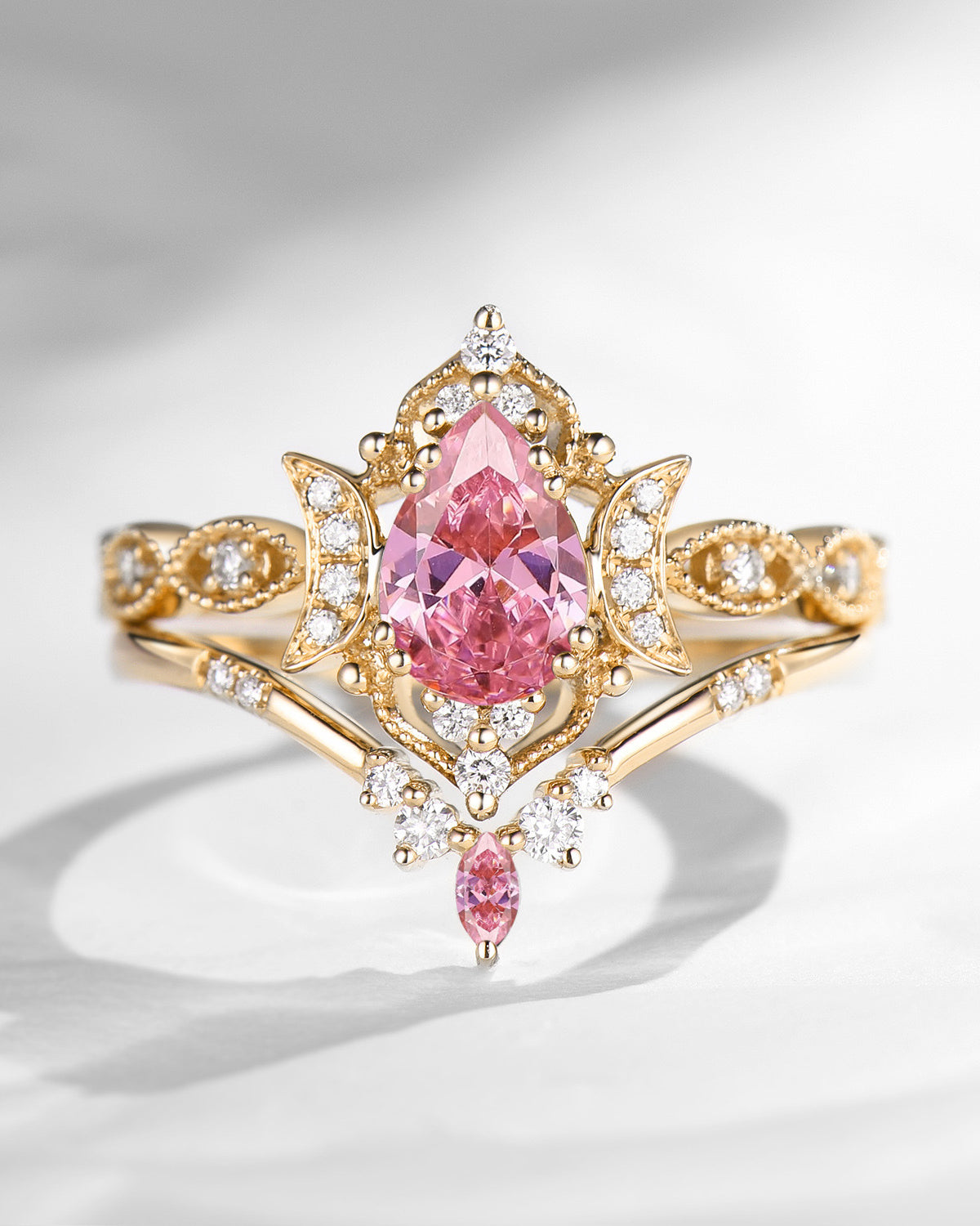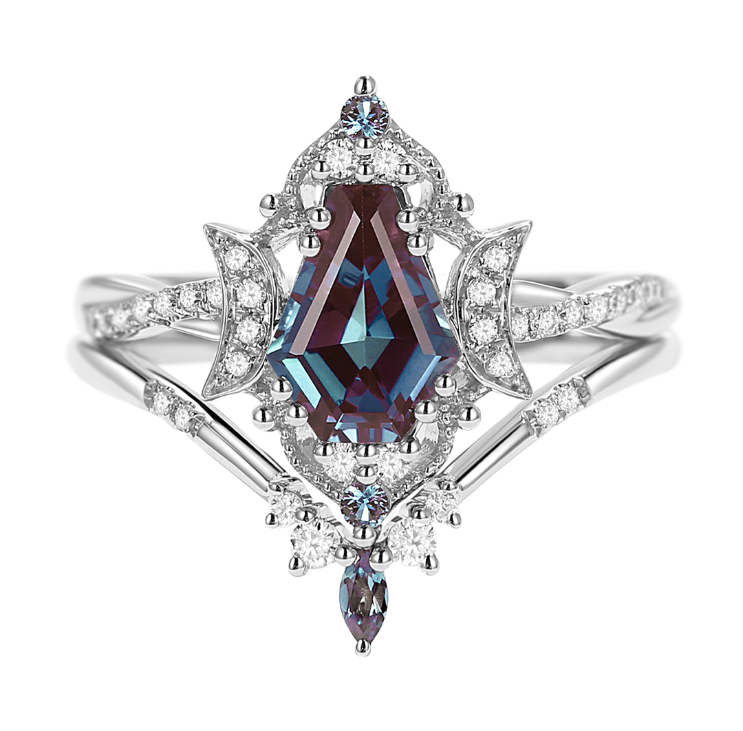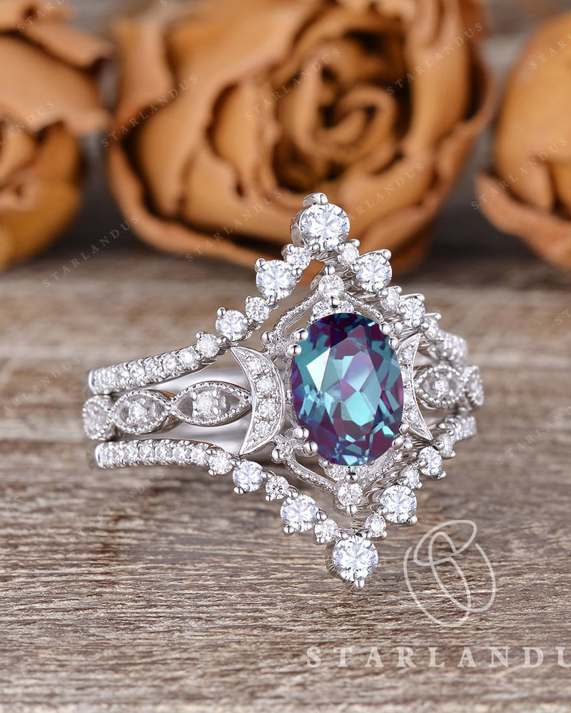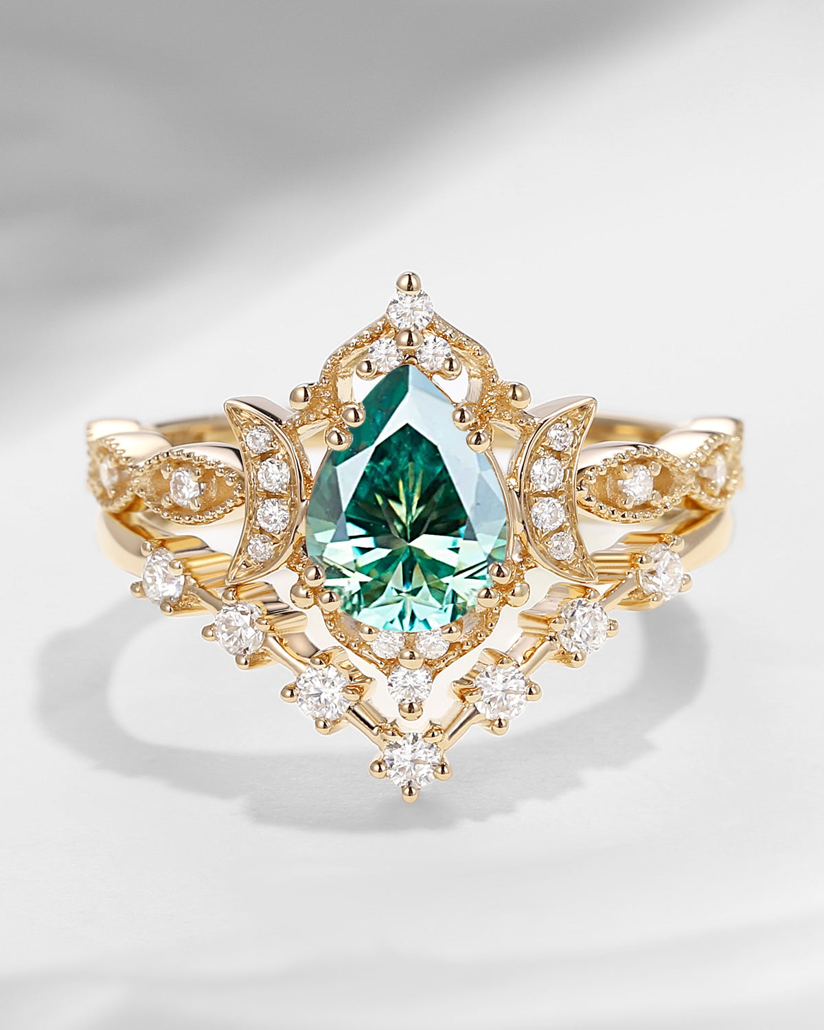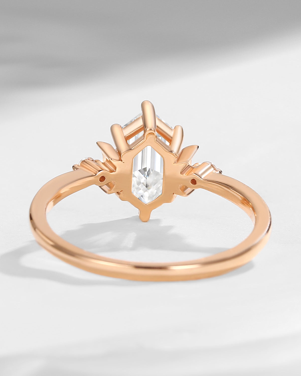 The new moon is often symbolic of new beginnings which this ring personifies for a couple starting their new life together. The crescent on the ring adorned with sparkling diamonds or other gemstones, like stars embellishing below the moon, making the ring both mystically charming and gorgeously radiant. This crescent shape ring is an ideal choice for a proposal or even daily wear, showcasing the wearer's personality in a unique way and serves as a beautiful promise of the future. Crescent moon is our proudest design by far. The crescent moon ring represents a new beginning, a process of starting over and vitality. Each crescent moon engagement ring is as unique as it can get while preserving a wonderful balance between vintage vibes and simplicity. The crescent moon ring can be of different shapes and different stone color even different side stones because here in StarlandUS, every one gets to create their own crescent moon, so as their own beginning.