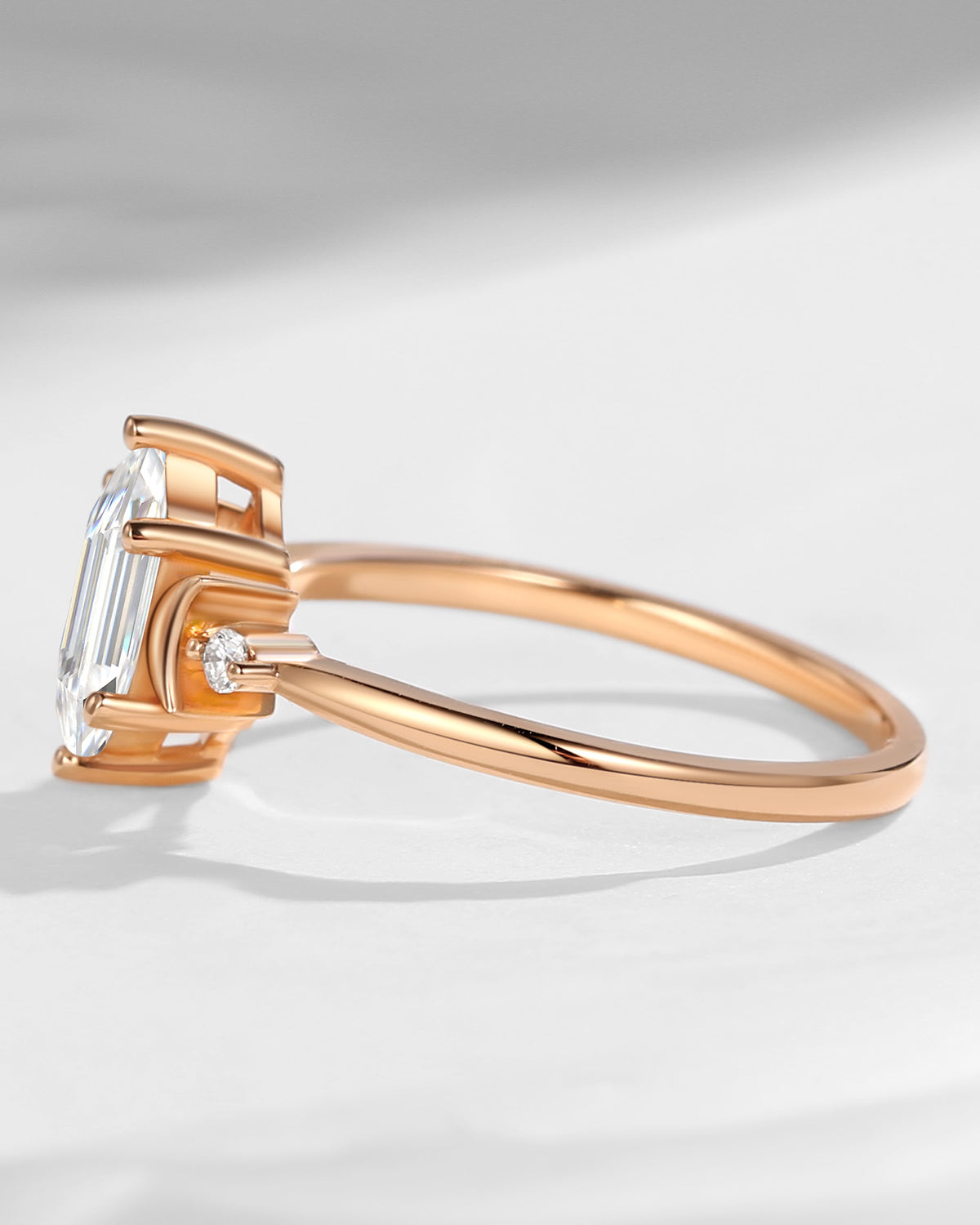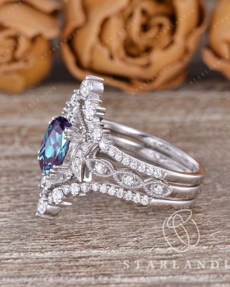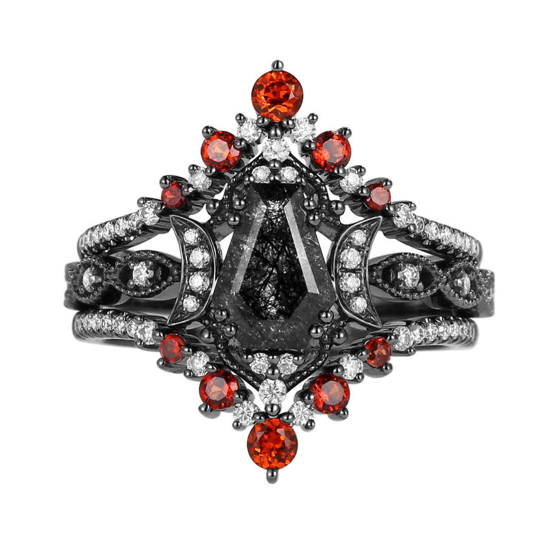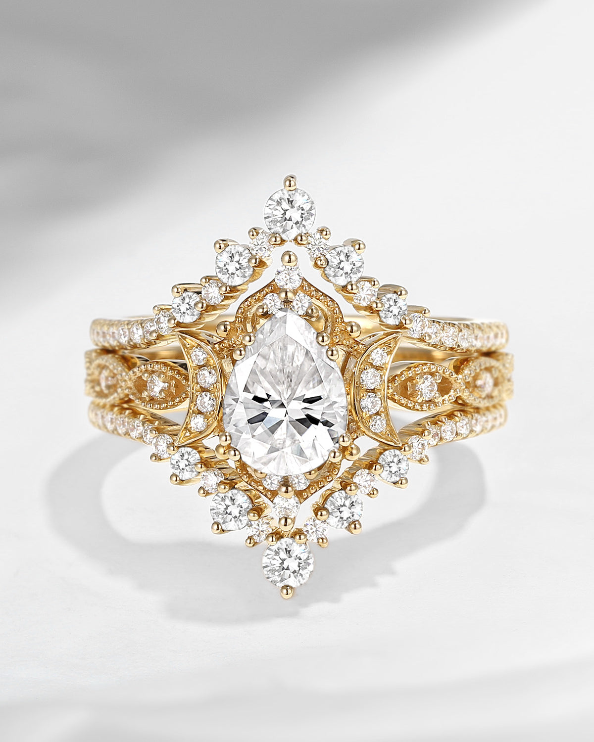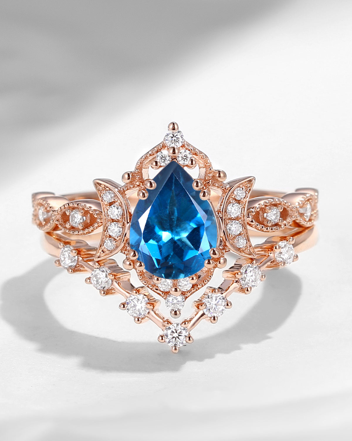 The new moon is often symbolic of new beginnings which this ring personifies for a couple starting their new life together. The crescent on the ring adorned with sparkling diamonds or other gemstones, like stars embellishing below the moon, making the ring both mystically charming and gorgeously radiant. This crescent shape ring is an ideal choice for a proposal or even daily wear, showcasing the wearer's personality in a unique way and serves as a beautiful promise of the future. Crescent moon is our proudest design by far. The crescent moon ring represents a new beginning, a process of starting over and vitality. Each crescent moon engagement ring is as unique as it can get while preserving a wonderful balance between vintage vibes and simplicity. The crescent moon ring can be of different shapes and different stone color even different side stones because here in StarlandUS, every one gets to create their own crescent moon, so as their own beginning.