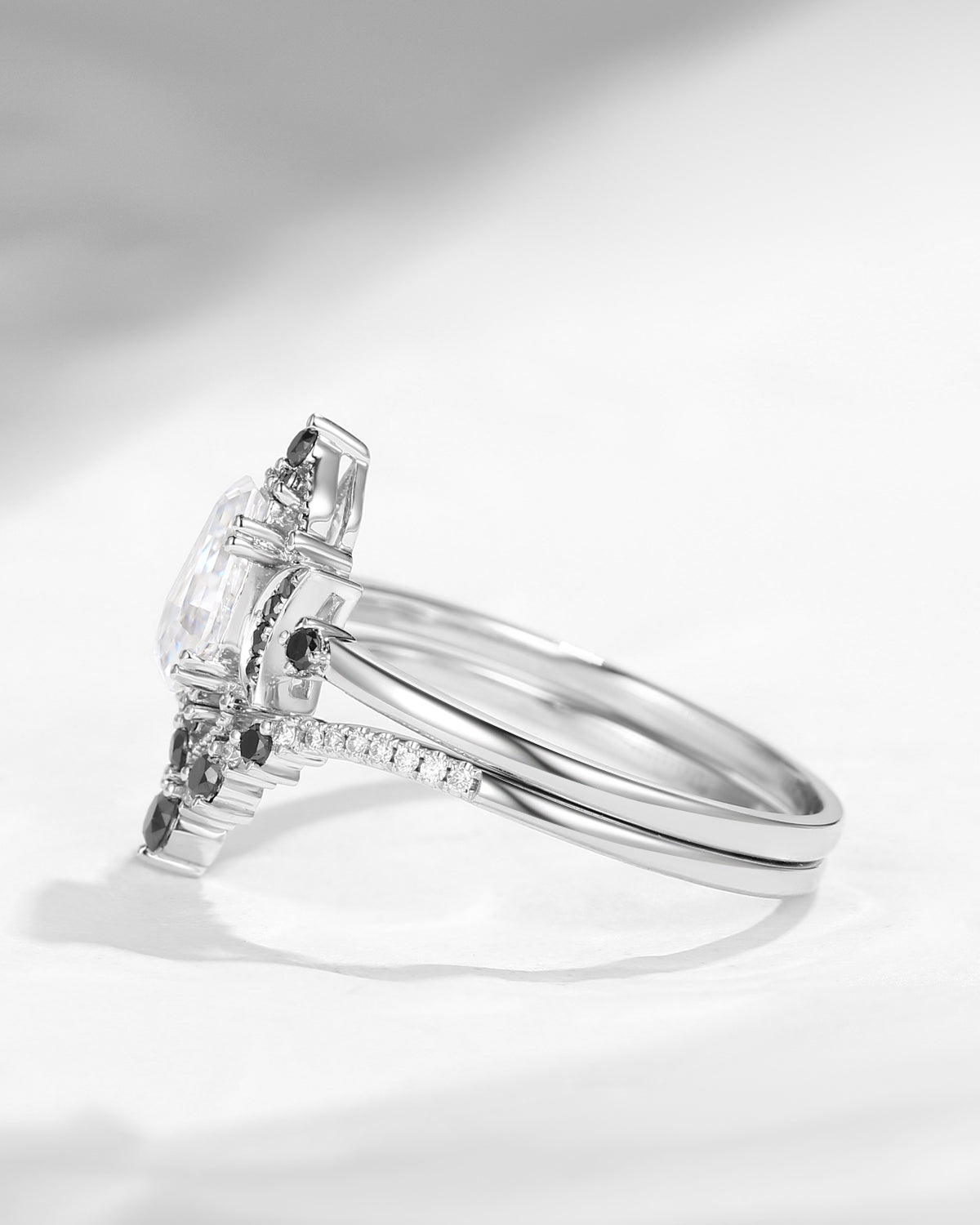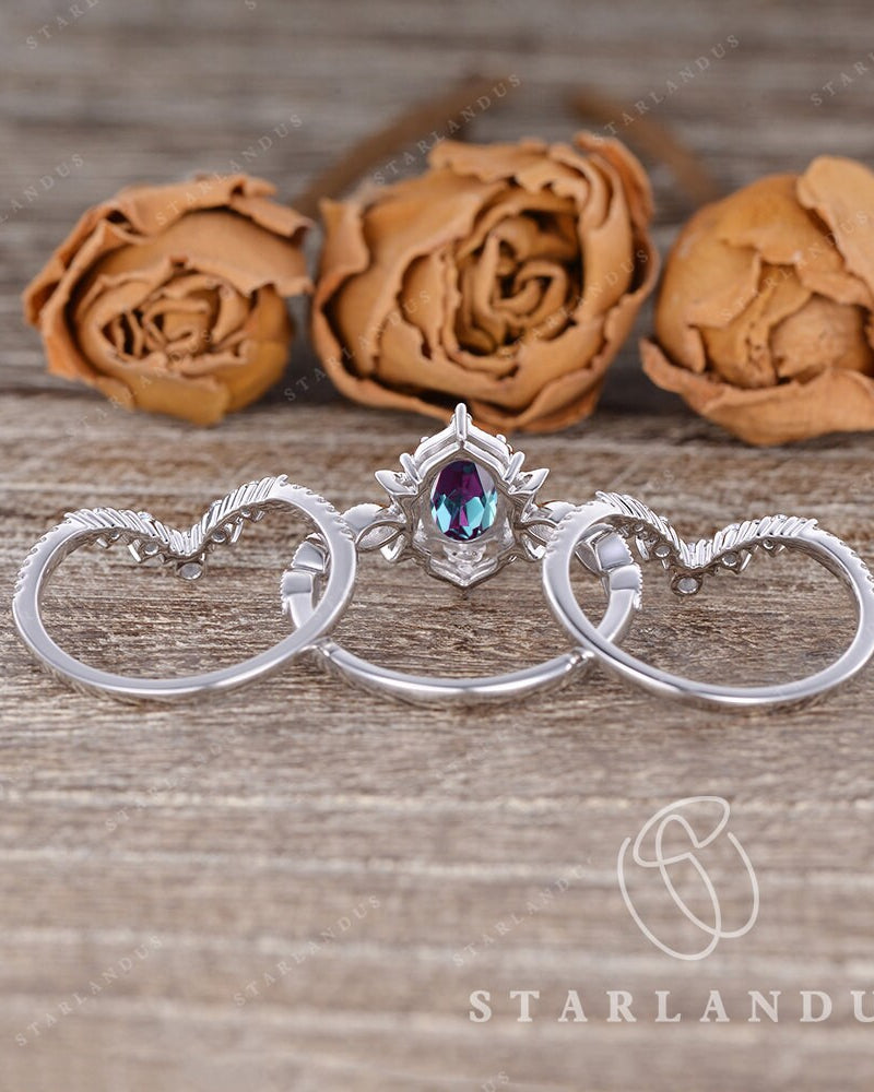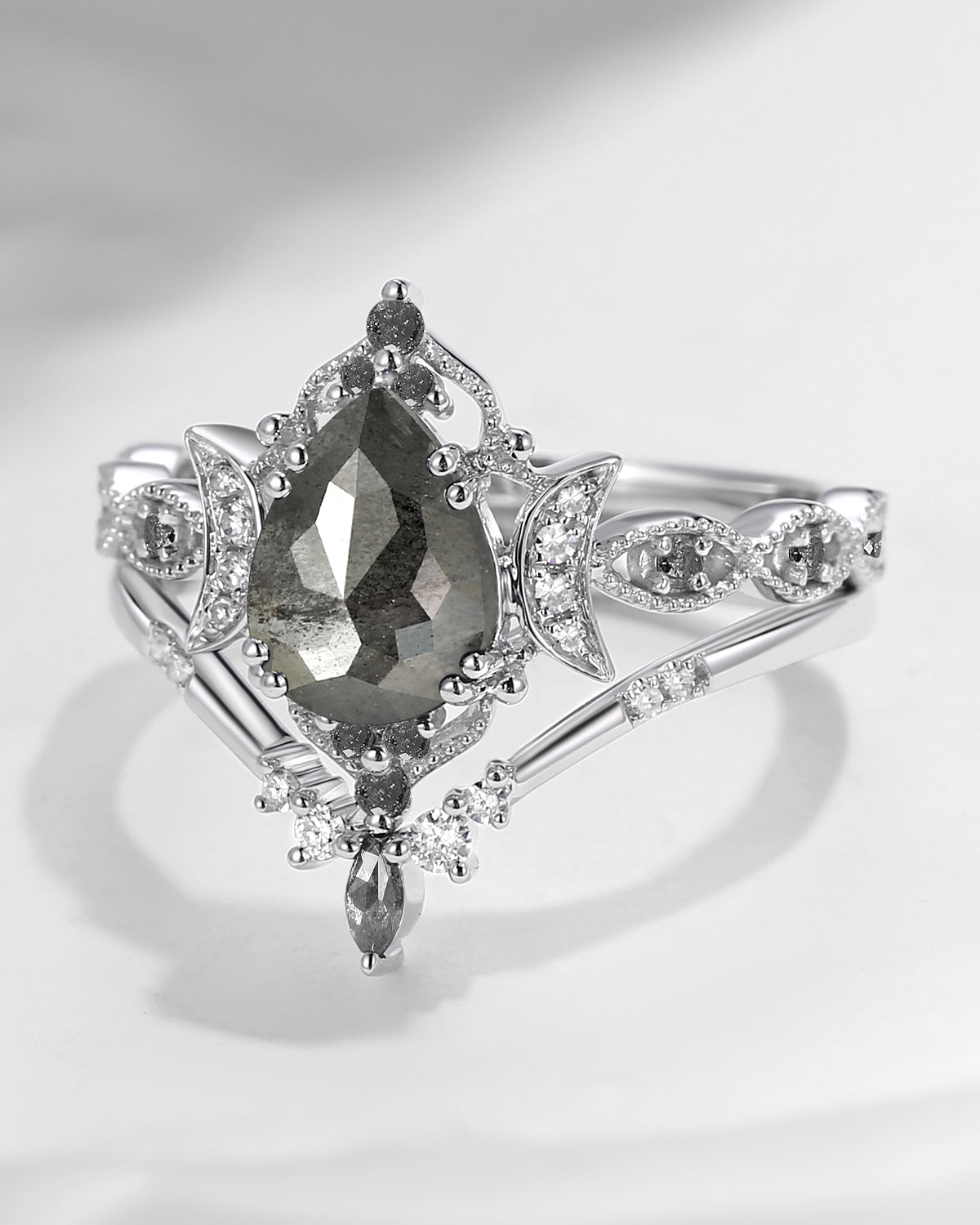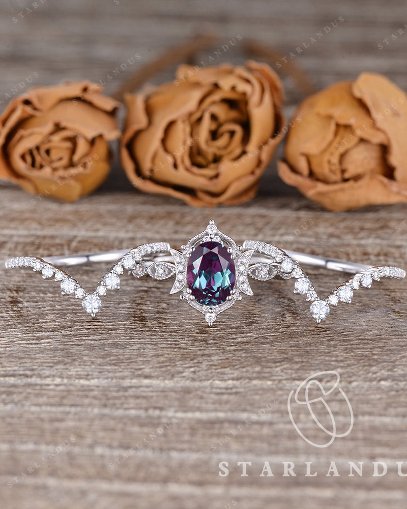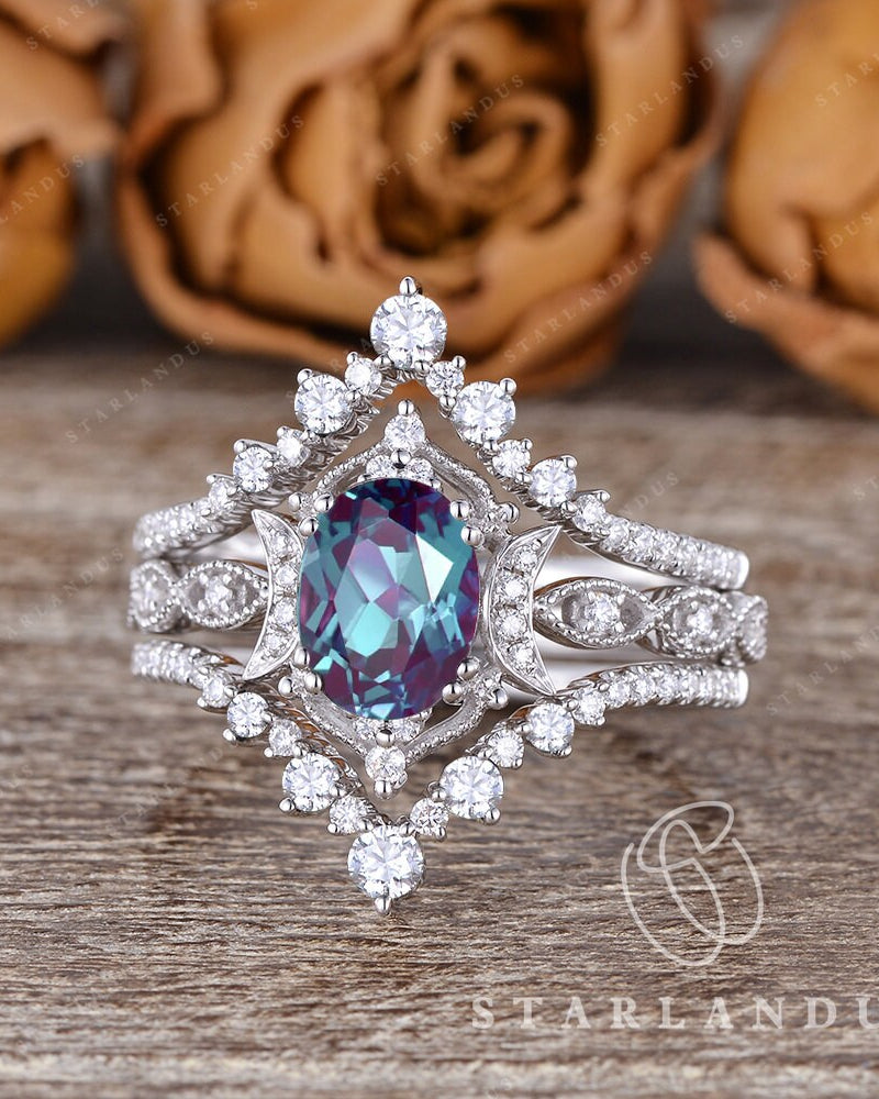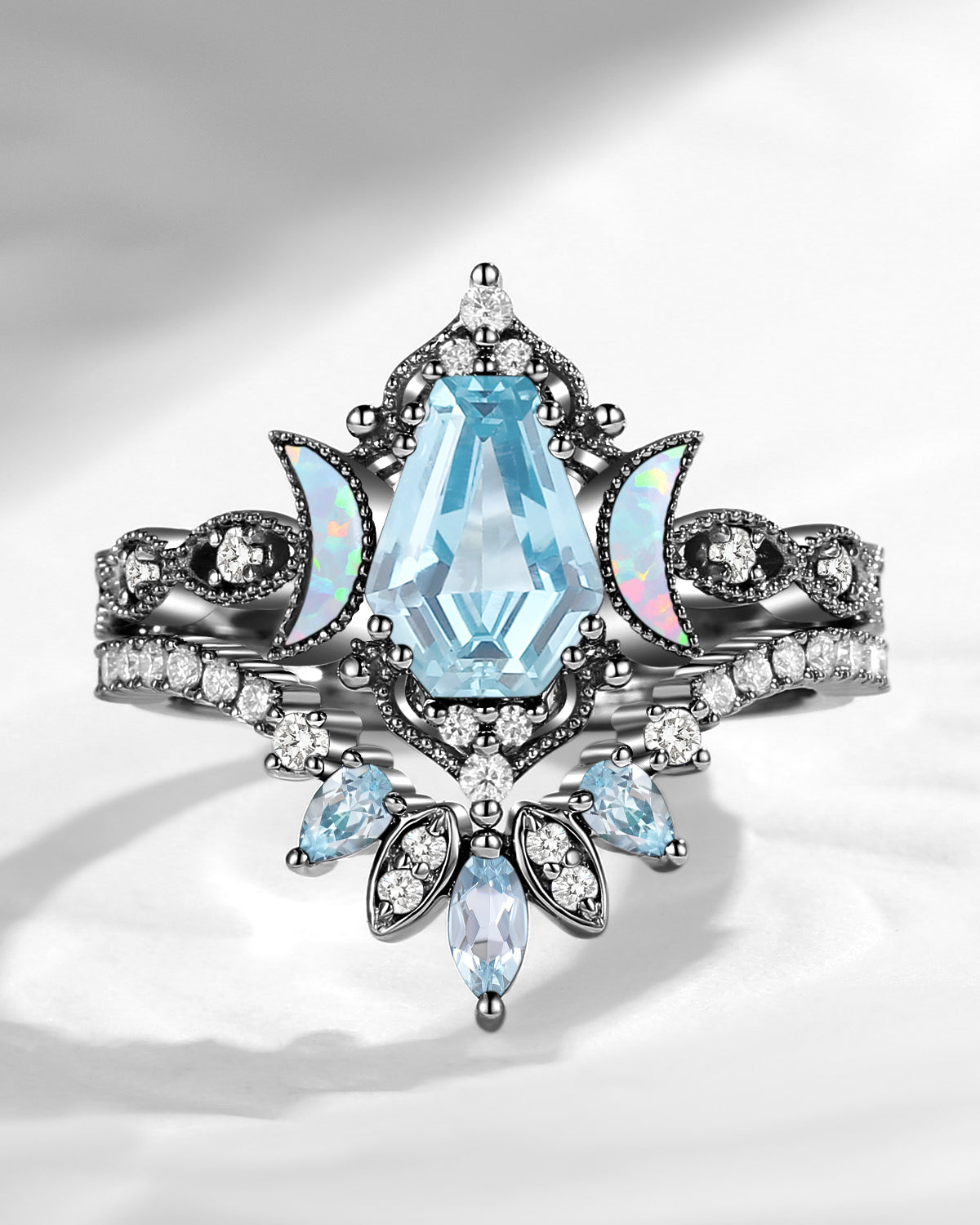 The new moon is often symbolic of new beginnings which this ring personifies for a couple starting their new life together. The crescent on the ring adorned with sparkling diamonds or other gemstones, like stars embellishing below the moon, making the ring both mystically charming and gorgeously radiant. This crescent shape ring is an ideal choice for a proposal or even daily wear, showcasing the wearer's personality in a unique way and serves as a beautiful promise of the future. Crescent moon is our proudest design by far. The crescent moon ring represents a new beginning, a process of starting over and vitality. Each crescent moon engagement ring is as unique as it can get while preserving a wonderful balance between vintage vibes and simplicity. The crescent moon ring can be of different shapes and different stone color even different side stones because here in StarlandUS, every one gets to create their own crescent moon, so as their own beginning.