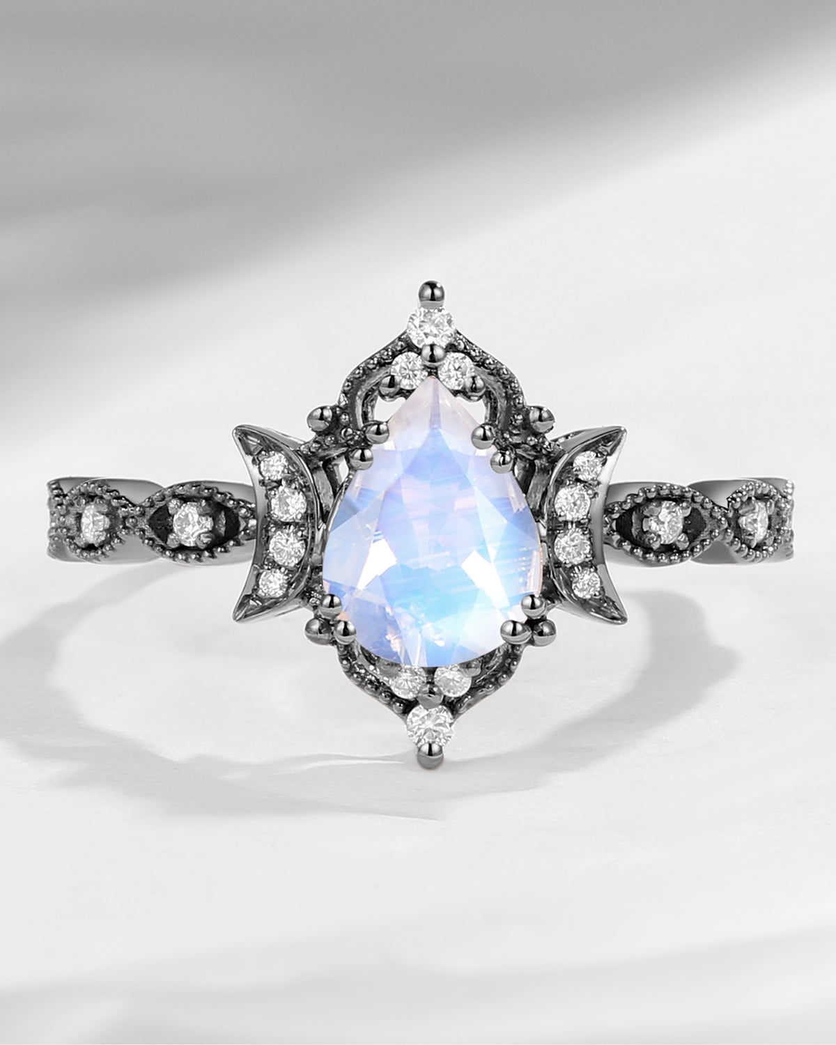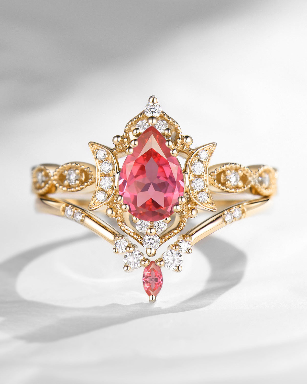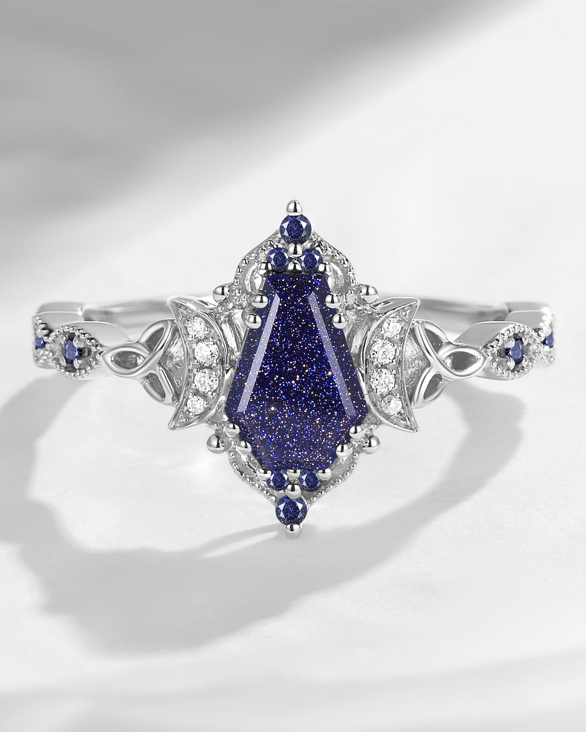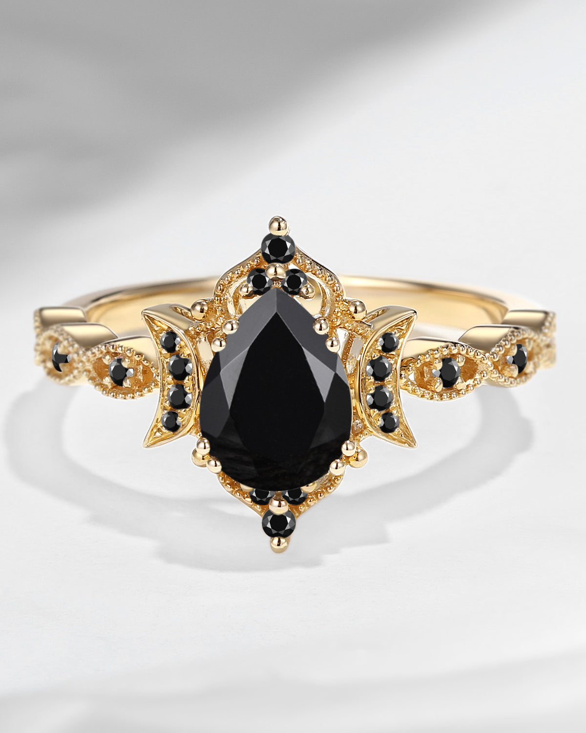 The new moon is often symbolic of new beginnings which this ring personifies for a couple starting their new life together. The crescent on the ring adorned with sparkling diamonds or other gemstones, like stars embellishing below the moon, making the ring both mystically charming and gorgeously radiant. This crescent shape ring is an ideal choice for a proposal or even daily wear, showcasing the wearer's personality in a unique way and serves as a beautiful promise of the future. Crescent moon is our proudest design by far. The crescent moon ring represents a new beginning, a process of starting over and vitality. Each crescent moon engagement ring is as unique as it can get while preserving a wonderful balance between vintage vibes and simplicity. The crescent moon ring can be of different shapes and different stone color even different side stones because here in StarlandUS, every one gets to create their own crescent moon, so as their own beginning.