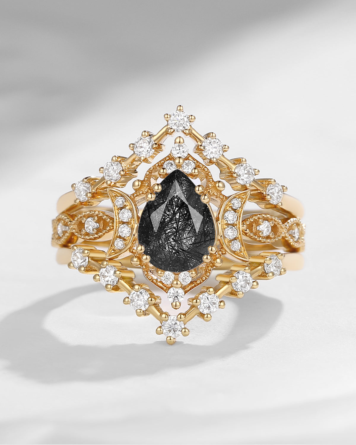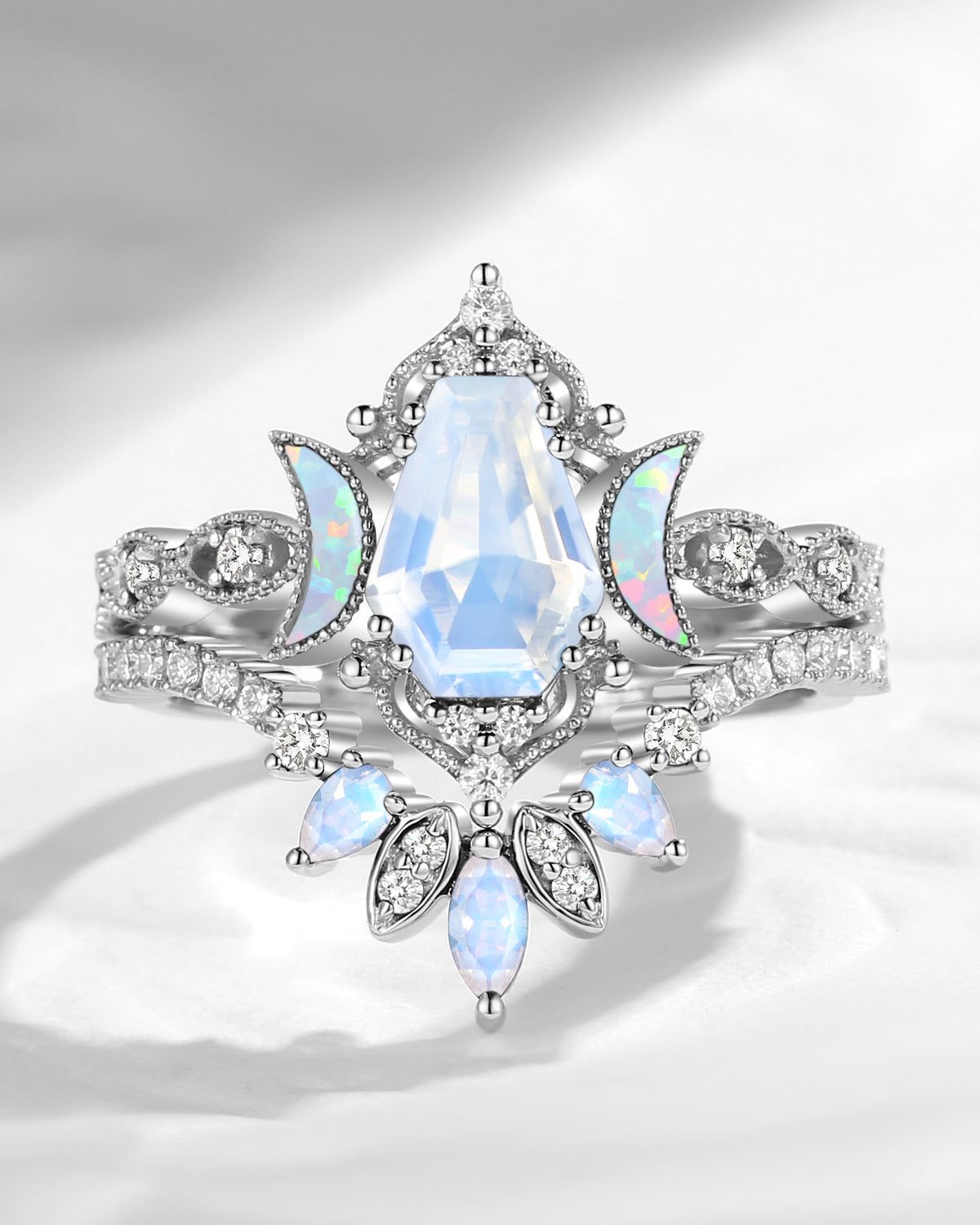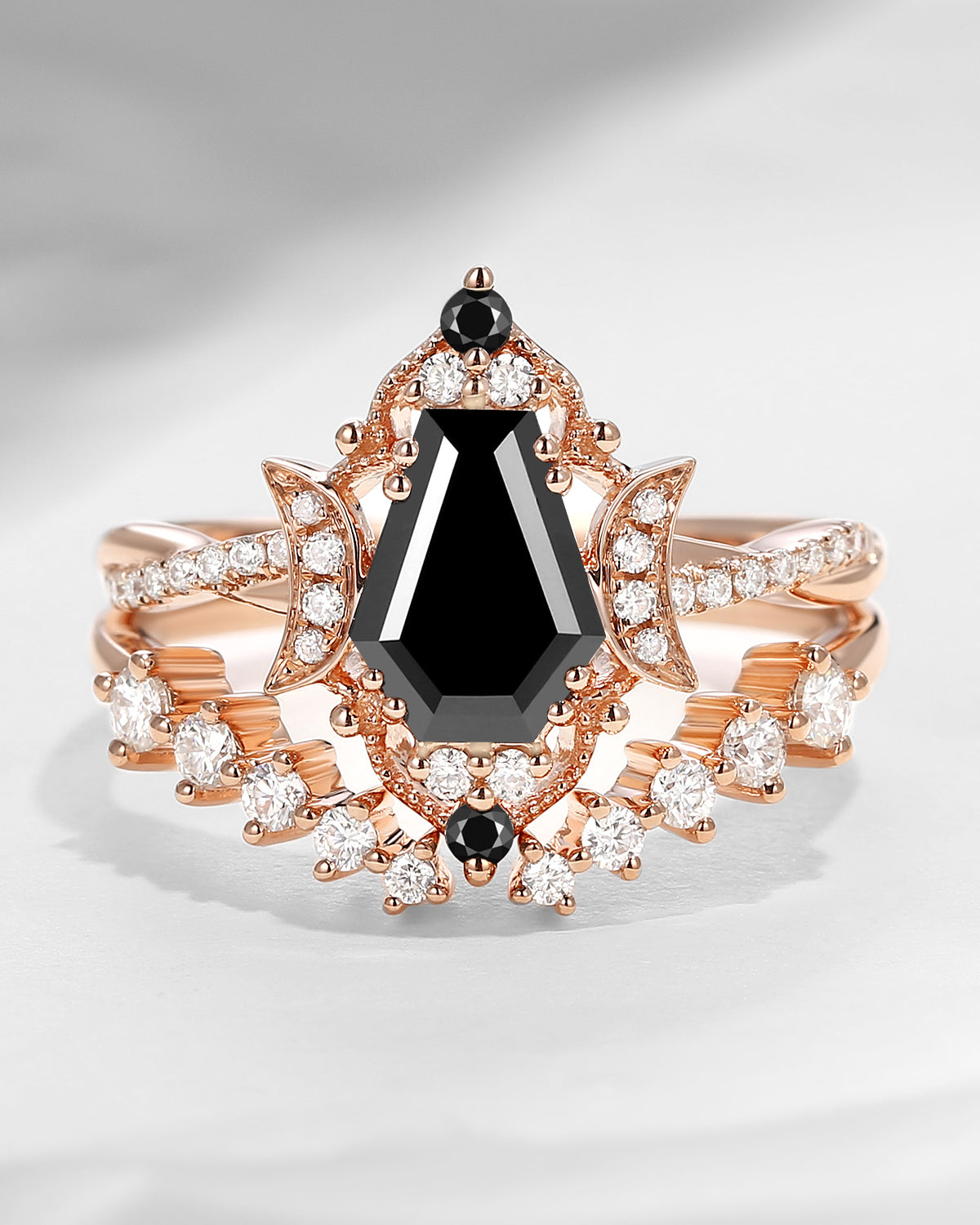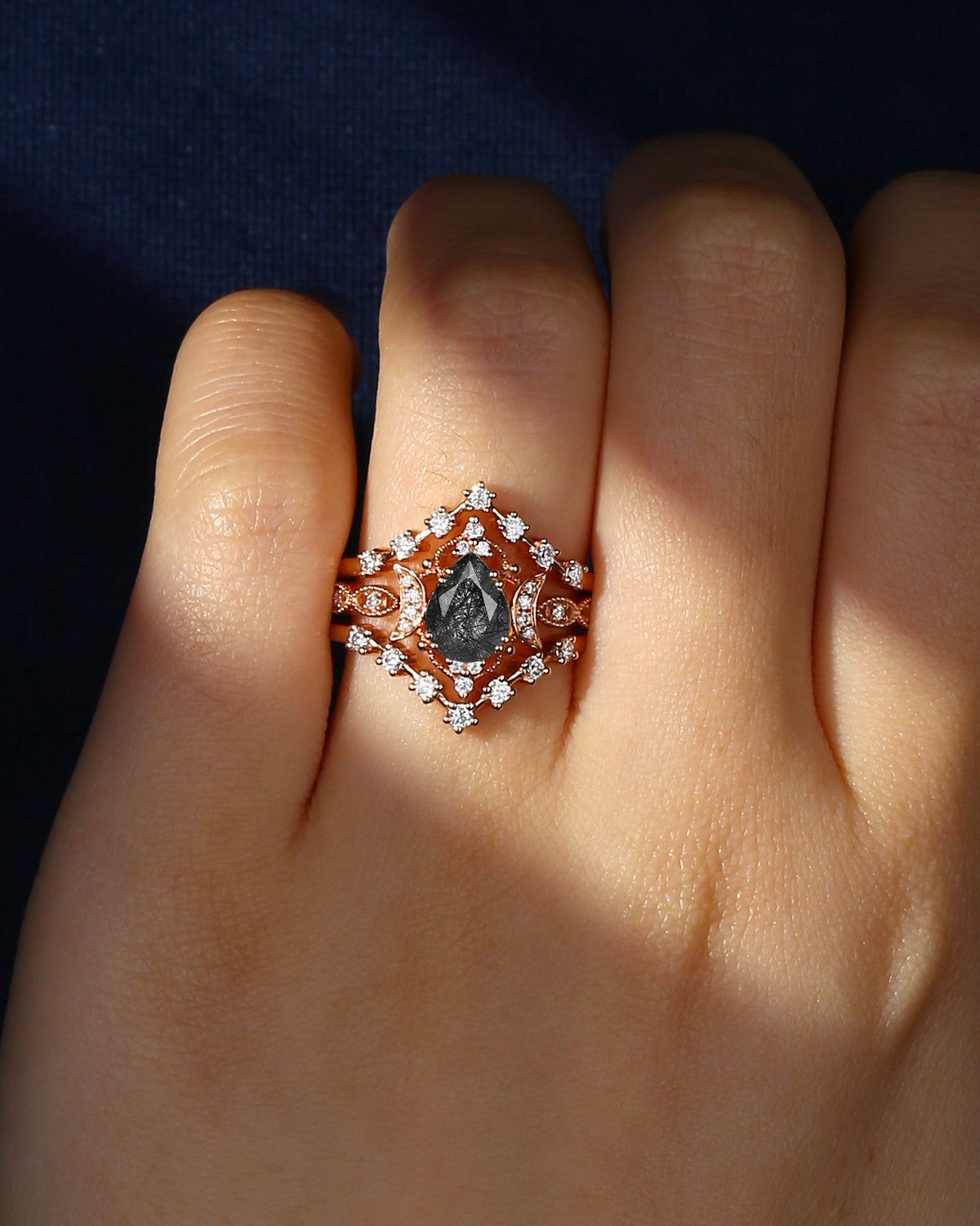 The new moon is often symbolic of new beginnings which this ring personifies for a couple starting their new life together. The crescent on the ring adorned with sparkling diamonds or other gemstones, like stars embellishing below the moon, making the ring both mystically charming and gorgeously radiant. This crescent shape ring is an ideal choice for a proposal or even daily wear, showcasing the wearer's personality in a unique way and serves as a beautiful promise of the future. Crescent moon is our proudest design by far. The crescent moon ring represents a new beginning, a process of starting over and vitality. Each crescent moon engagement ring is as unique as it can get while preserving a wonderful balance between vintage vibes and simplicity. The crescent moon ring can be of different shapes and different stone color even different side stones because here in StarlandUS, every one gets to create their own crescent moon, so as their own beginning.