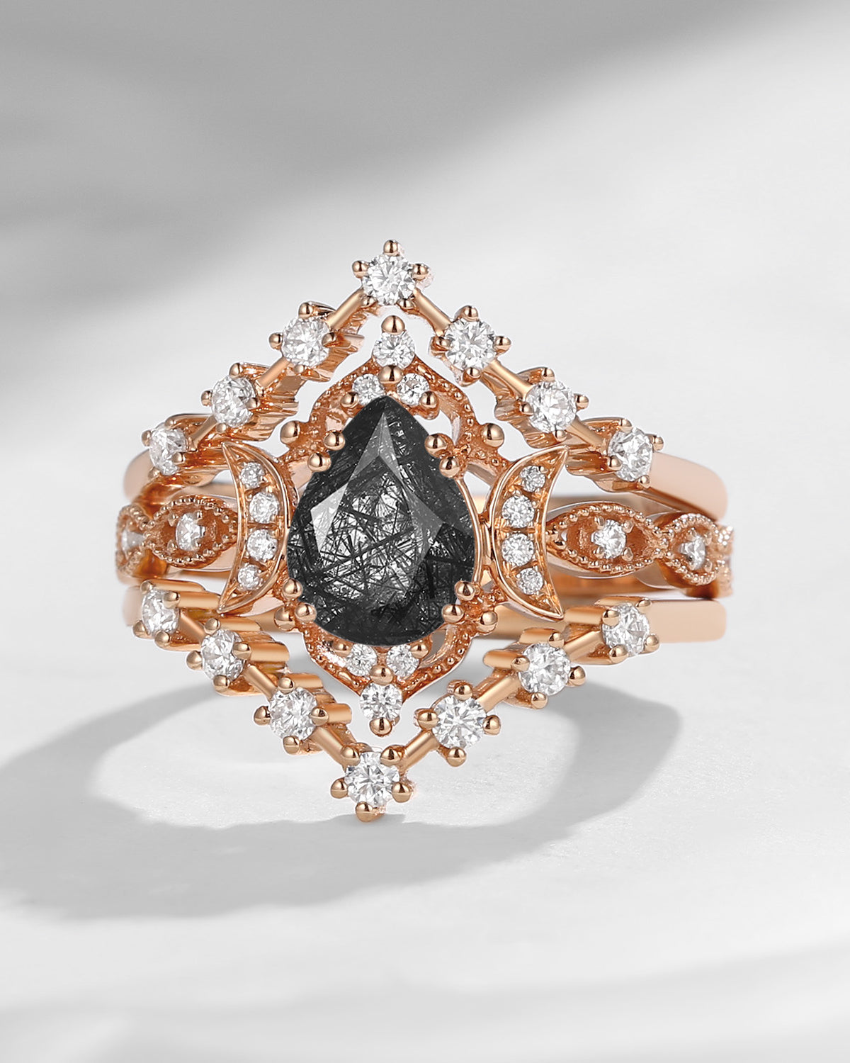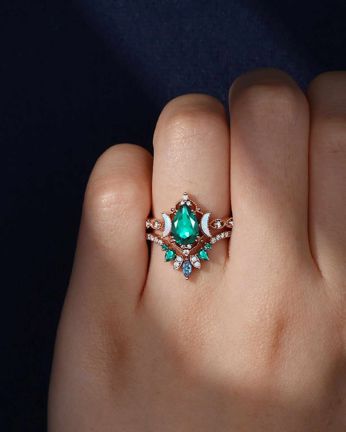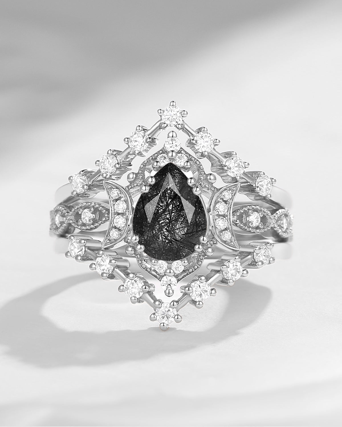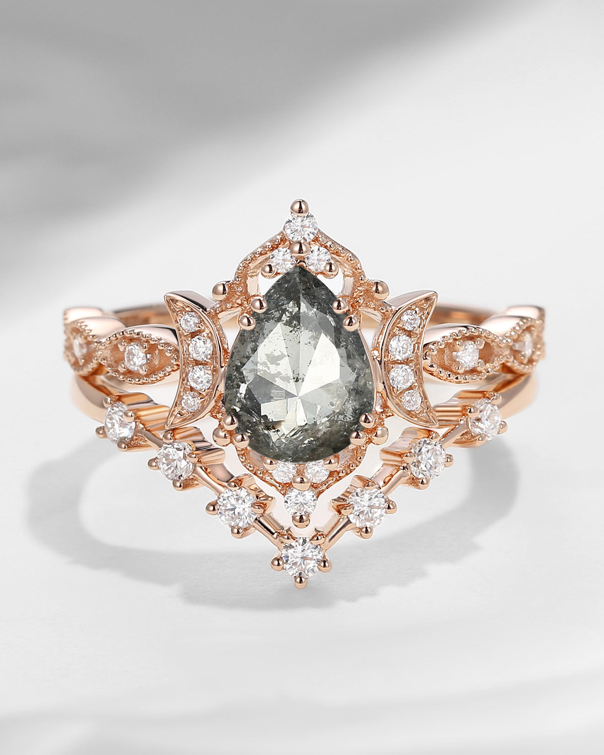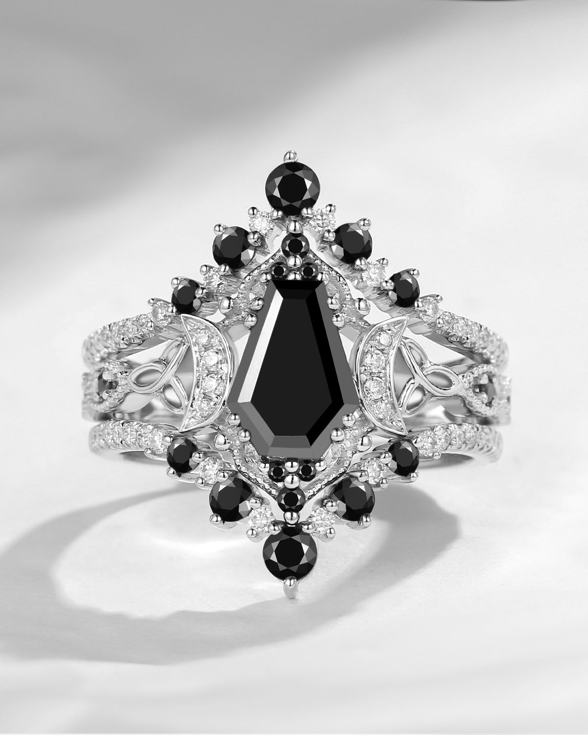 The new moon is often symbolic of new beginnings which this ring personifies for a couple starting their new life together. The crescent on the ring adorned with sparkling diamonds or other gemstones, like stars embellishing below the moon, making the ring both mystically charming and gorgeously radiant. This crescent shape ring is an ideal choice for a proposal or even daily wear, showcasing the wearer's personality in a unique way and serves as a beautiful promise of the future. Crescent moon is our proudest design by far. The crescent moon ring represents a new beginning, a process of starting over and vitality. Each crescent moon engagement ring is as unique as it can get while preserving a wonderful balance between vintage vibes and simplicity. The crescent moon ring can be of different shapes and different stone color even different side stones because here in StarlandUS, every one gets to create their own crescent moon, so as their own beginning.