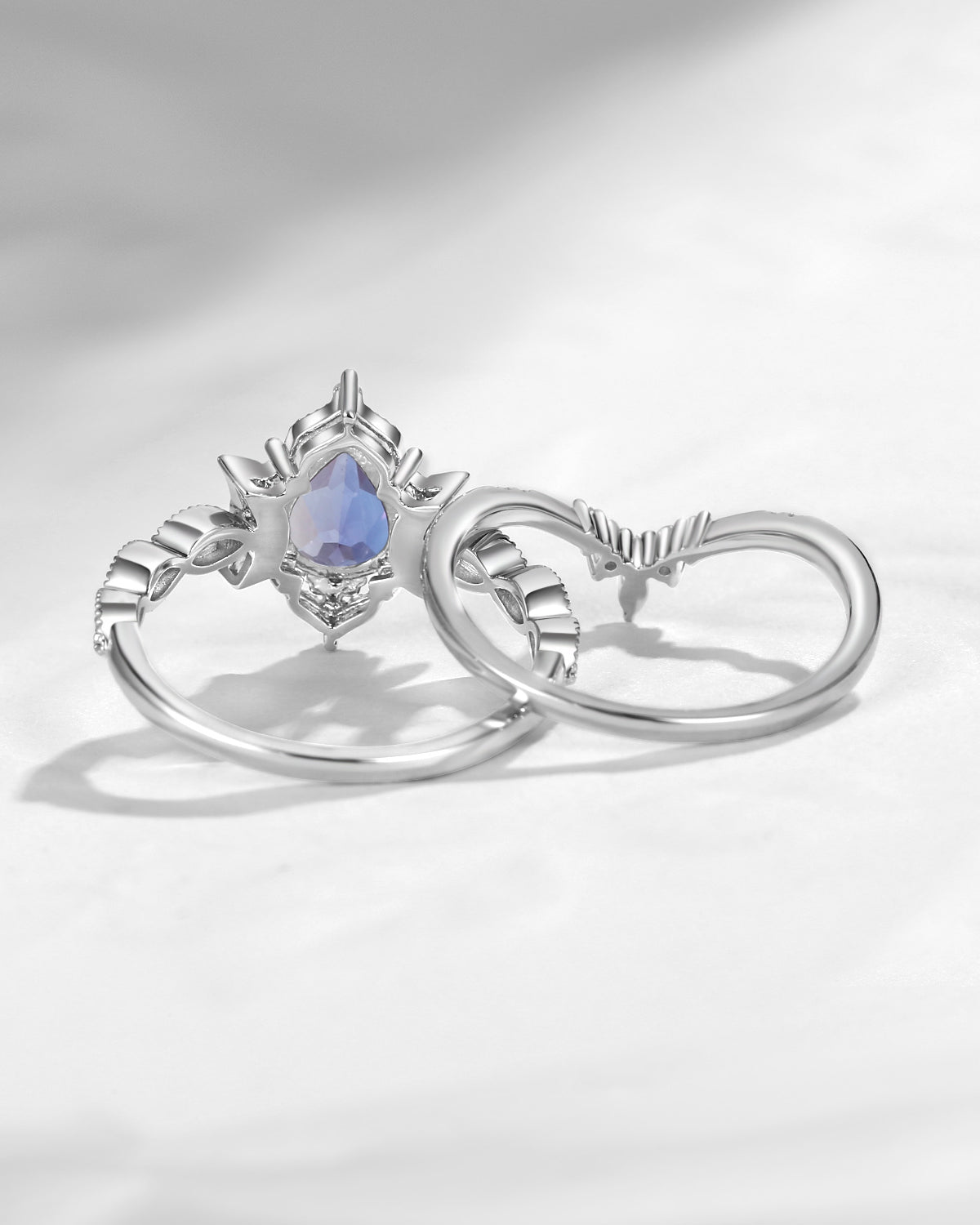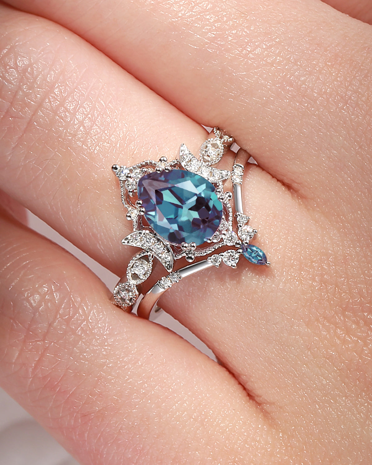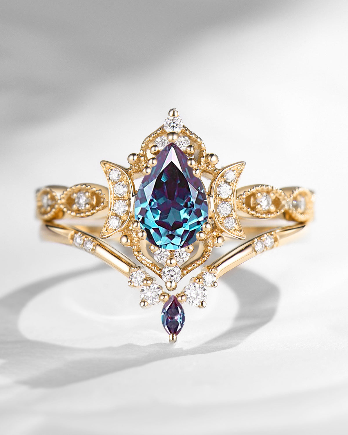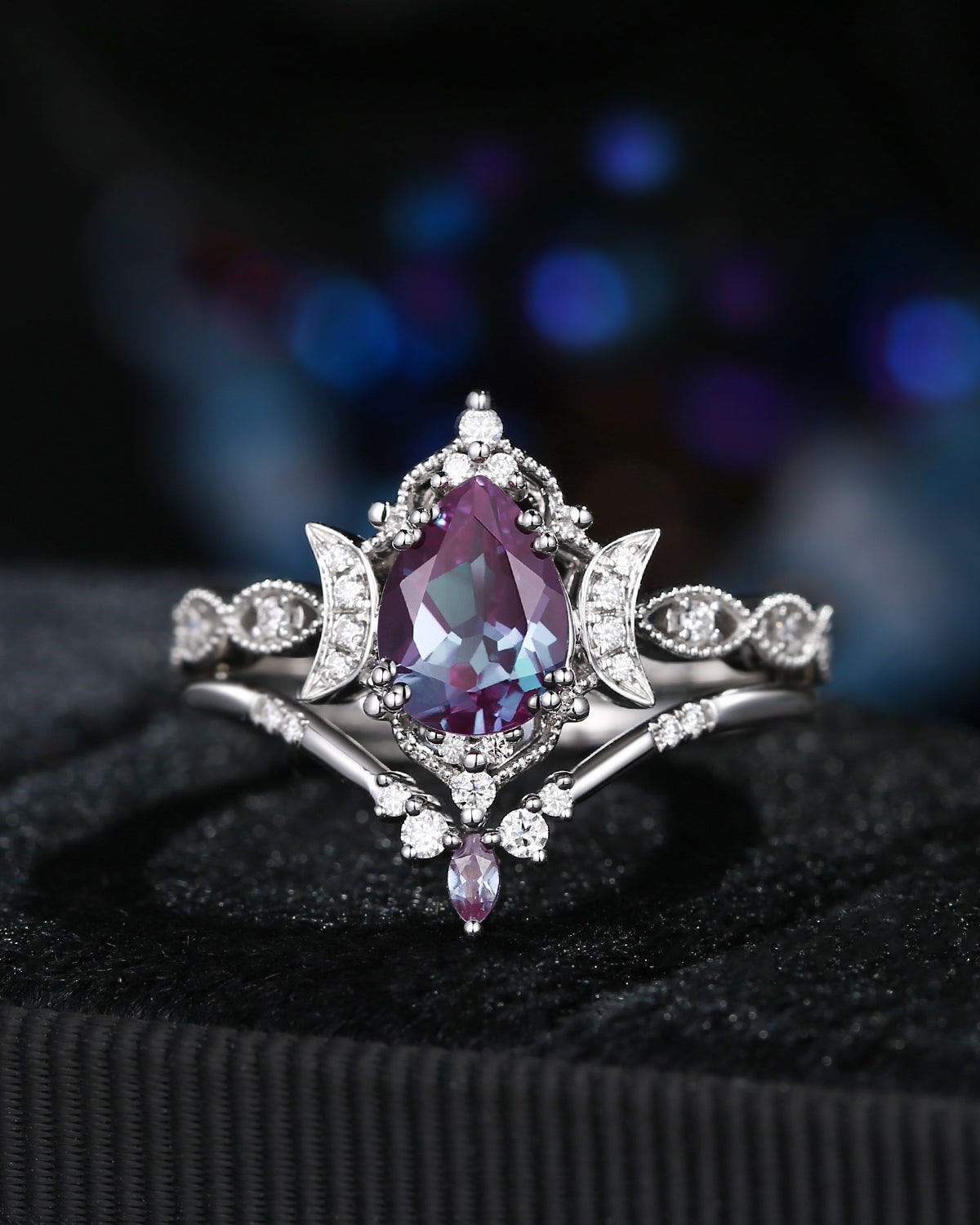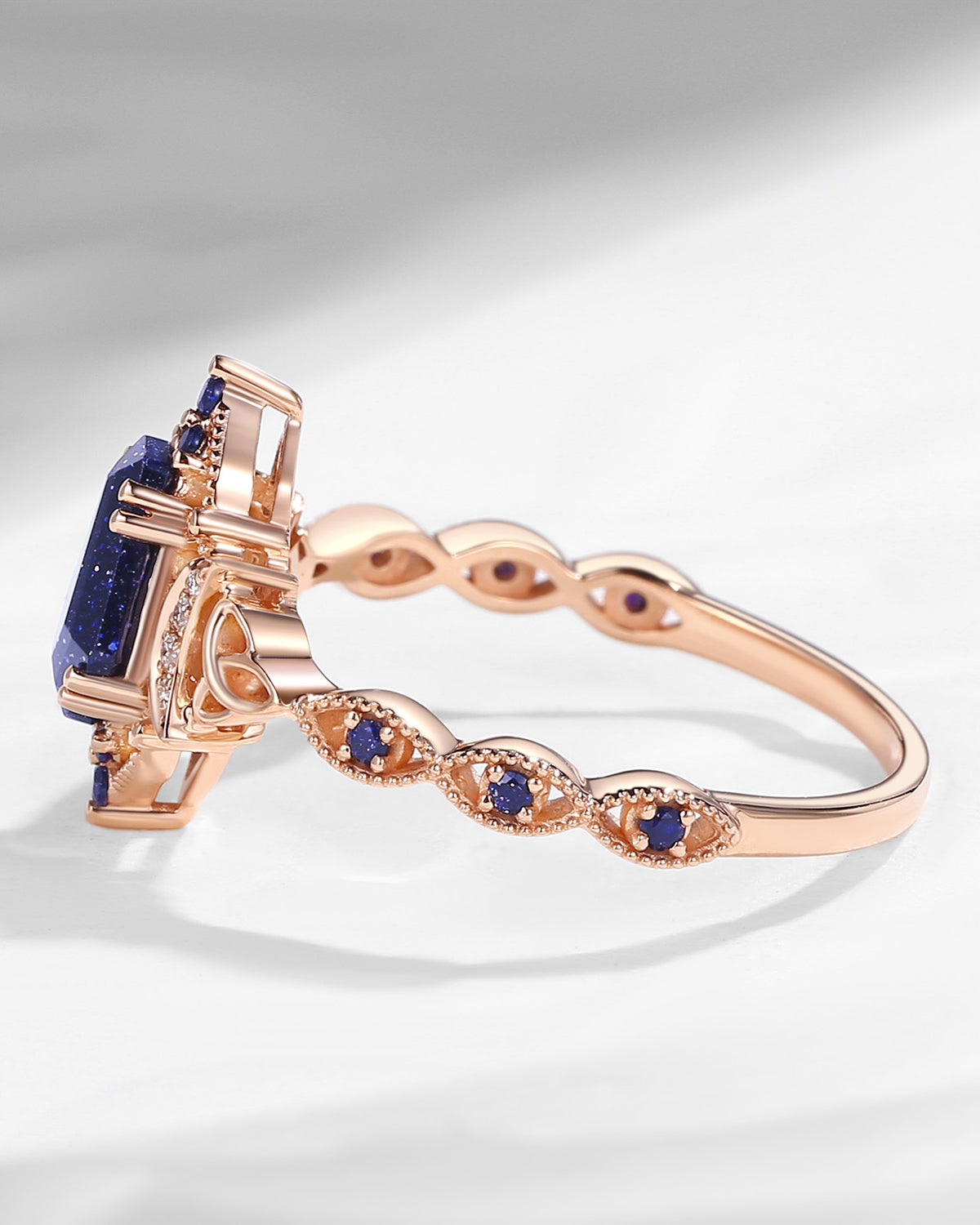 The new moon is often symbolic of new beginnings which this ring personifies for a couple starting their new life together. The crescent on the ring adorned with sparkling diamonds or other gemstones, like stars embellishing below the moon, making the ring both mystically charming and gorgeously radiant. This crescent shape ring is an ideal choice for a proposal or even daily wear, showcasing the wearer's personality in a unique way and serves as a beautiful promise of the future. Crescent moon is our proudest design by far. The crescent moon ring represents a new beginning, a process of starting over and vitality. Each crescent moon engagement ring is as unique as it can get while preserving a wonderful balance between vintage vibes and simplicity. The crescent moon ring can be of different shapes and different stone color even different side stones because here in StarlandUS, every one gets to create their own crescent moon, so as their own beginning.