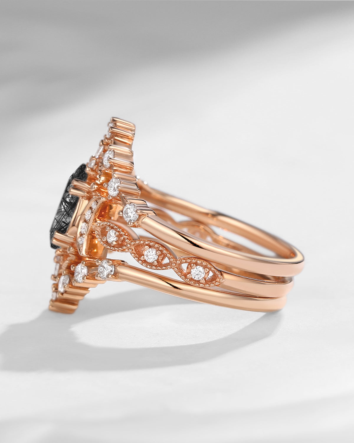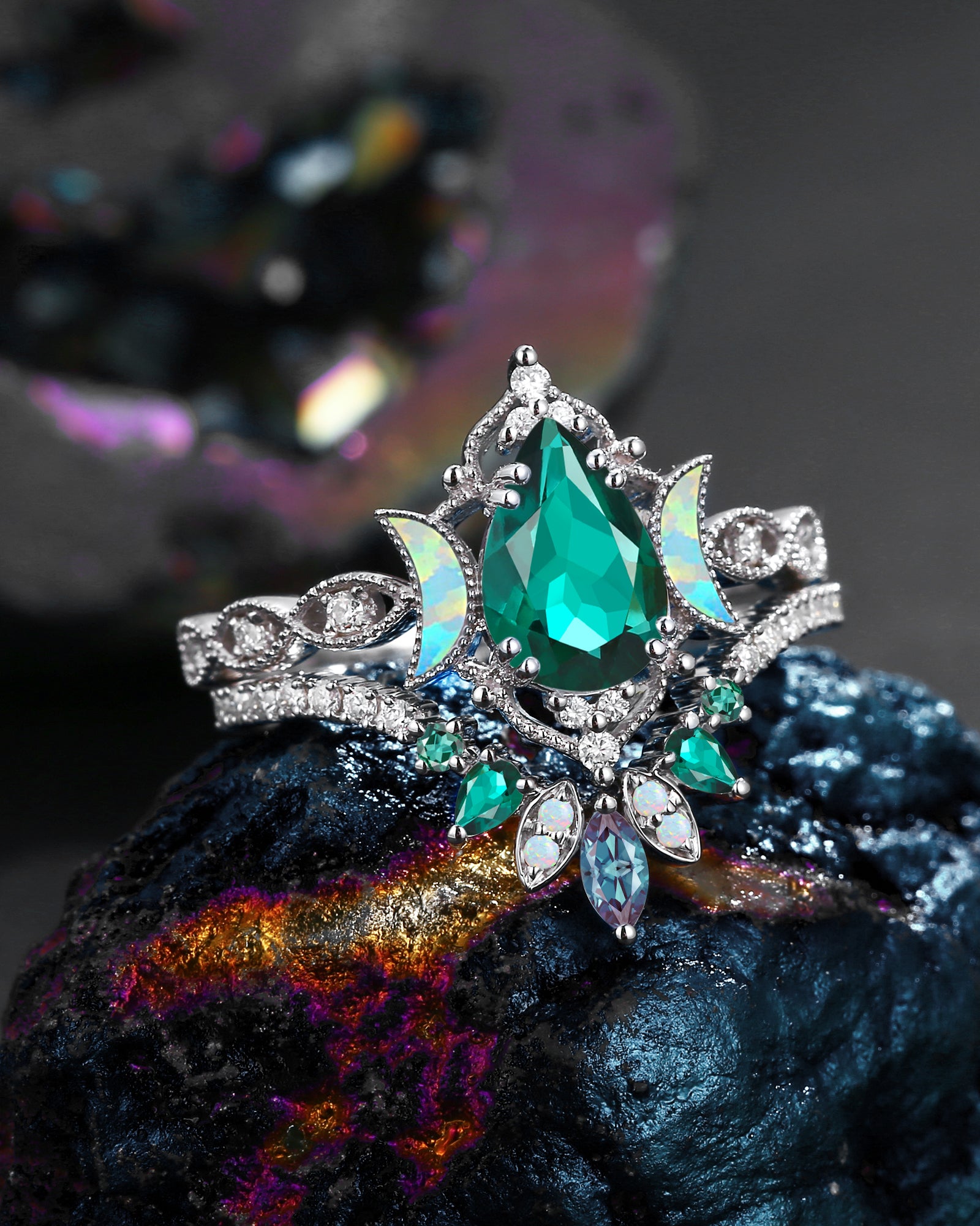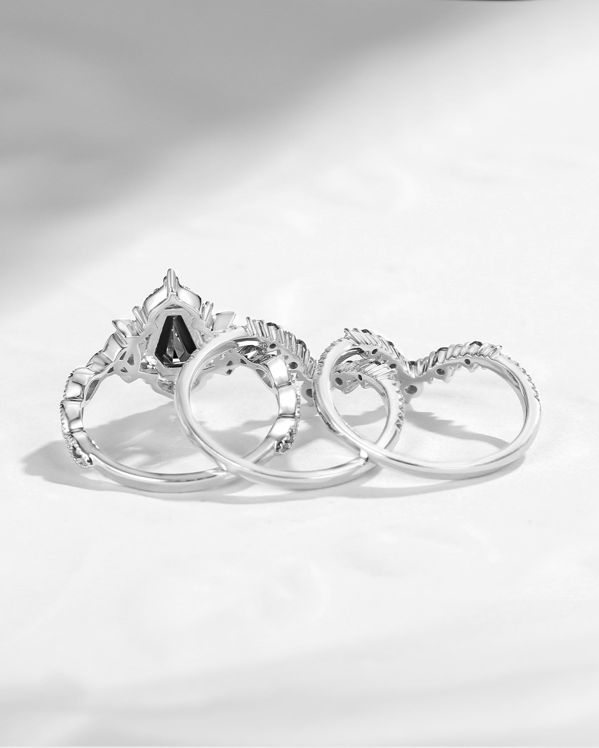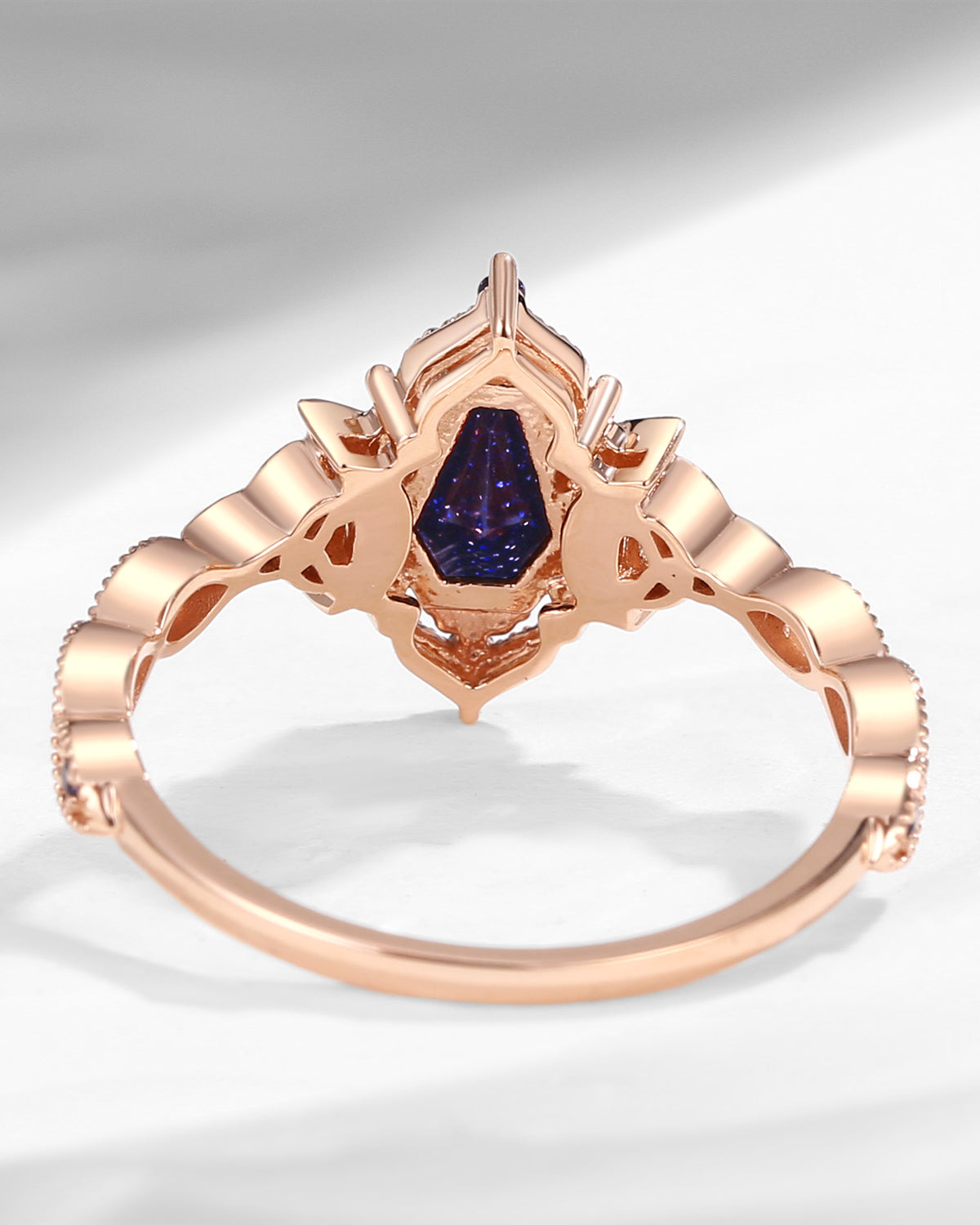 The new moon is often symbolic of new beginnings which this ring personifies for a couple starting their new life together. The crescent on the ring adorned with sparkling diamonds or other gemstones, like stars embellishing below the moon, making the ring both mystically charming and gorgeously radiant. This crescent shape ring is an ideal choice for a proposal or even daily wear, showcasing the wearer's personality in a unique way and serves as a beautiful promise of the future. Crescent moon is our proudest design by far. The crescent moon ring represents a new beginning, a process of starting over and vitality. Each crescent moon engagement ring is as unique as it can get while preserving a wonderful balance between vintage vibes and simplicity. The crescent moon ring can be of different shapes and different stone color even different side stones because here in StarlandUS, every one gets to create their own crescent moon, so as their own beginning.