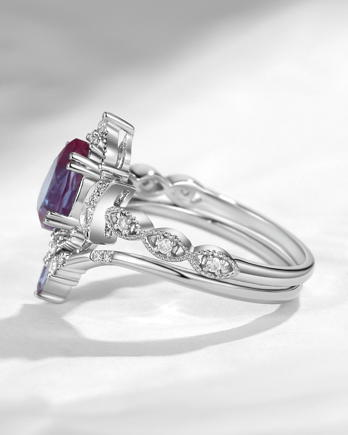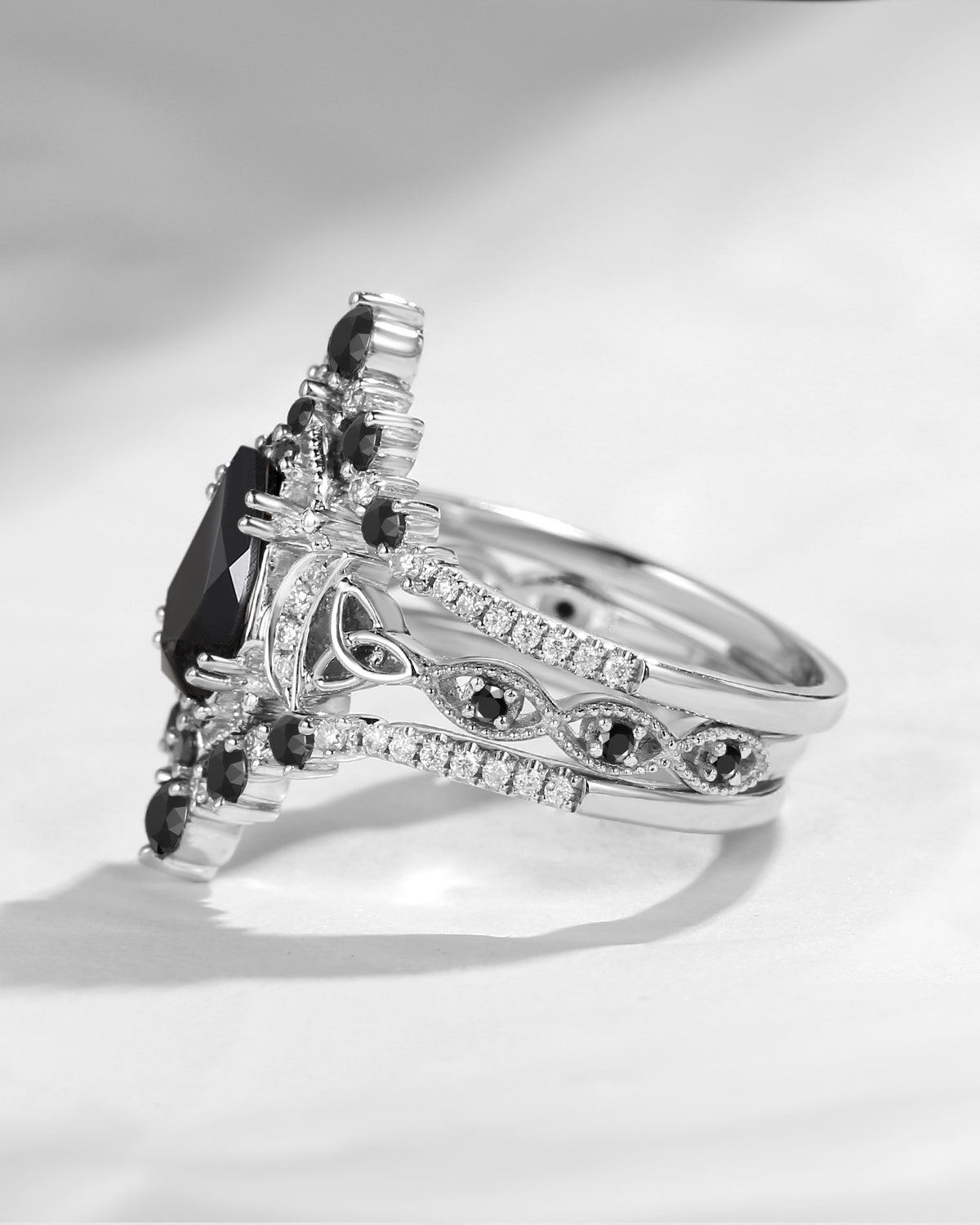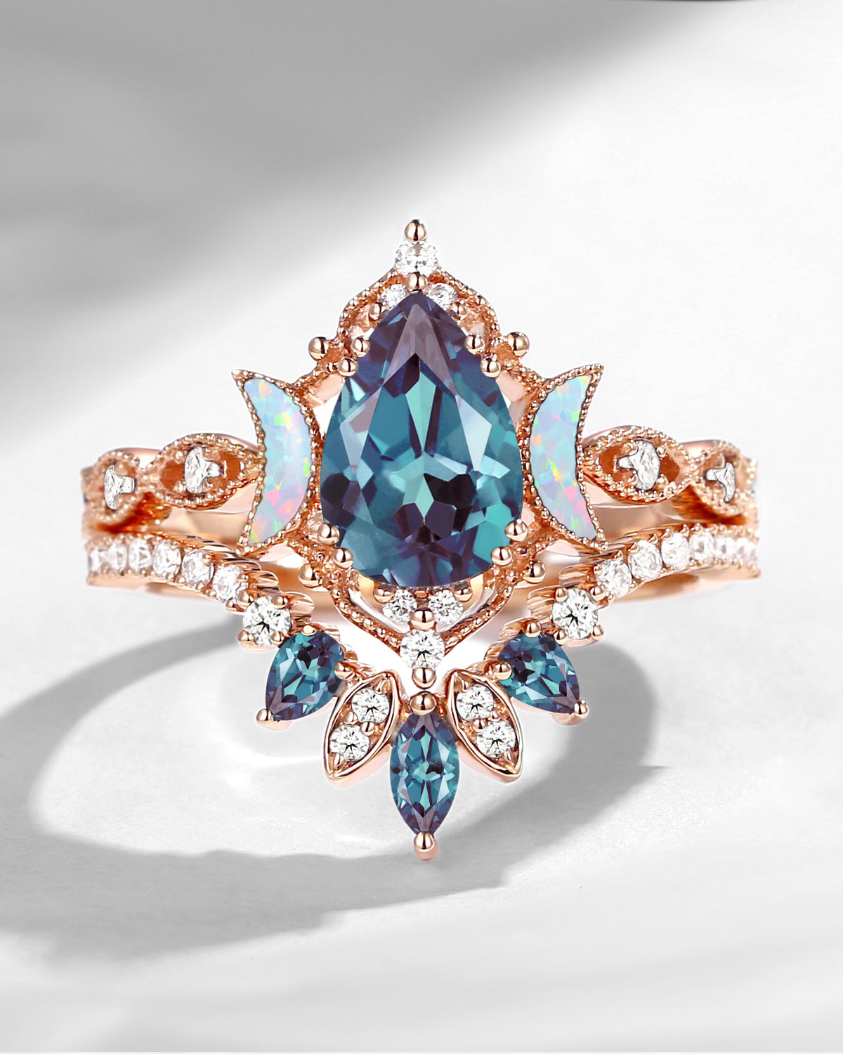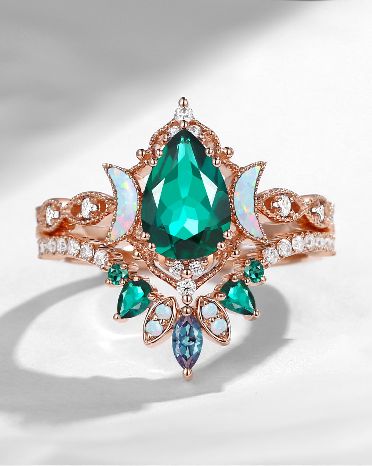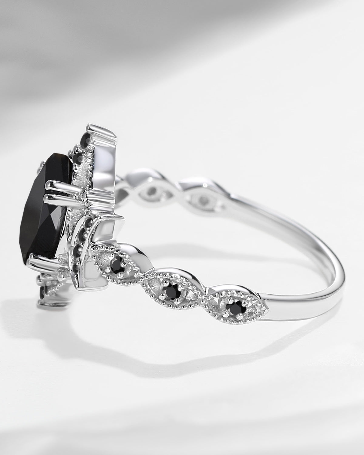 The new moon is often symbolic of new beginnings which this ring personifies for a couple starting their new life together. The crescent on the ring adorned with sparkling diamonds or other gemstones, like stars embellishing below the moon, making the ring both mystically charming and gorgeously radiant. This crescent shape ring is an ideal choice for a proposal or even daily wear, showcasing the wearer's personality in a unique way and serves as a beautiful promise of the future. Crescent moon is our proudest design by far. The crescent moon ring represents a new beginning, a process of starting over and vitality. Each crescent moon engagement ring is as unique as it can get while preserving a wonderful balance between vintage vibes and simplicity. The crescent moon ring can be of different shapes and different stone color even different side stones because here in StarlandUS, every one gets to create their own crescent moon, so as their own beginning.