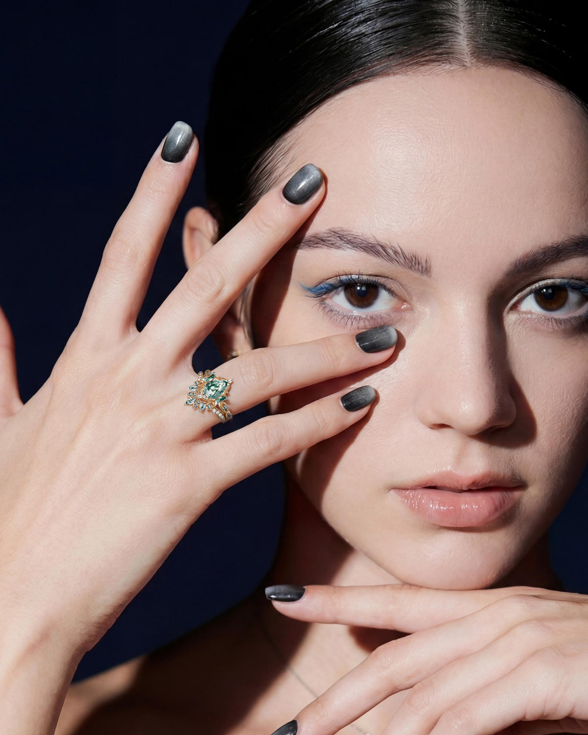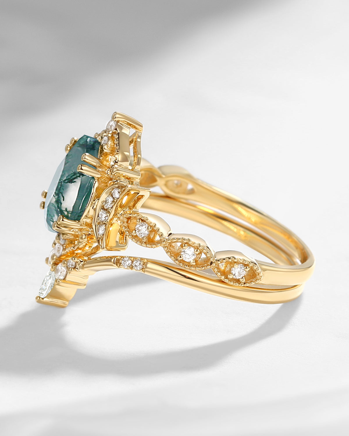The new moon is often symbolic of new beginnings which this ring personifies for a couple starting their new life together. The crescent on the ring adorned with sparkling diamonds or other gemstones, like stars embellishing below the moon, making the ring both mystically charming and gorgeously radiant. This crescent shape ring is an ideal choice for a proposal or even daily wear, showcasing the wearer's personality in a unique way and serves as a beautiful promise of the future. Crescent moon is our proudest design by far. The crescent moon ring represents a new beginning, a process of starting over and vitality. Each crescent moon engagement ring is as unique as it can get while preserving a wonderful balance between vintage vibes and simplicity. The crescent moon ring can be of different shapes and different stone color even different side stones because here in StarlandUS, every one gets to create their own crescent moon, so as their own beginning.