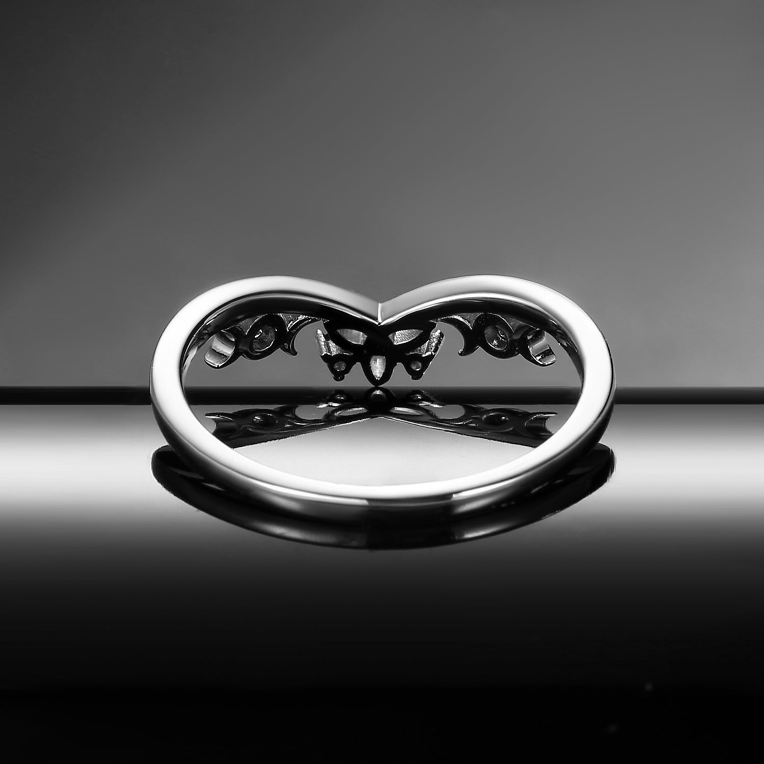 Gothic Style Triangle Cut Garnet Bat Inspired Curved Wedding Band