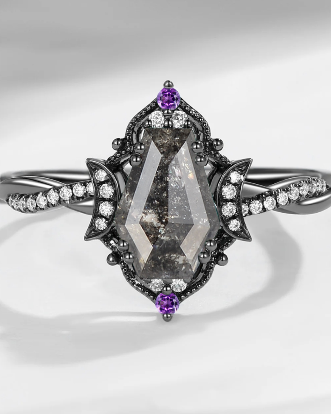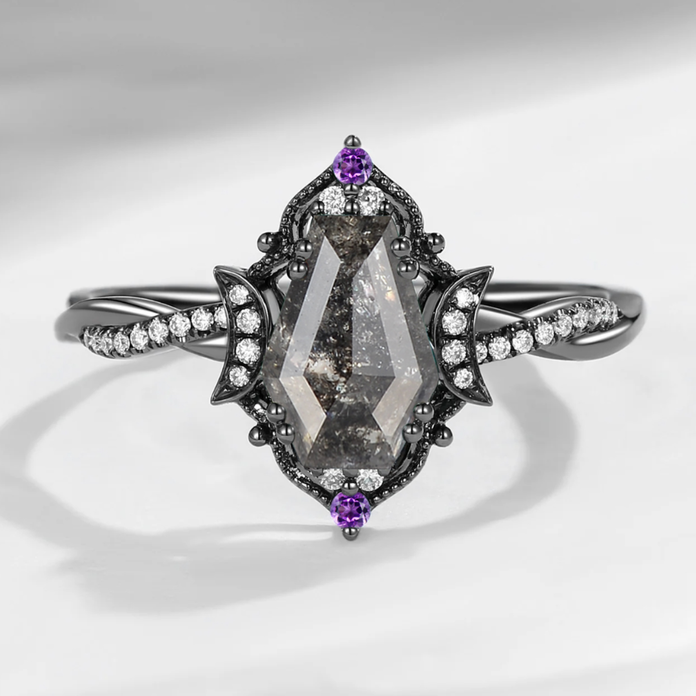 Crescent Moon | Coffin Salt And Pepper Diamond 'Sweet Revenge' Engagement Ring