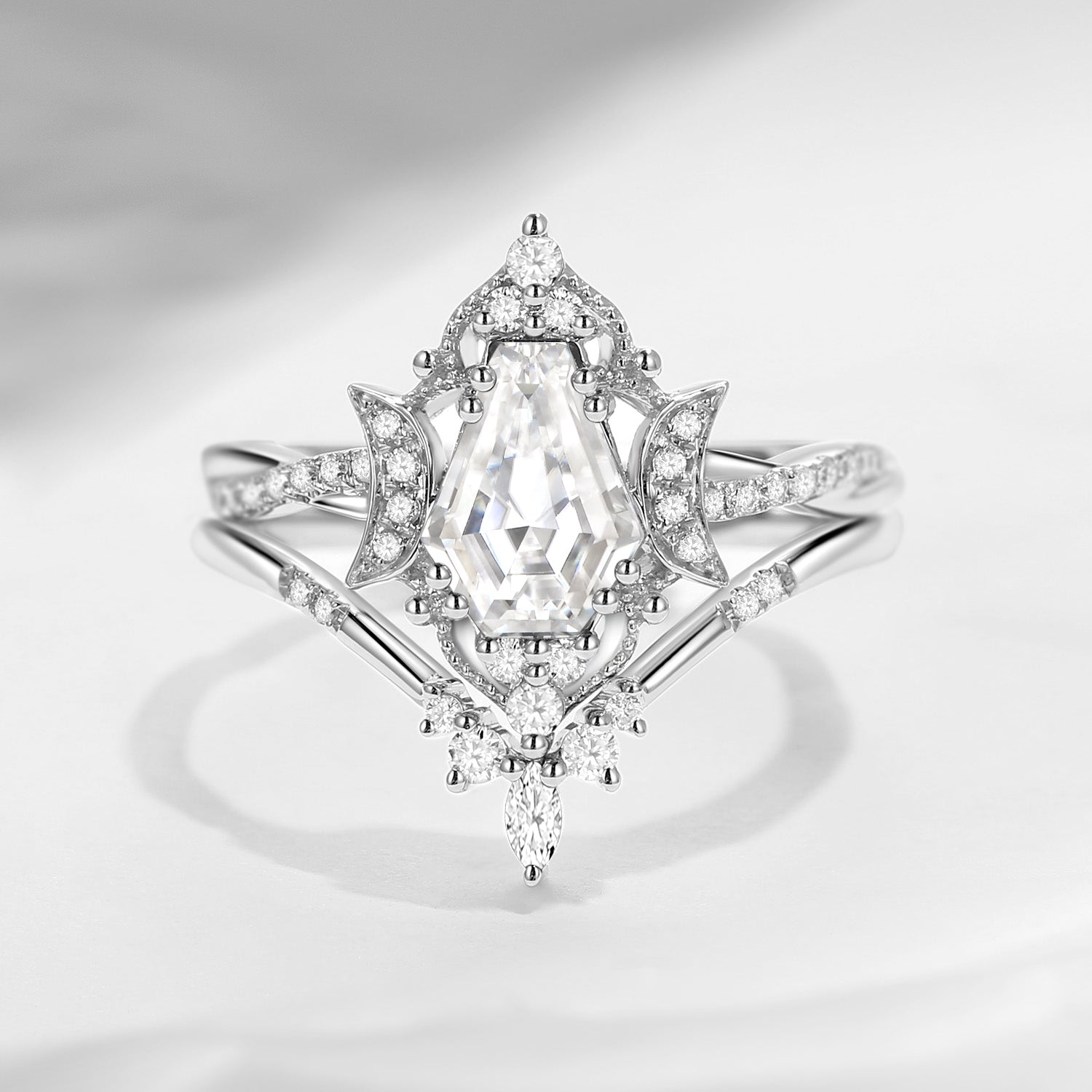 Crescent Moon | 1.0-2.0ct Coffin Cut Lab Diamond Infinity Galaxy Engagement Ring Set 2pcs