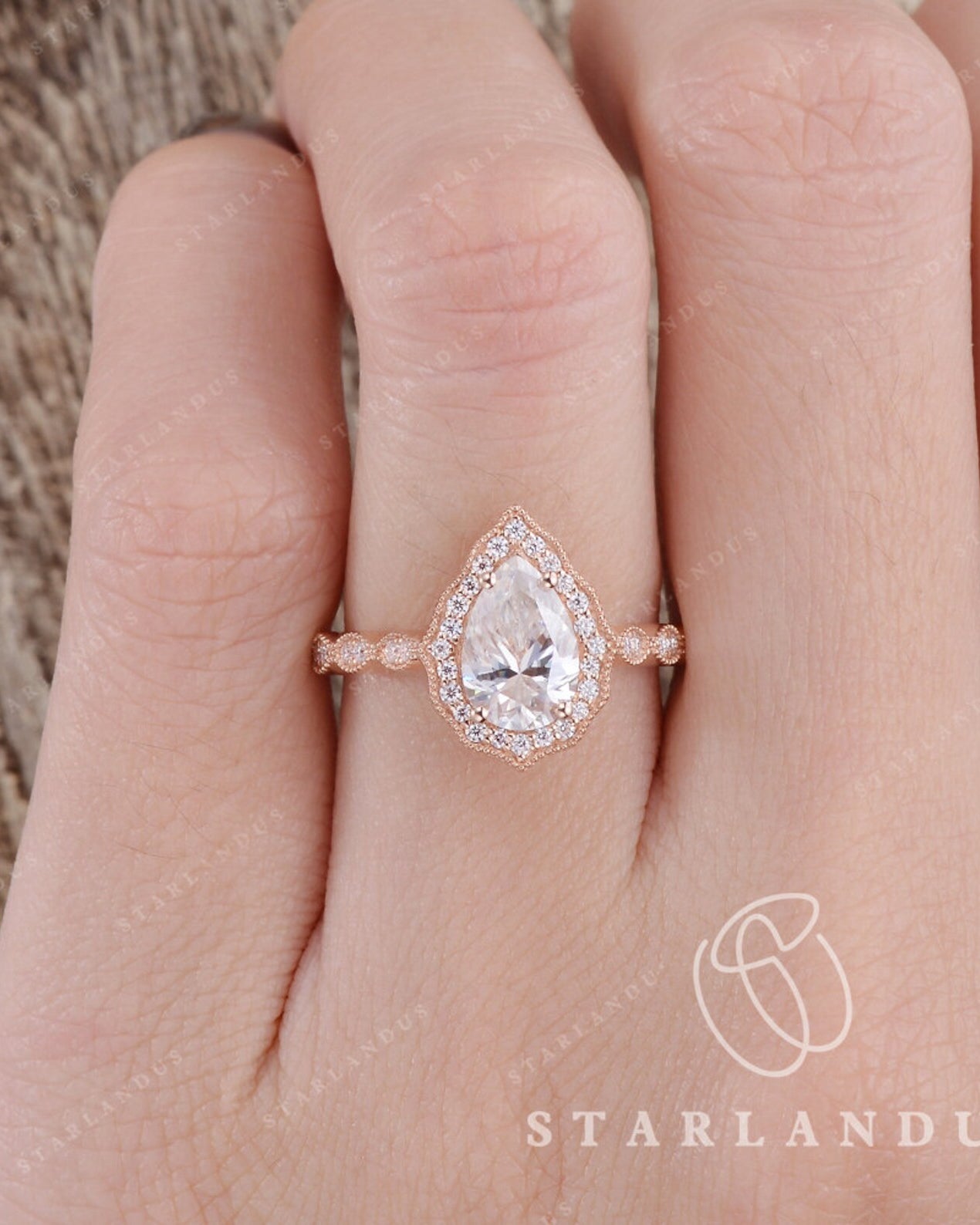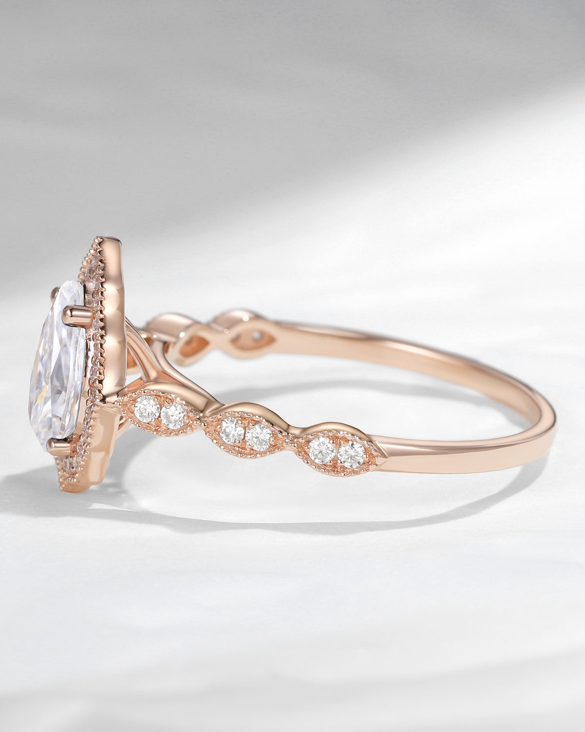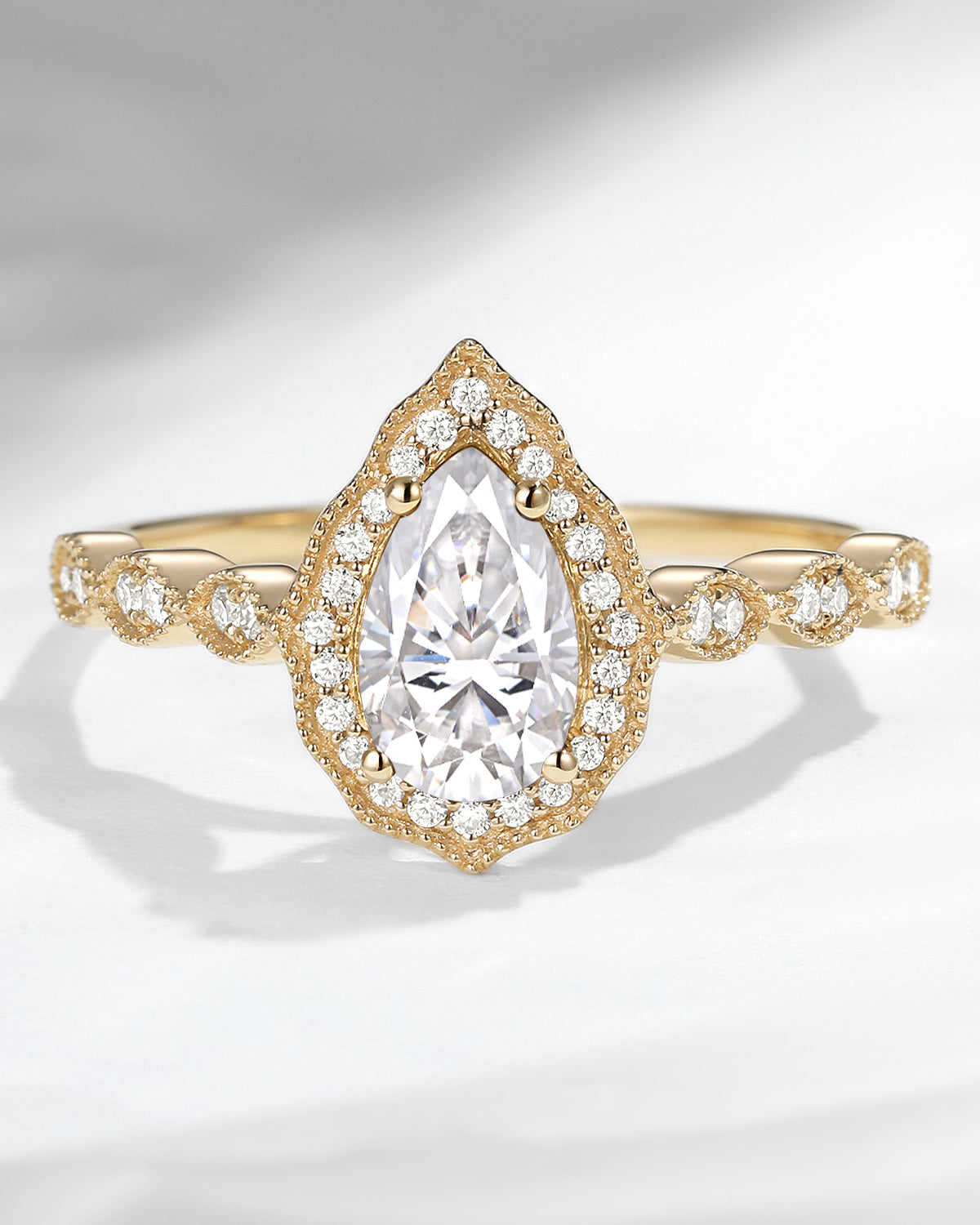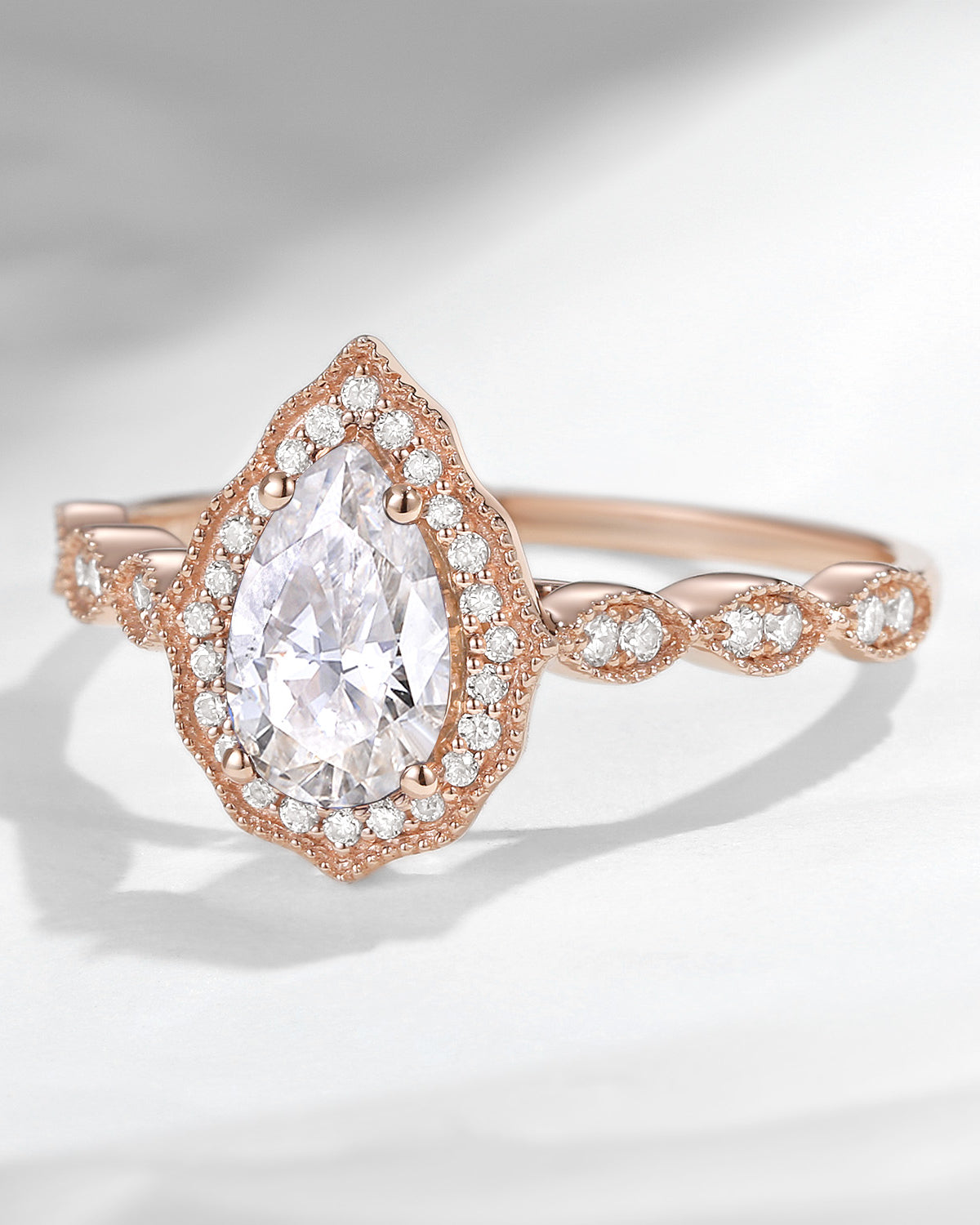 1.0-2.0ct Pear Cut Lab Diamond Halo Engagement Ring