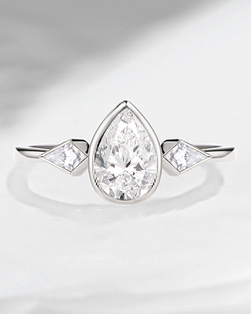 Solitaire Pear Shaped Lab Diamond Engagement Ring - Kite Wing
