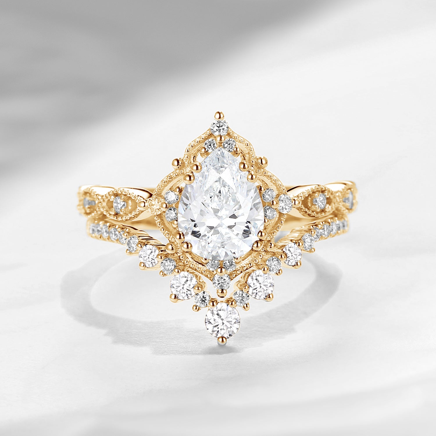 1.0-2.0ct Vintage Inspired Pear Cut Milgrain Lab Diamond Engagement Ring Set 3pcs - Diva