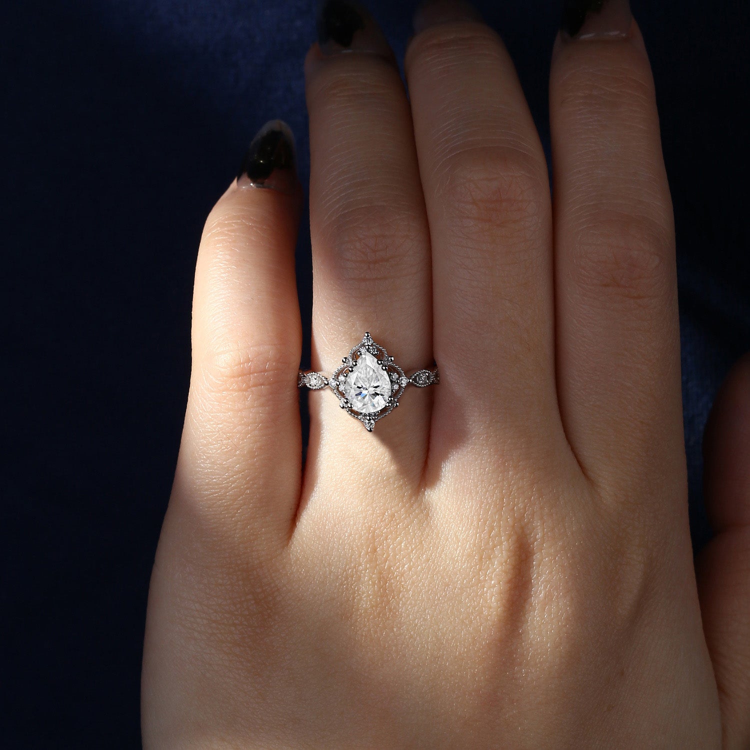 Crescent Moon | Unique 1.0-2.0ct Pear Shaped Lab Diamond Engagement Ring
