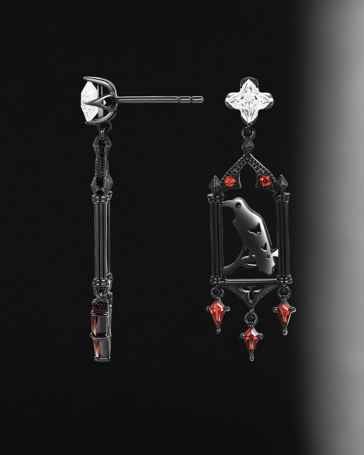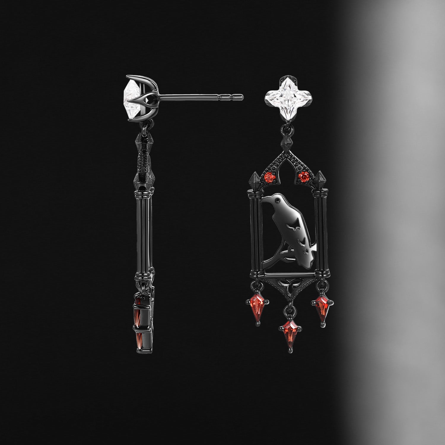 Unique Gothic Style Black Crow Inspired Moissanite Earrings