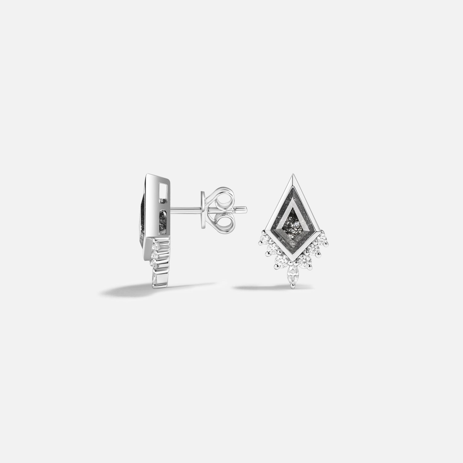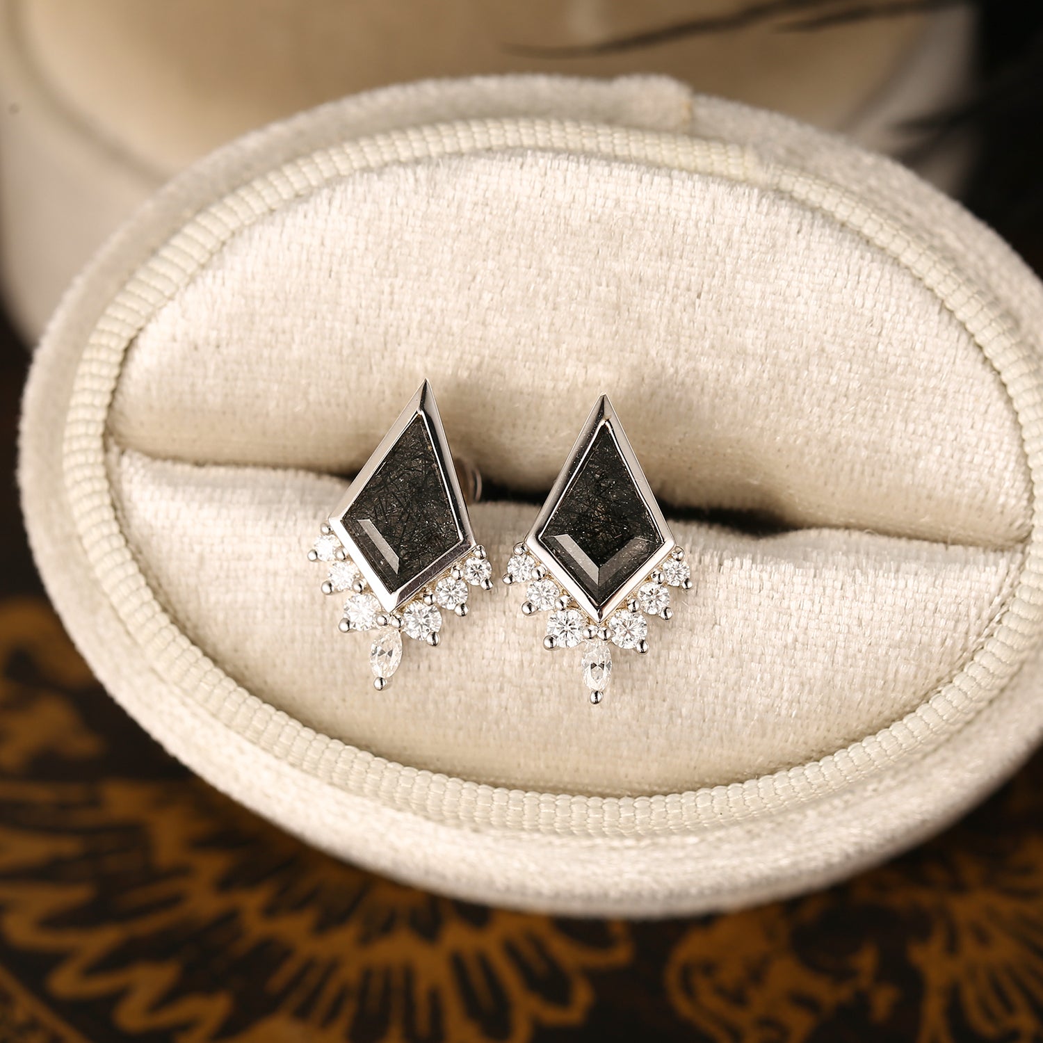 Unique Coffin Kite Cut Black Rutilated Quartz Earrings
