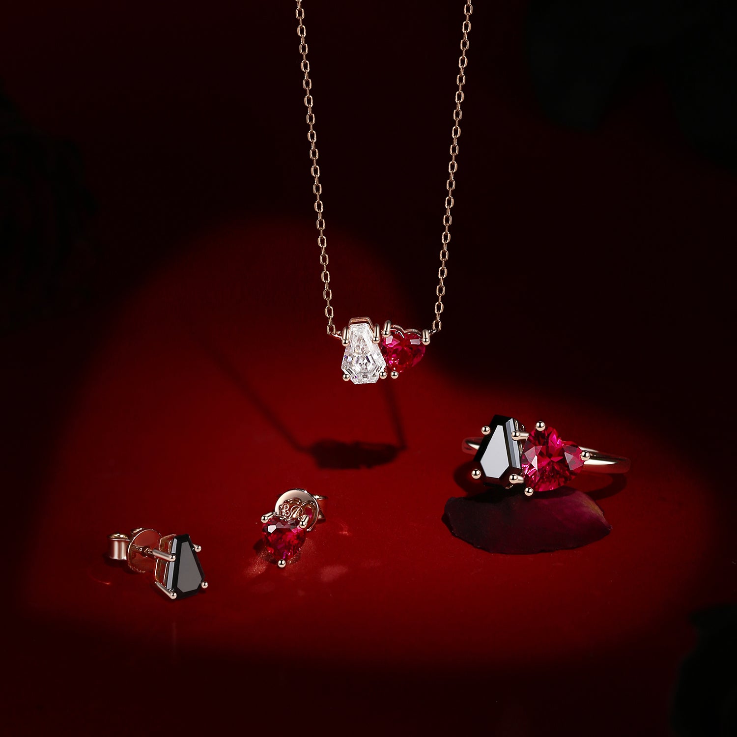 Lab Ruby Heart Shaped And Sword Earrings - Cupid's Arrow