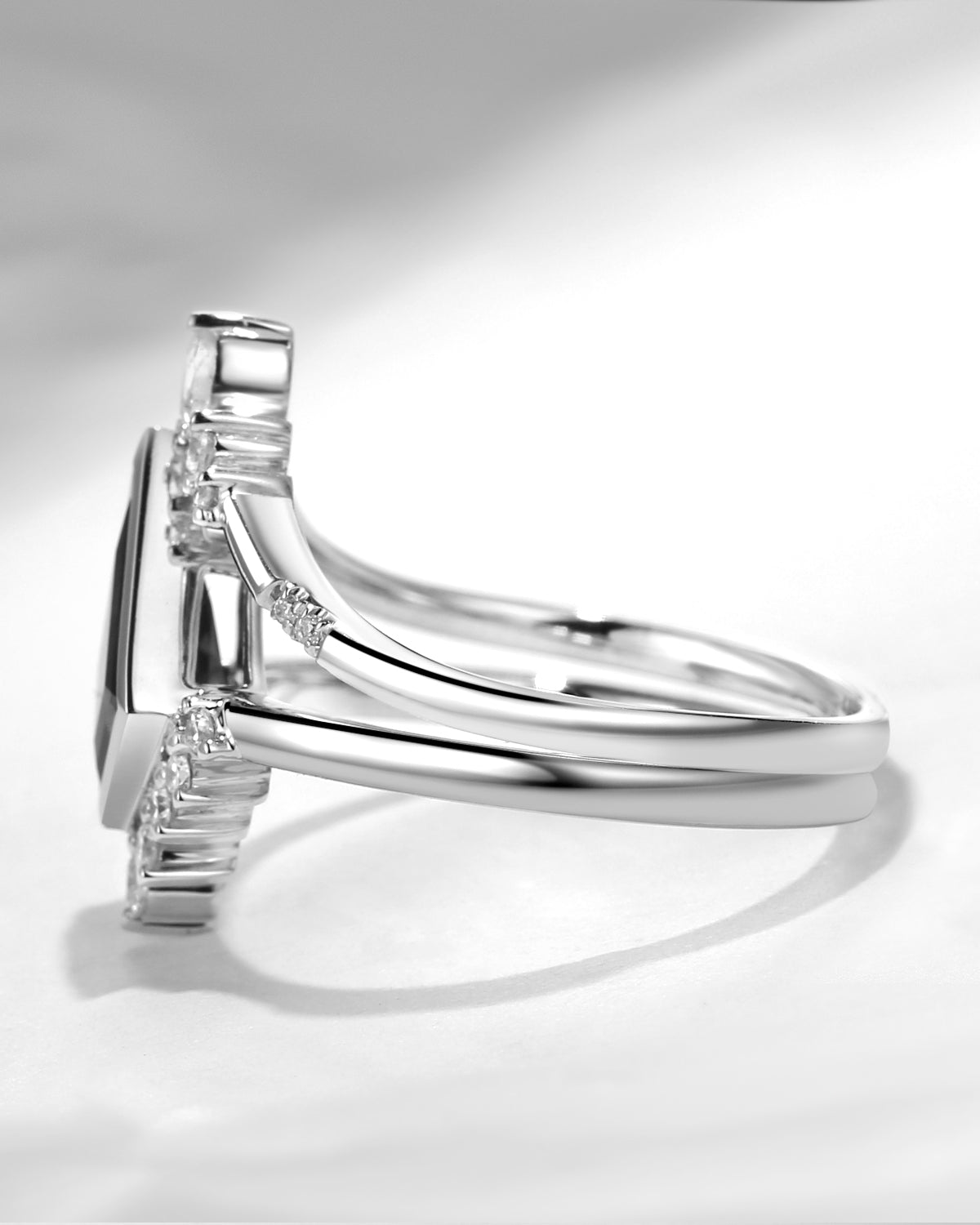 Unique Coffin Emerald Engagement Star Ring Set 2pcs - Coffin Kite