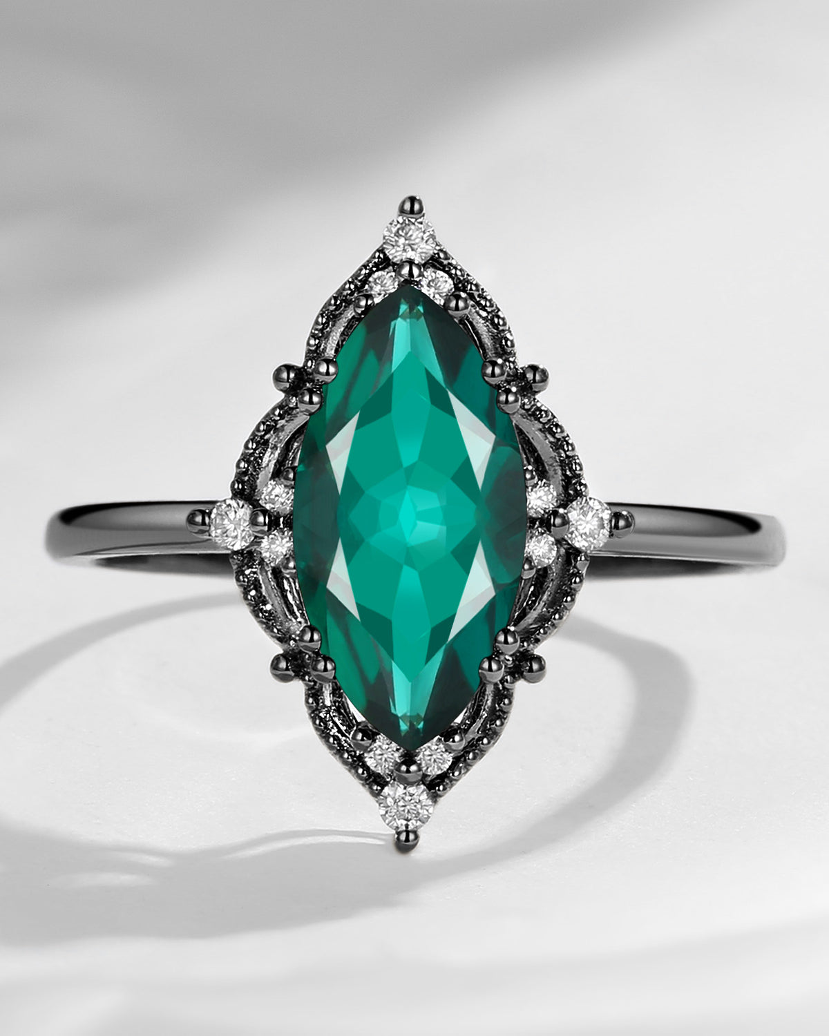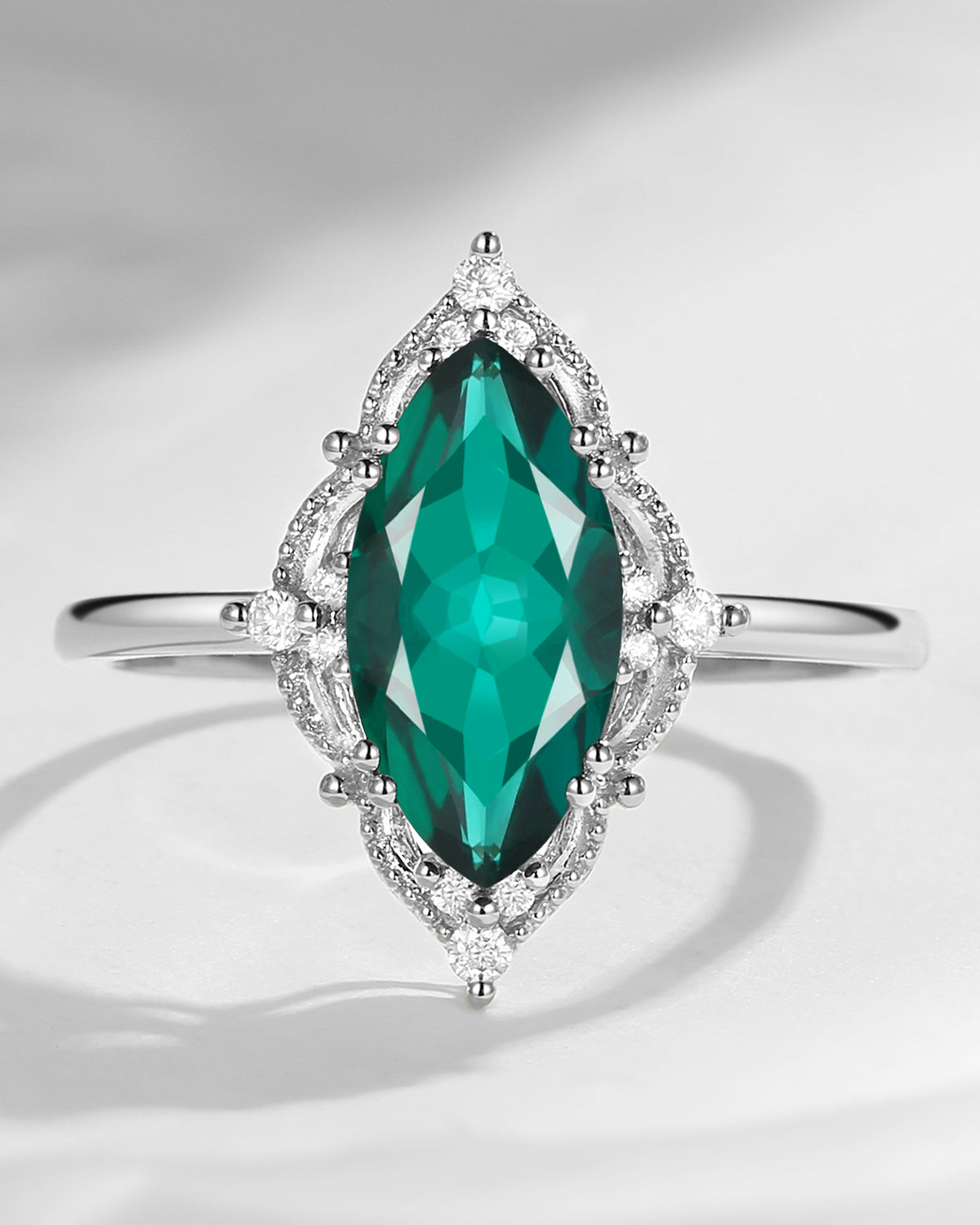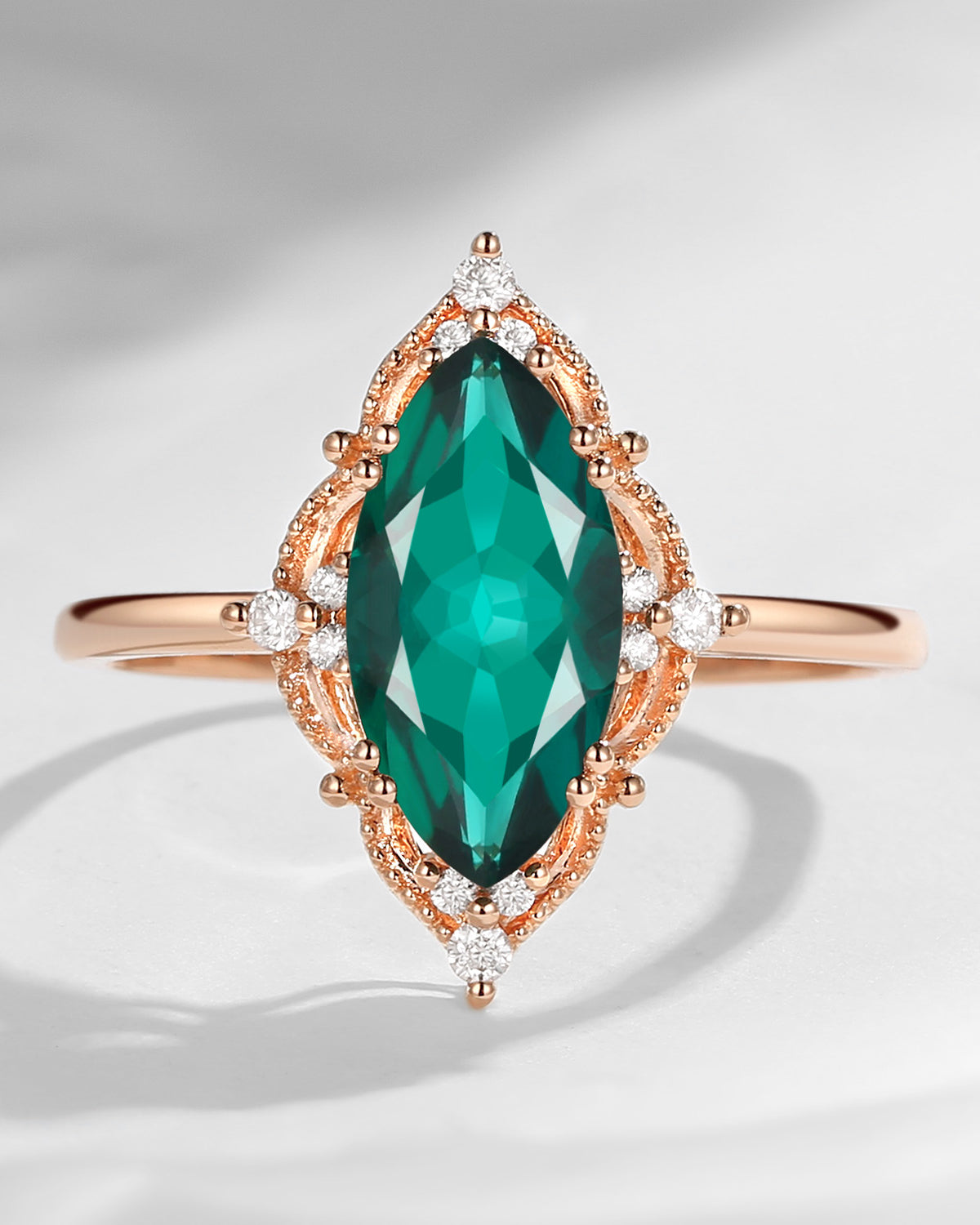 2.5ct 18K Marquise Vintage Inspired Lab Emerald Engagement Ring