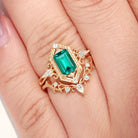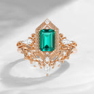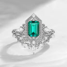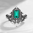 Emerald Cut 'Fallen Aegis' Gothic Engagement Ring Set 2pcs