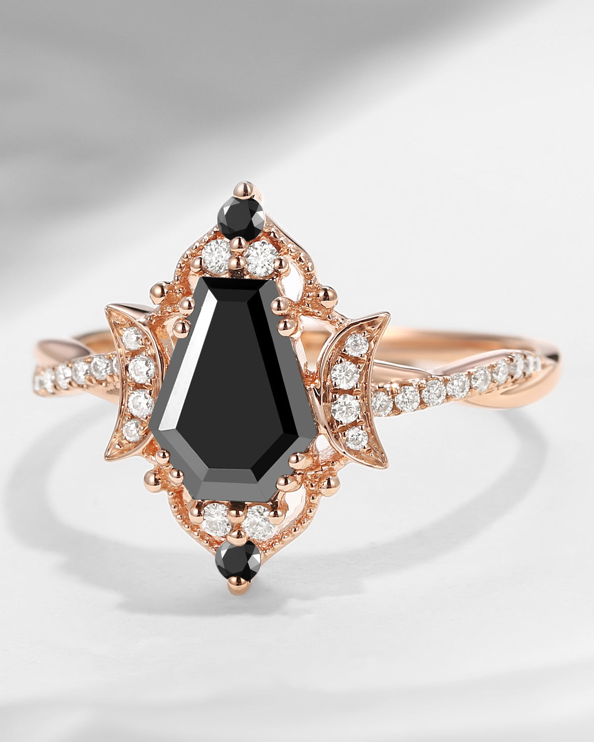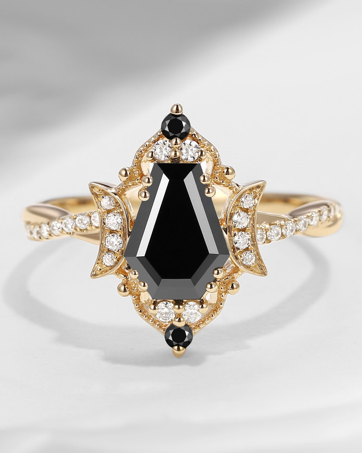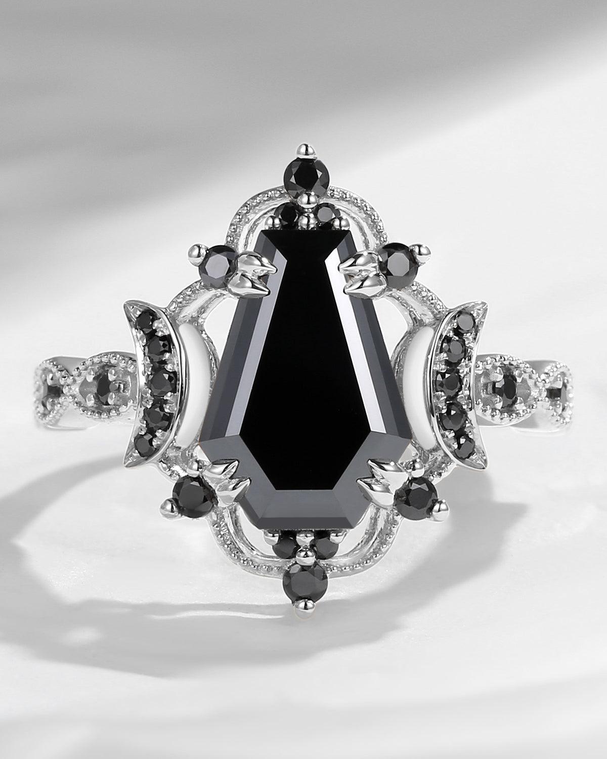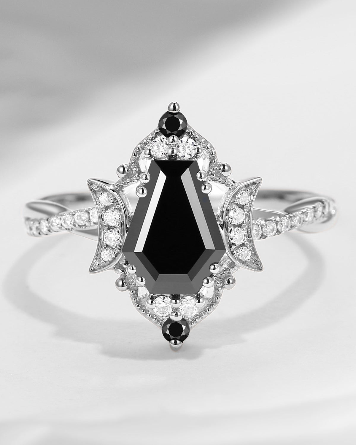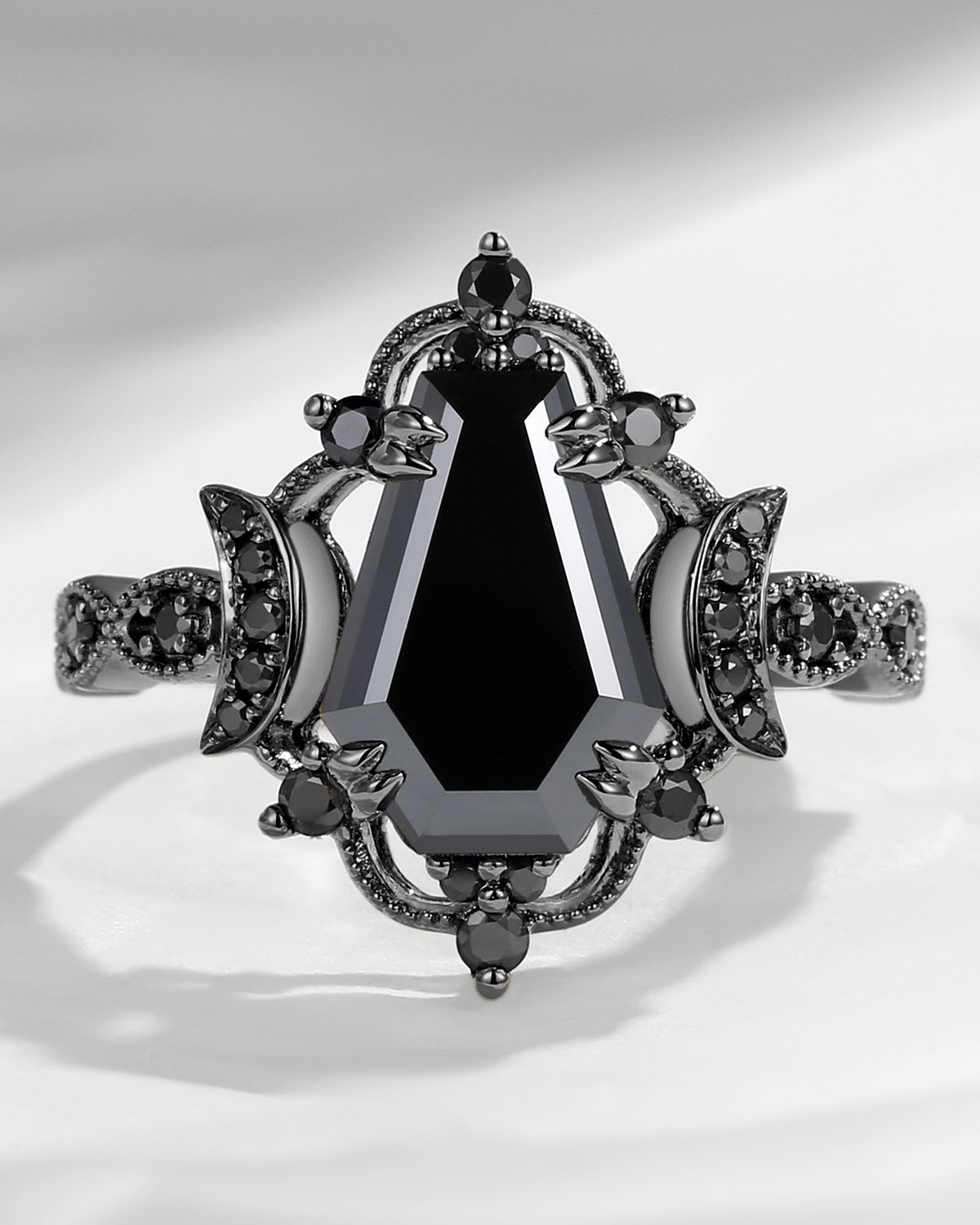 Crescent Moon | Coffin Cut Black Moissanite Engagement Ring - Dark Crown