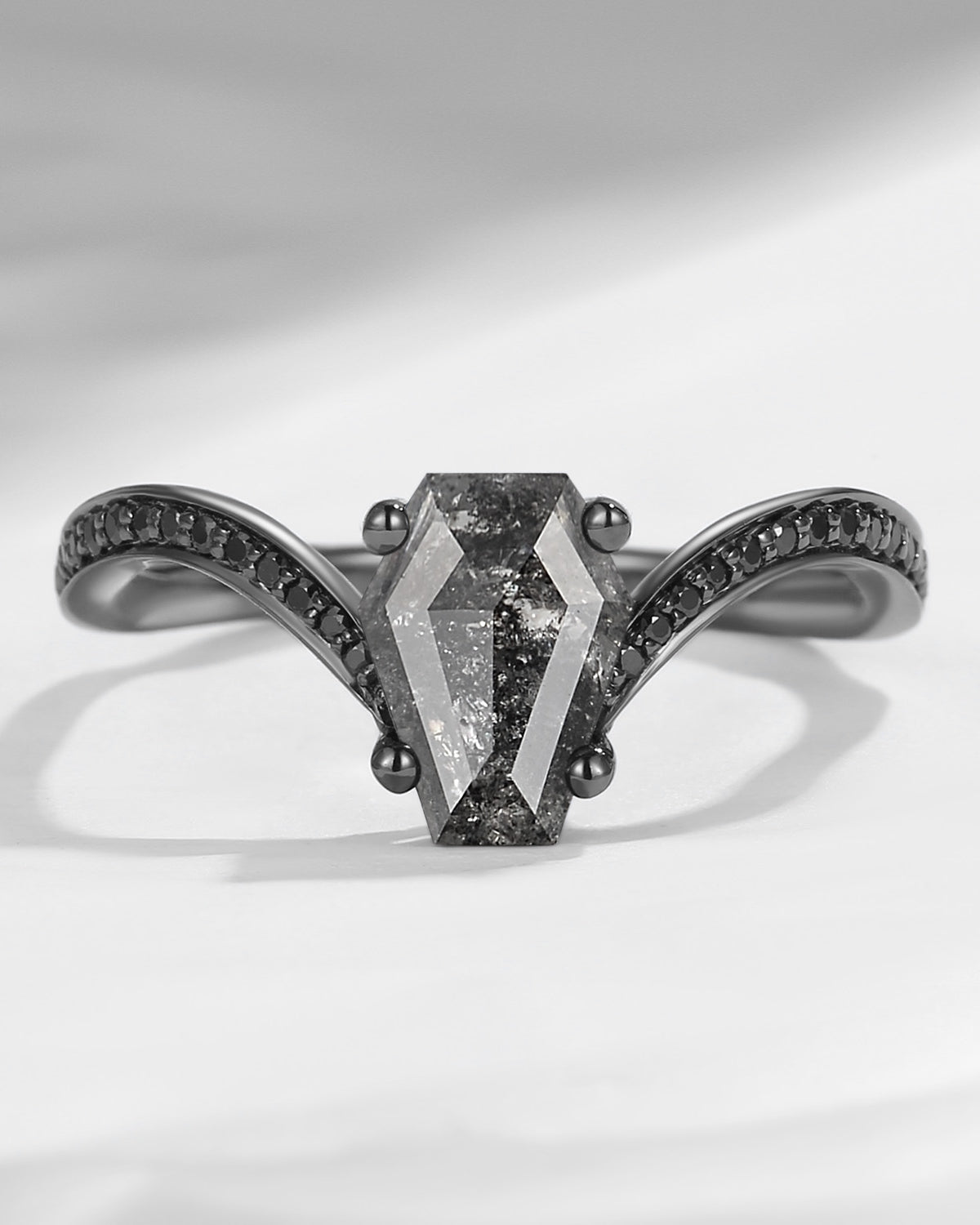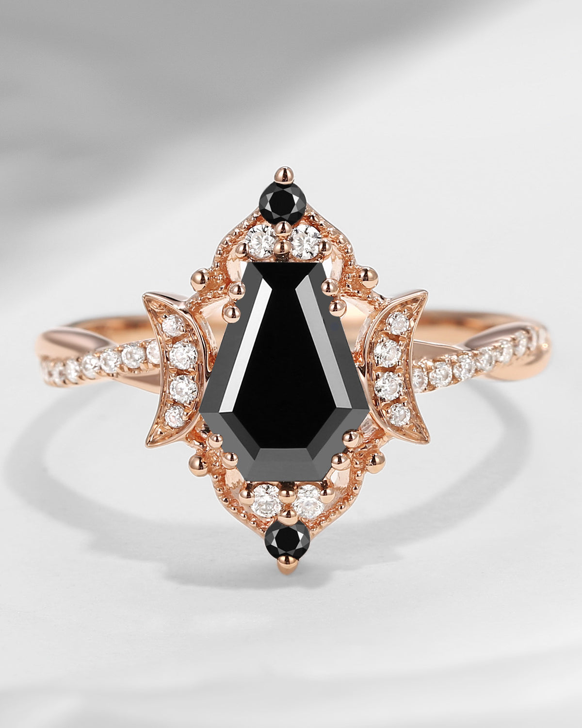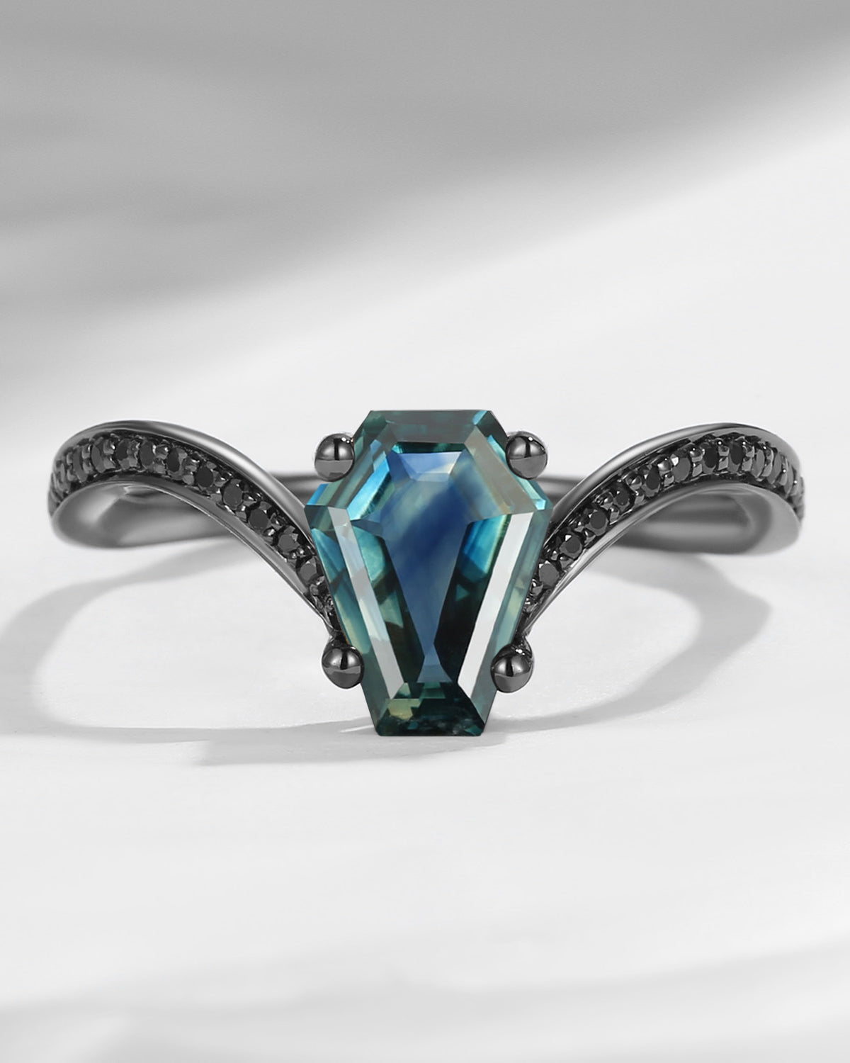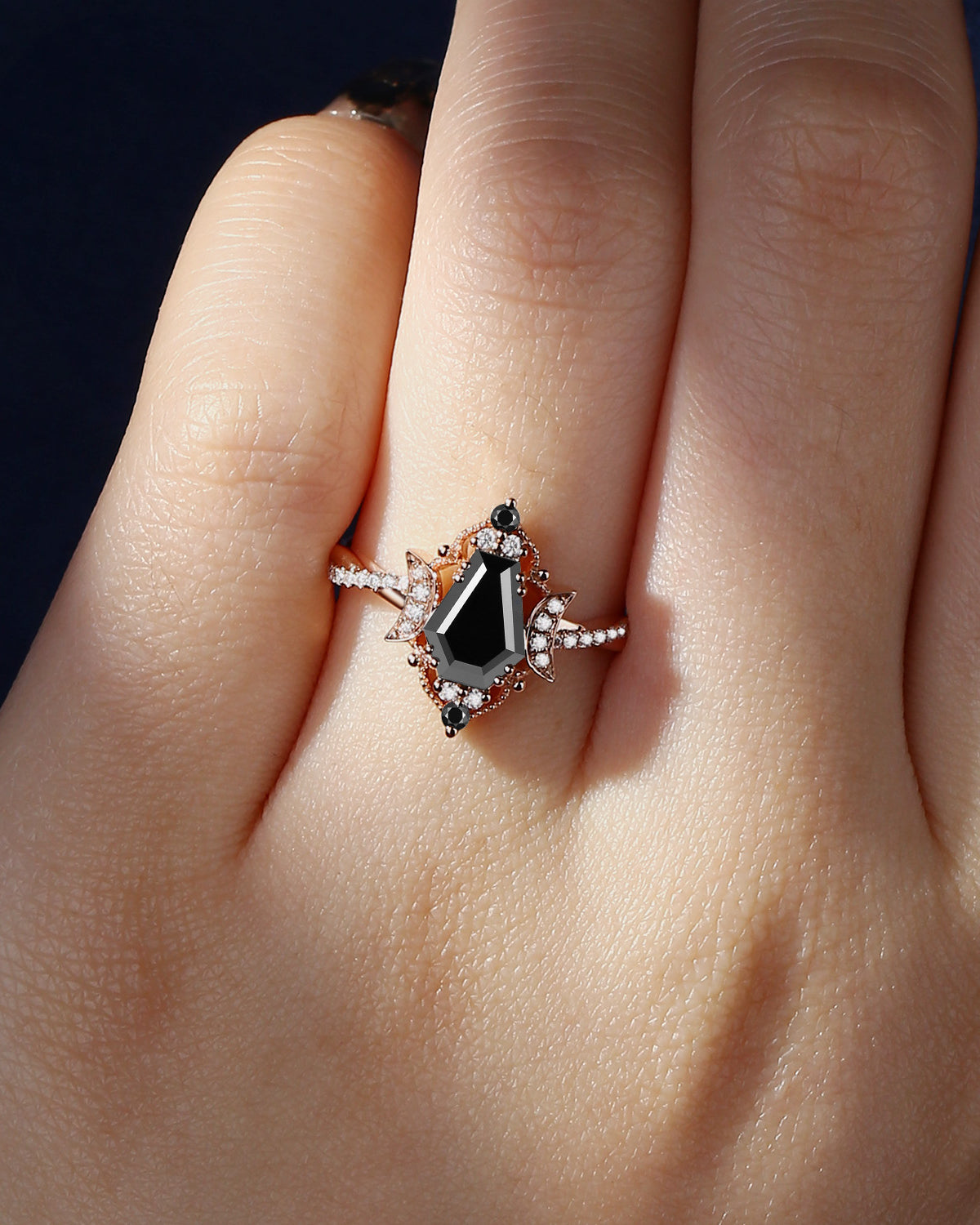 Crescent Moon | Coffin Cut Black Moissanite Engagement Ring - Dark Crown