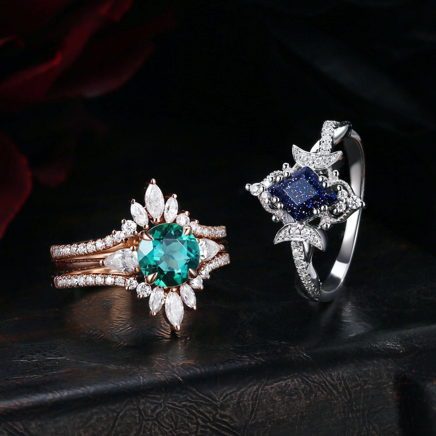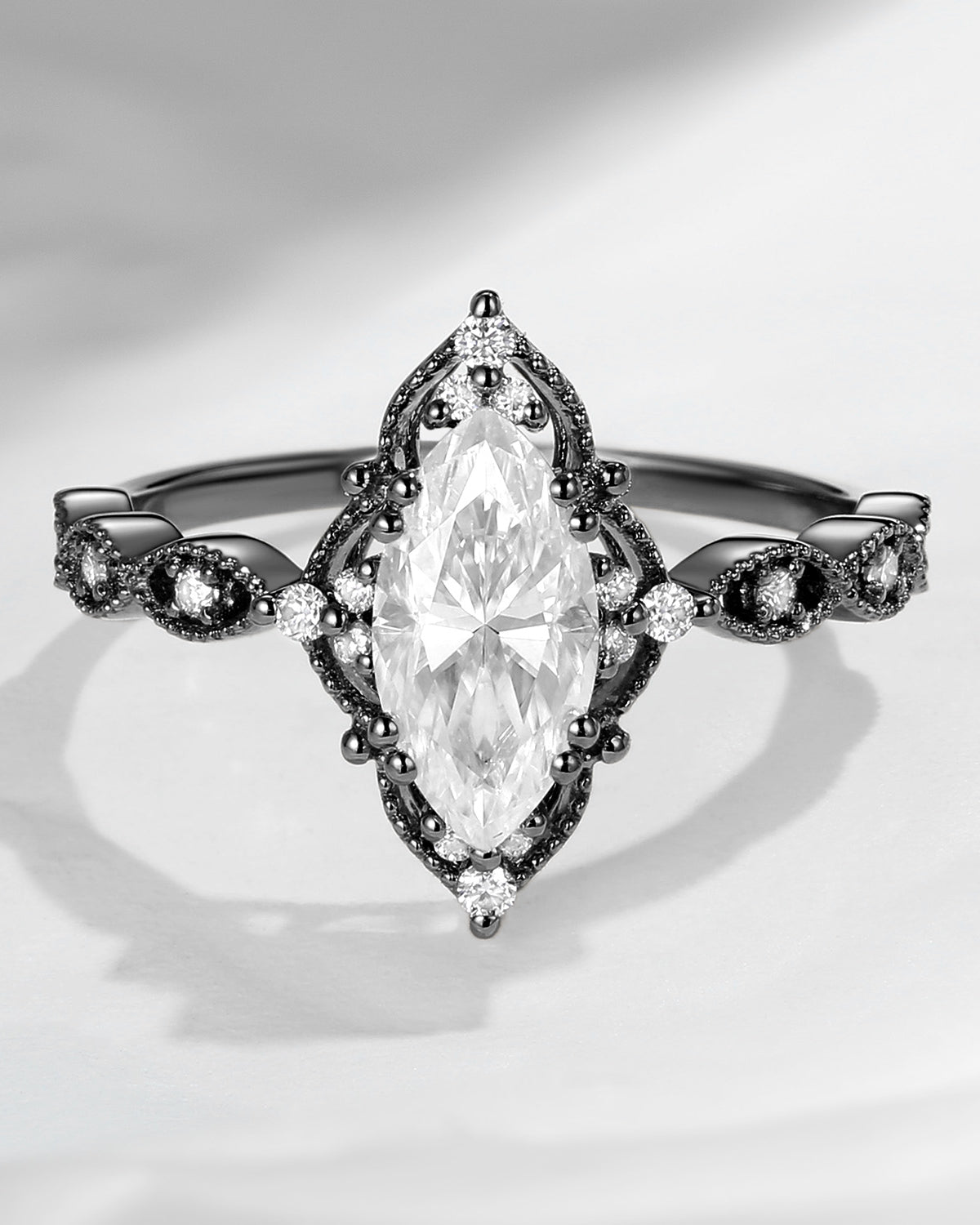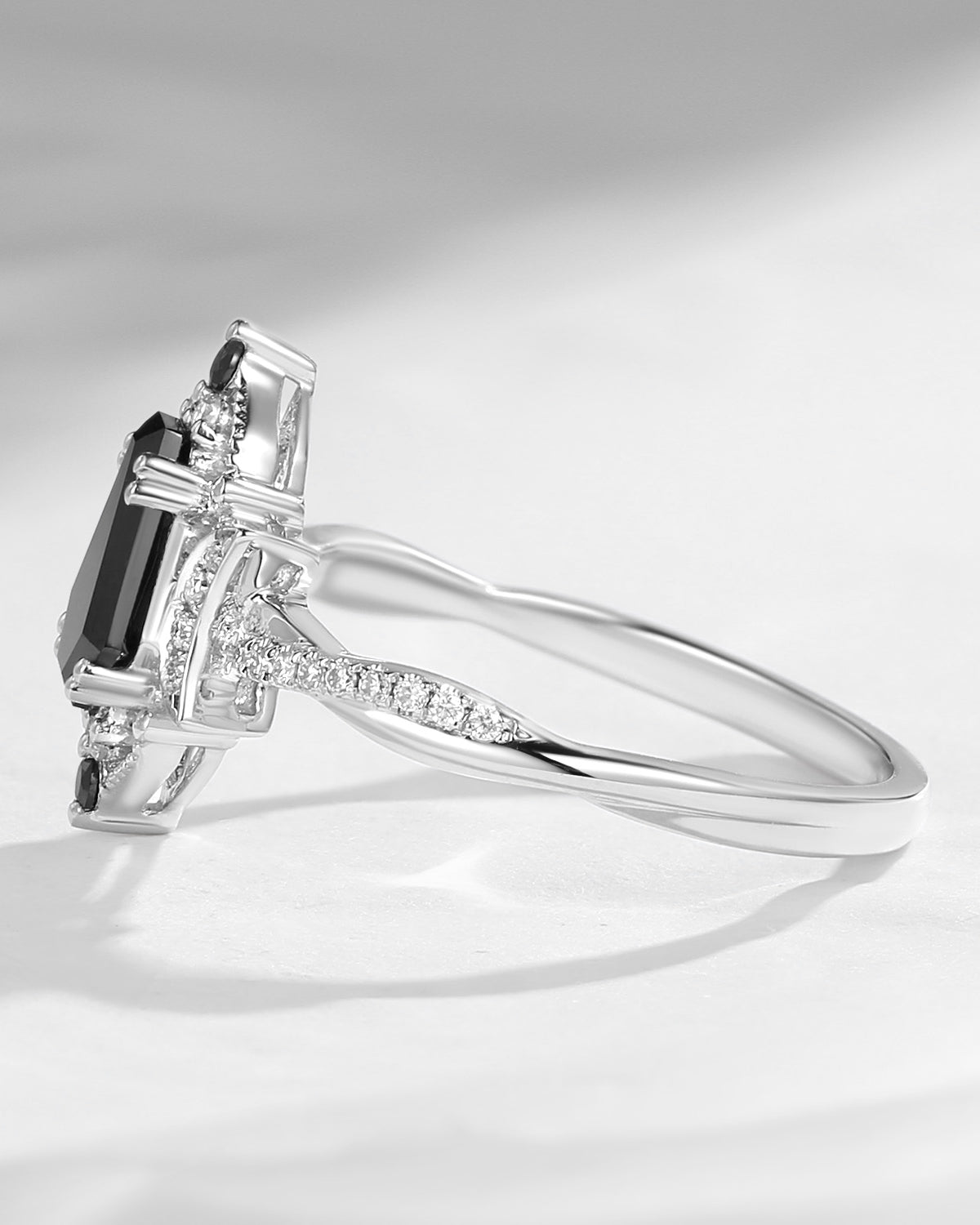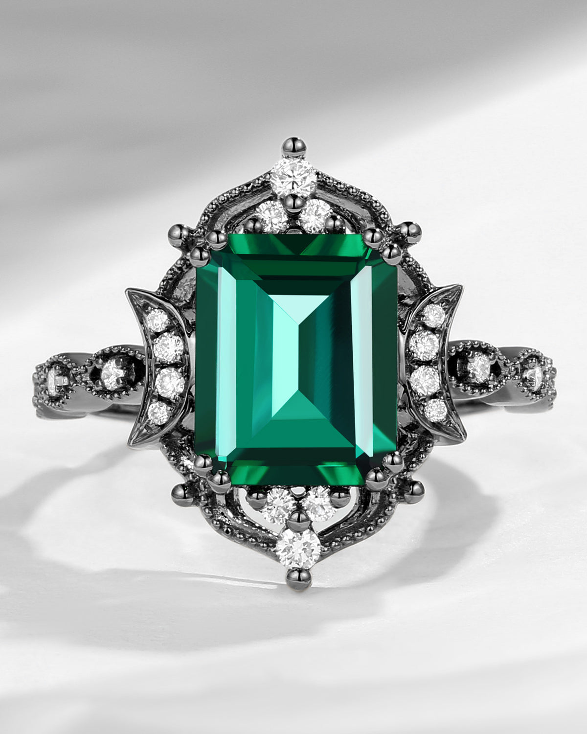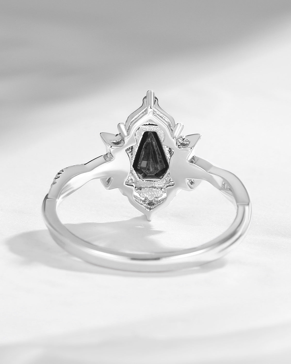 Crescent Moon | Coffin Cut Black Moissanite Engagement Ring - Dark Crown