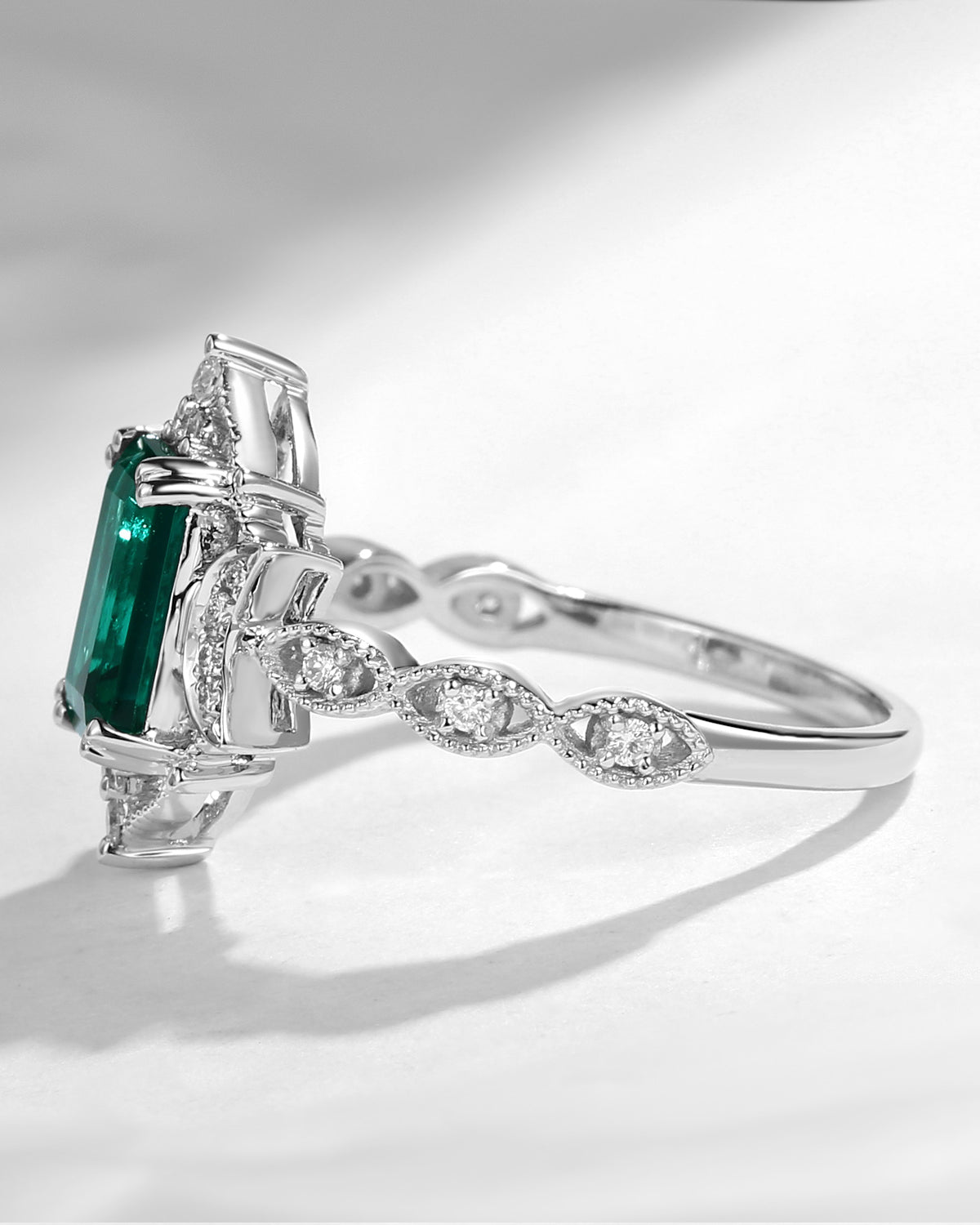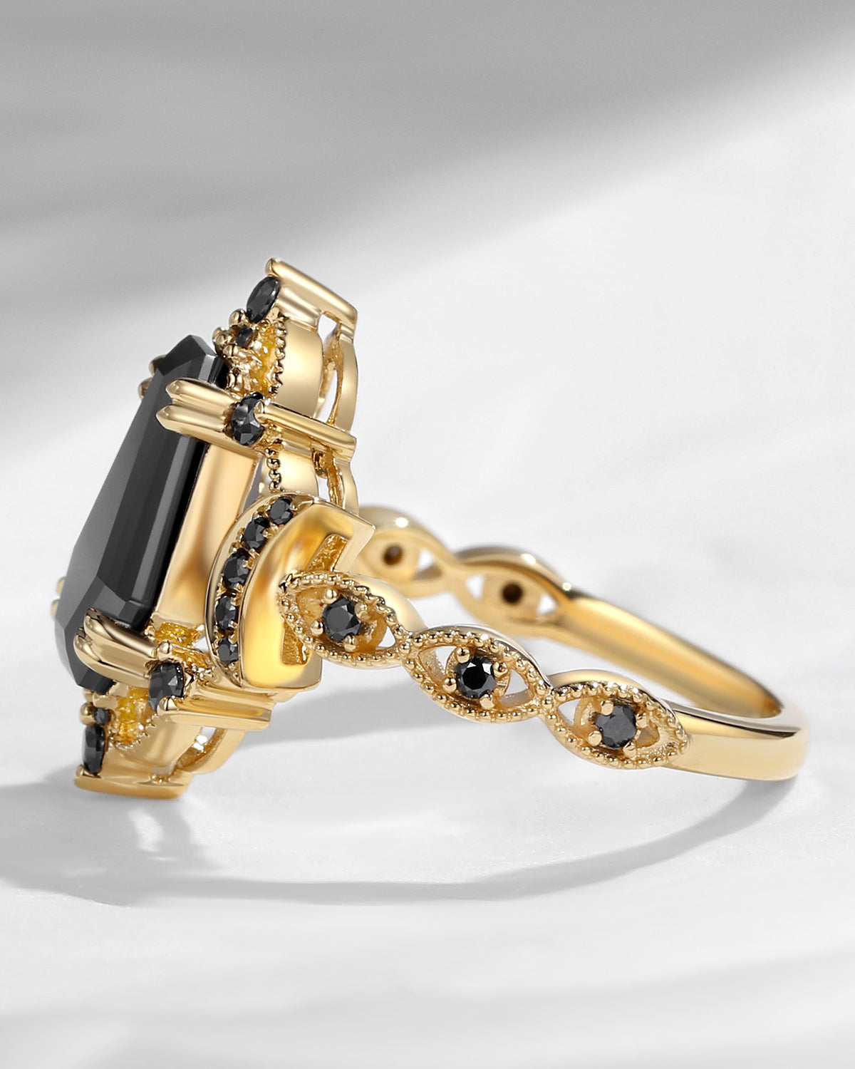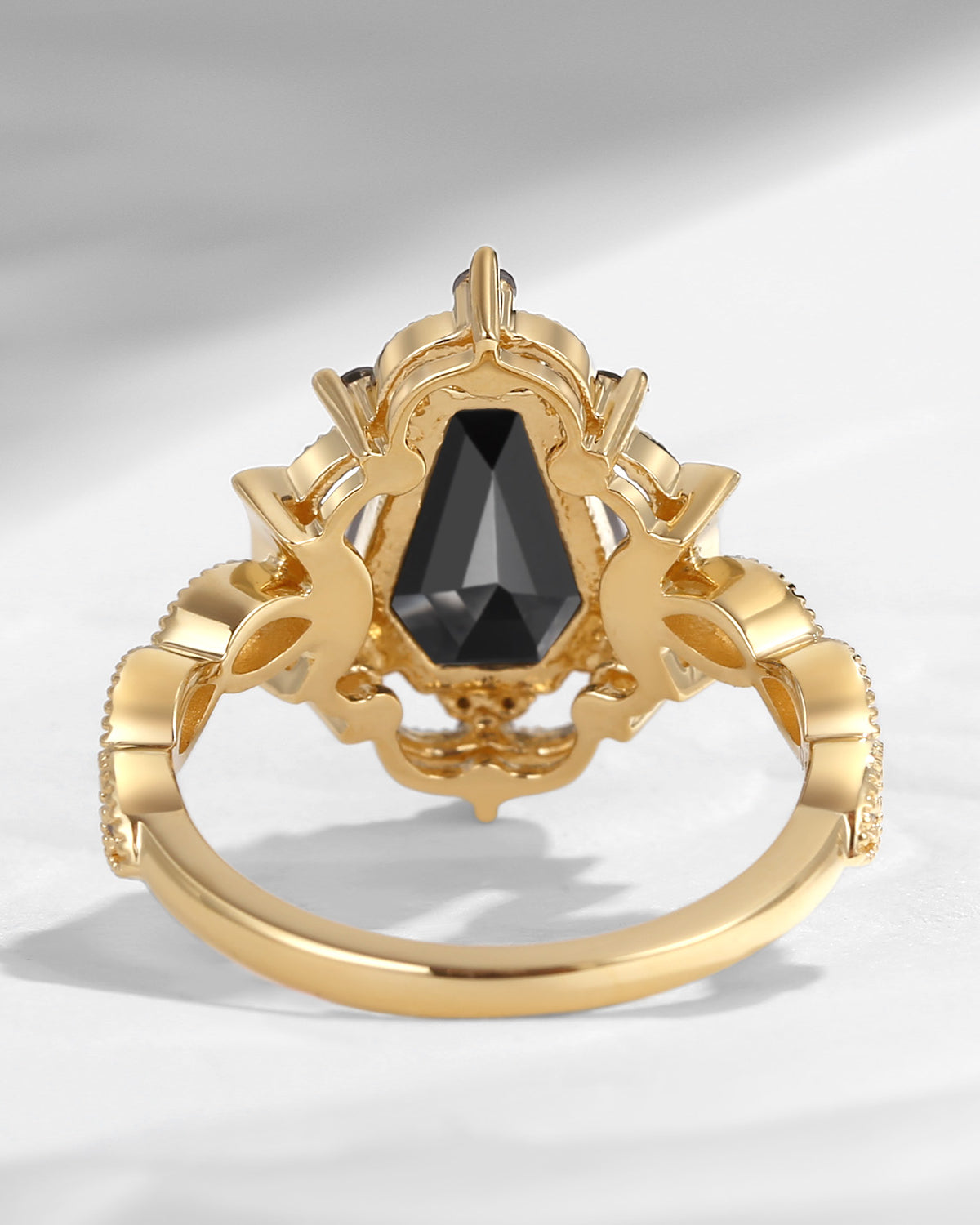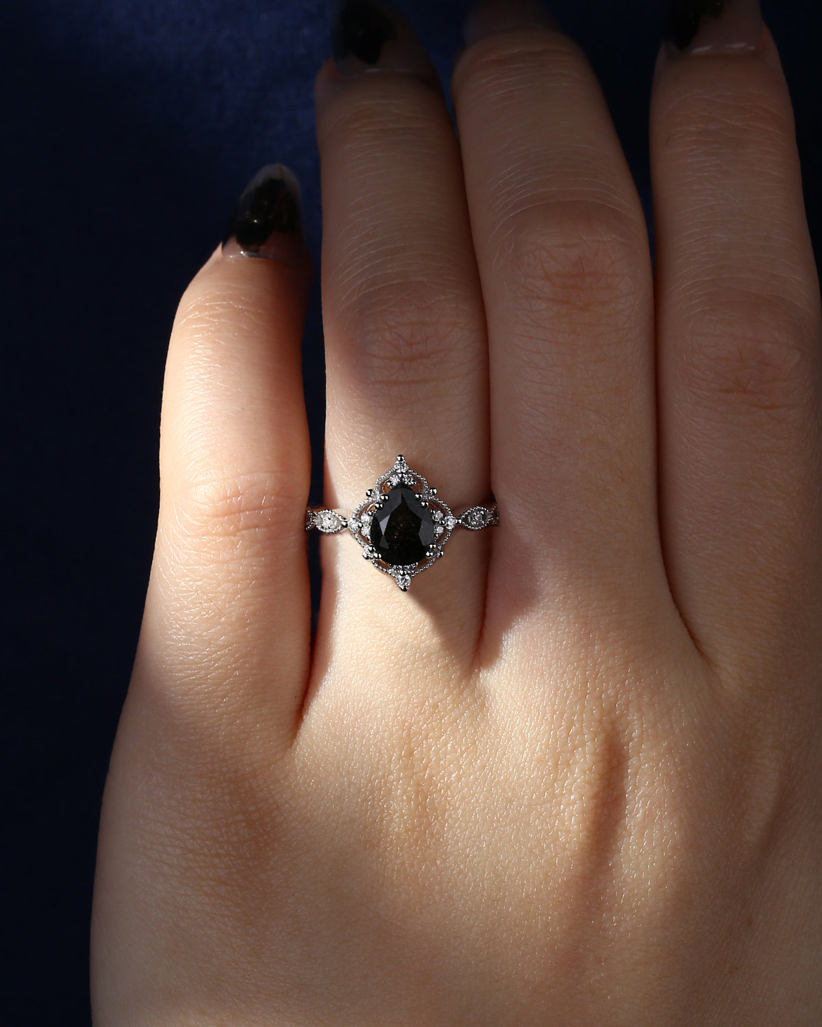 Vintage Inspired Milgrain Kite Cut Black Rutilated Quartz Engagement Ring