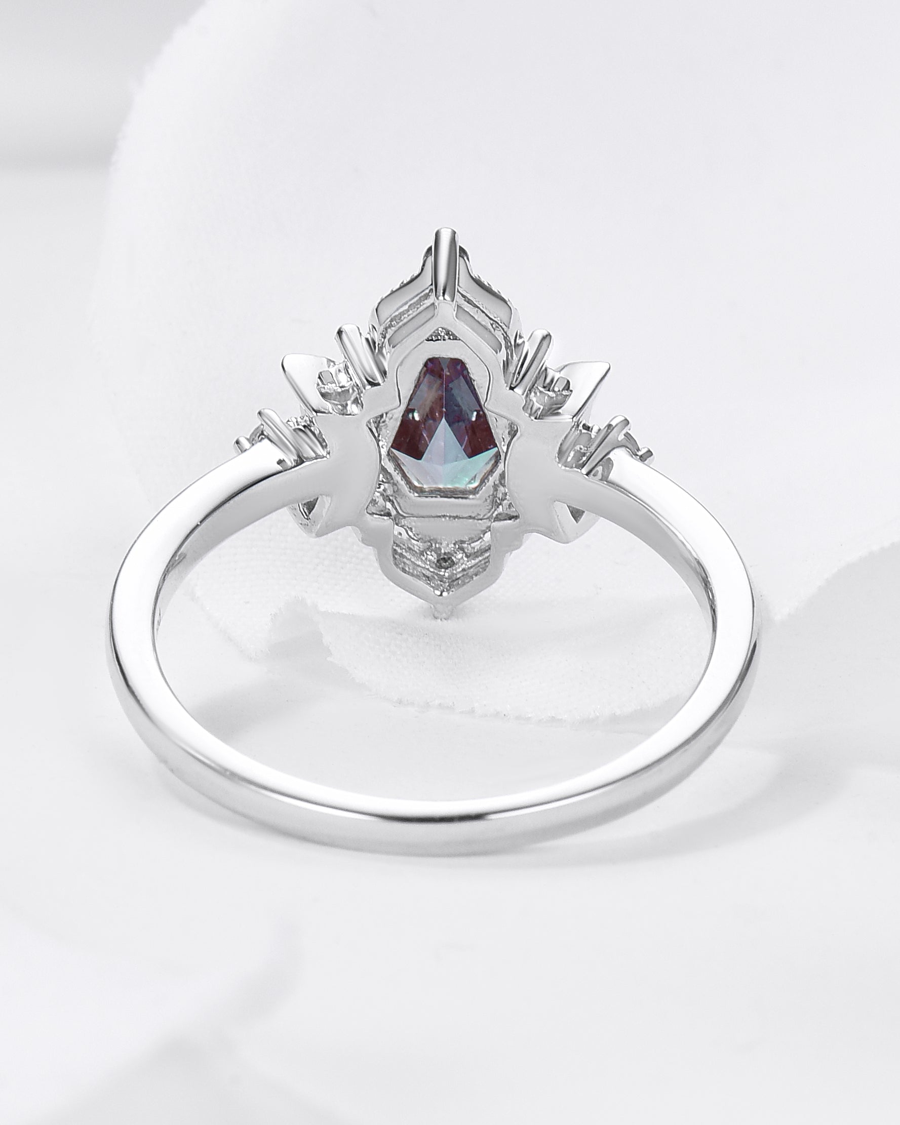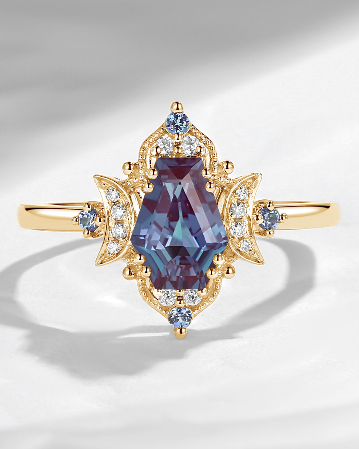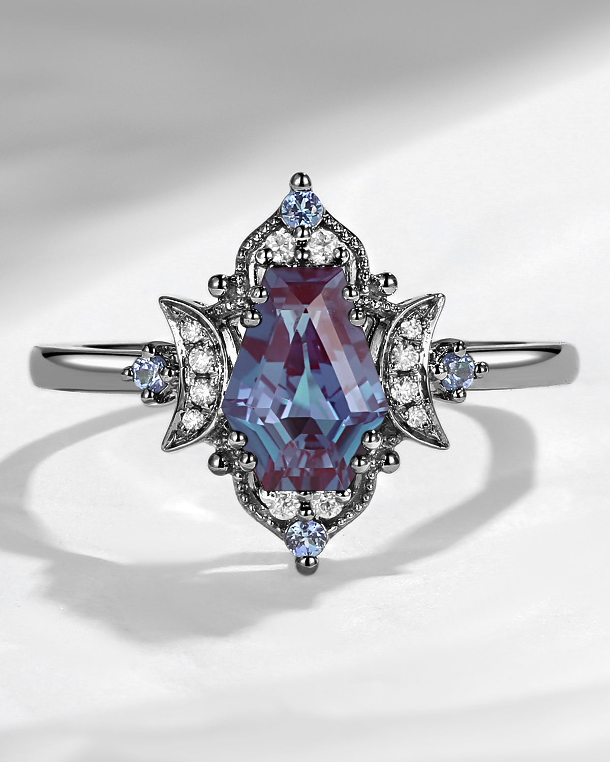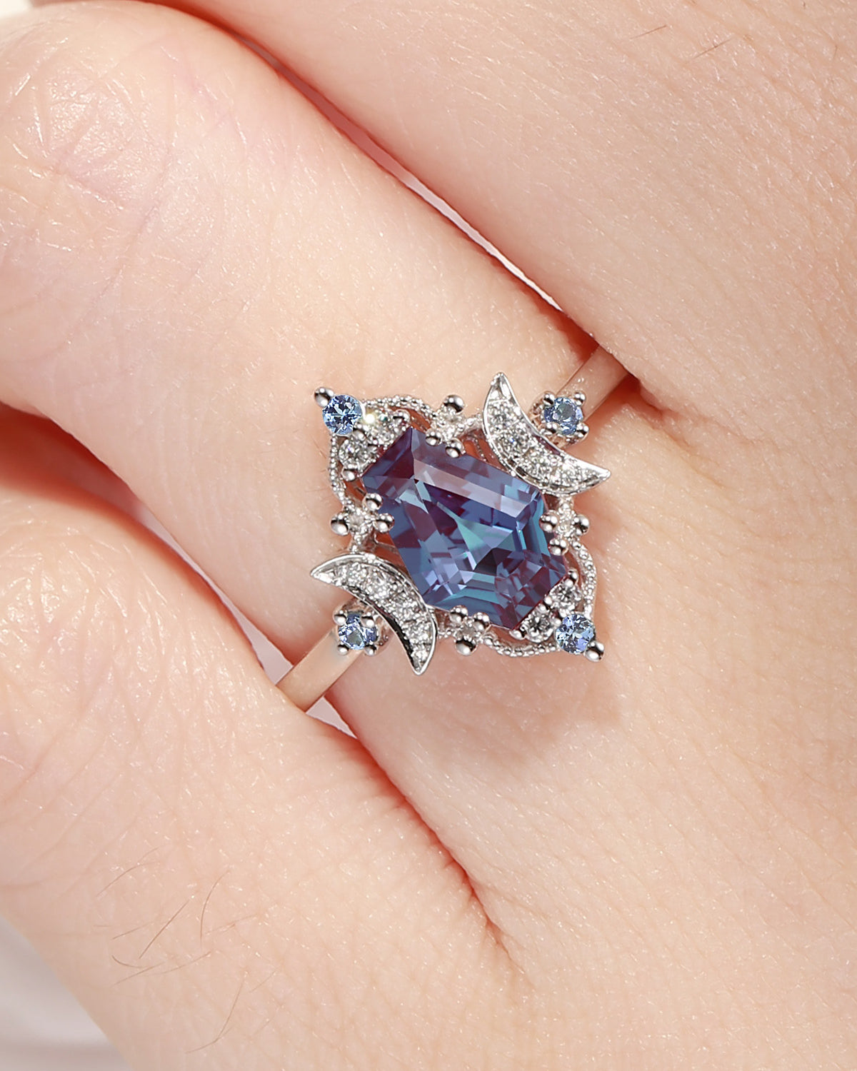 Crescent Moon|Unique Coffin Lab Alexandrite Engagement Ring-'Evermore'
