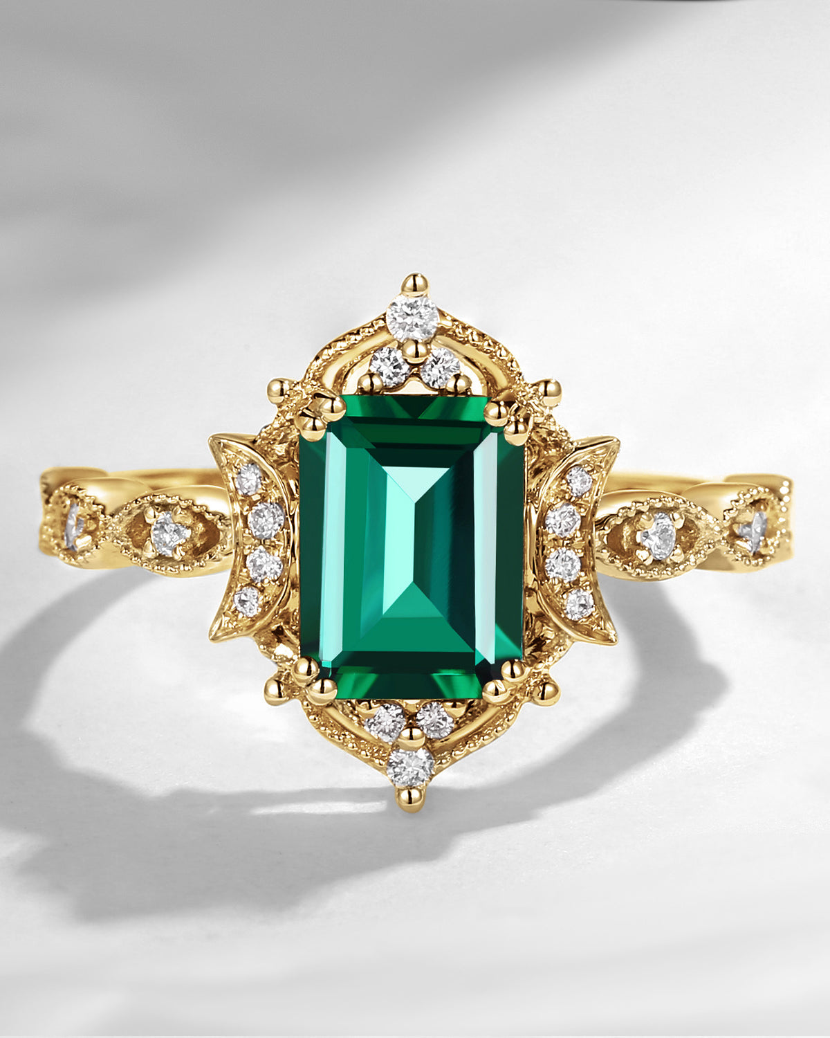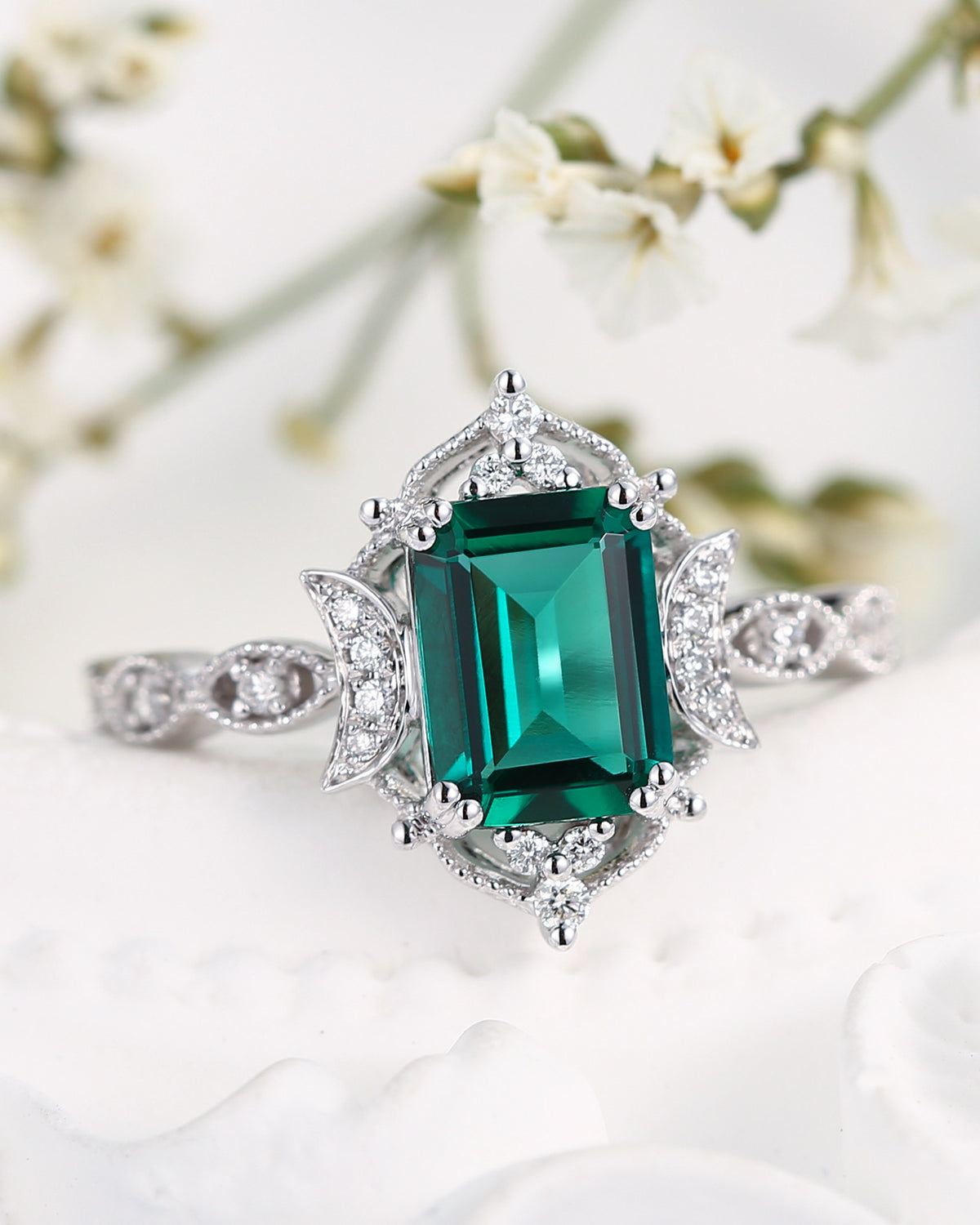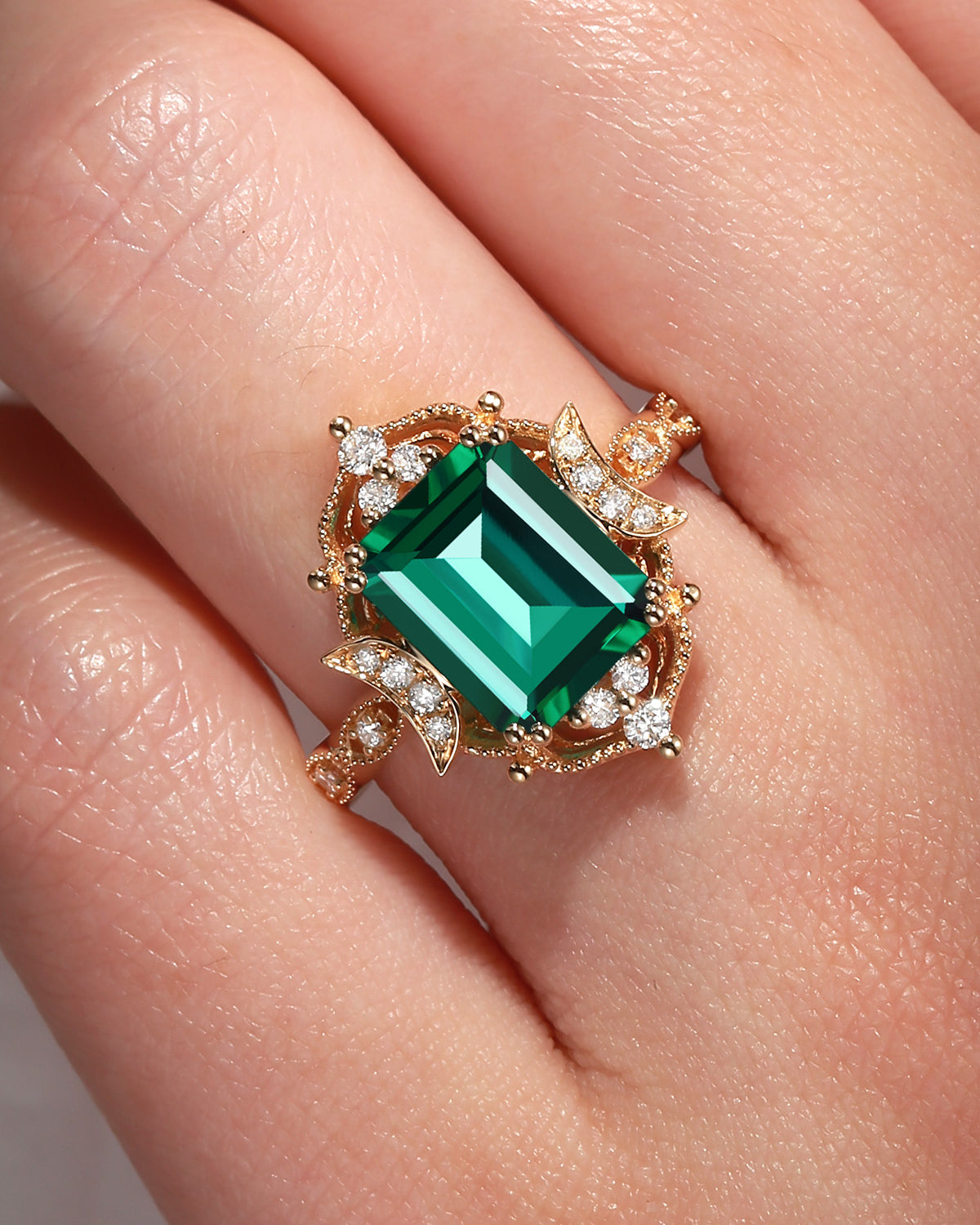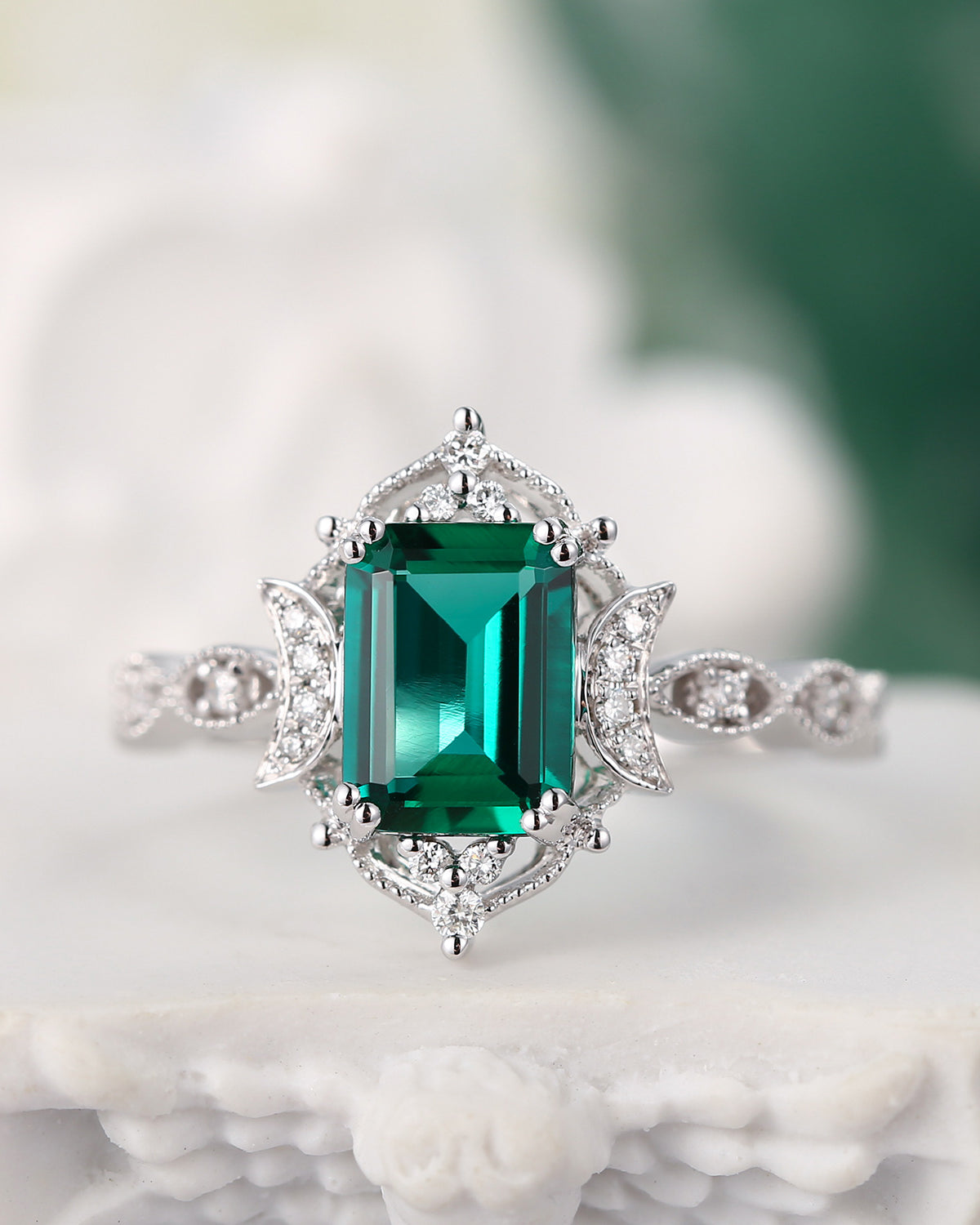 Crescent Moon|Unique Coffin Lab Alexandrite Engagement Ring-'Evermore'