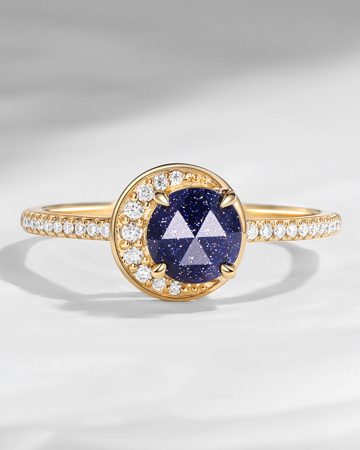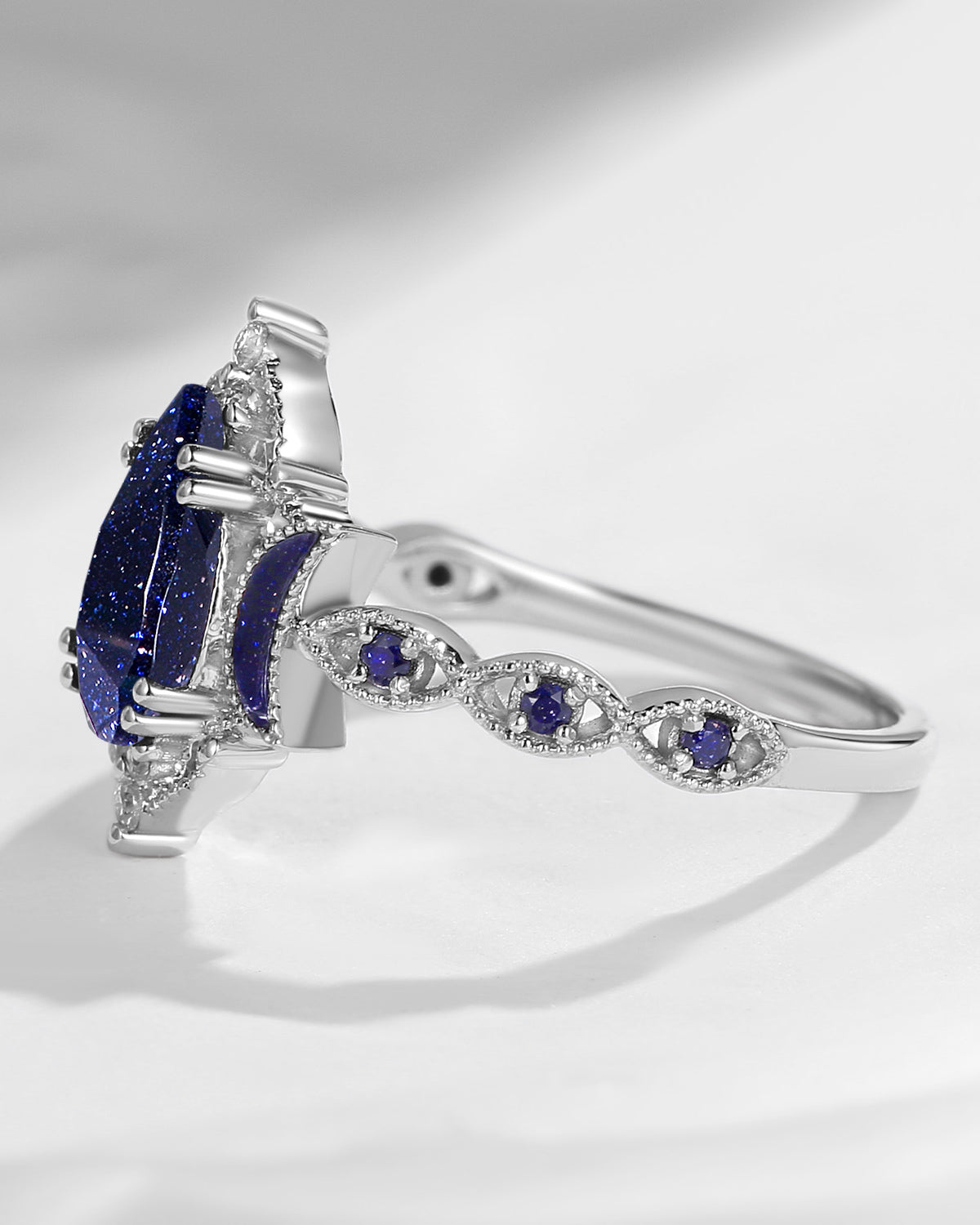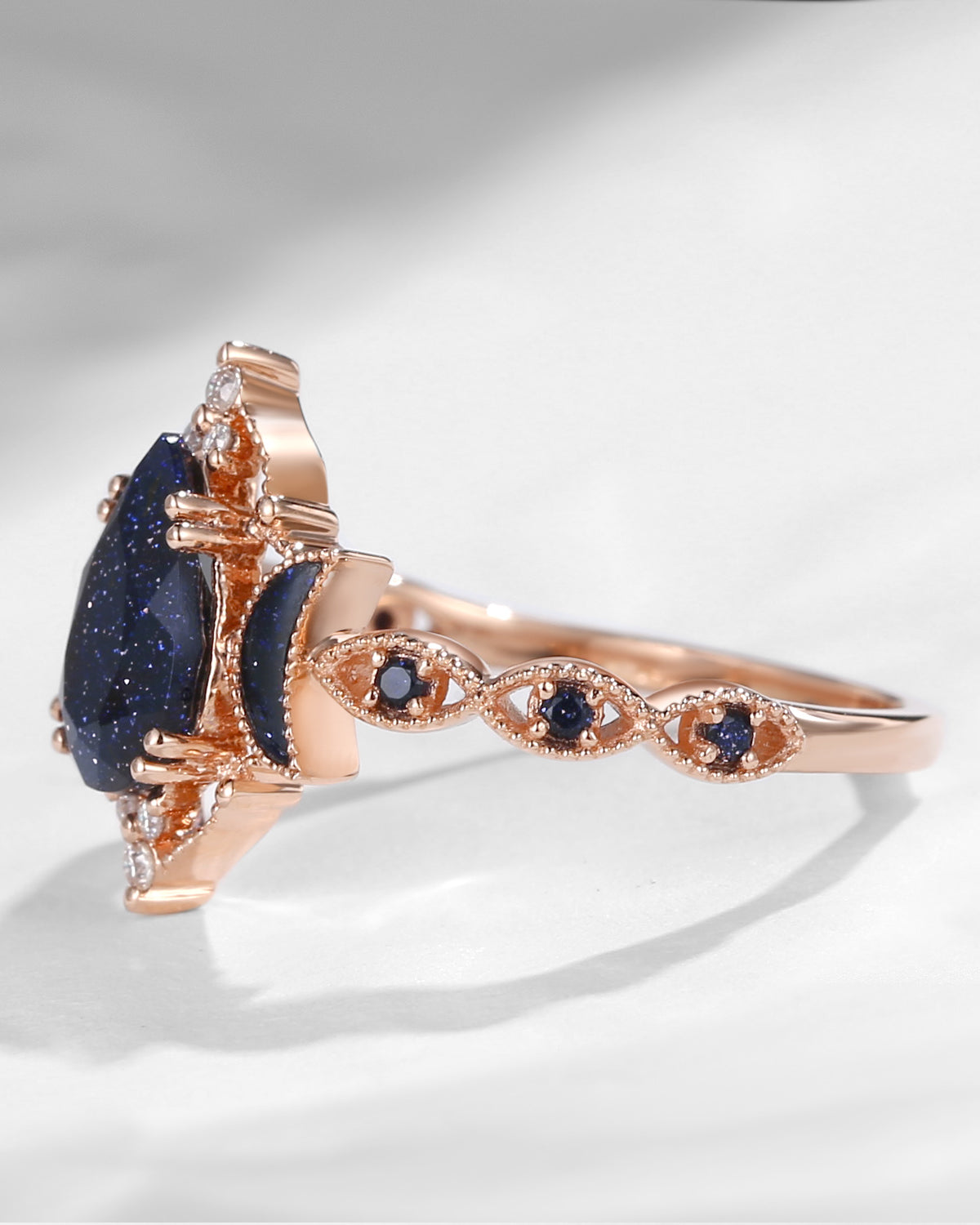 Crescent Moon | Unique Coffin Black Rutilated Quartz Infinity Celtic Engagement Ring