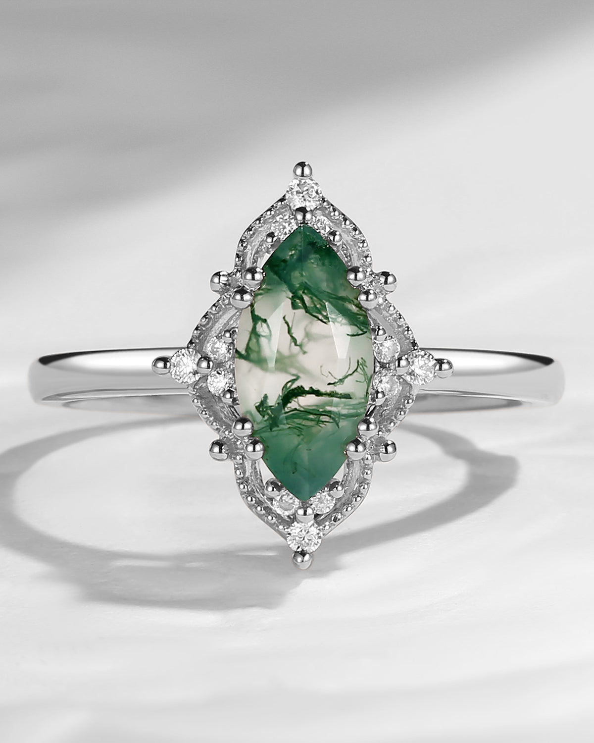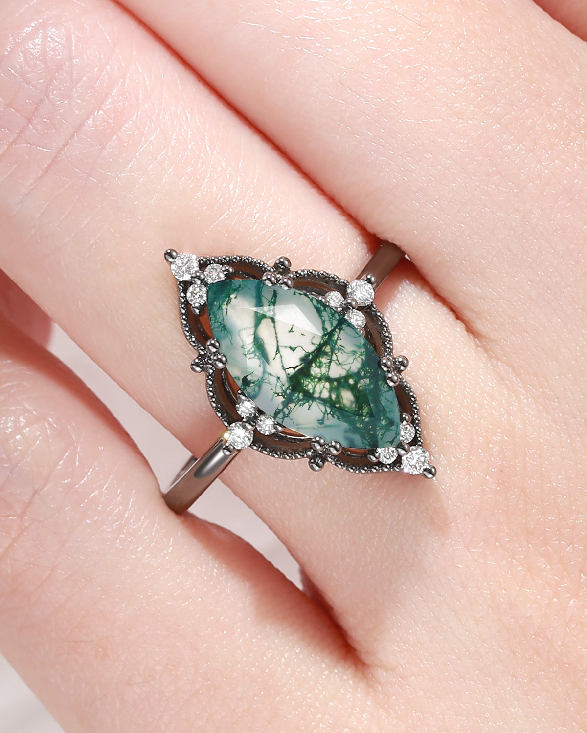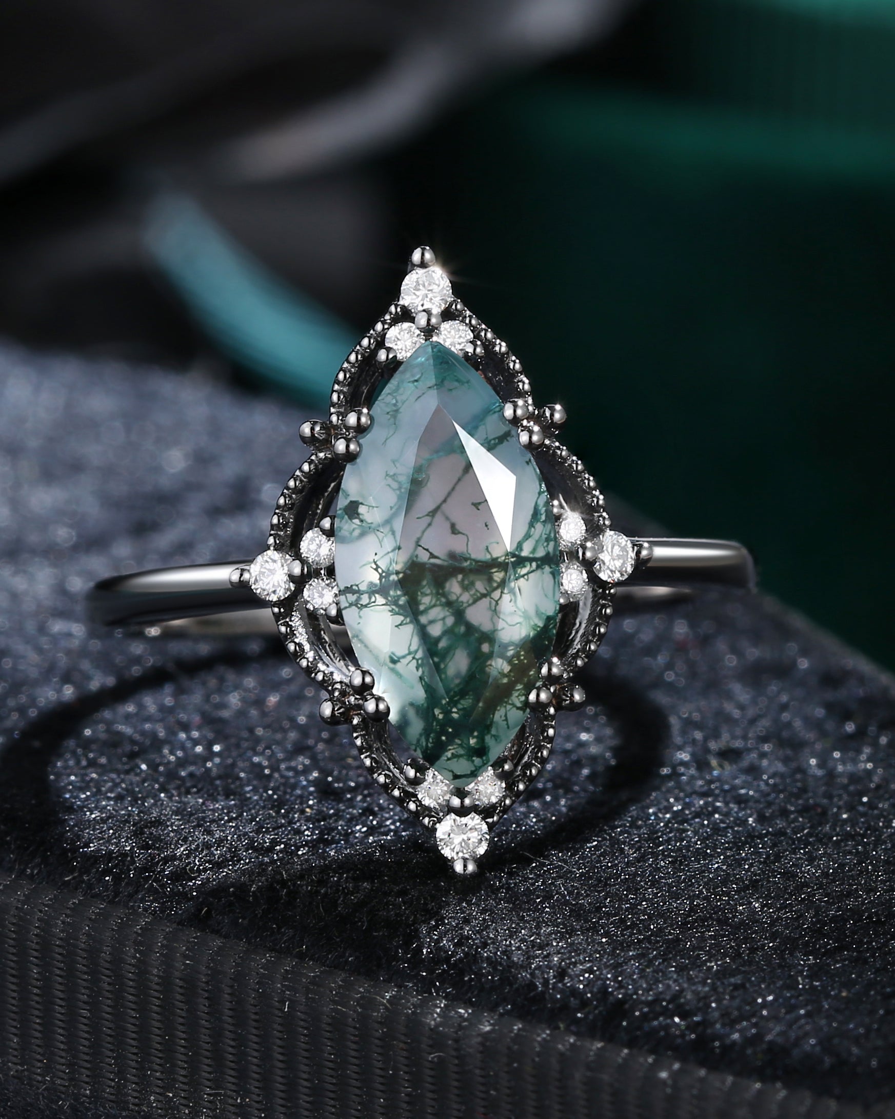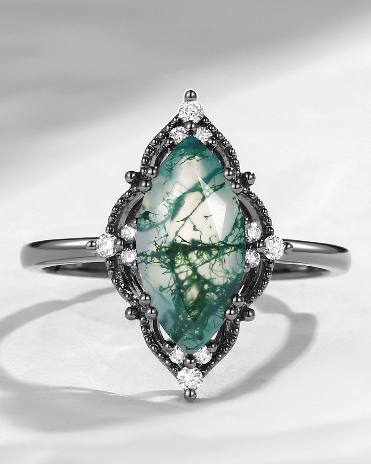 2.5ct 18K Marquise Vintage Inspired Moss Agate Engagement Ring