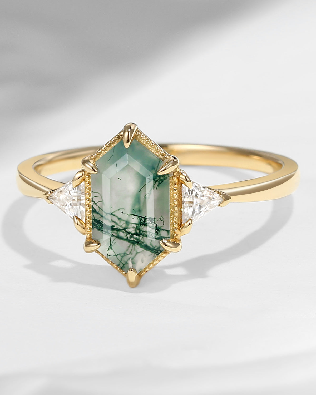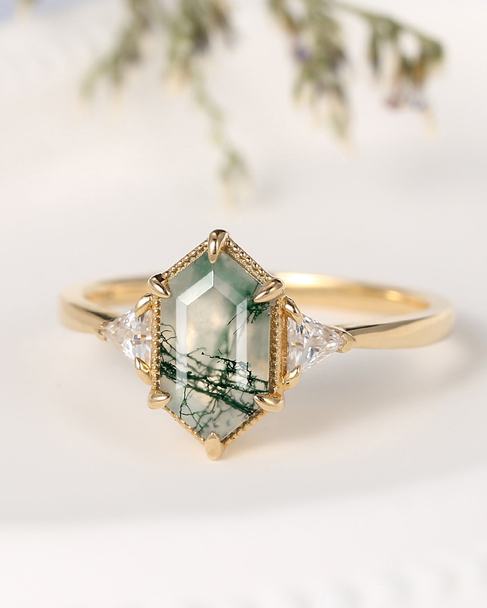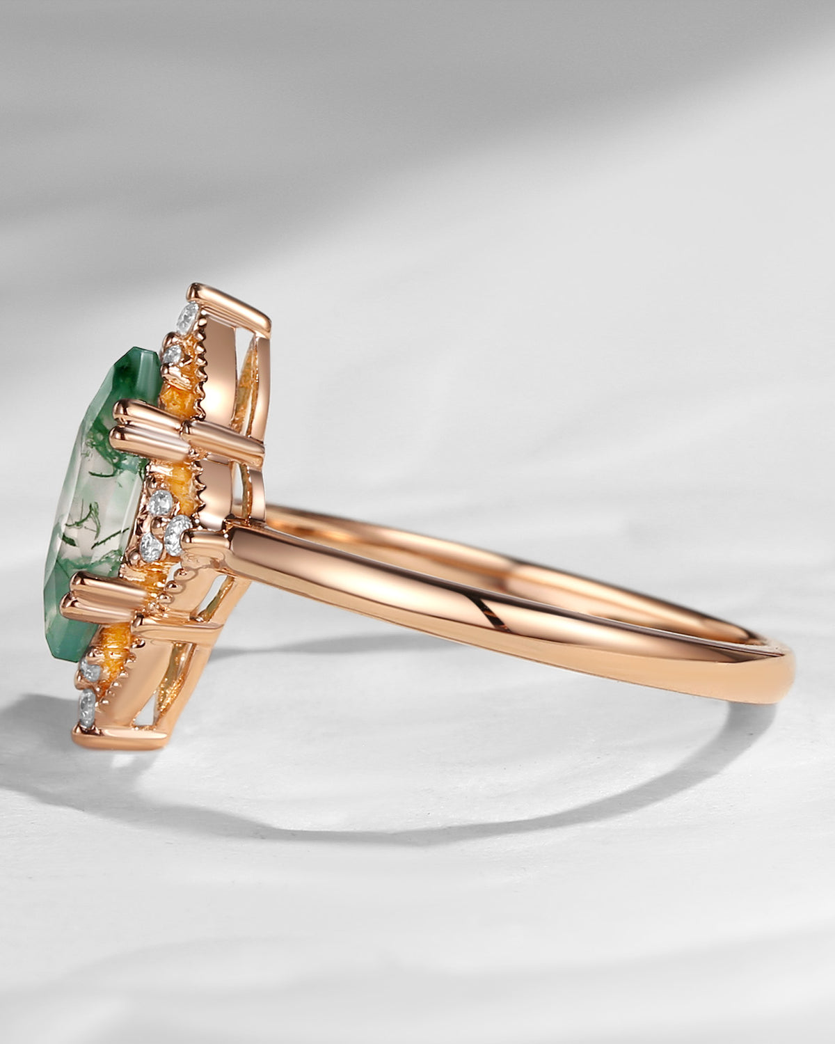 2.5ct 18K Marquise Vintage Inspired Moss Agate Engagement Ring